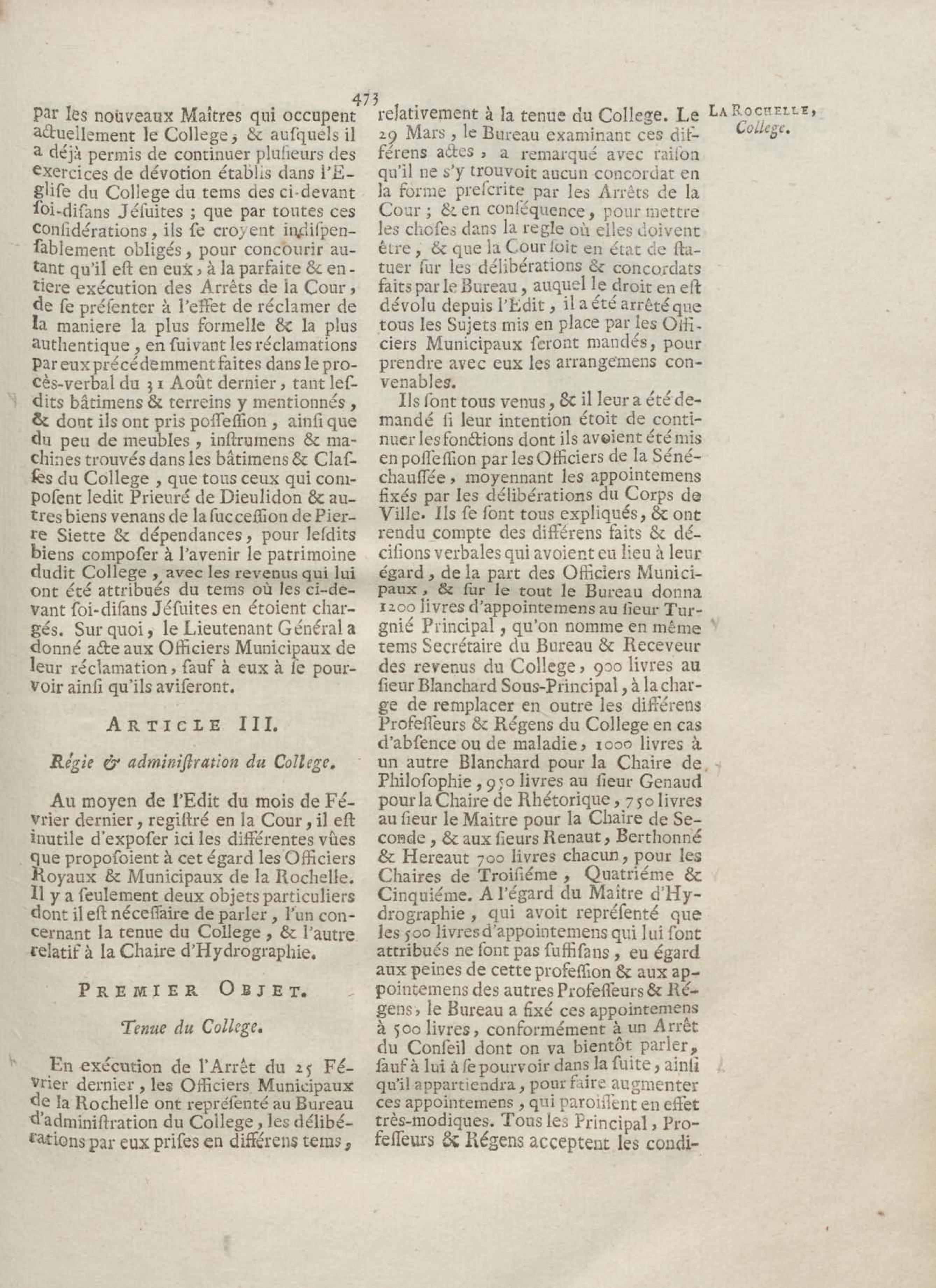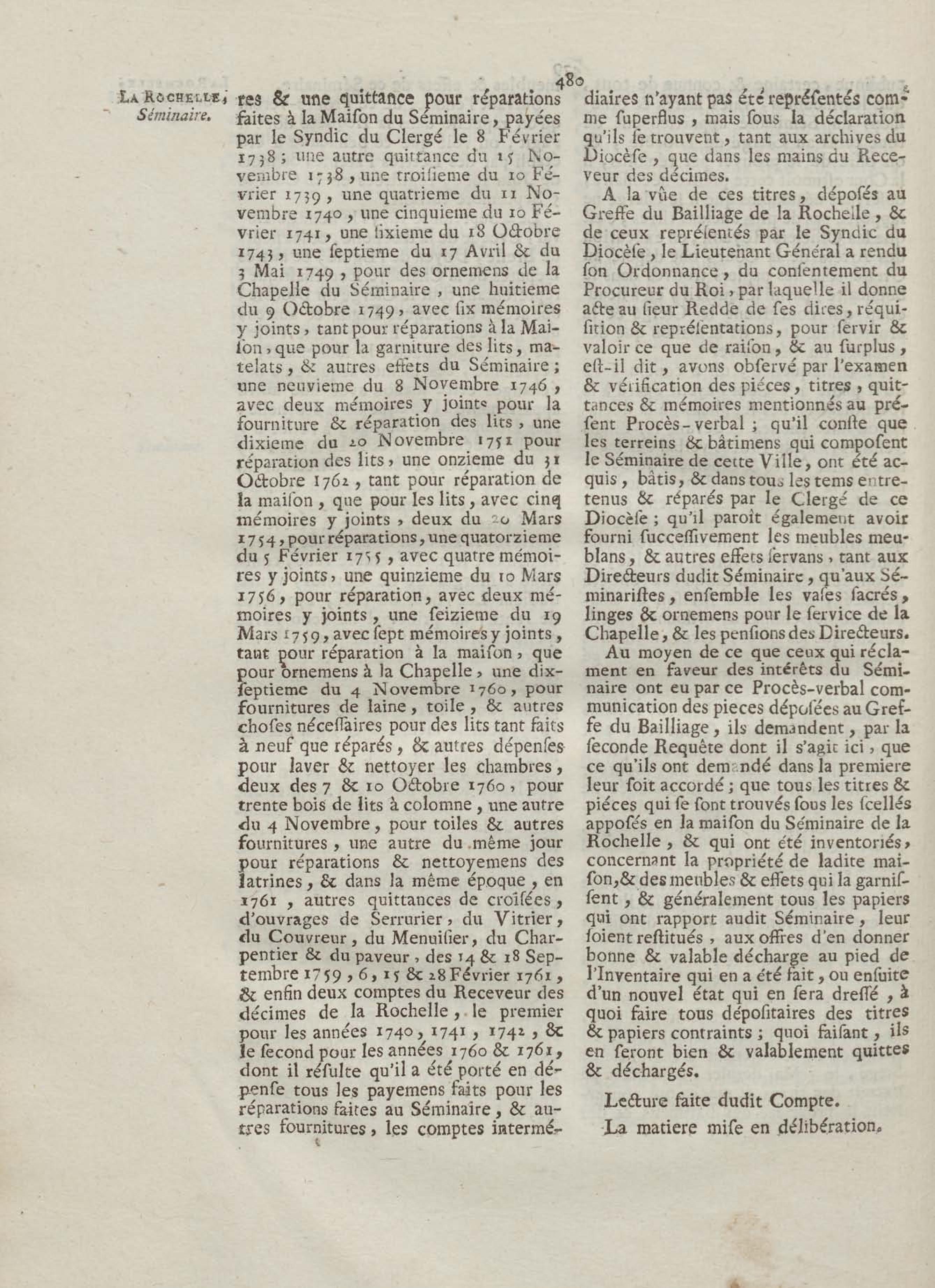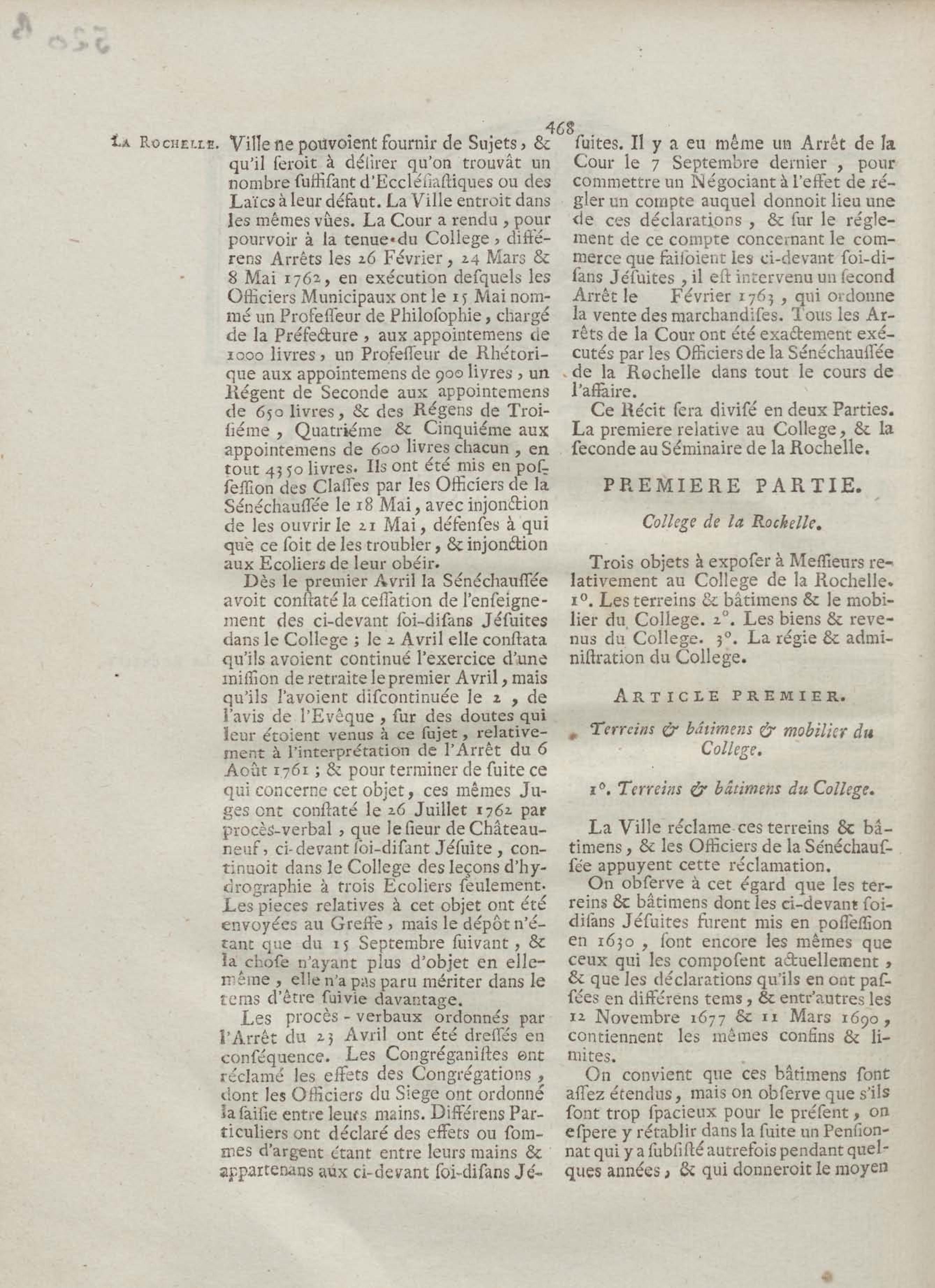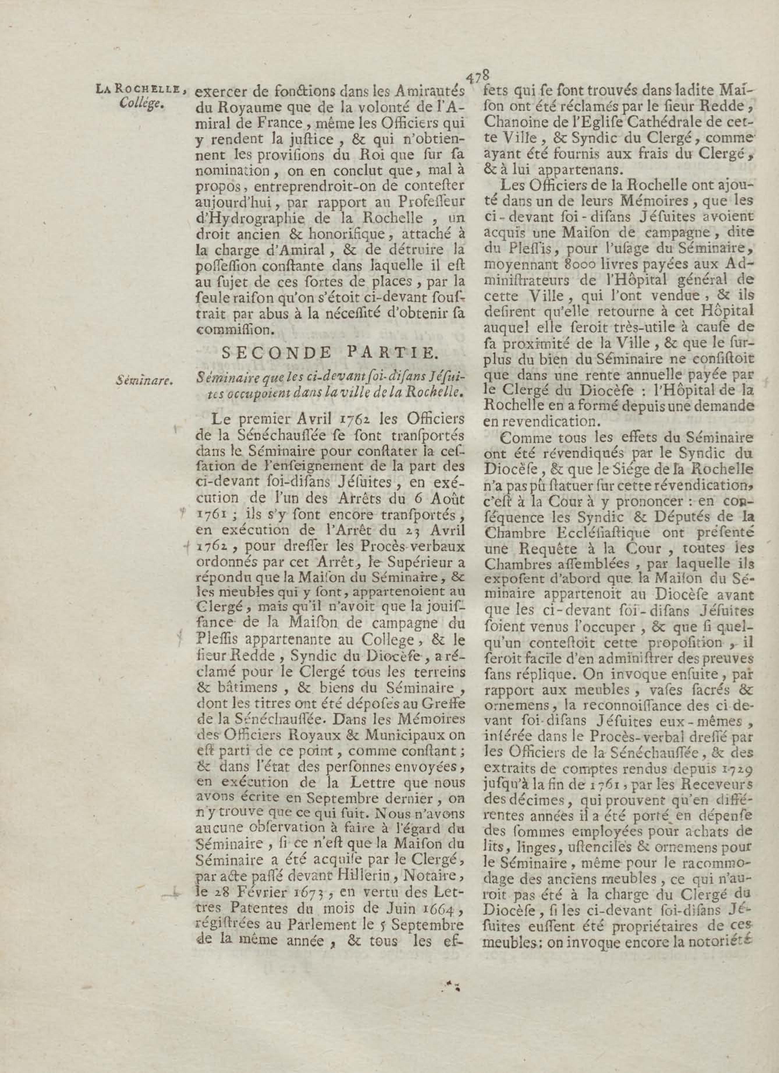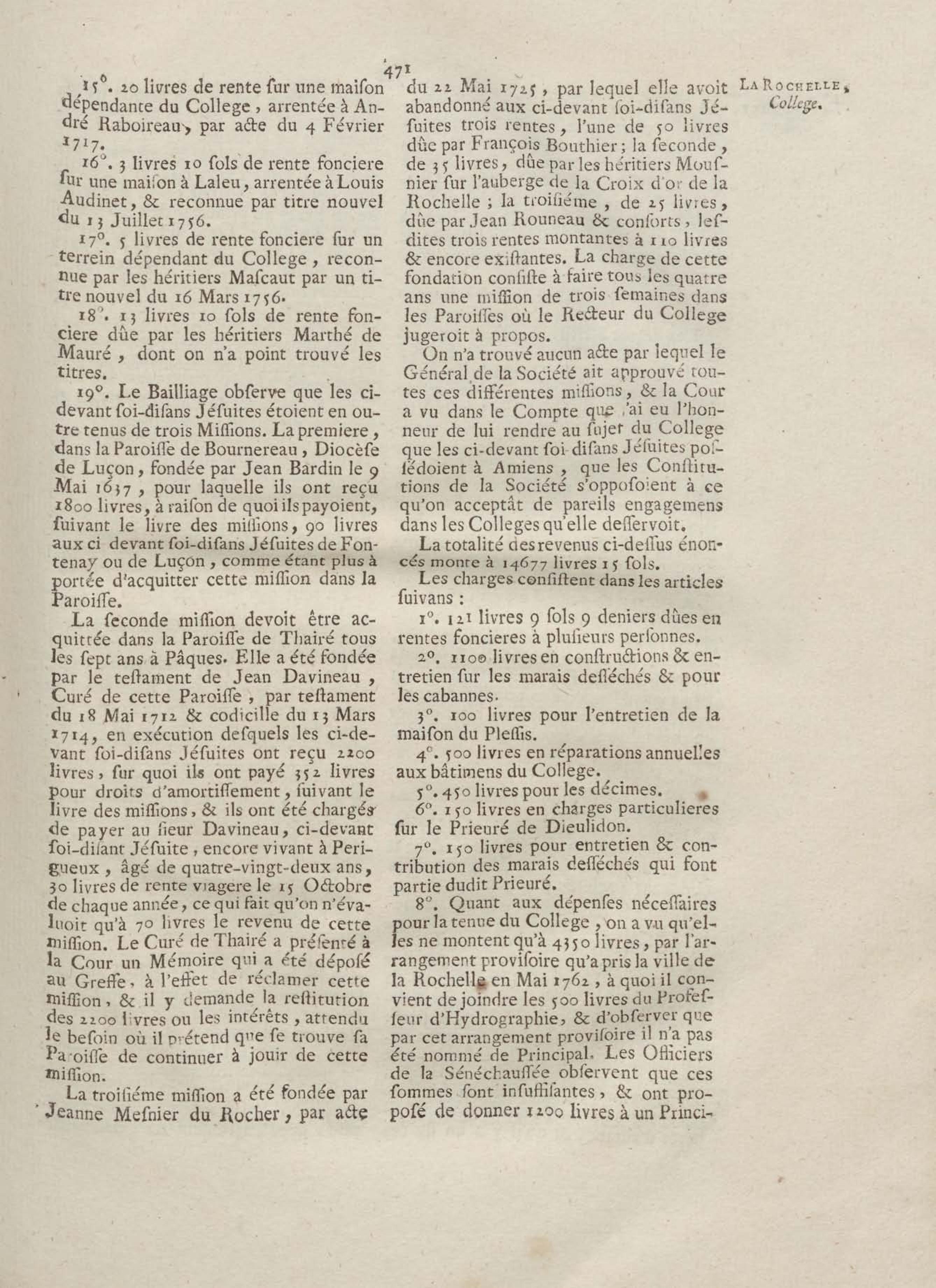 - Compte rendu aux chambres assemblées, par M. Del'Averdy, concernant le College & le Séminaire que les ci-devant soi-disant Jésuites occupoient à la Rochelle