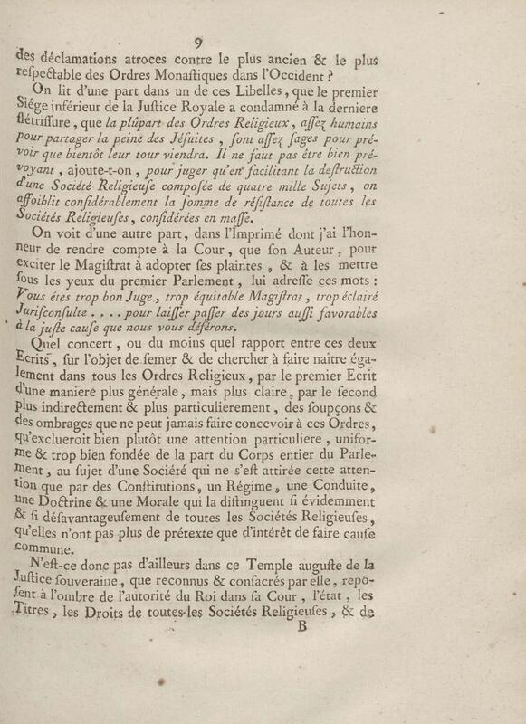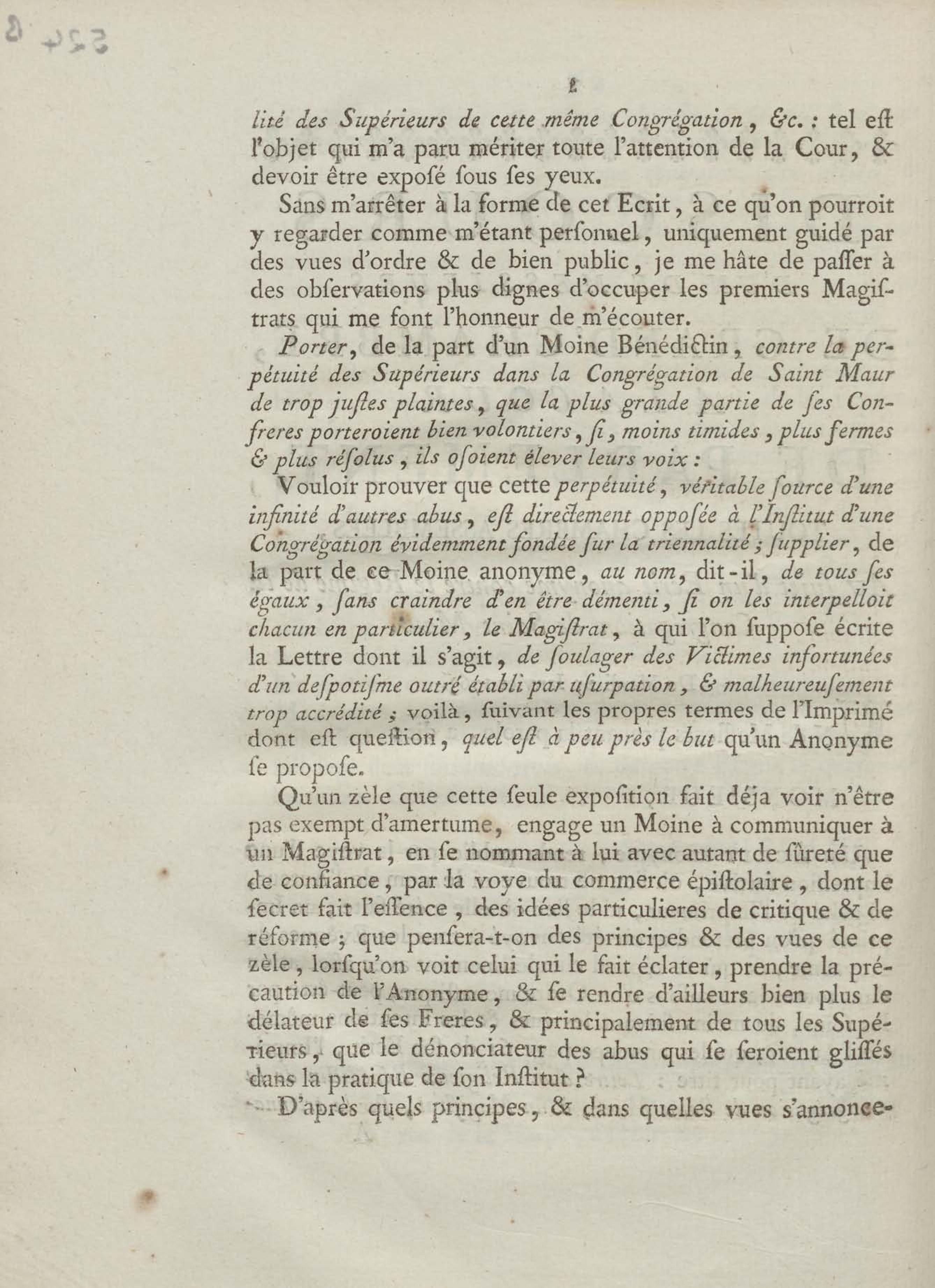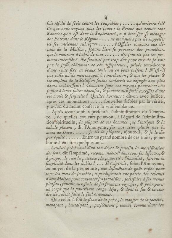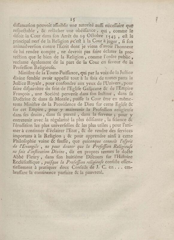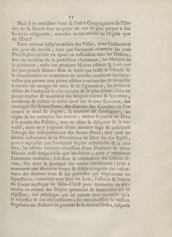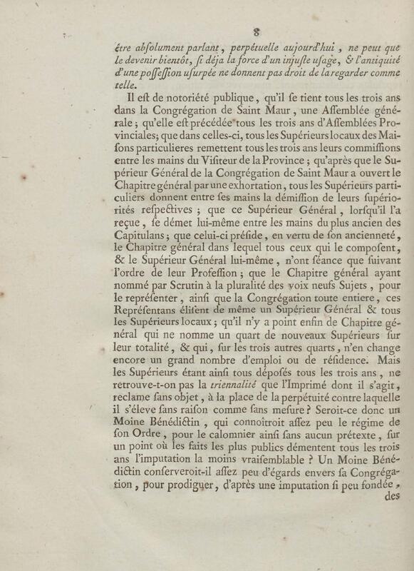 - Discours d'un de messieurs de grand'chambre, à la cour de parlement, toutes les chambres assemblées, au sujet d'un Ecrit anonyme contre le Régime de la Congrégation de Saint Maur