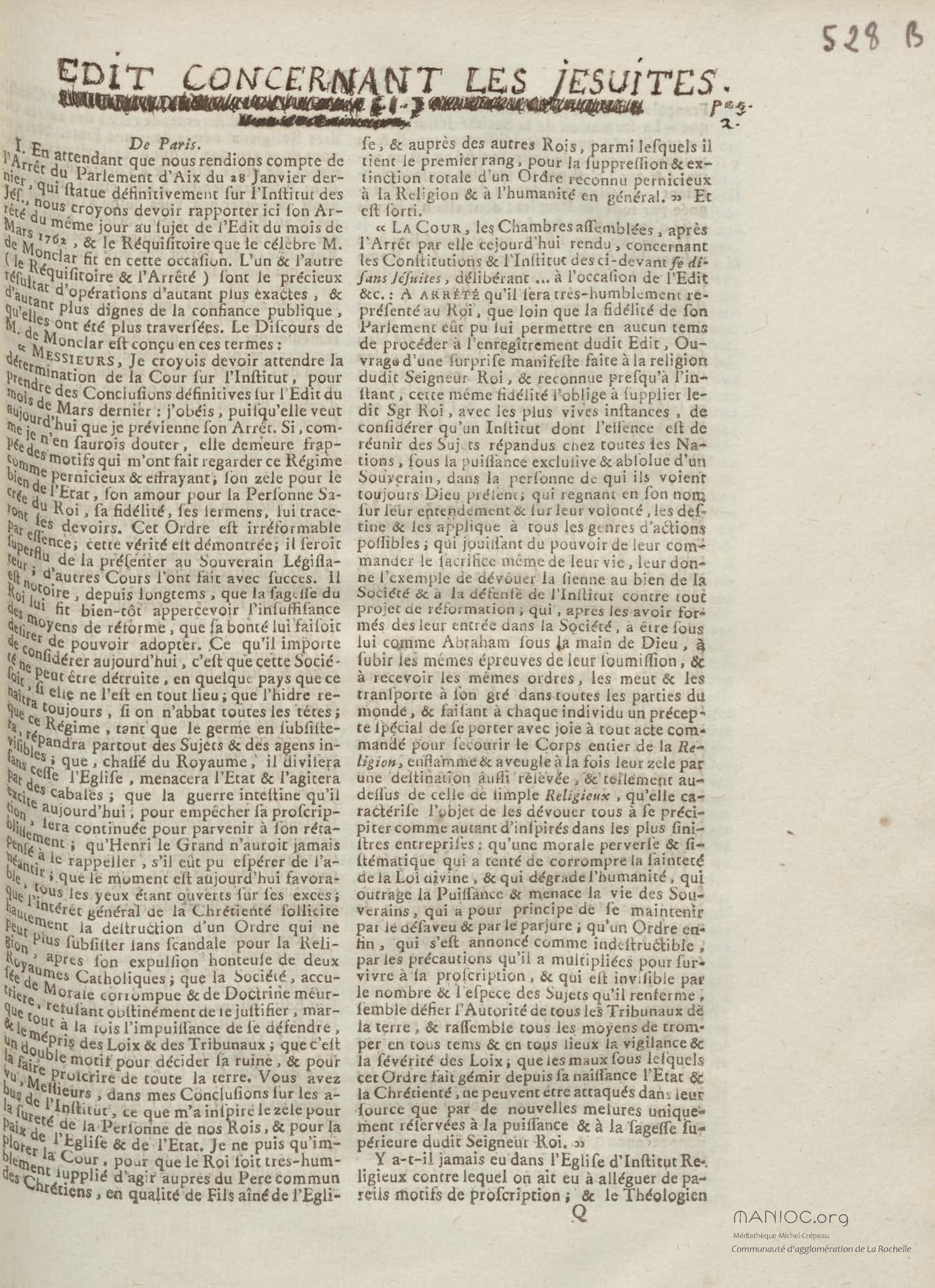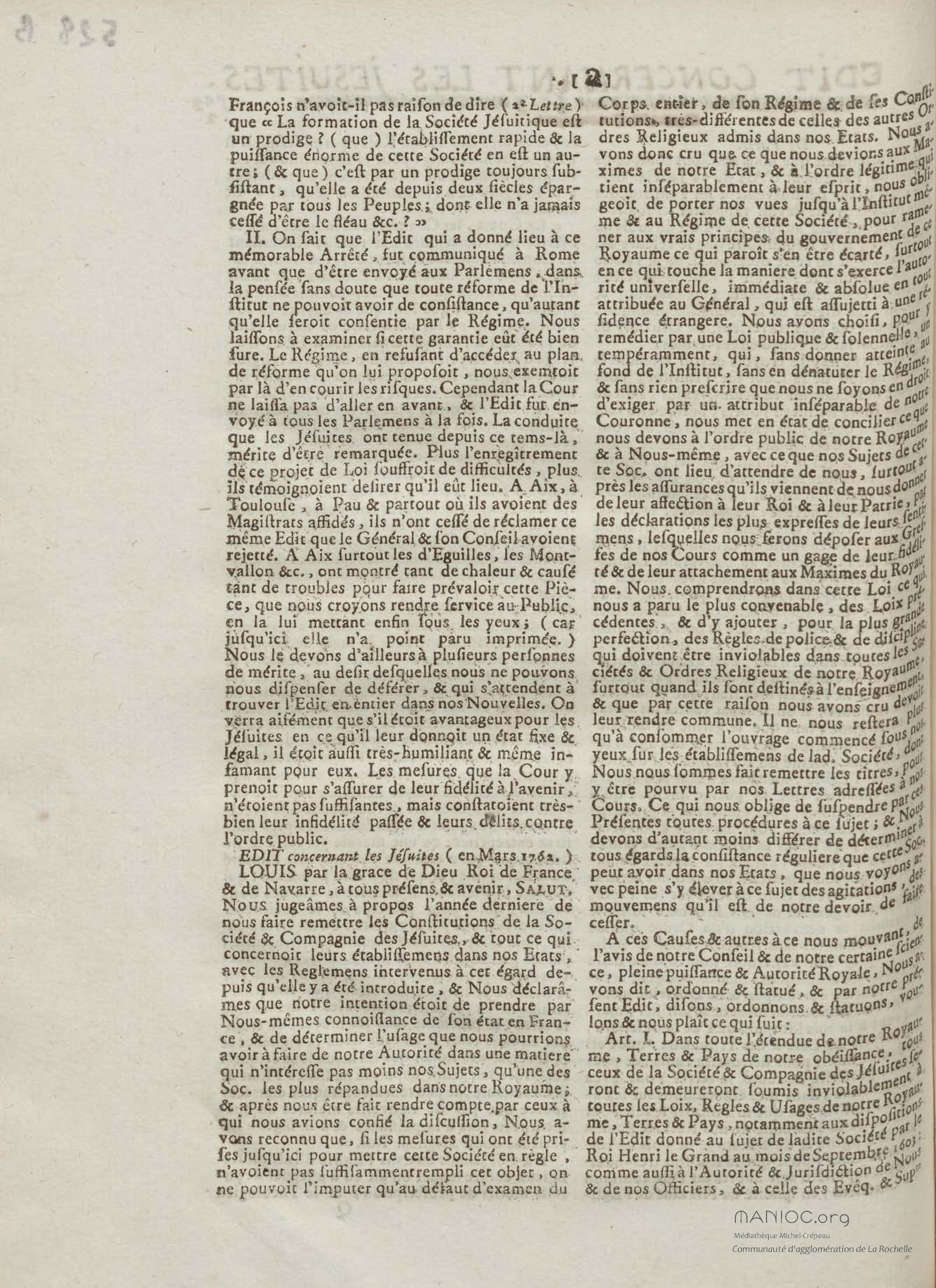 Edit concernant les jesuites