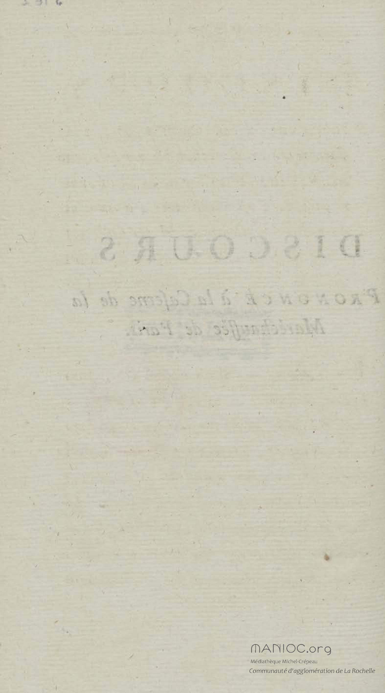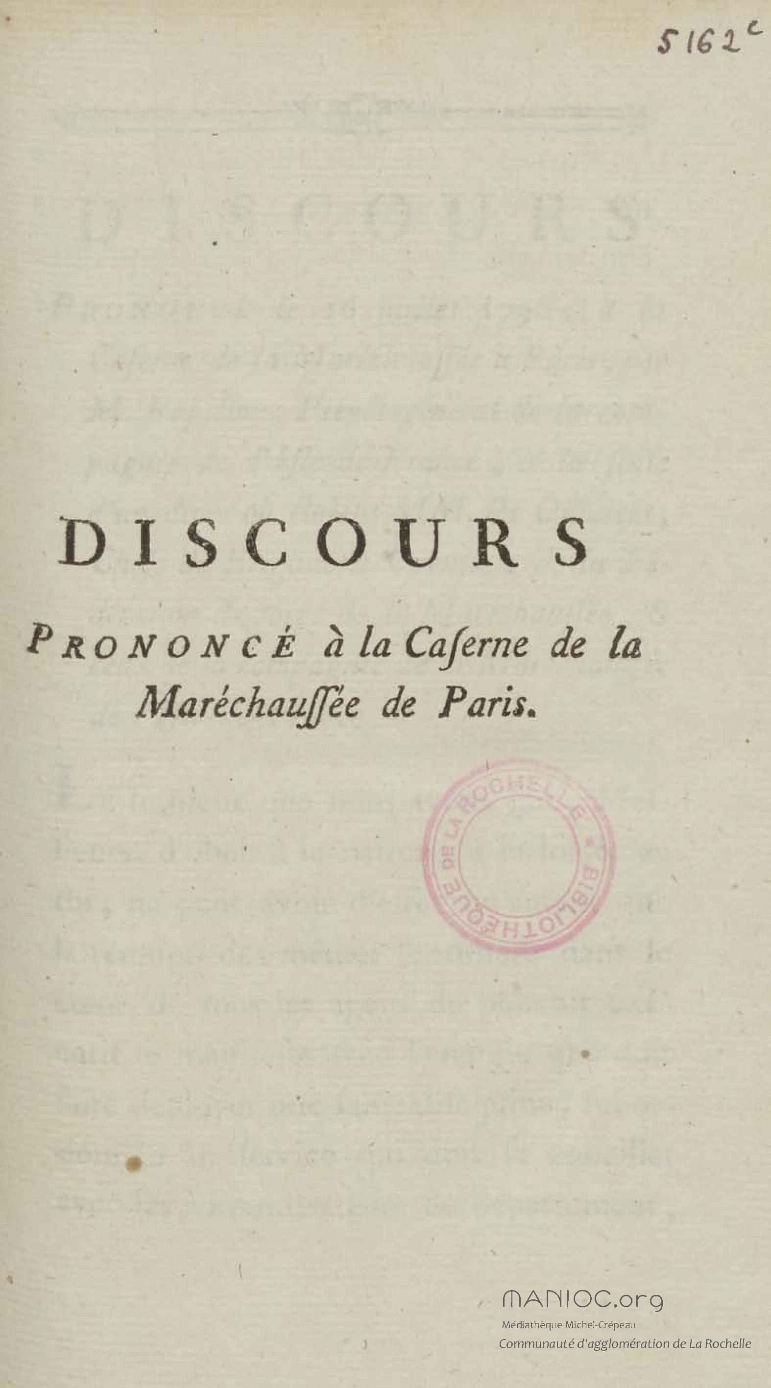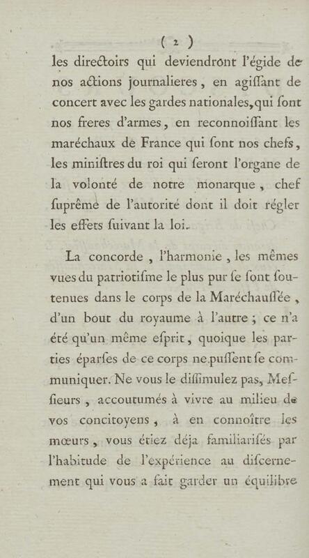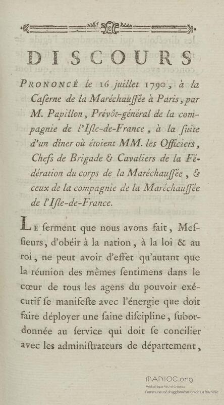 - Discours prononcé à la caserne de la maréchaussée à Paris