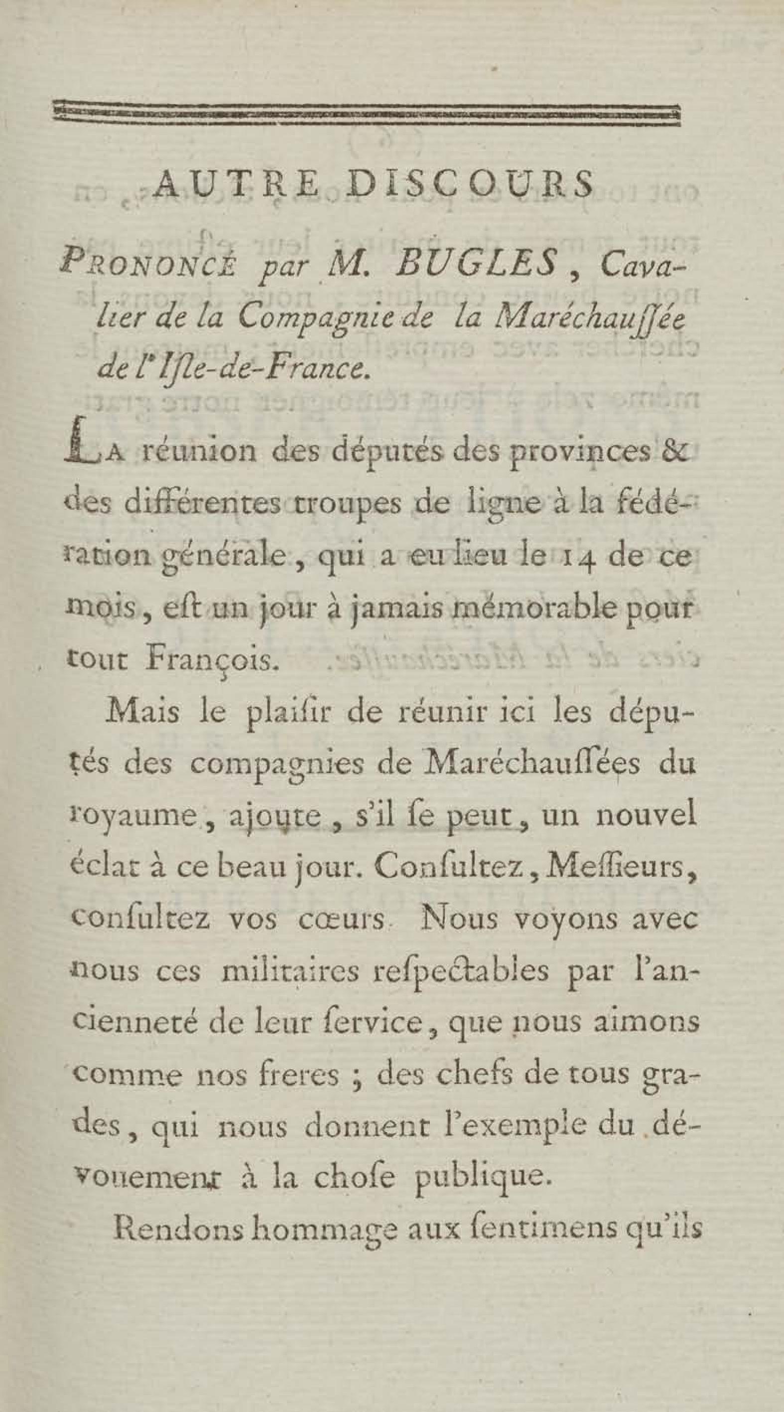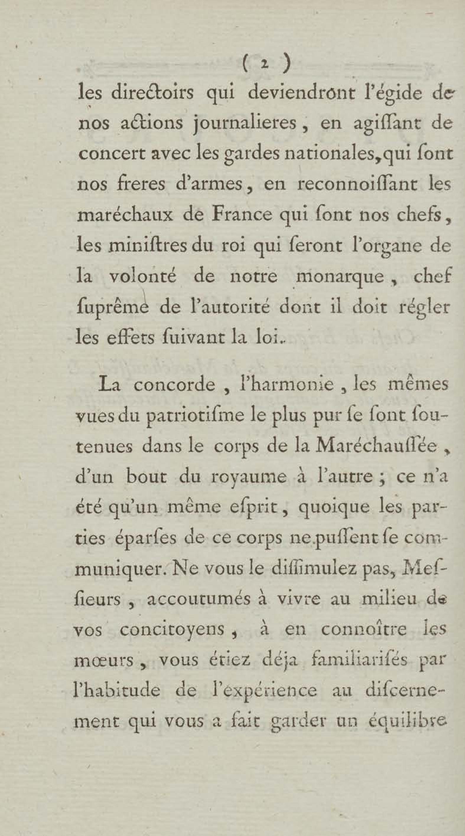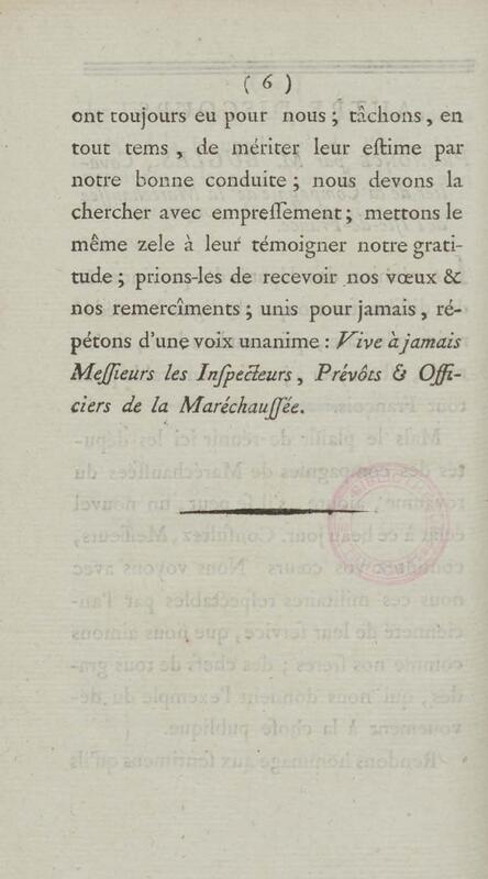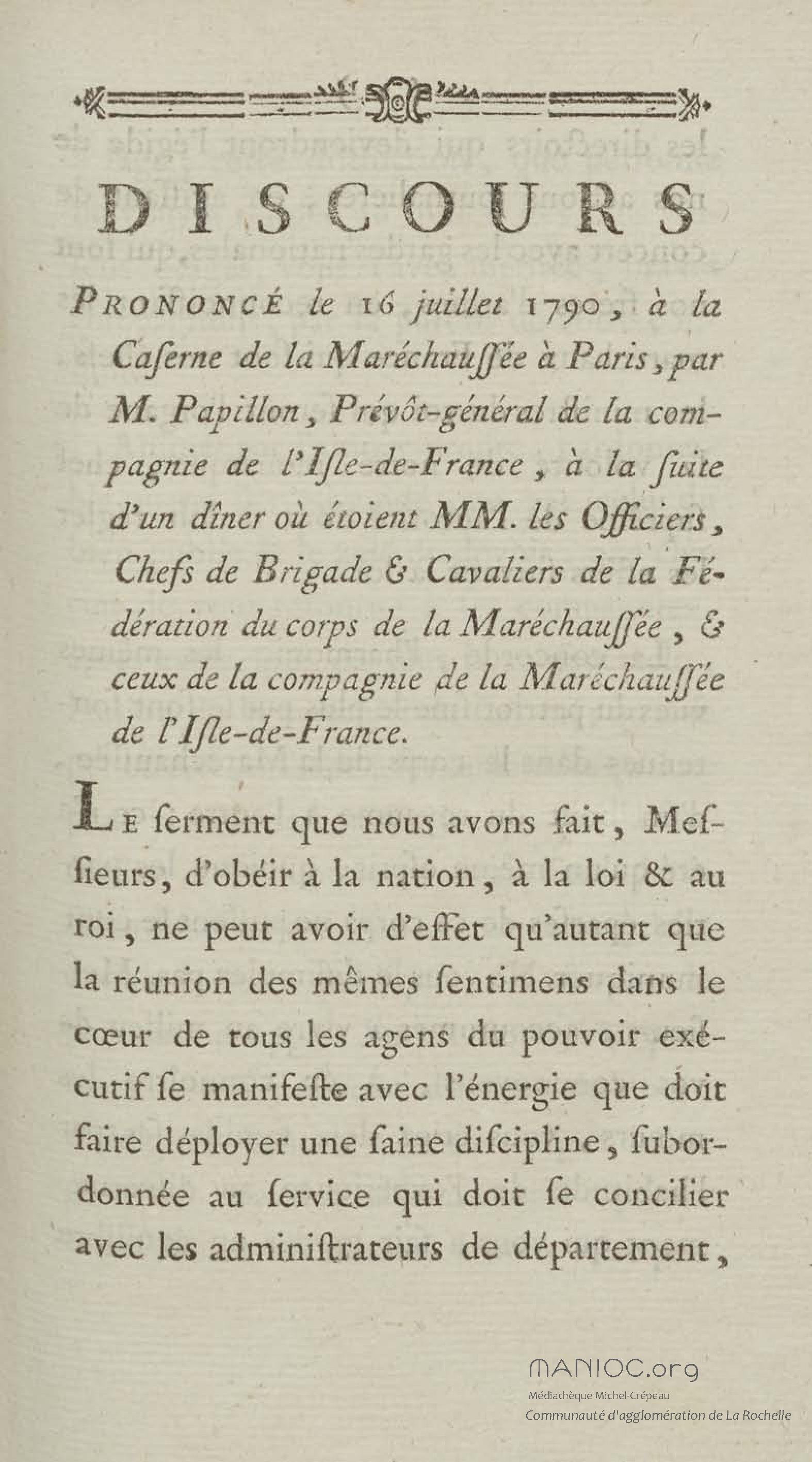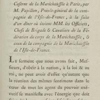 Discours prononcé à la caserne de la maréchaussée à Paris