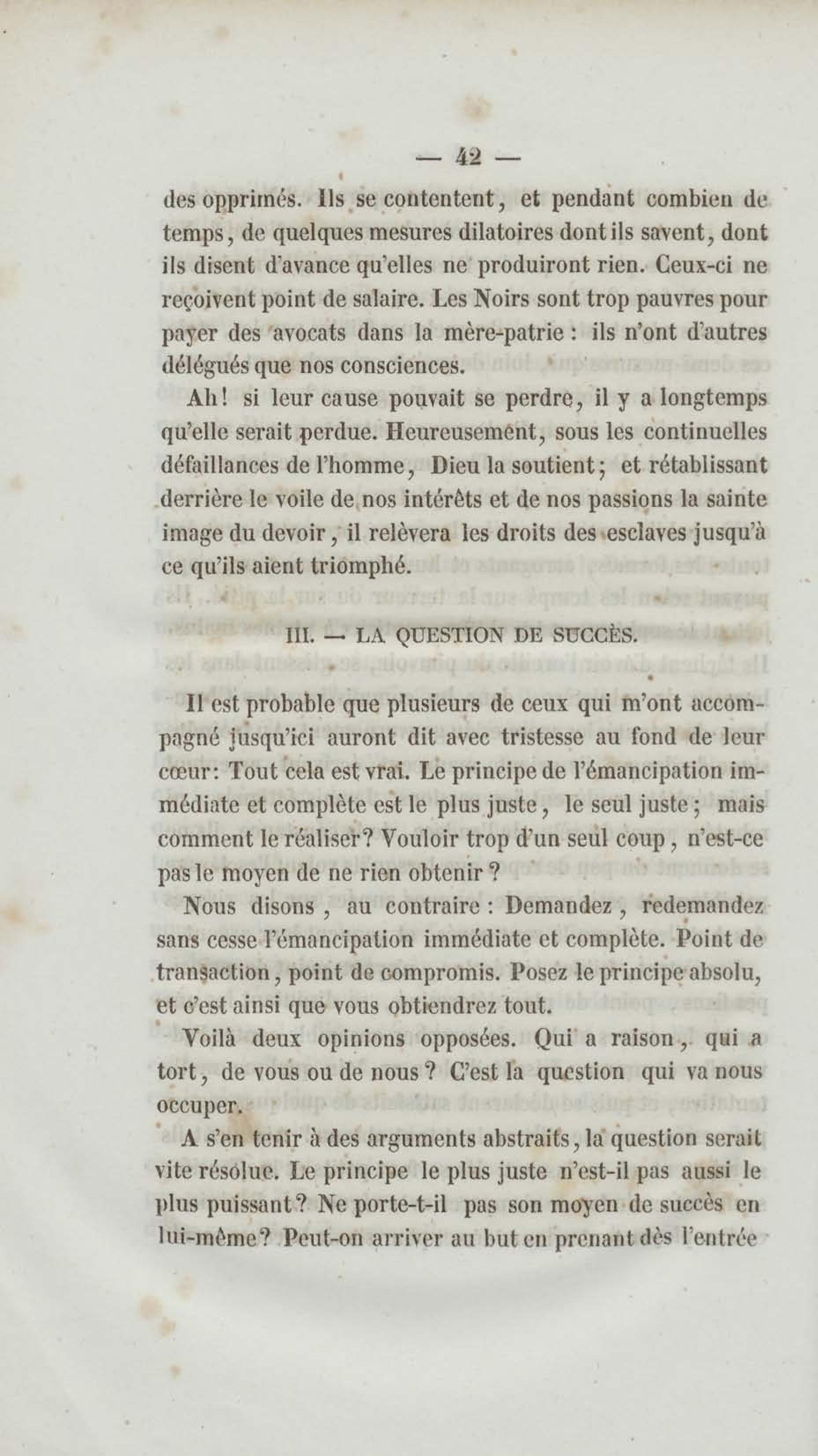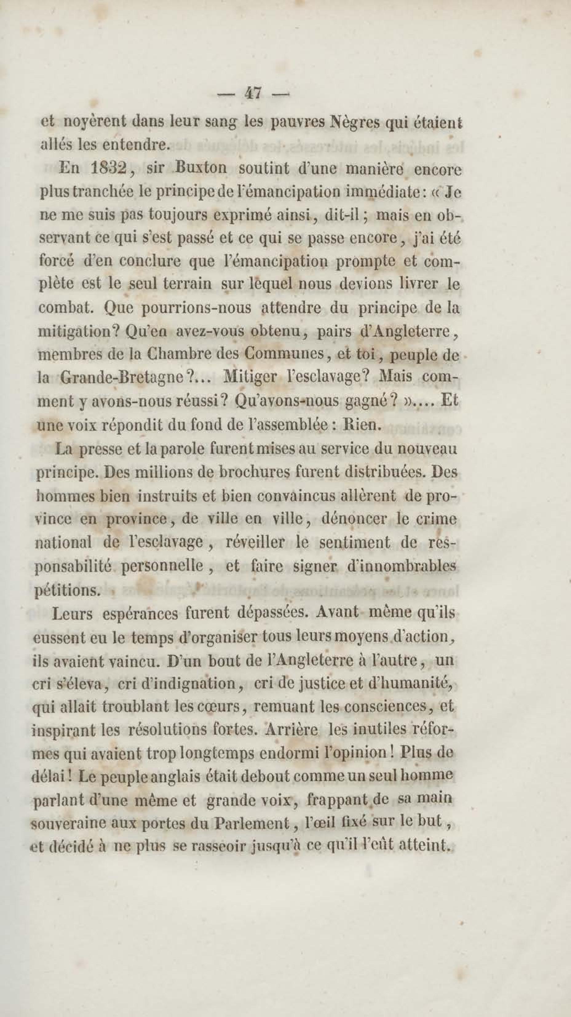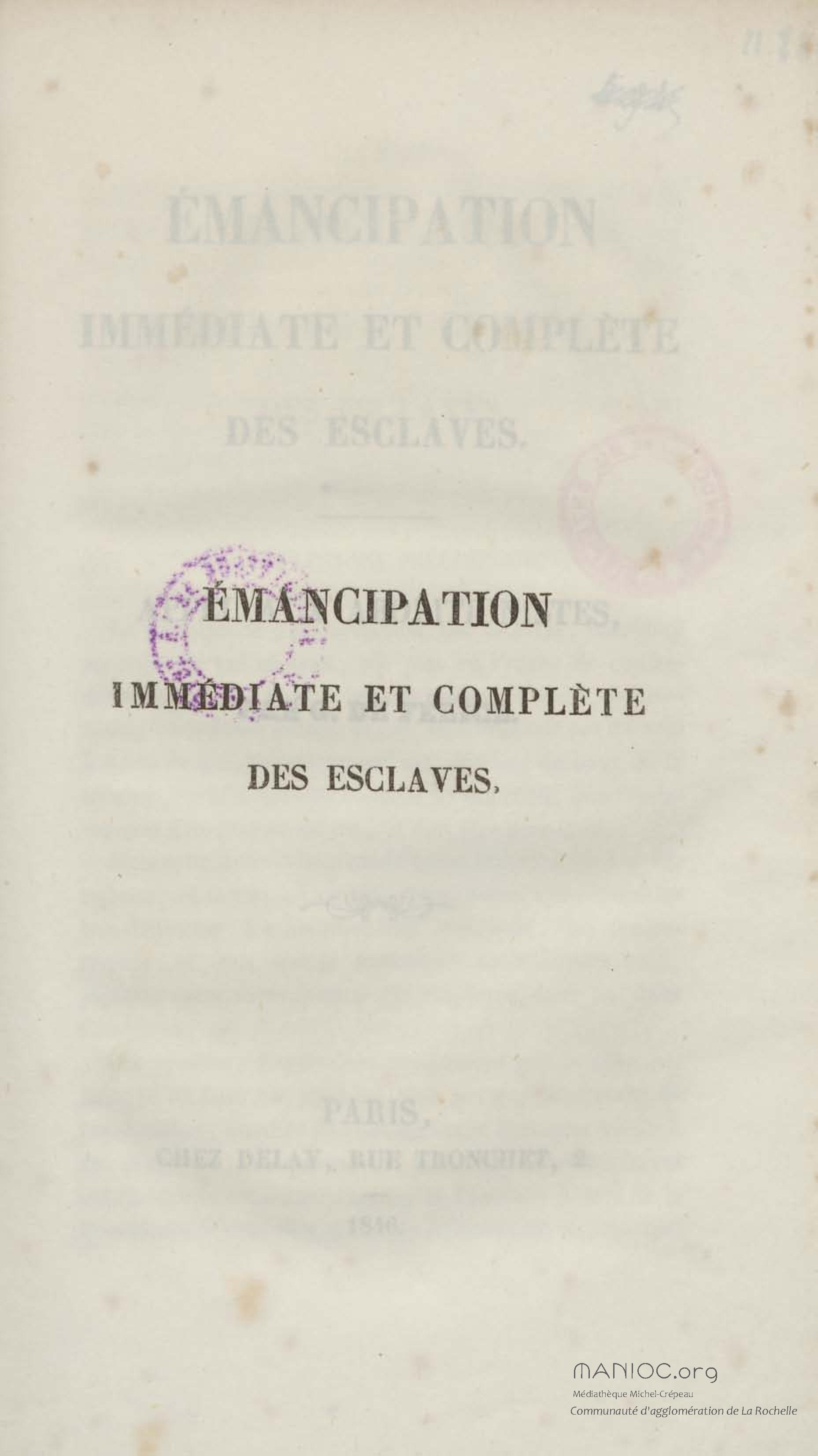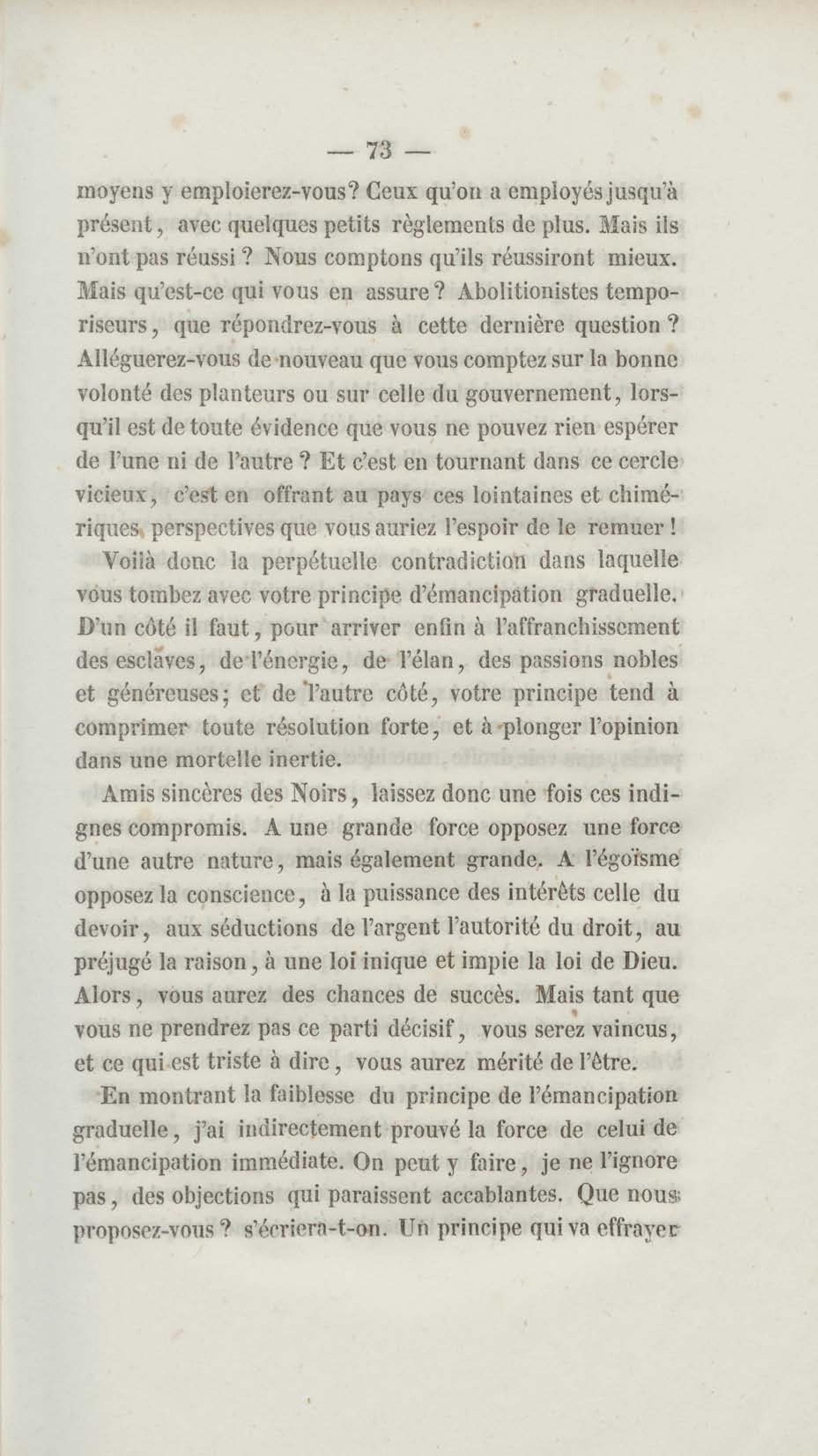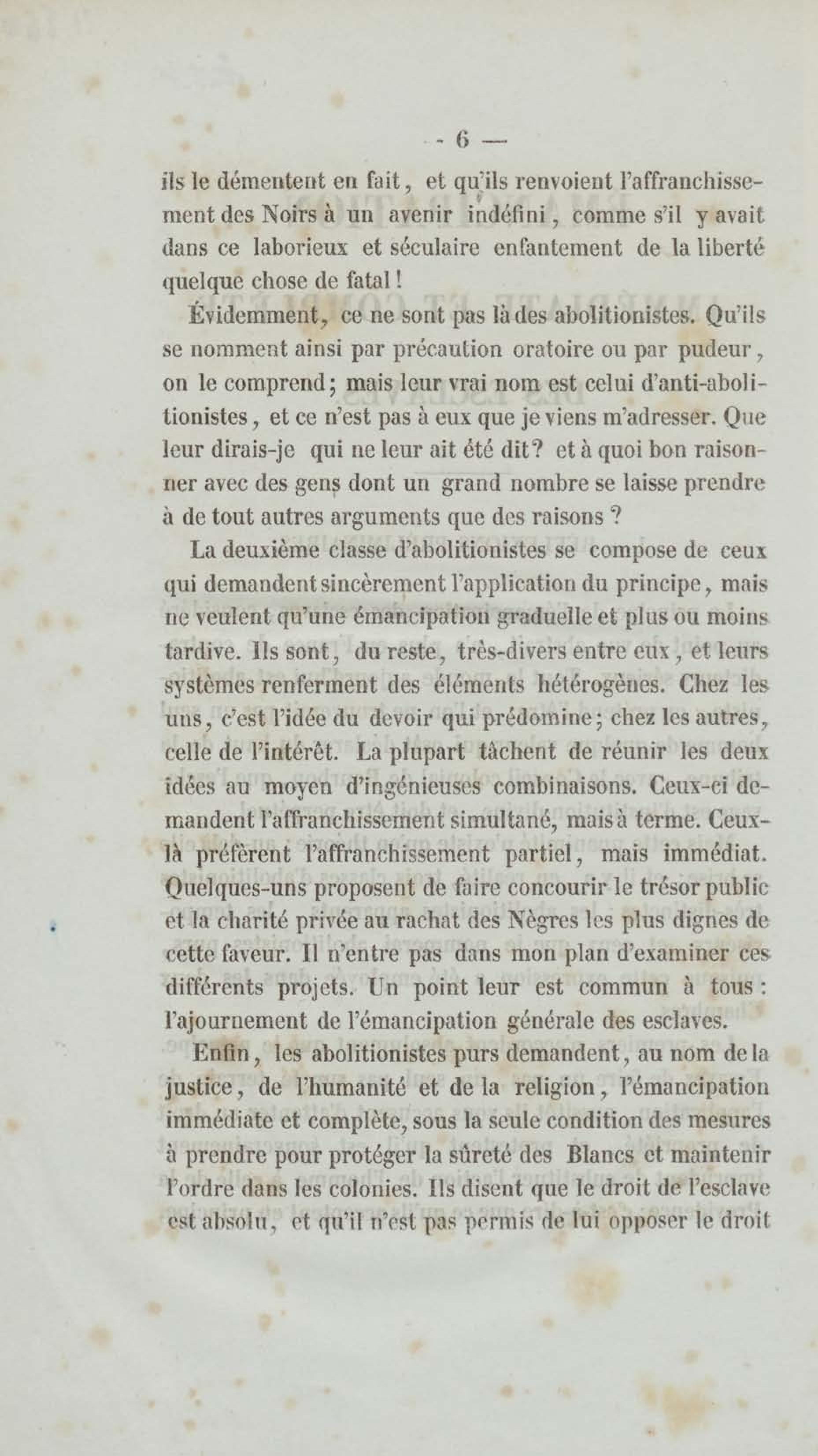 - Émancipation immédiate et complète des esclaves : appel aux abolitionnistes