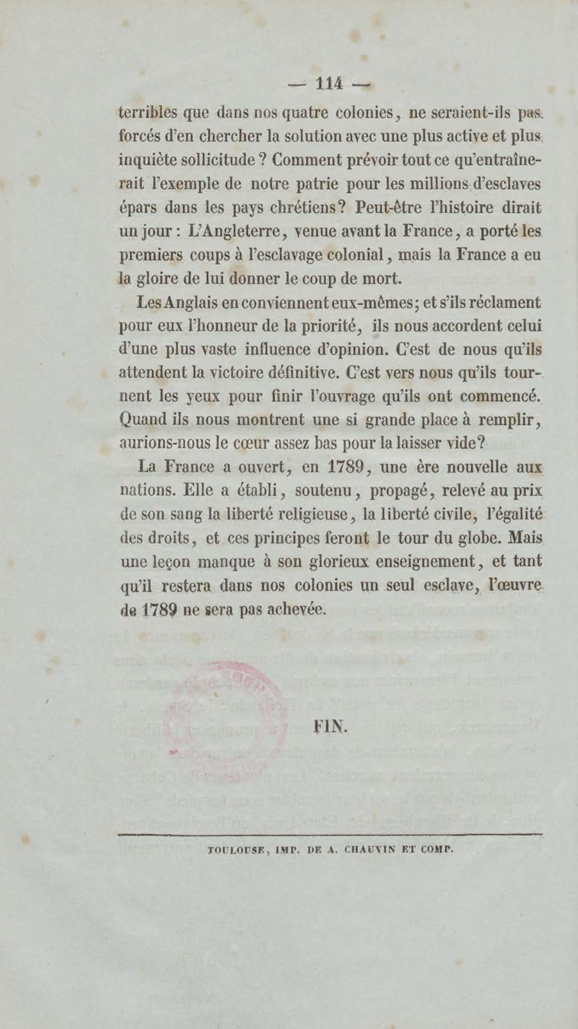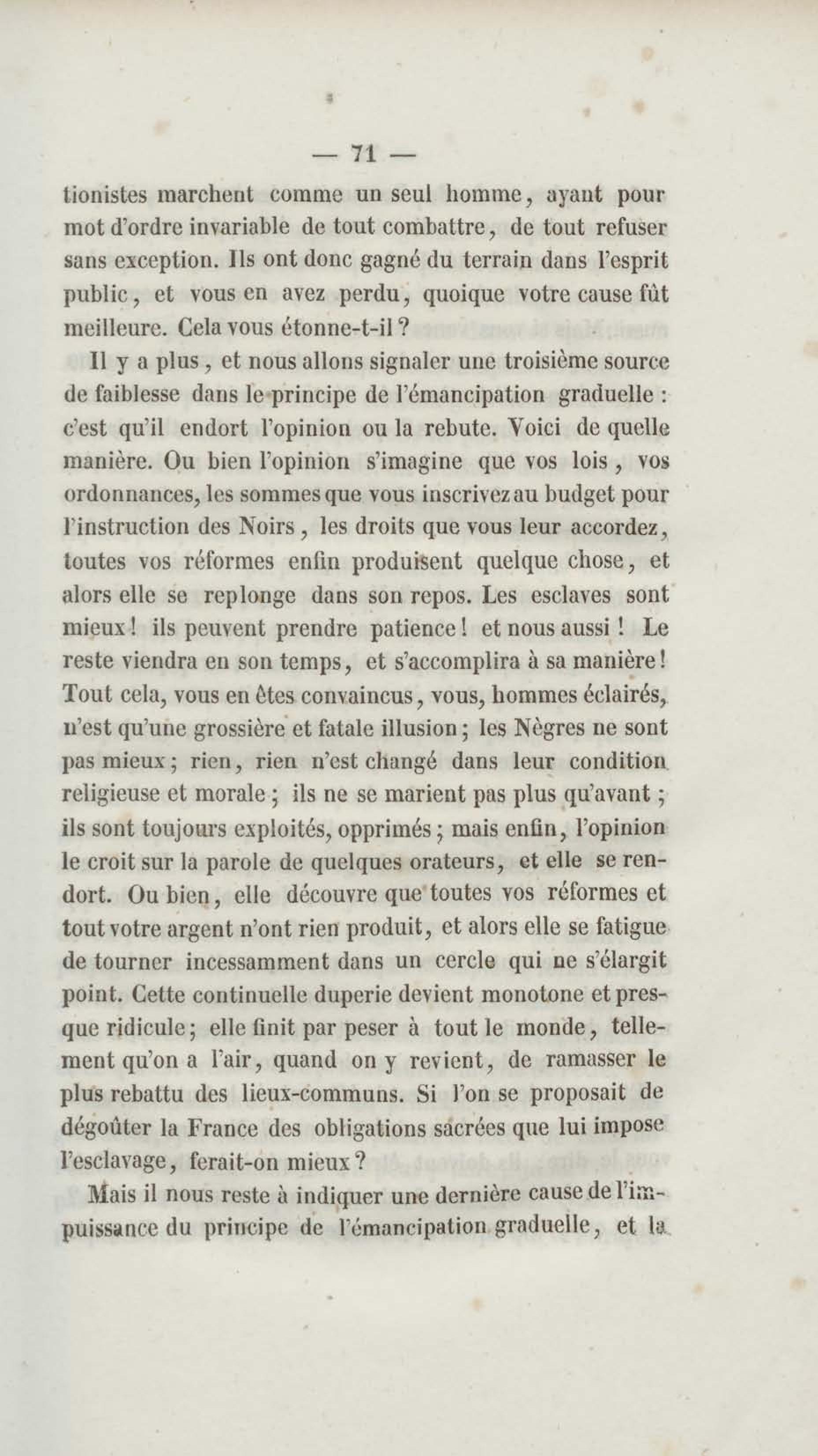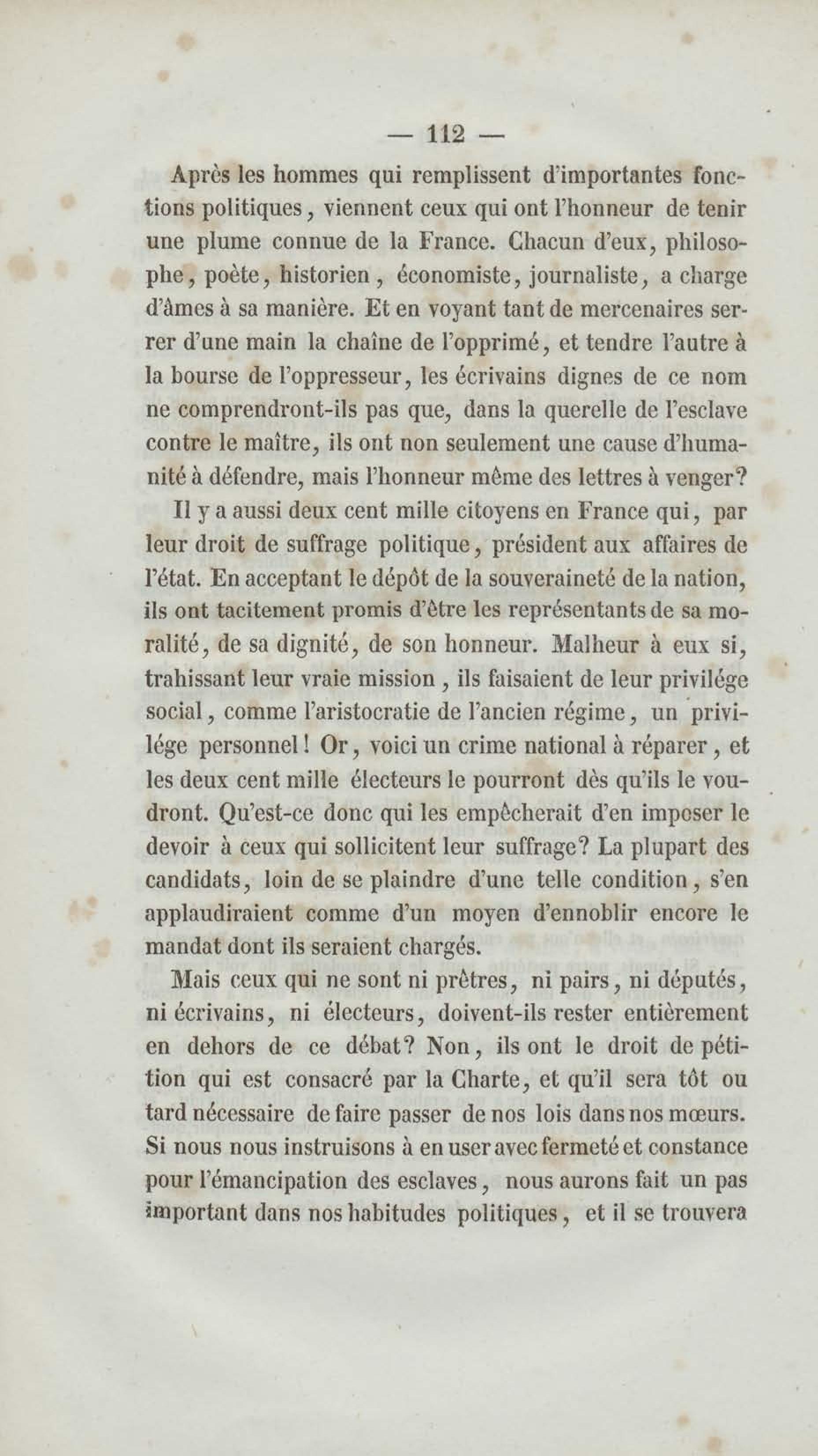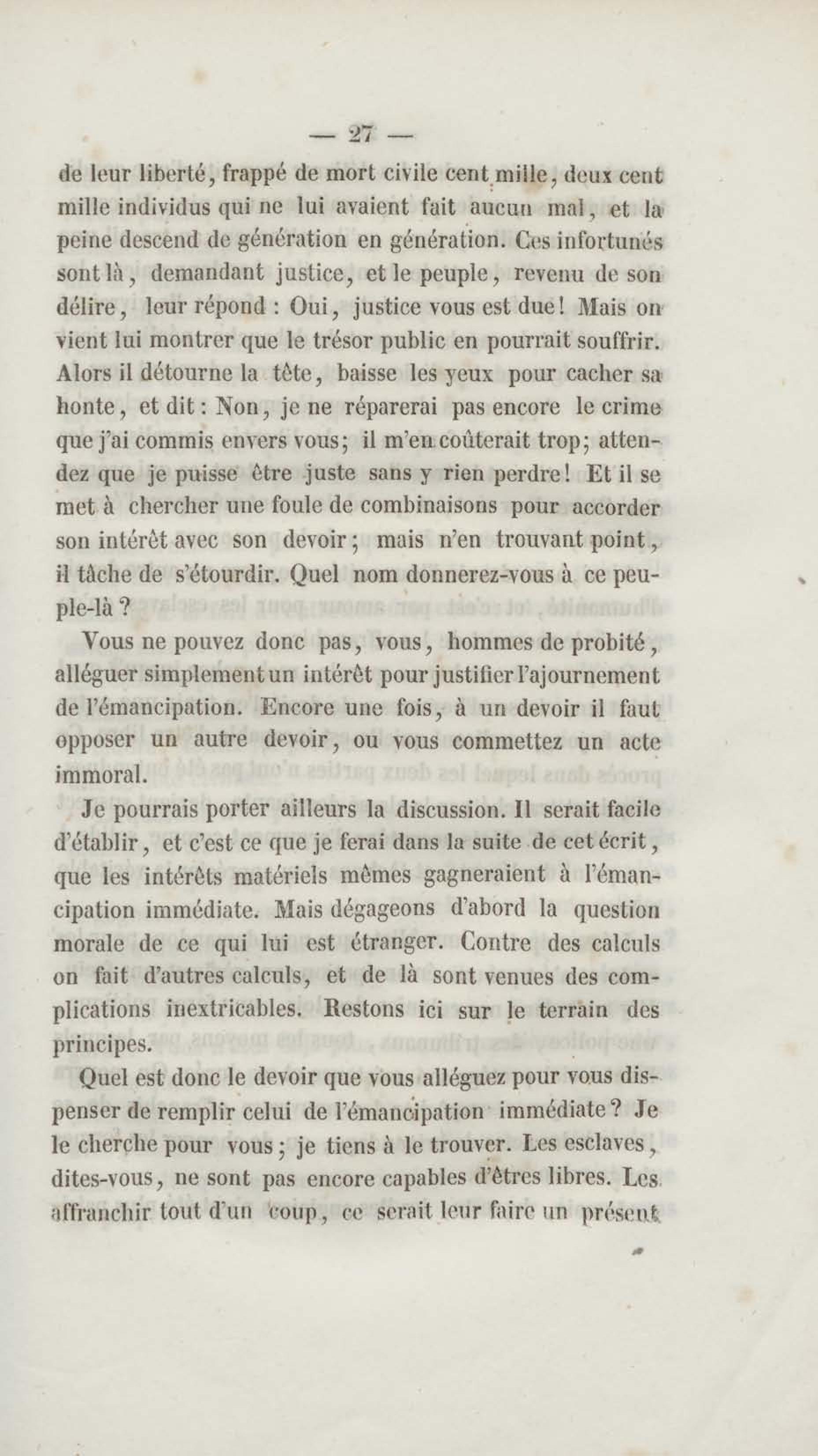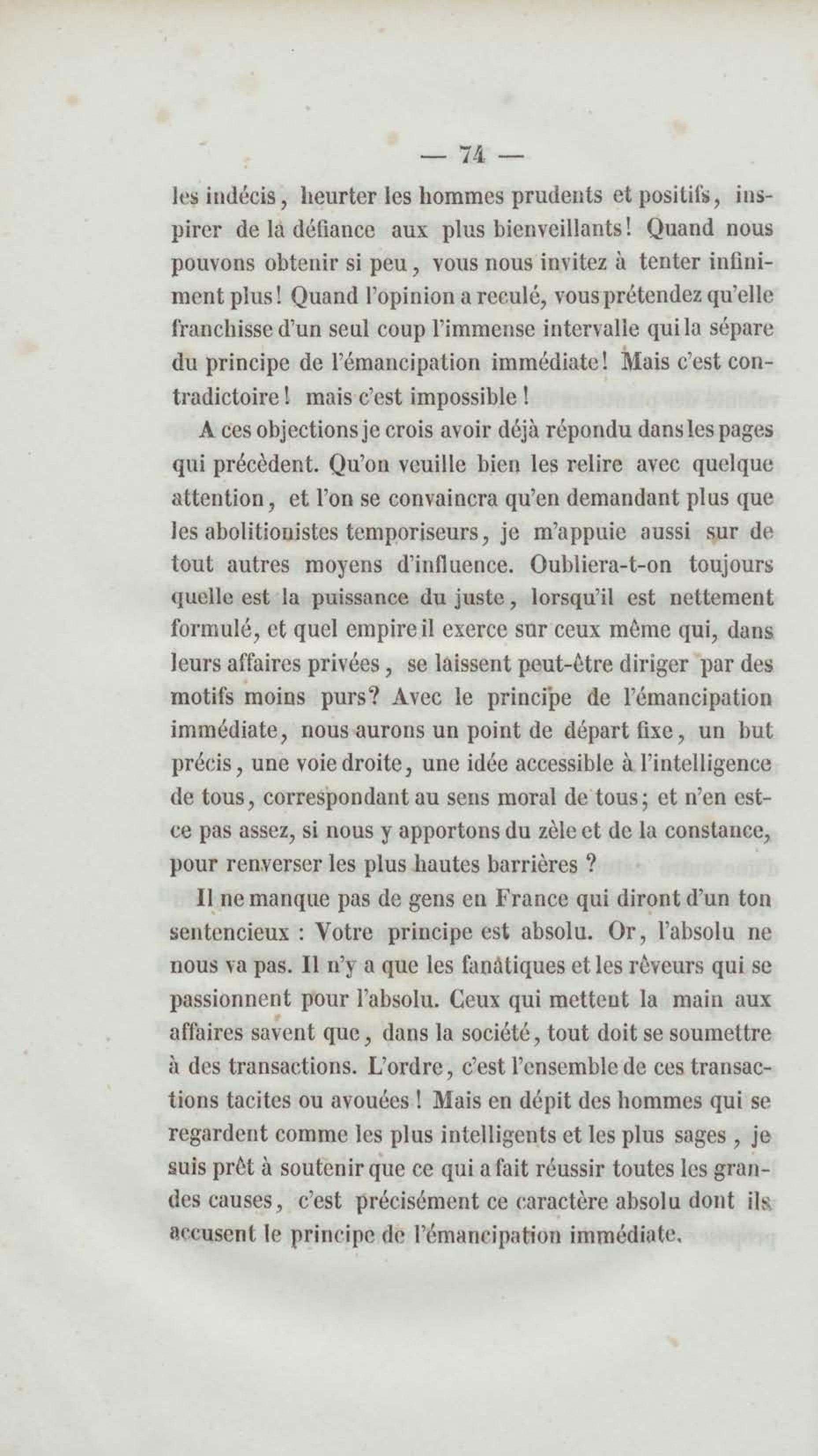 - Émancipation immédiate et complète des esclaves : appel aux abolitionnistes