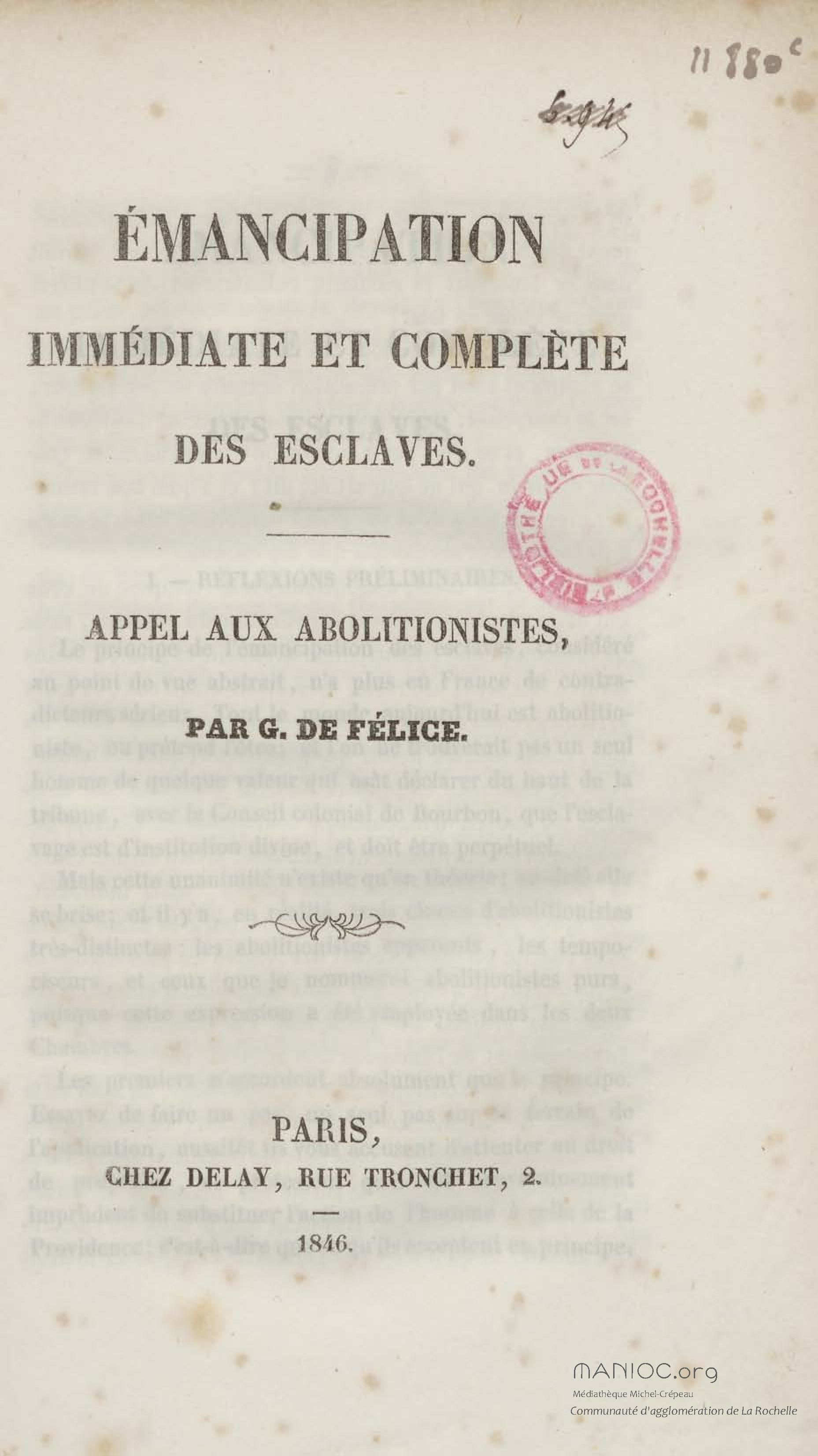 Émancipation immédiate et complète des esclaves : appel aux abolitionnistes