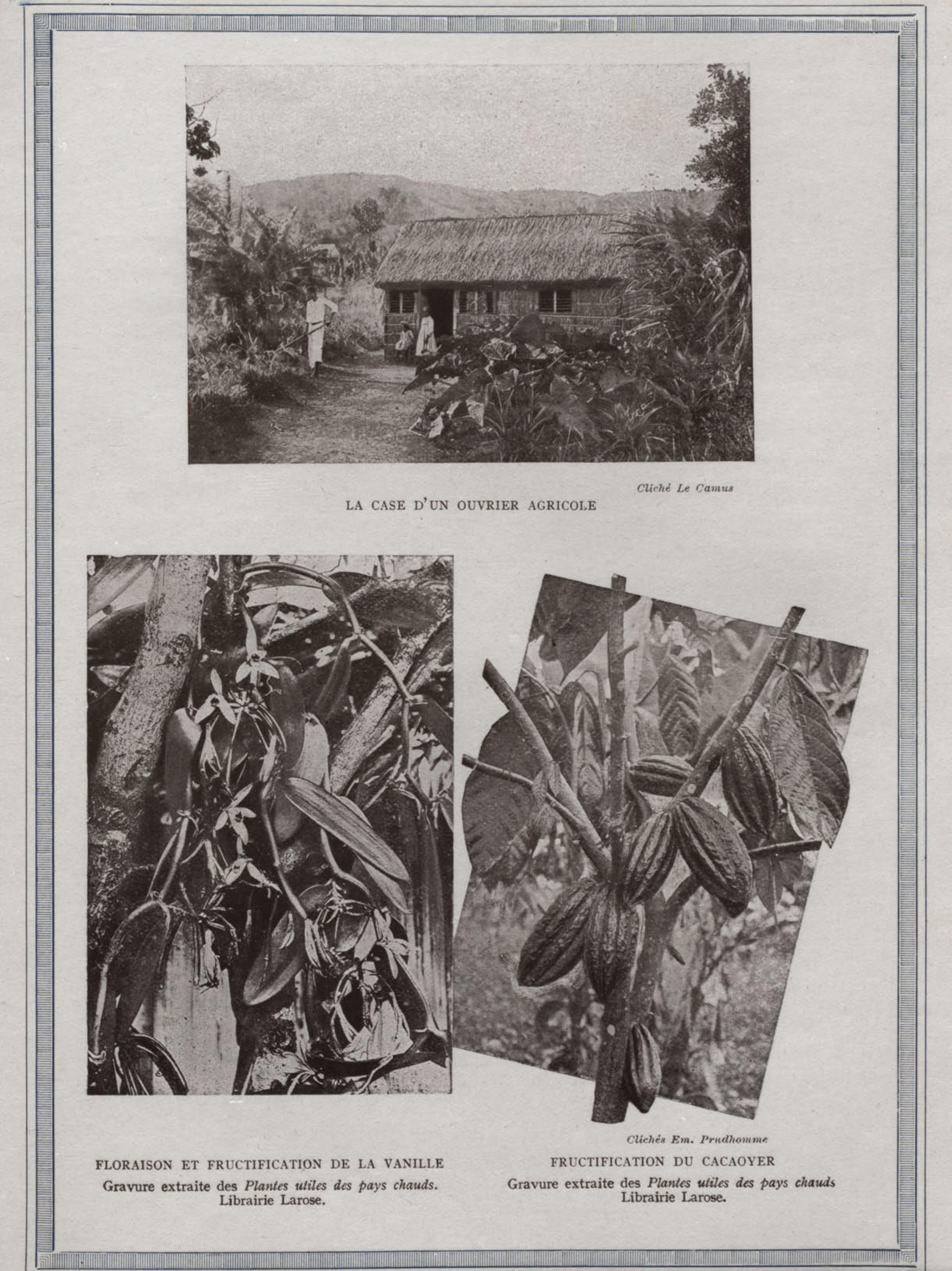 Fructification du cacaoyer . Gravure extraite des Plantes utiles des pays chauds, Librairie Larose Image fixe