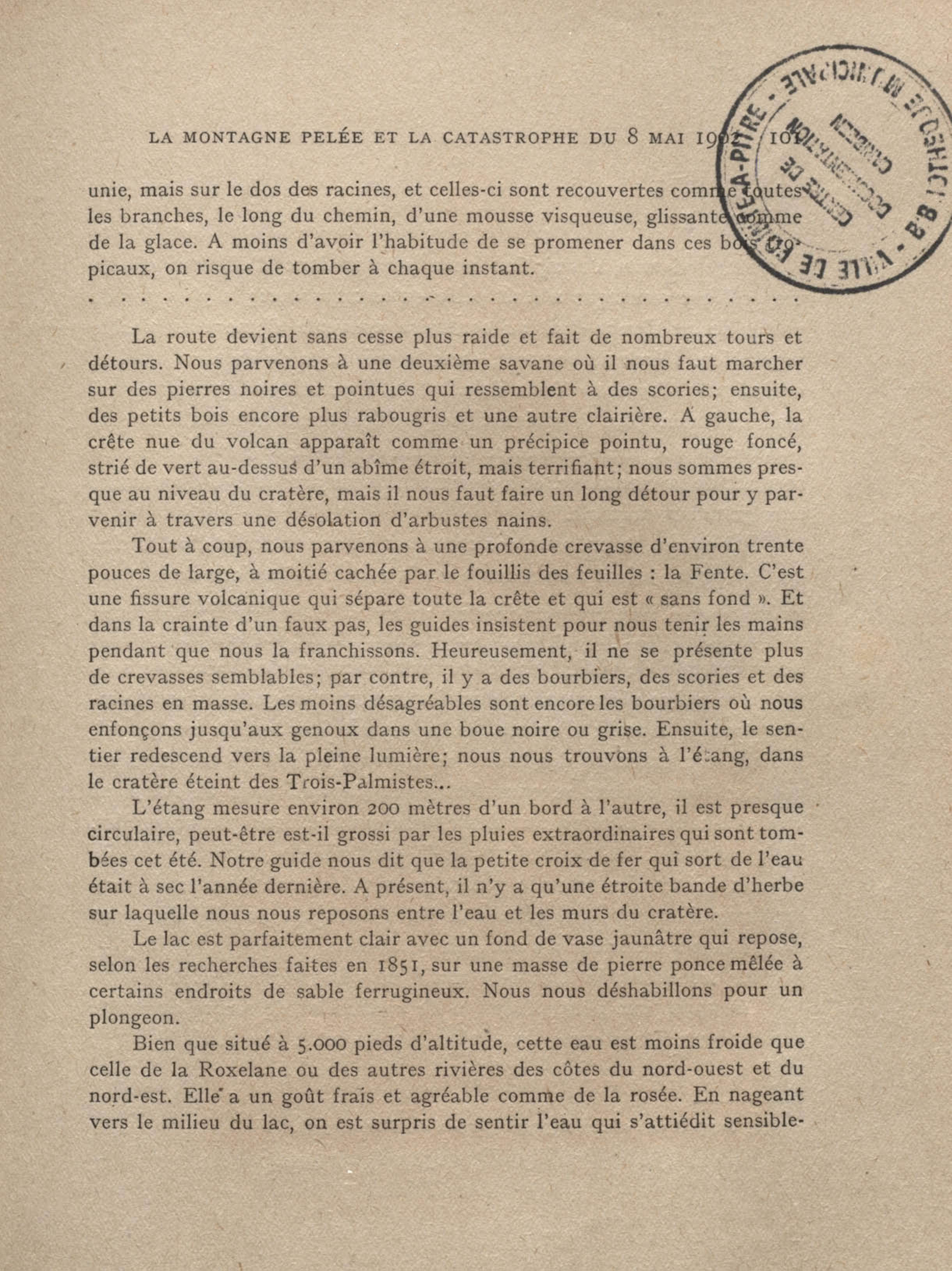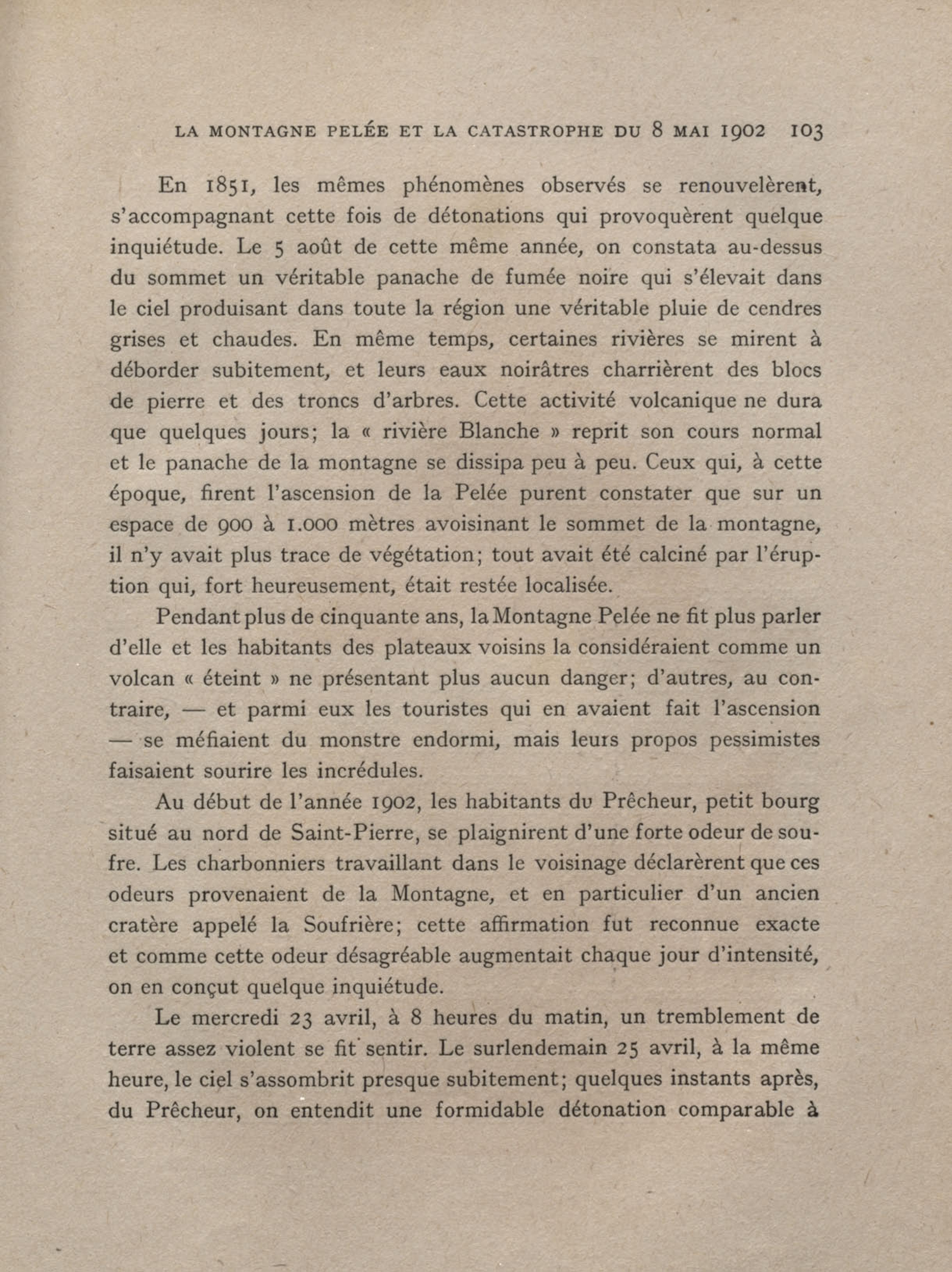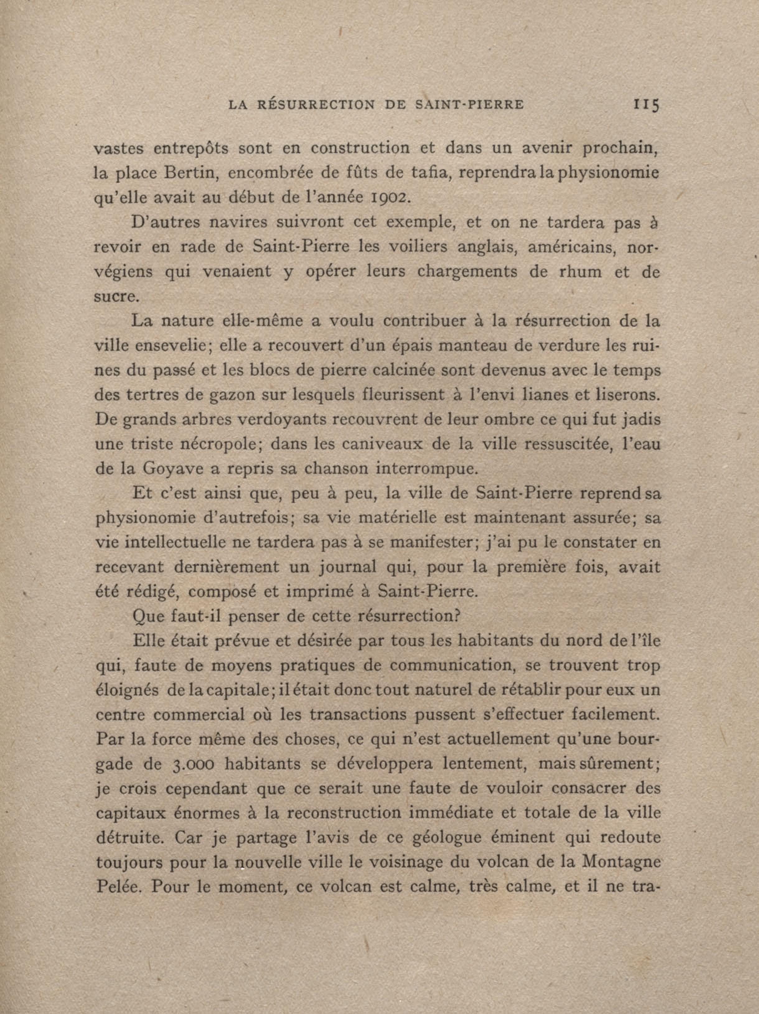 Après la nouvelle éruption de la Montagne Pelée, une couche de cendres brulantes, de 7 mètres de hauteur, a recouvert toute la vallée de la « Rivière sans nom »