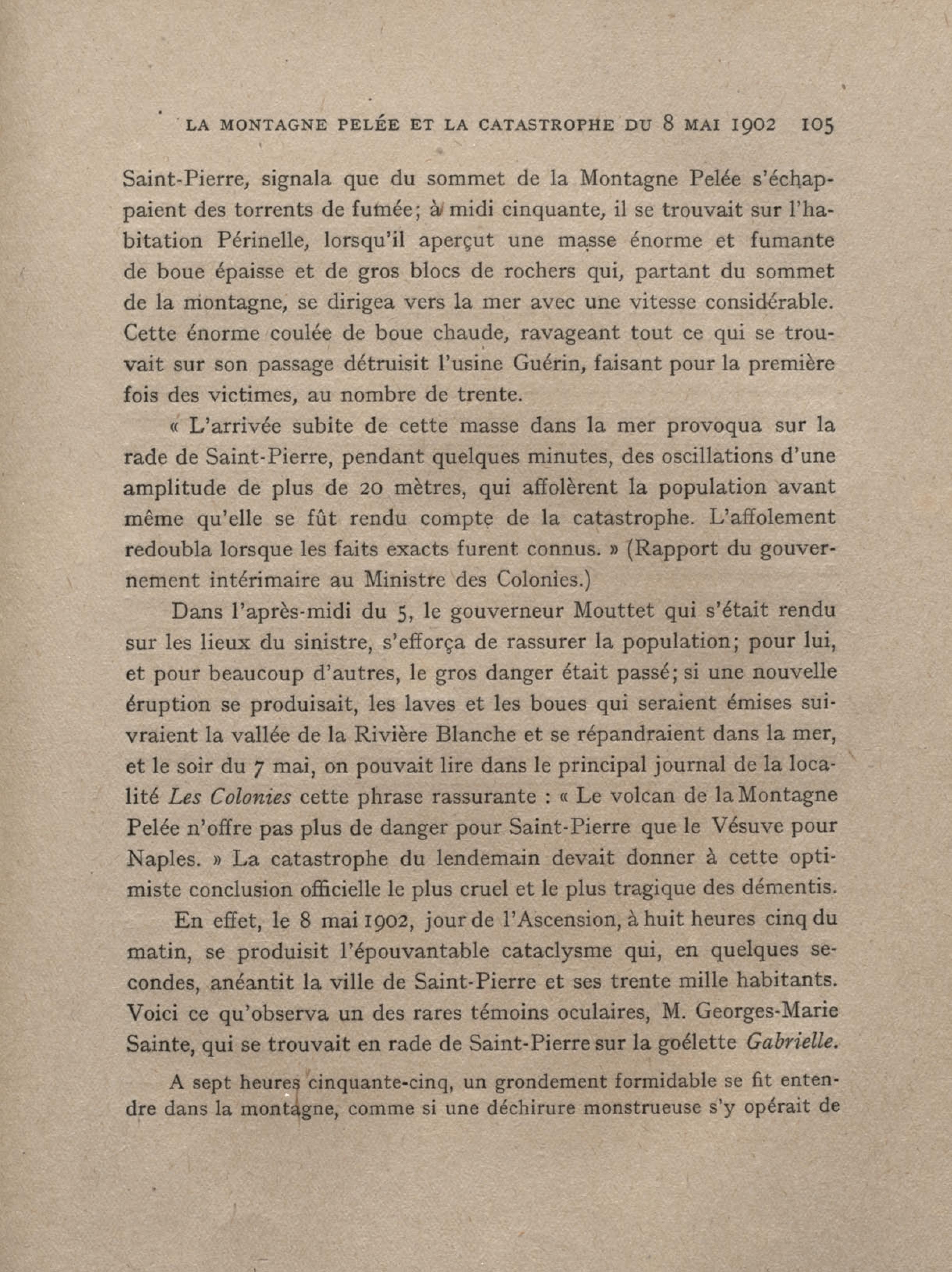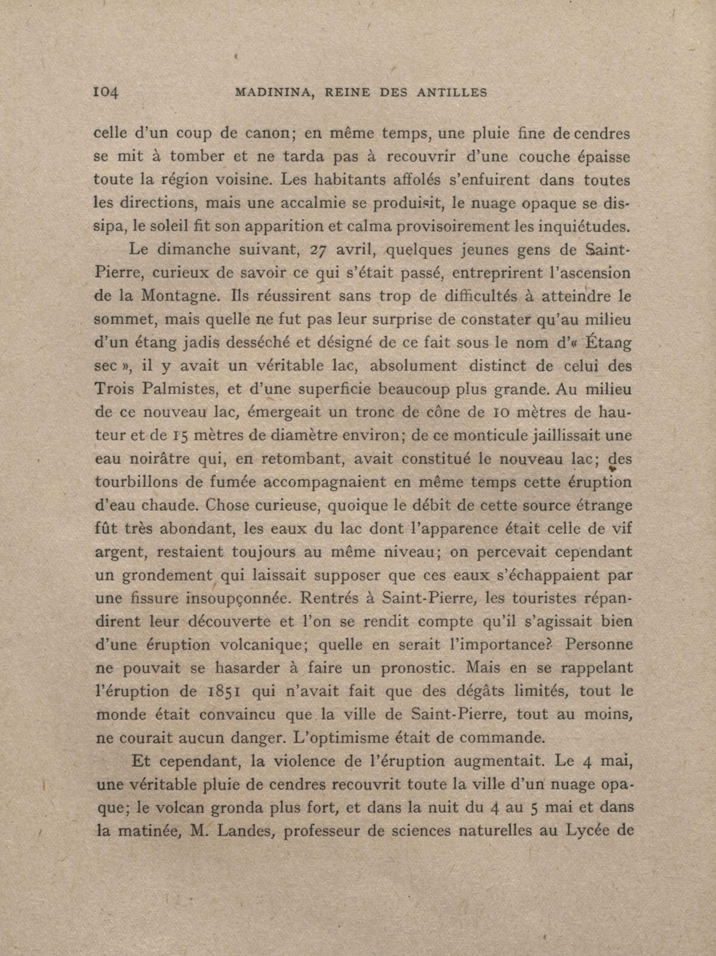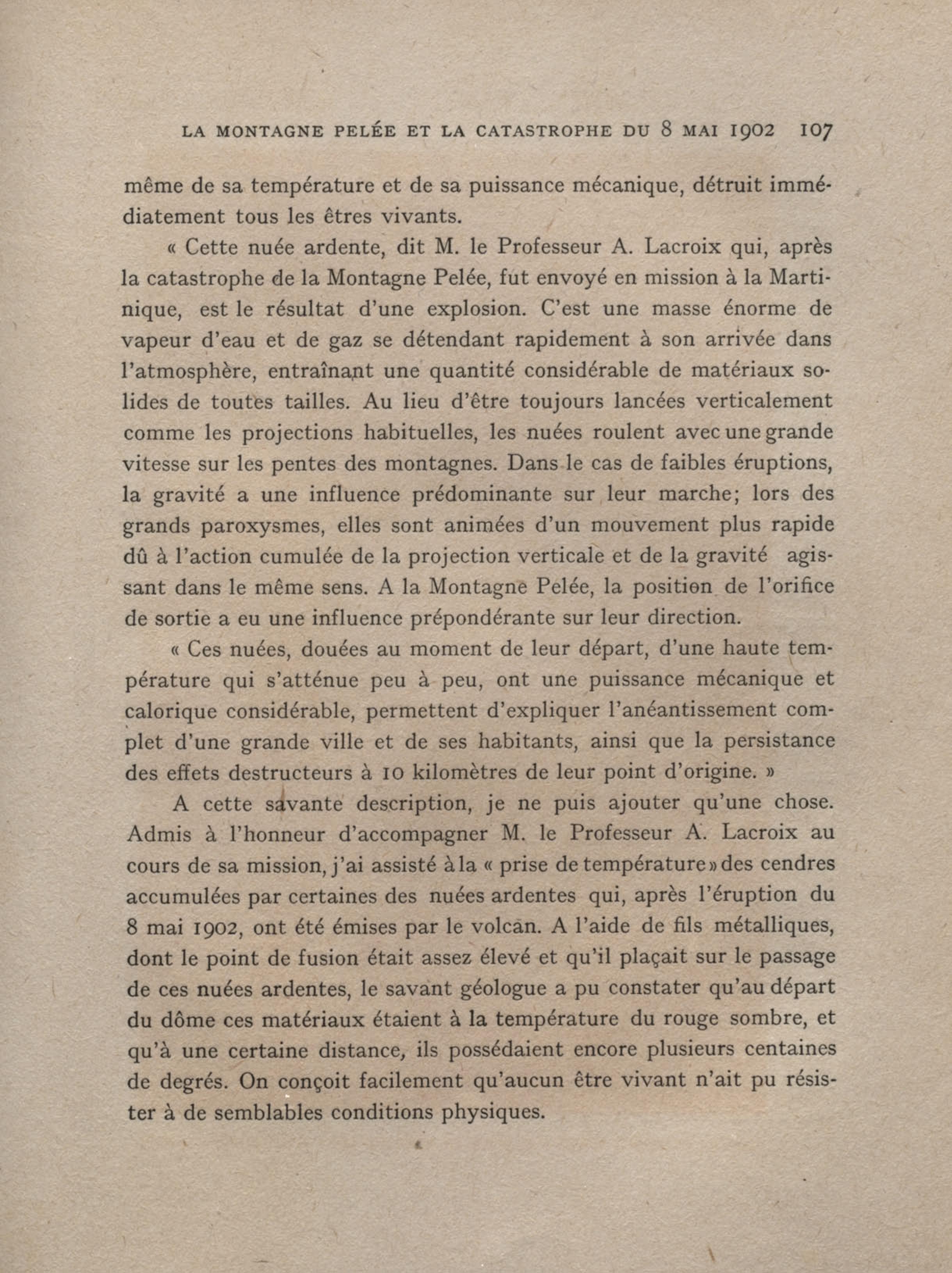 Après la nouvelle éruption de la Montagne Pelée, une couche de cendres brulantes, de 7 mètres de hauteur, a recouvert toute la vallée de la « Rivière sans nom »
