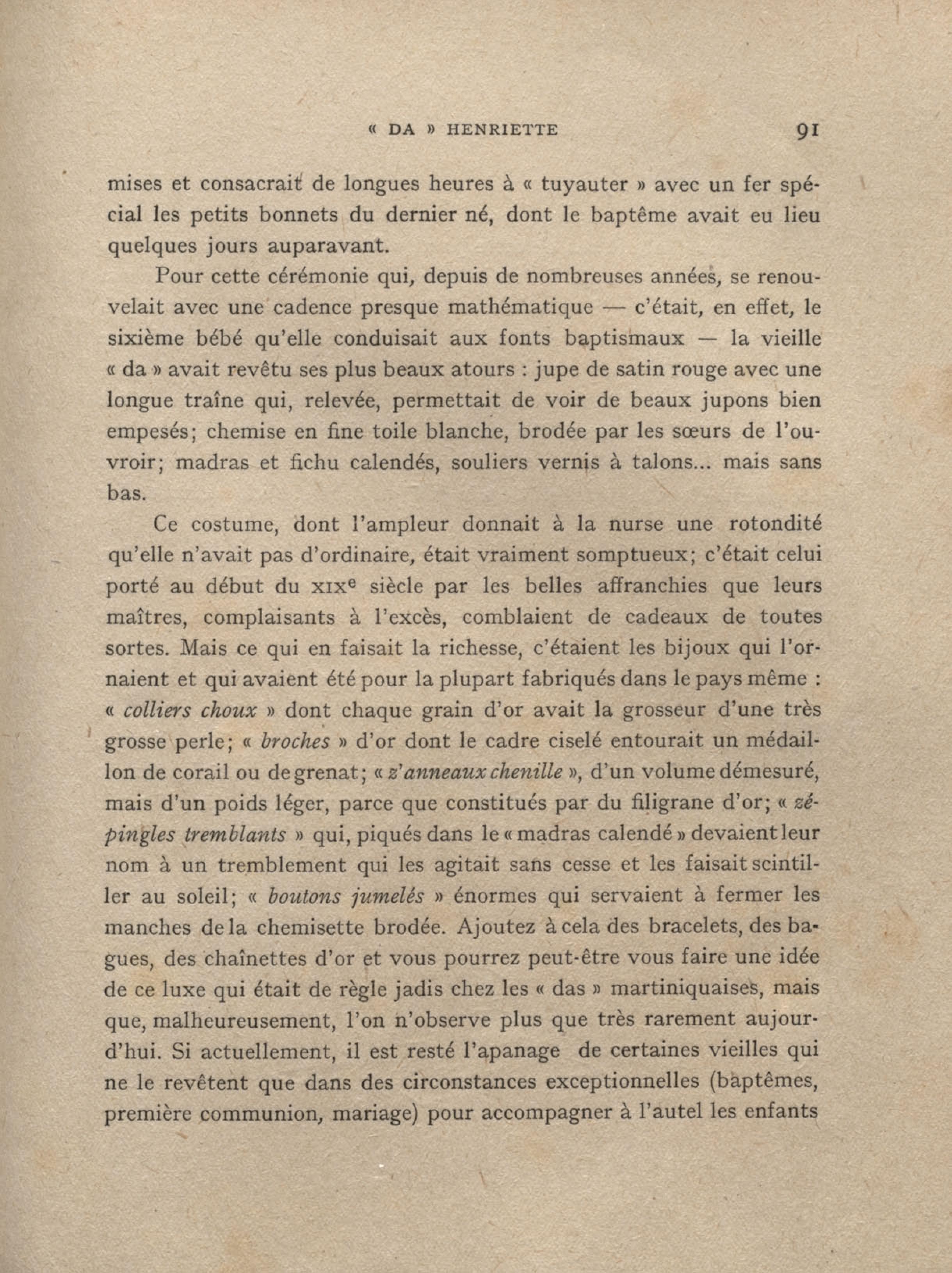 Costume et bijoux portés les jours de fête par les « Das » martiniquaises