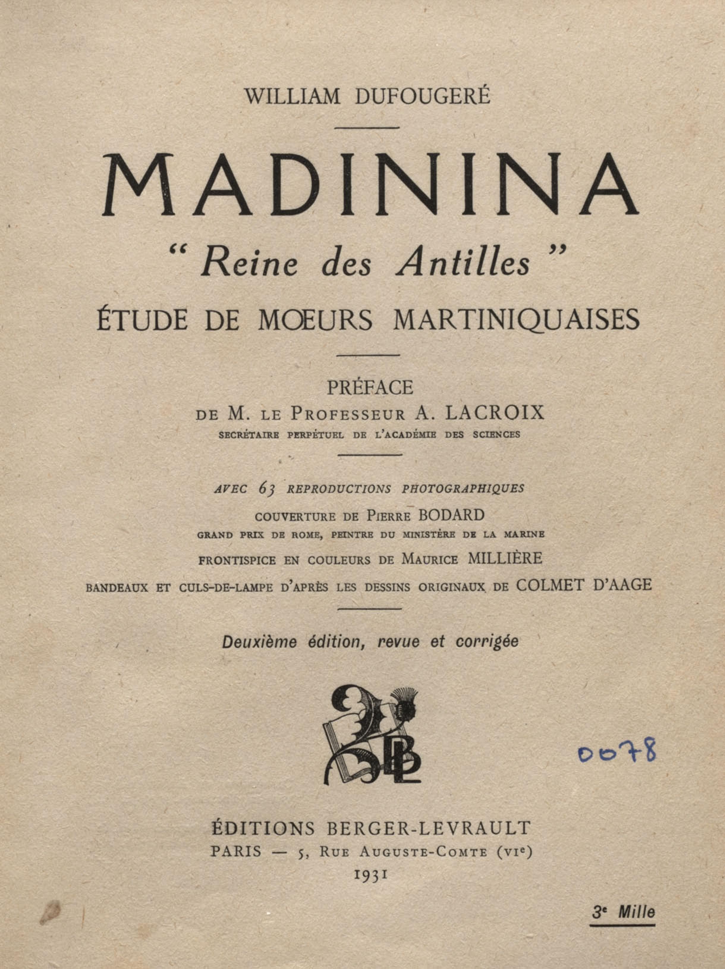 Madinina "Reine des Antilles" : étude de moeurs martiniquaises : avec 63 reproductions photographiques