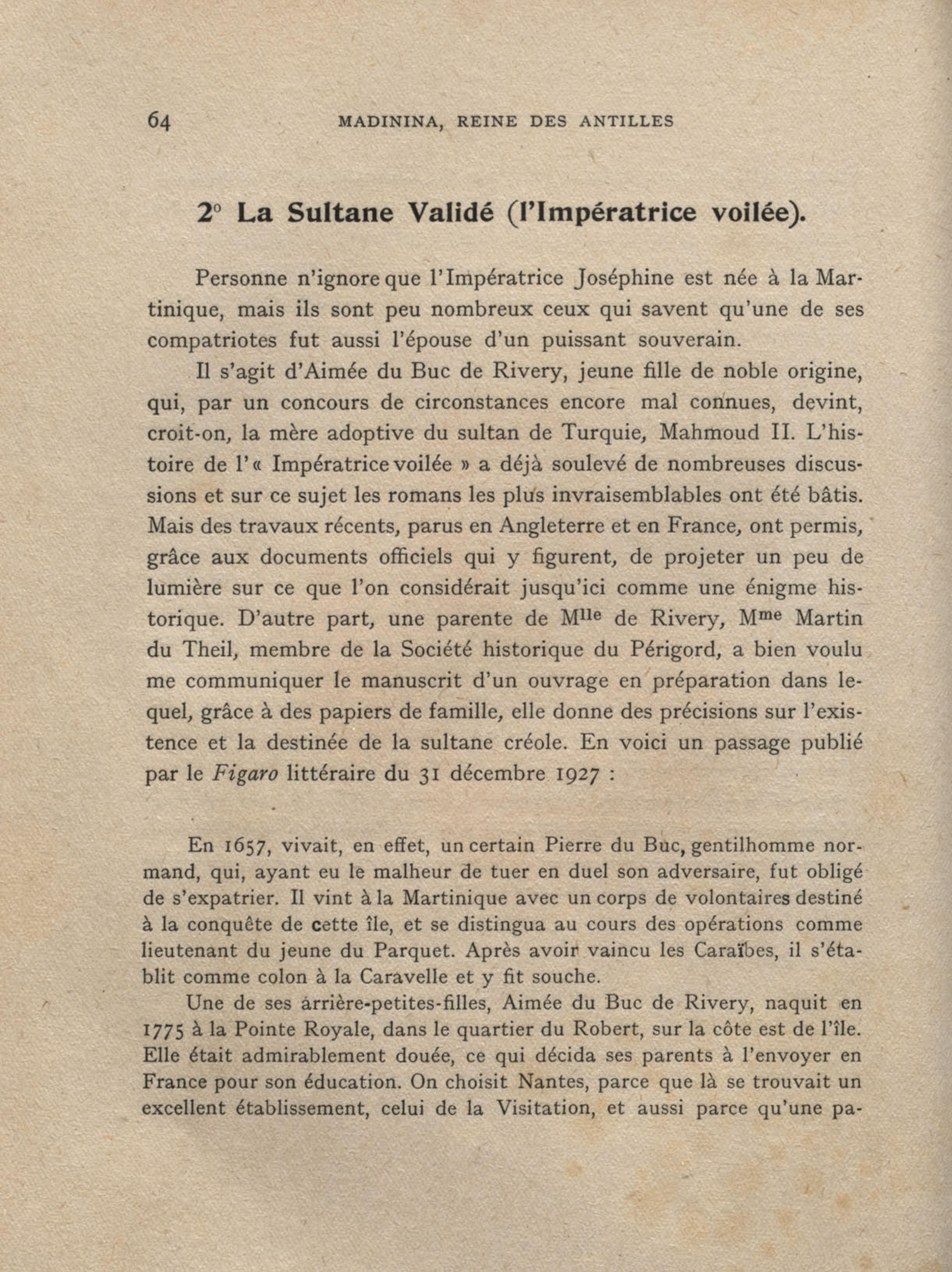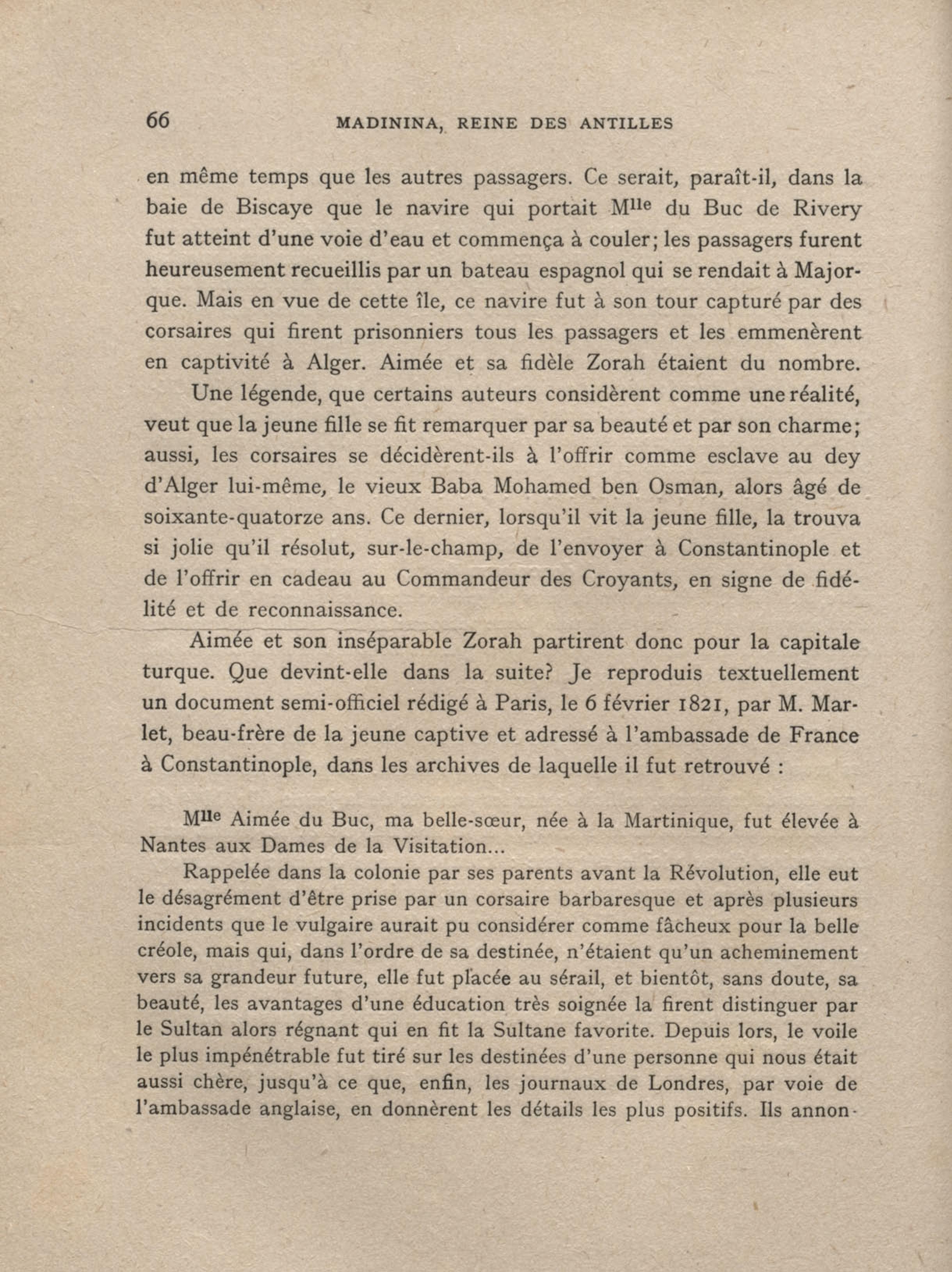 L' Impératrice créole, la Sultane validé, née Aimée Du Buc de Rivery. Extrait de l'ouvrage de Benjamin A. Morton, The veilid Empress