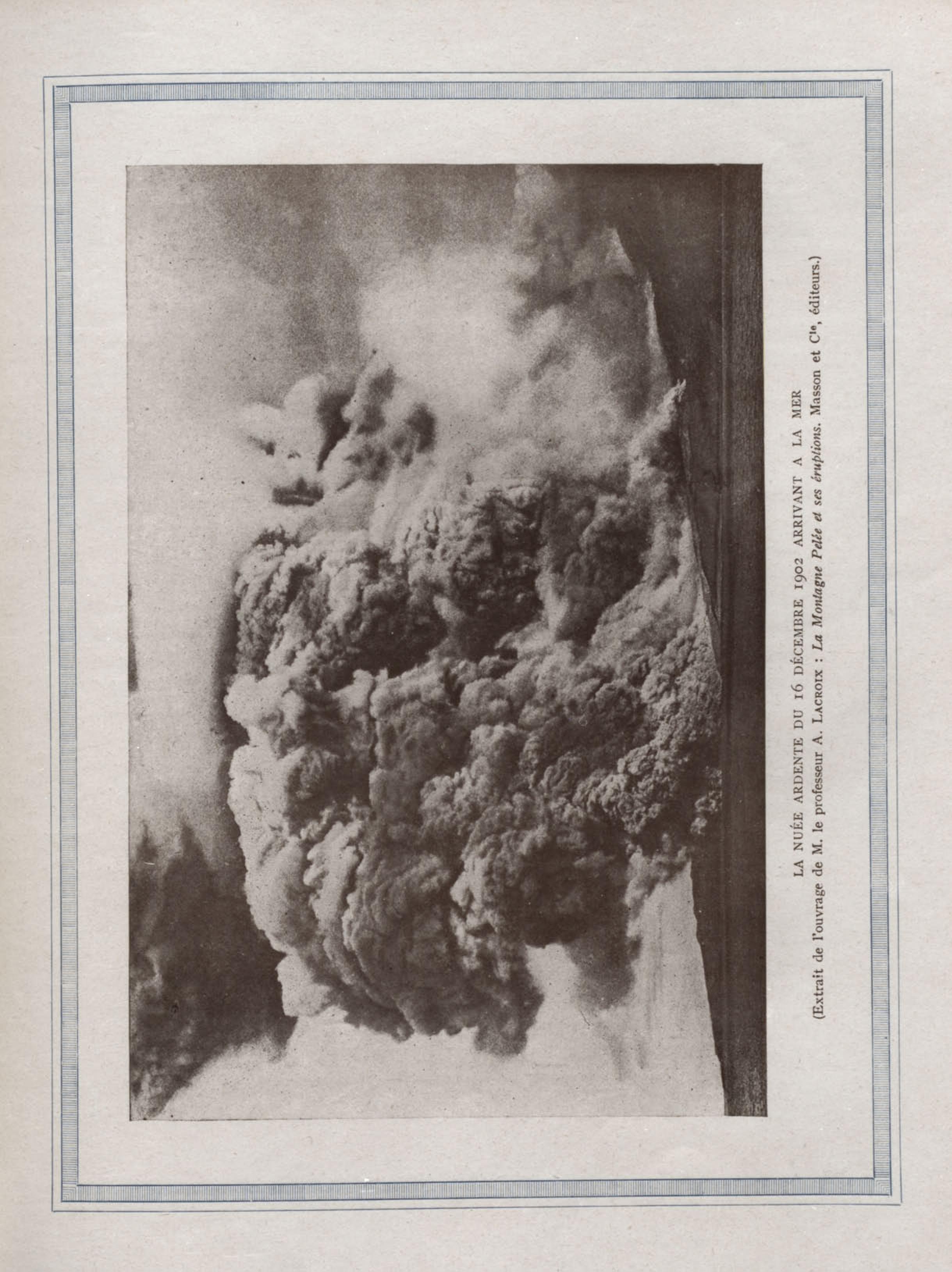 La nuée ardente du 16 décembre 1902 arrivant à la mer . ( Extrait de l'ouvrage de M. Lacroix : La Montagne Pelée et ses éruptions )