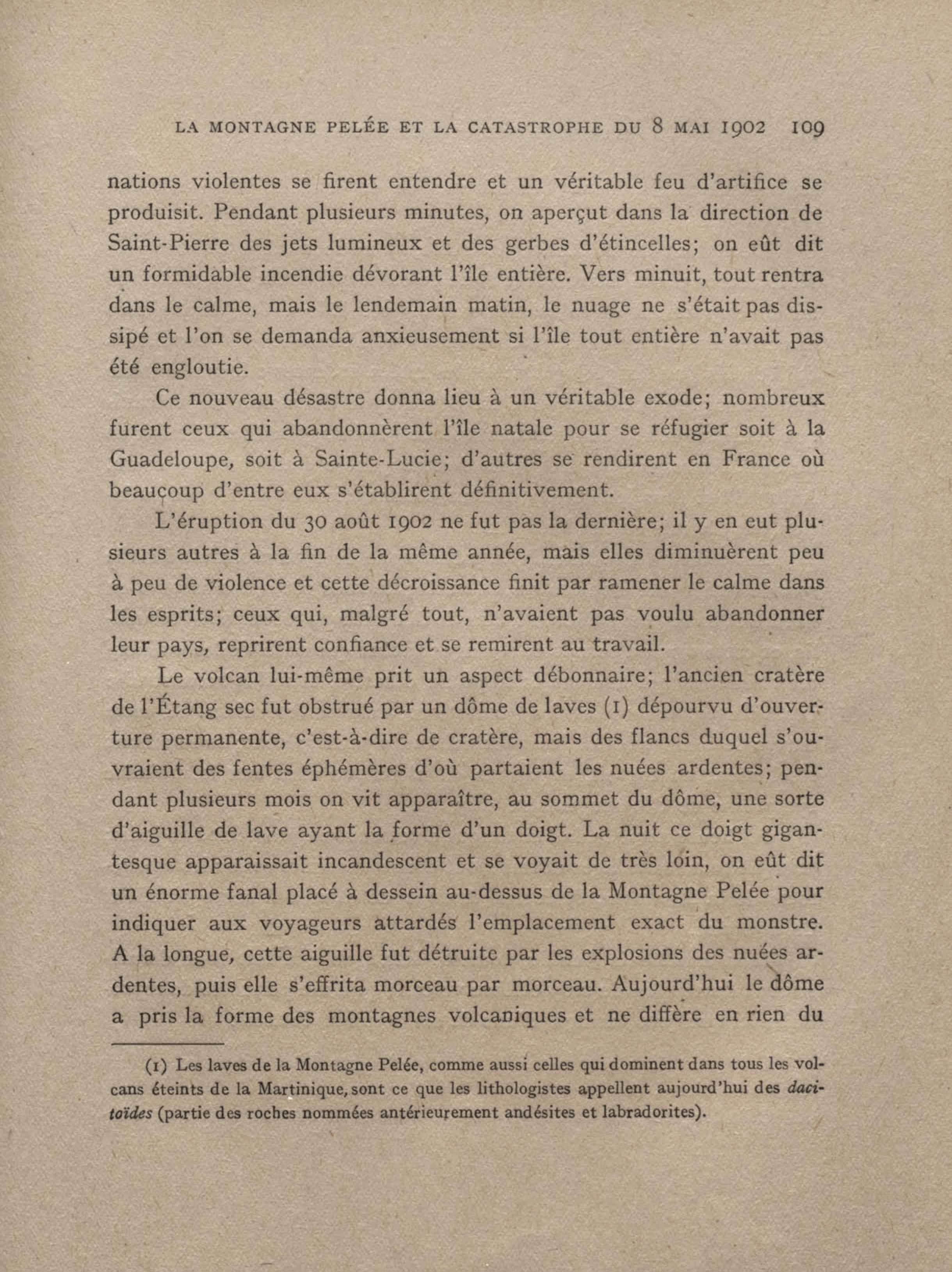 Aiguille terminale du dôme. Le 8 mars 1903 . Gravure extraite de l'ouvrage de M. Lacroix : La Montagne Pelée et ses éruptions