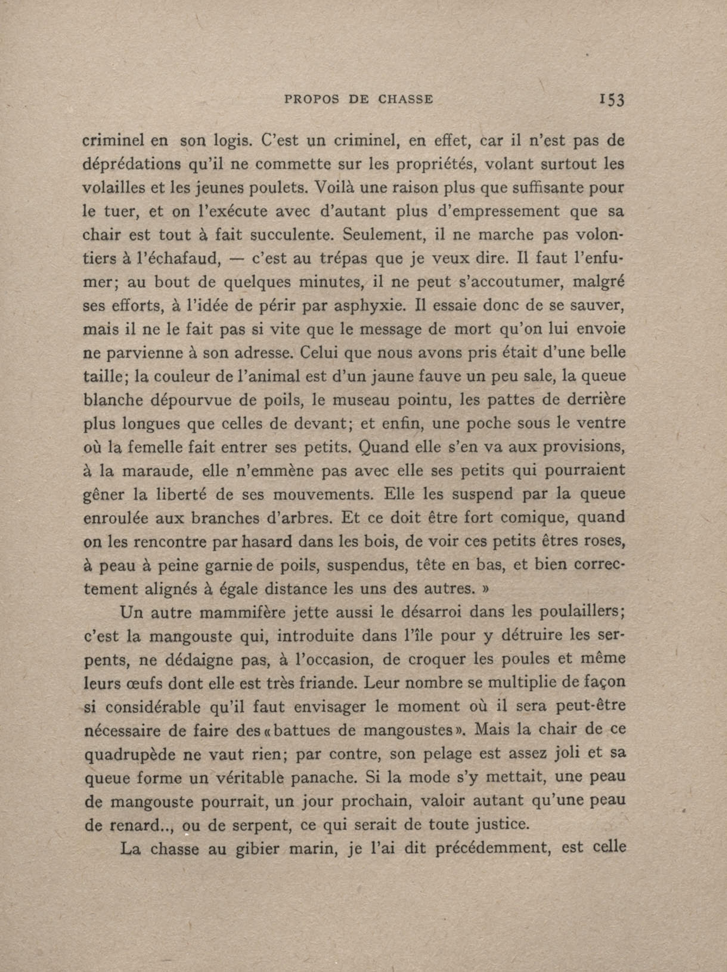 Le manicou, sorte de sarrigue, dont la chair est très appréciée