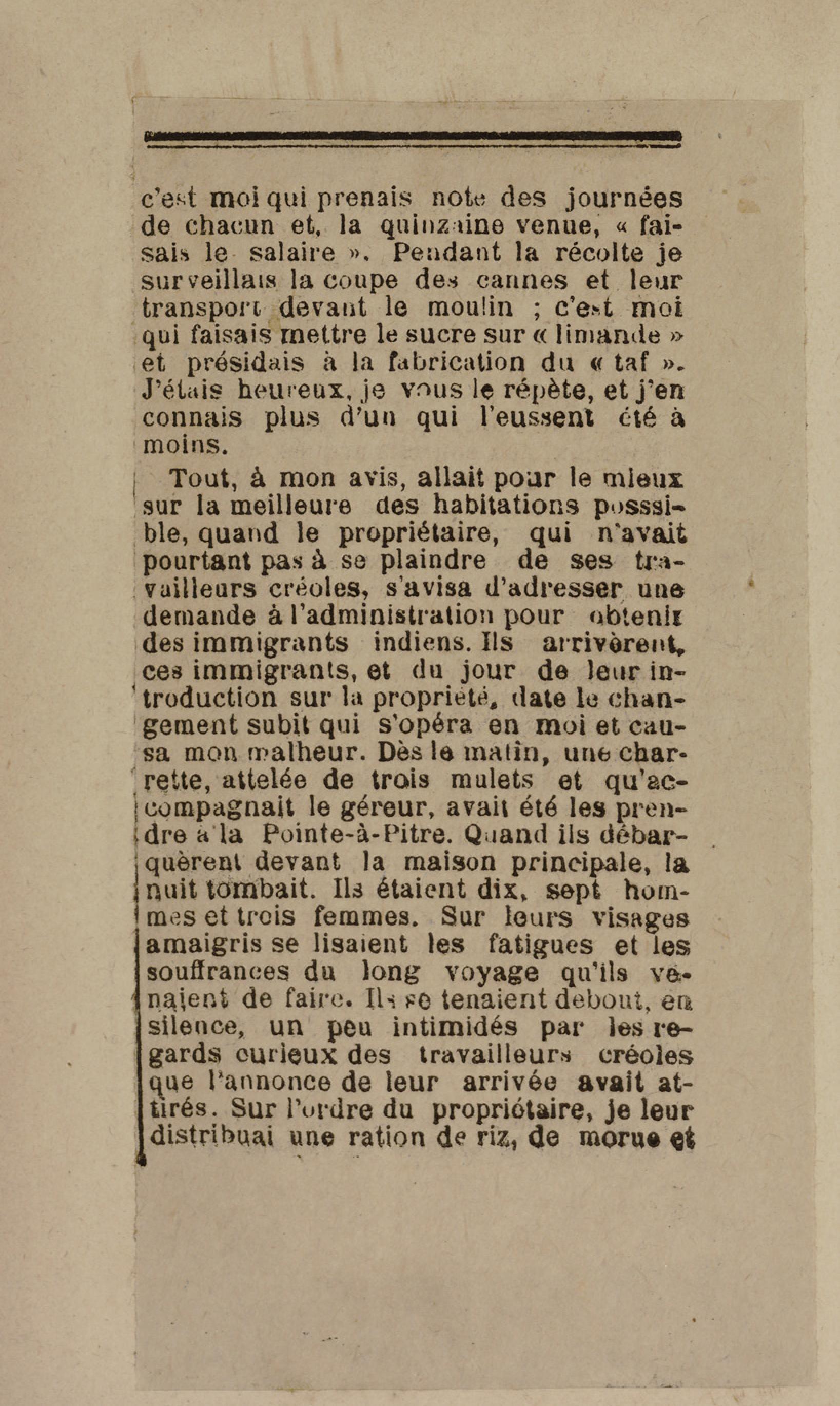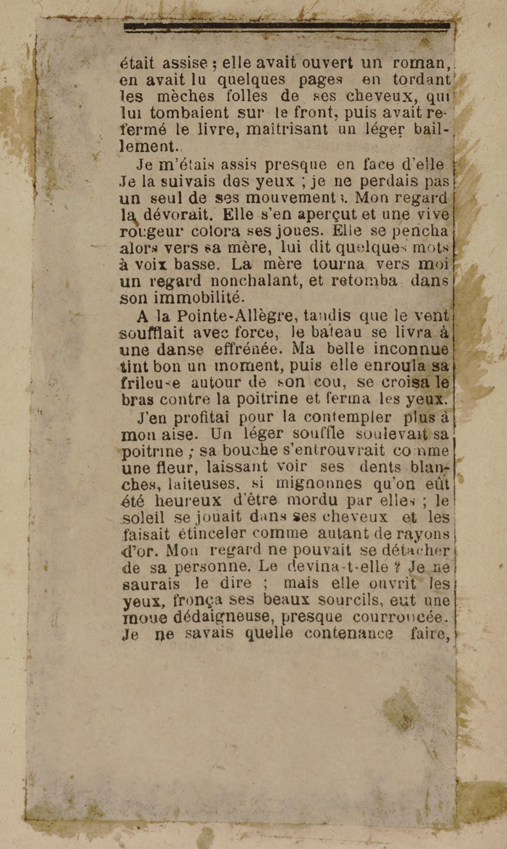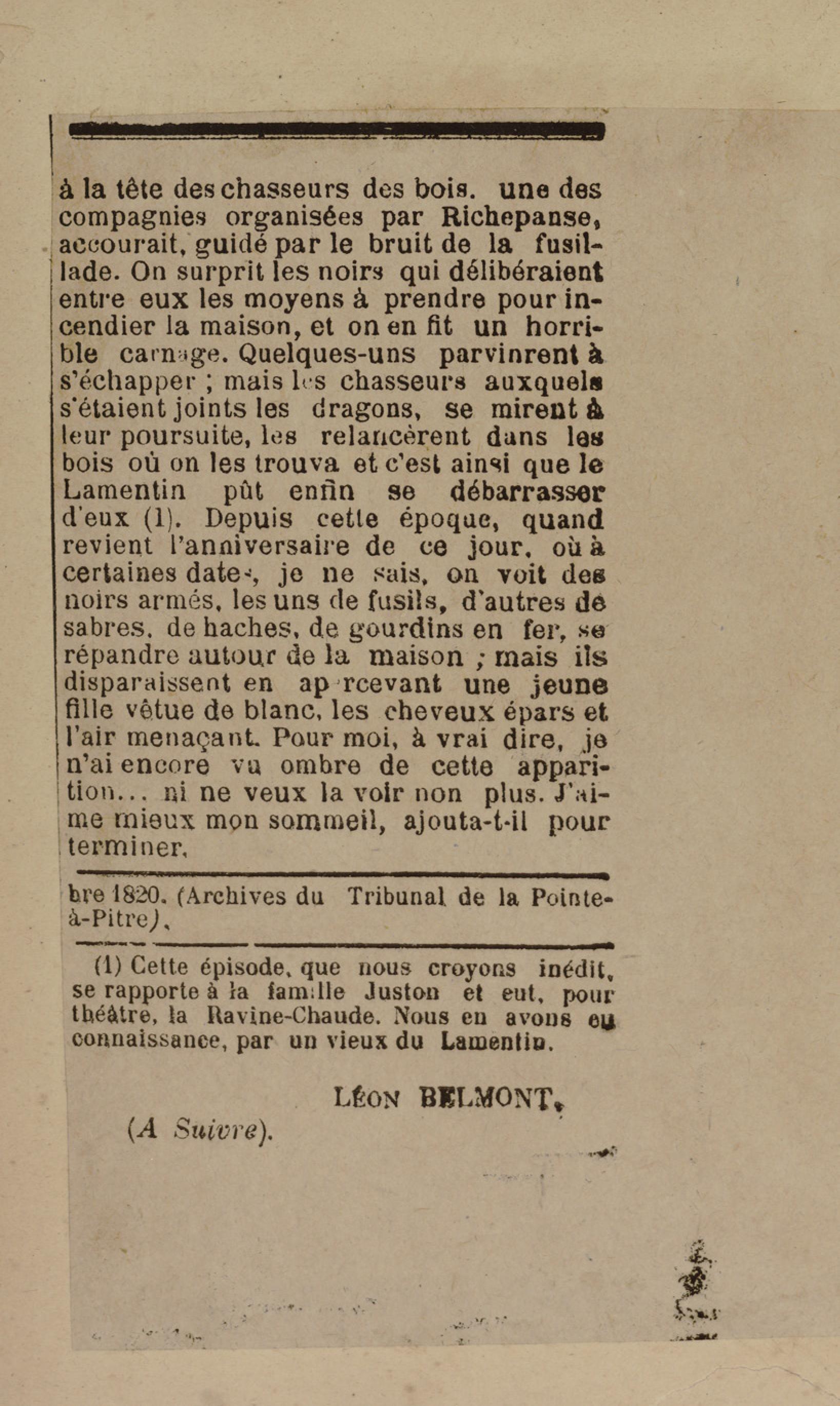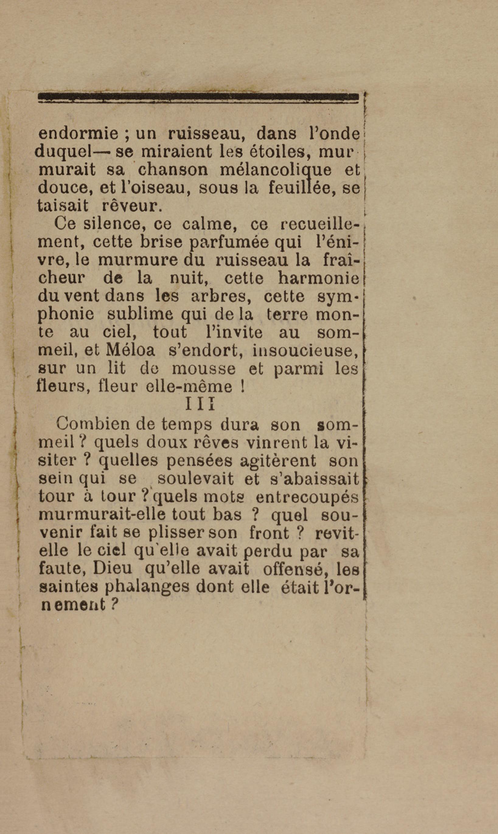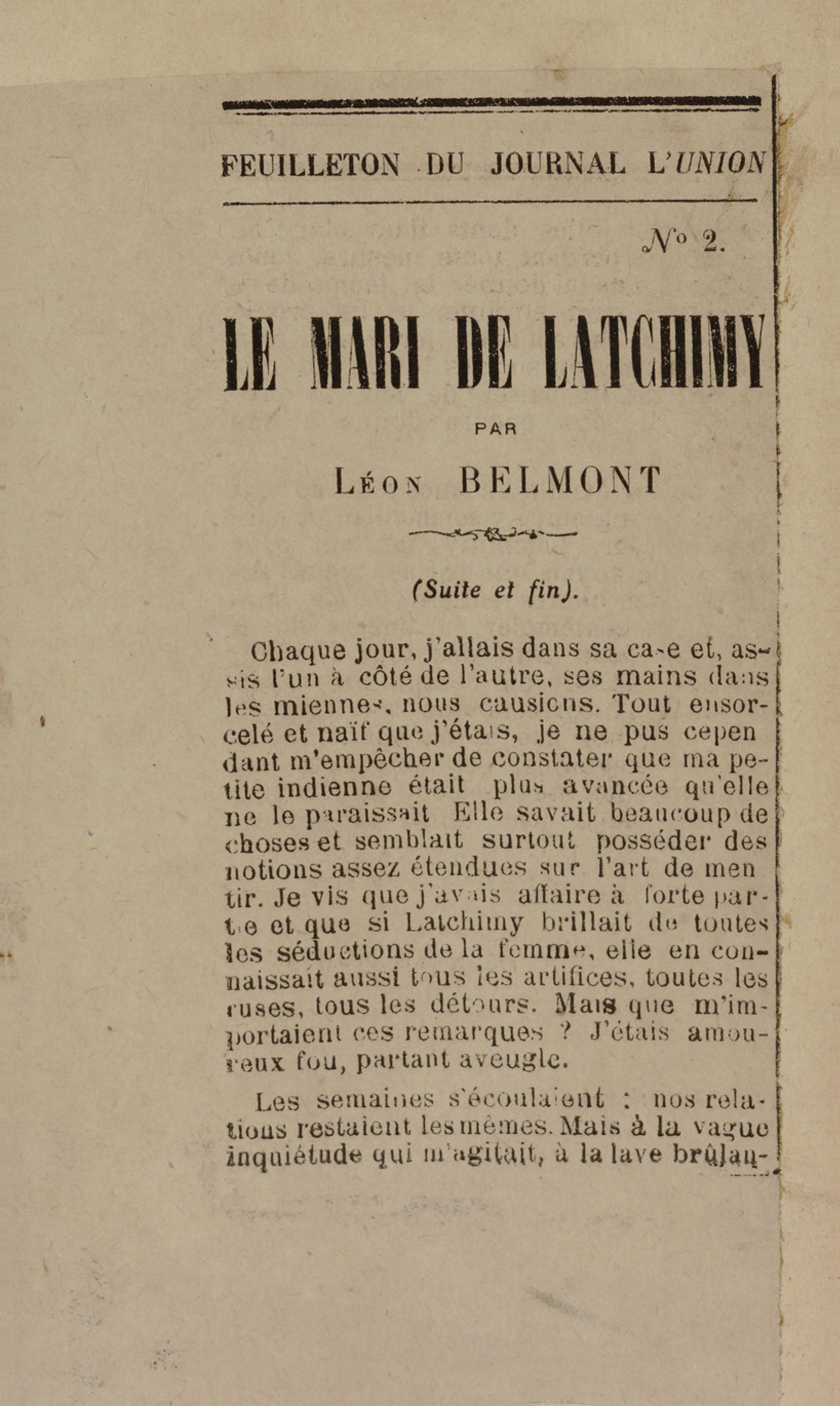 - Contient plusieurs nouvelles et romans-feuilletons publiés par épisodes dans la presse locale, notamment dans les journaux L'Avenir, Le Colonial et L'Union : Méloa. Histoire Caraïbe. Fleur de l’âme. Collation. A ma femme. Le calalou de monsieur le curé. Bonté d'enfant. Comment je me suis marié. Le mari de Latchimy. Le mariage de Jean-Paul Prineau. Nécessité n'a pas de loi. Les amours de voyage.