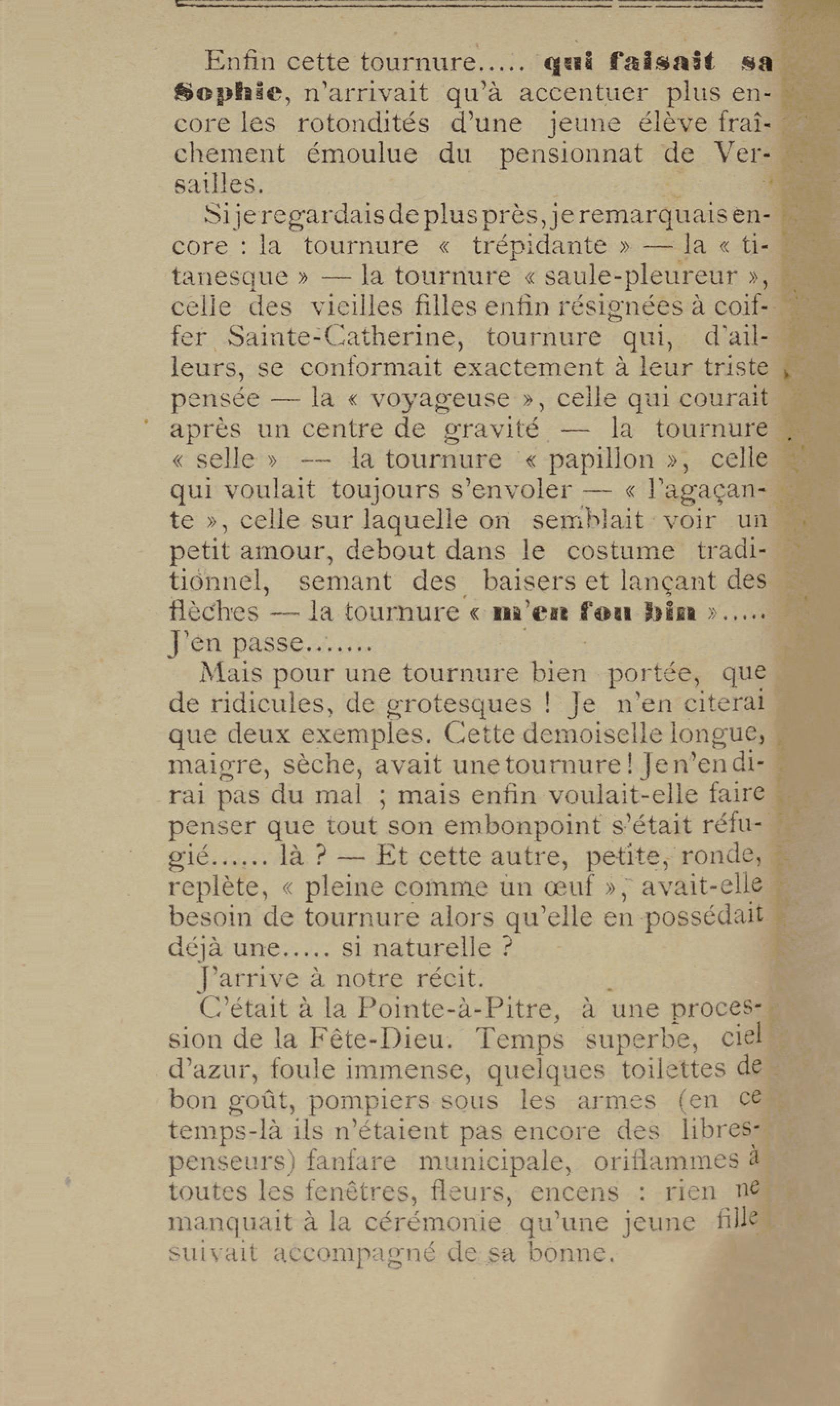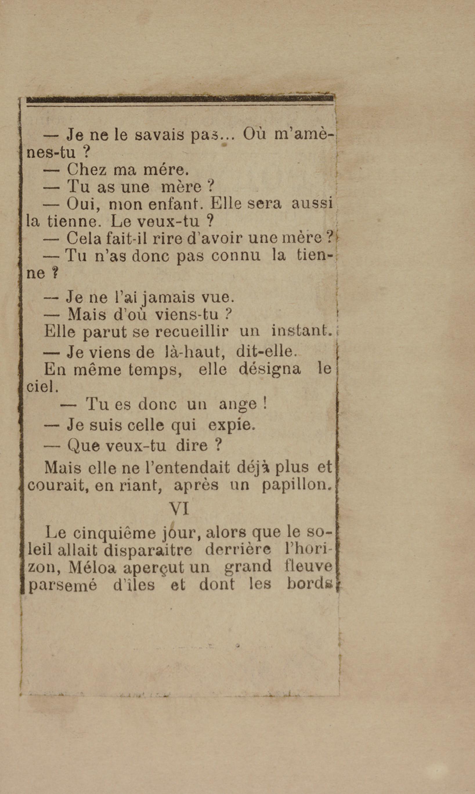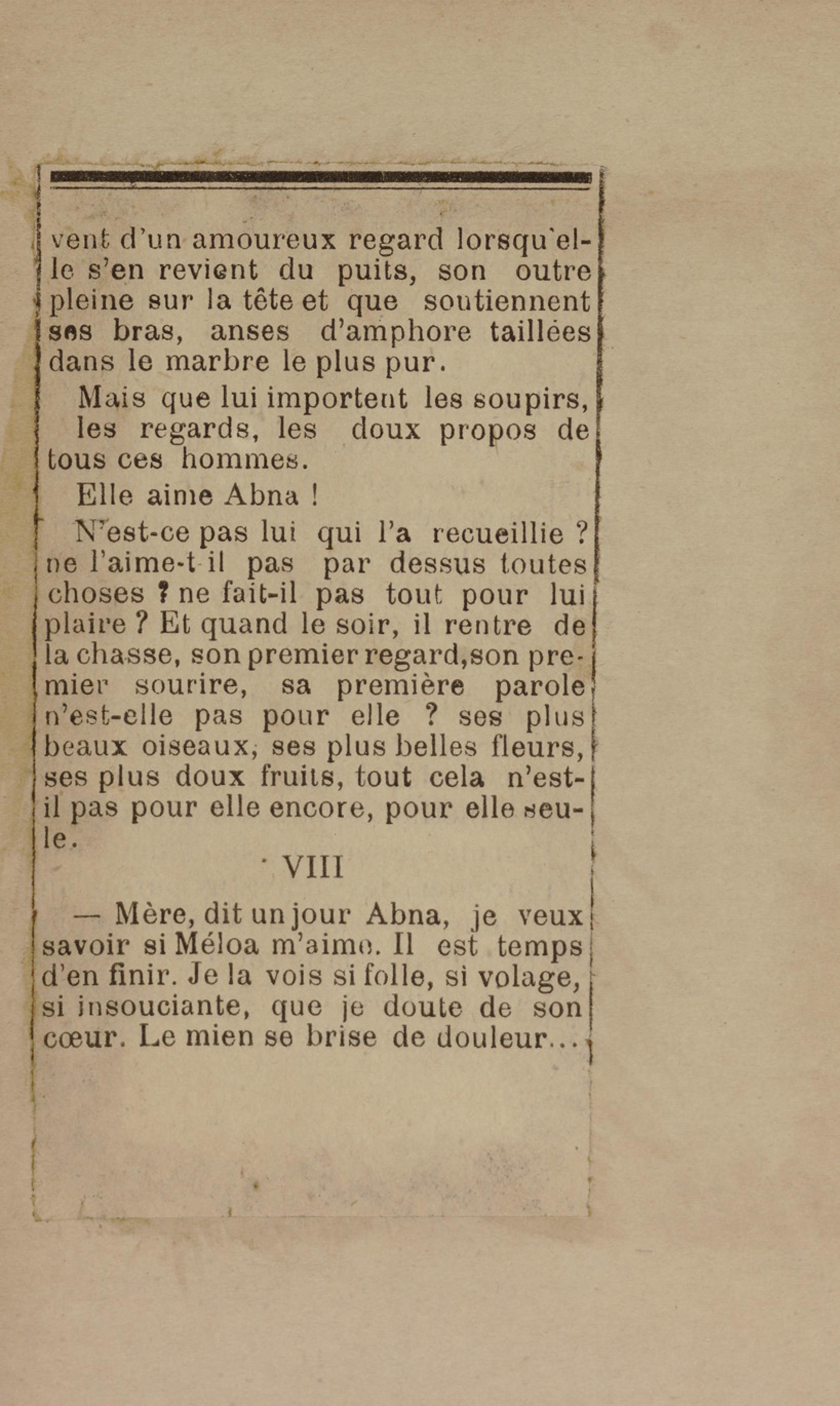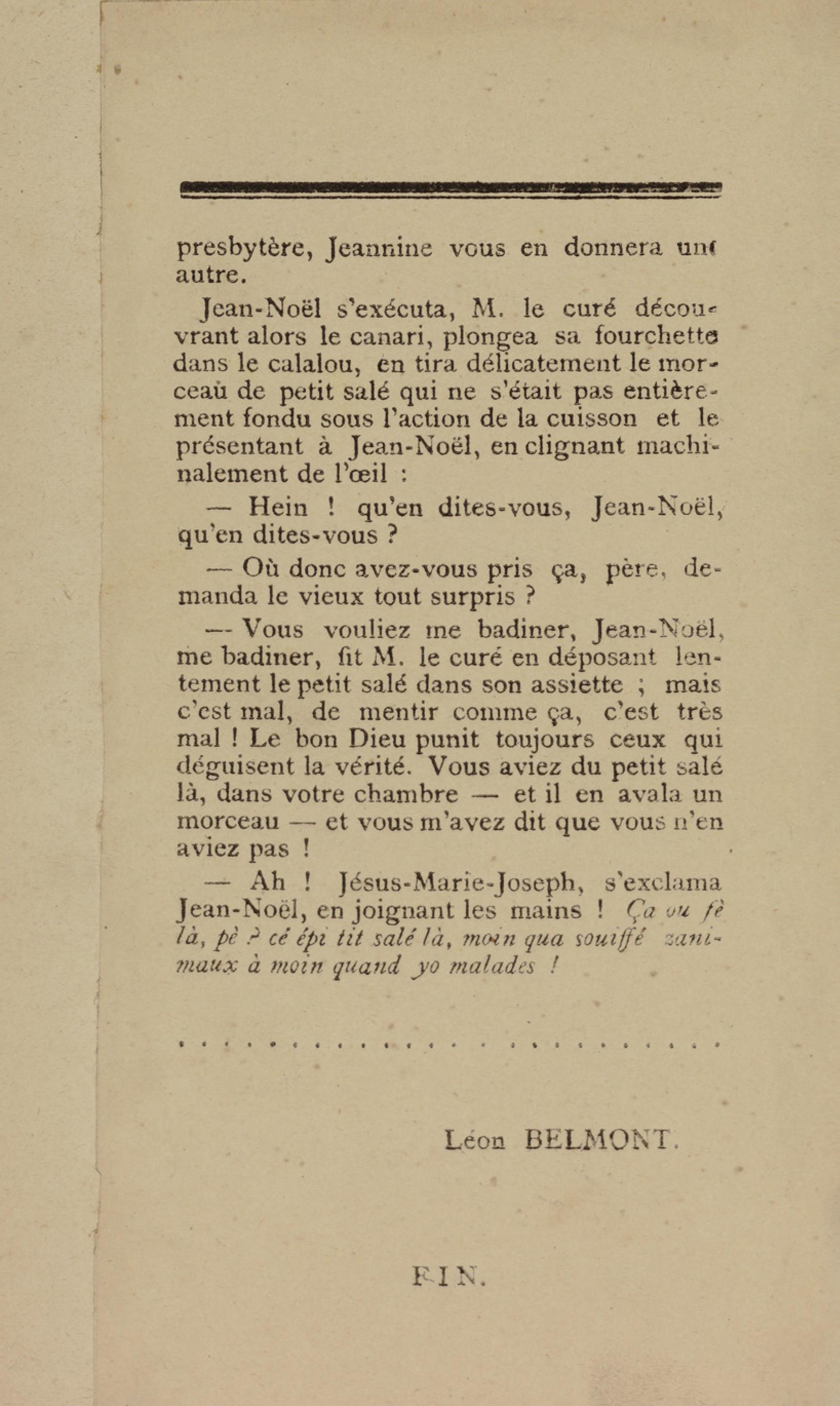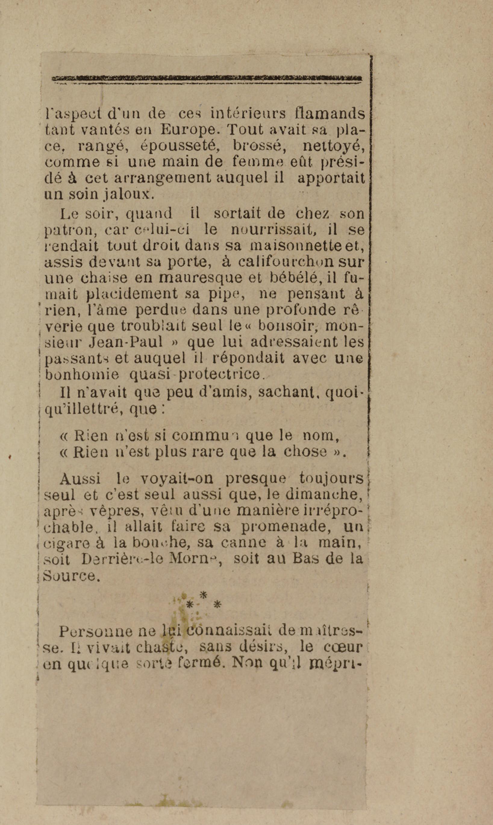 - Contient plusieurs nouvelles et romans-feuilletons publiés par épisodes dans la presse locale, notamment dans les journaux L'Avenir, Le Colonial et L'Union : Méloa. Histoire Caraïbe. Fleur de l’âme. Collation. A ma femme. Le calalou de monsieur le curé. Bonté d'enfant. Comment je me suis marié. Le mari de Latchimy. Le mariage de Jean-Paul Prineau. Nécessité n'a pas de loi. Les amours de voyage.