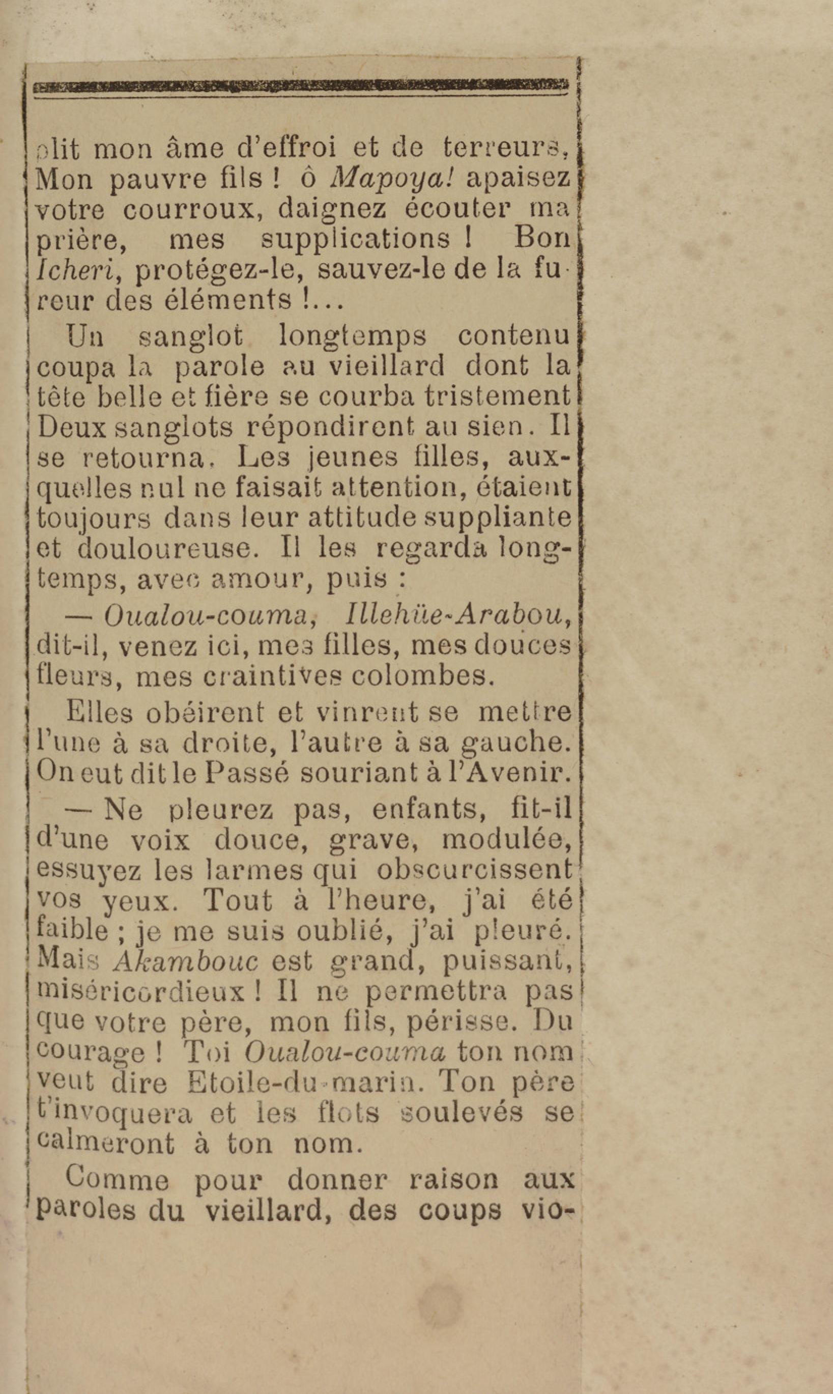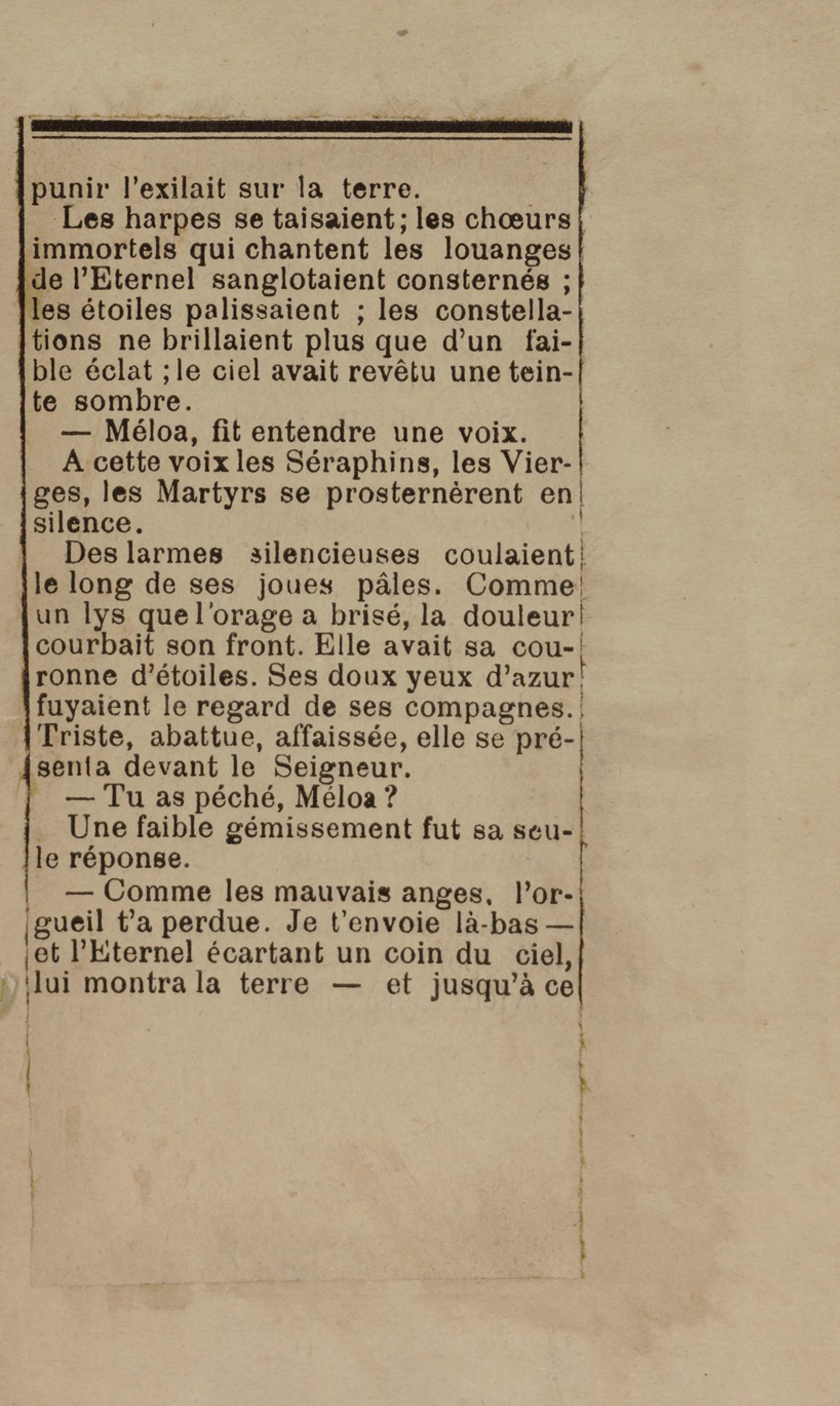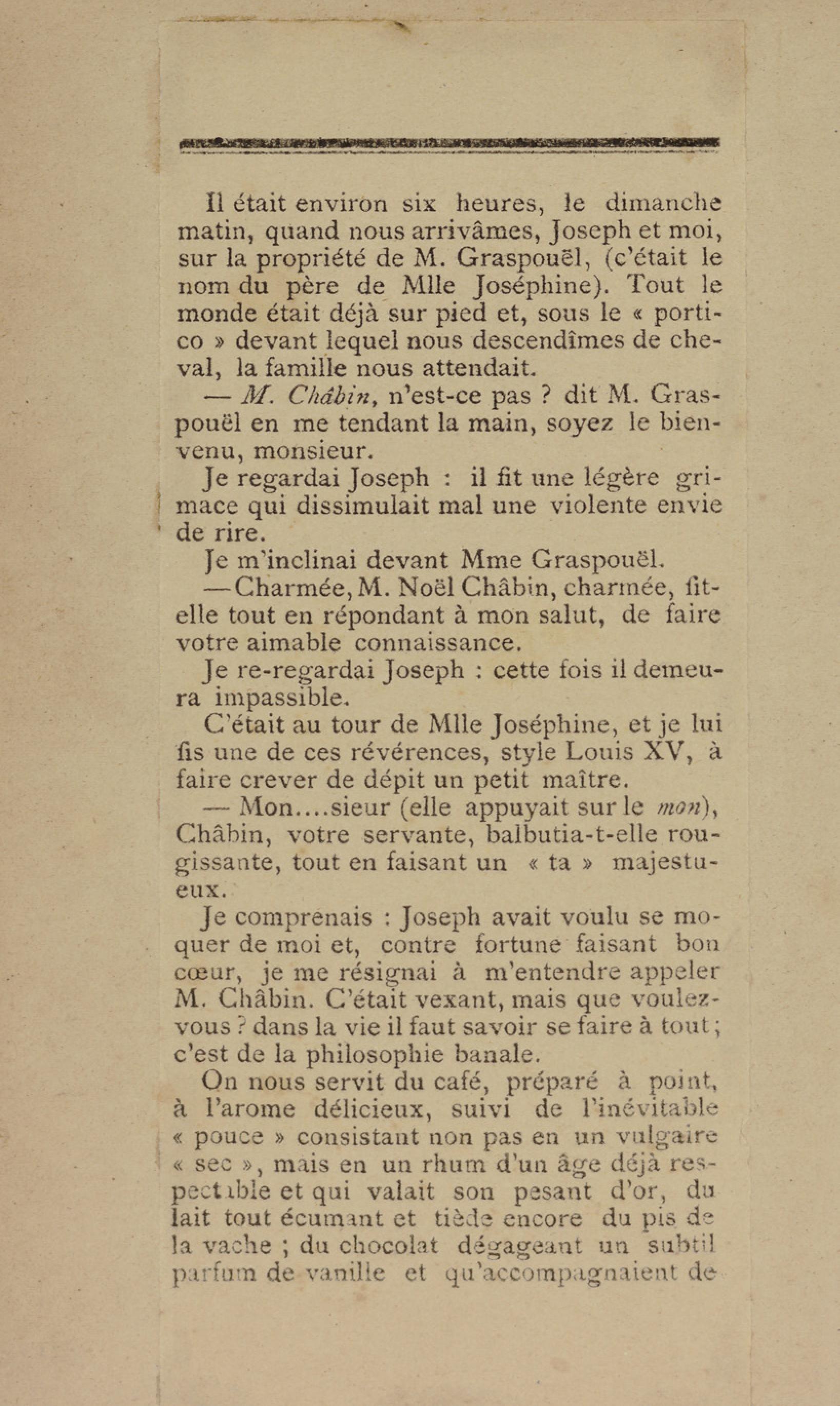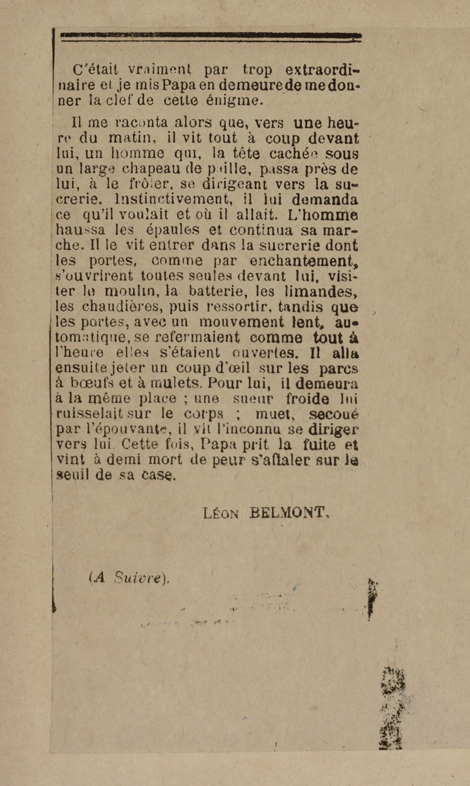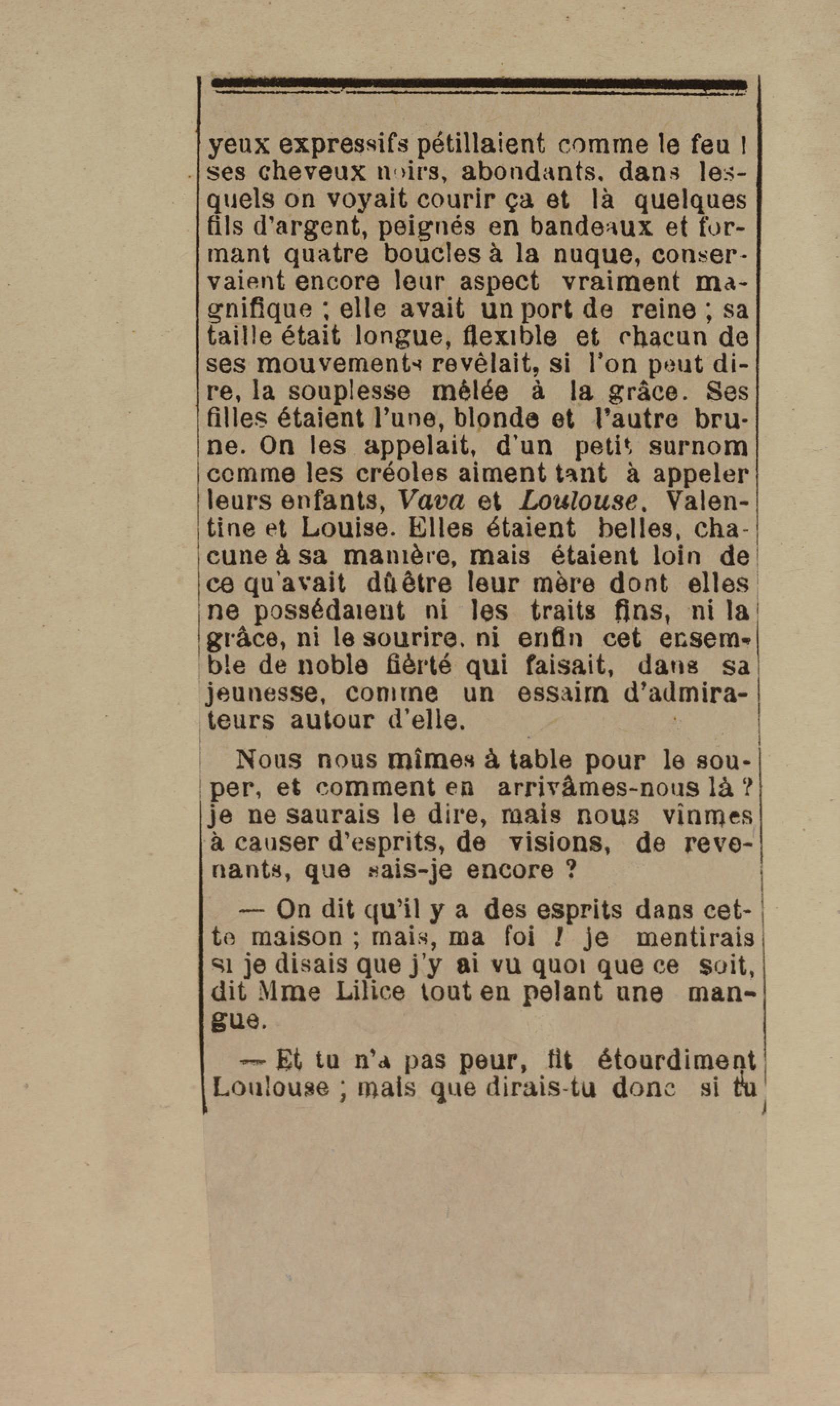 - Contient plusieurs nouvelles et romans-feuilletons publiés par épisodes dans la presse locale, notamment dans les journaux L'Avenir, Le Colonial et L'Union : Méloa. Histoire Caraïbe. Fleur de l’âme. Collation. A ma femme. Le calalou de monsieur le curé. Bonté d'enfant. Comment je me suis marié. Le mari de Latchimy. Le mariage de Jean-Paul Prineau. Nécessité n'a pas de loi. Les amours de voyage.