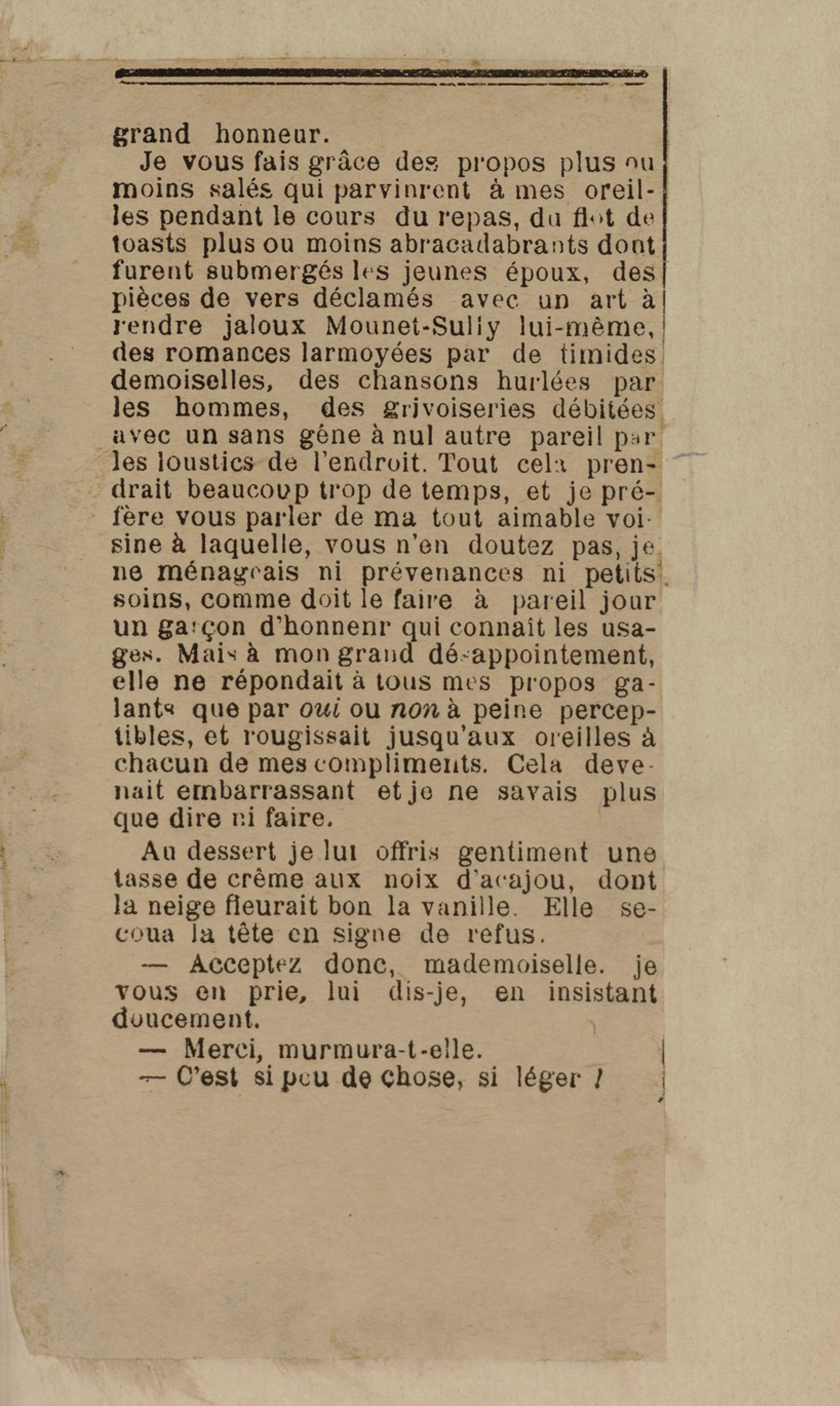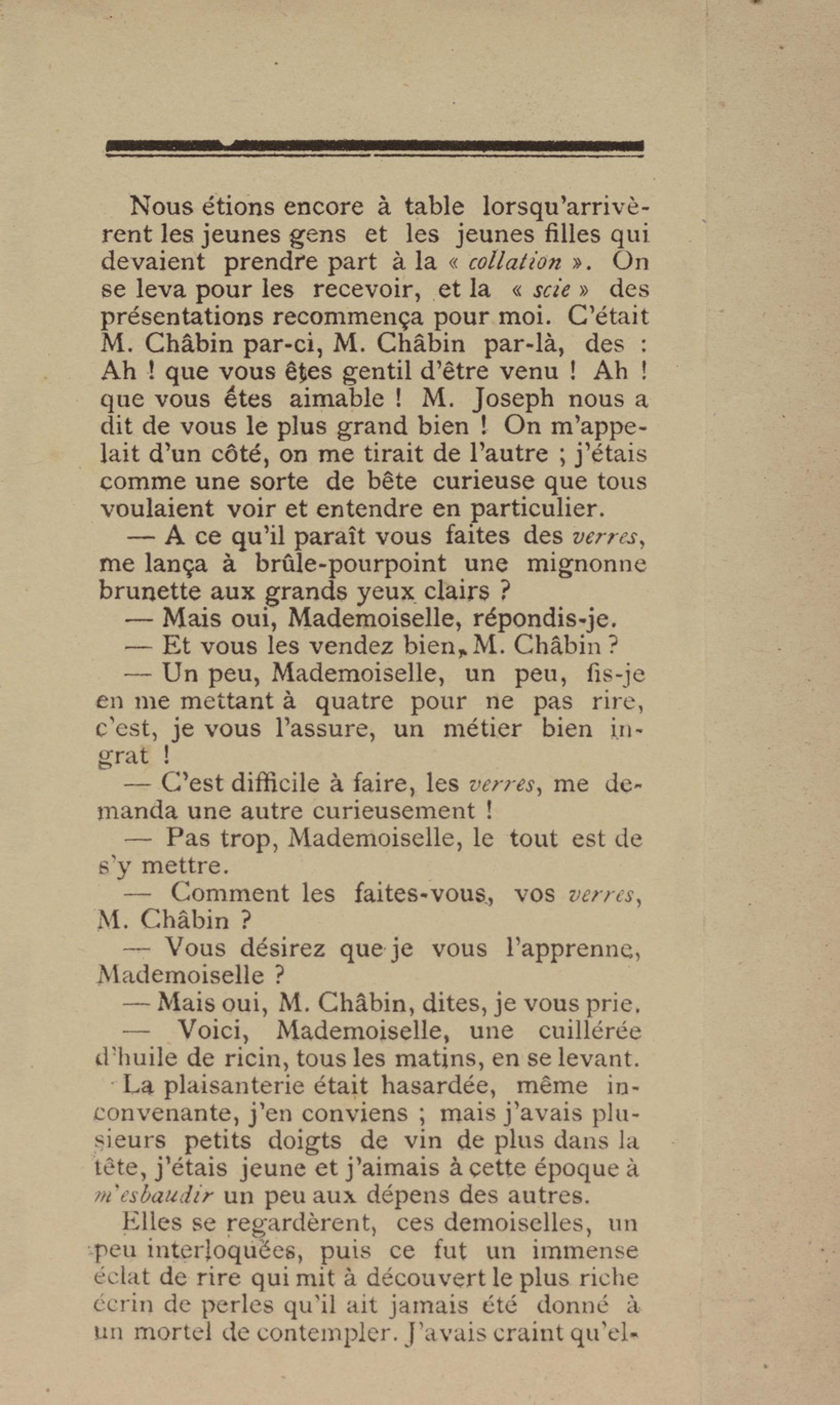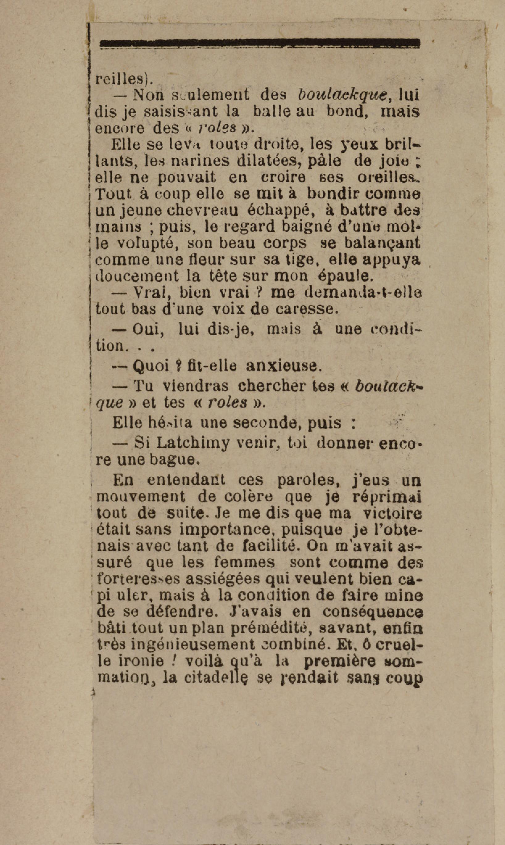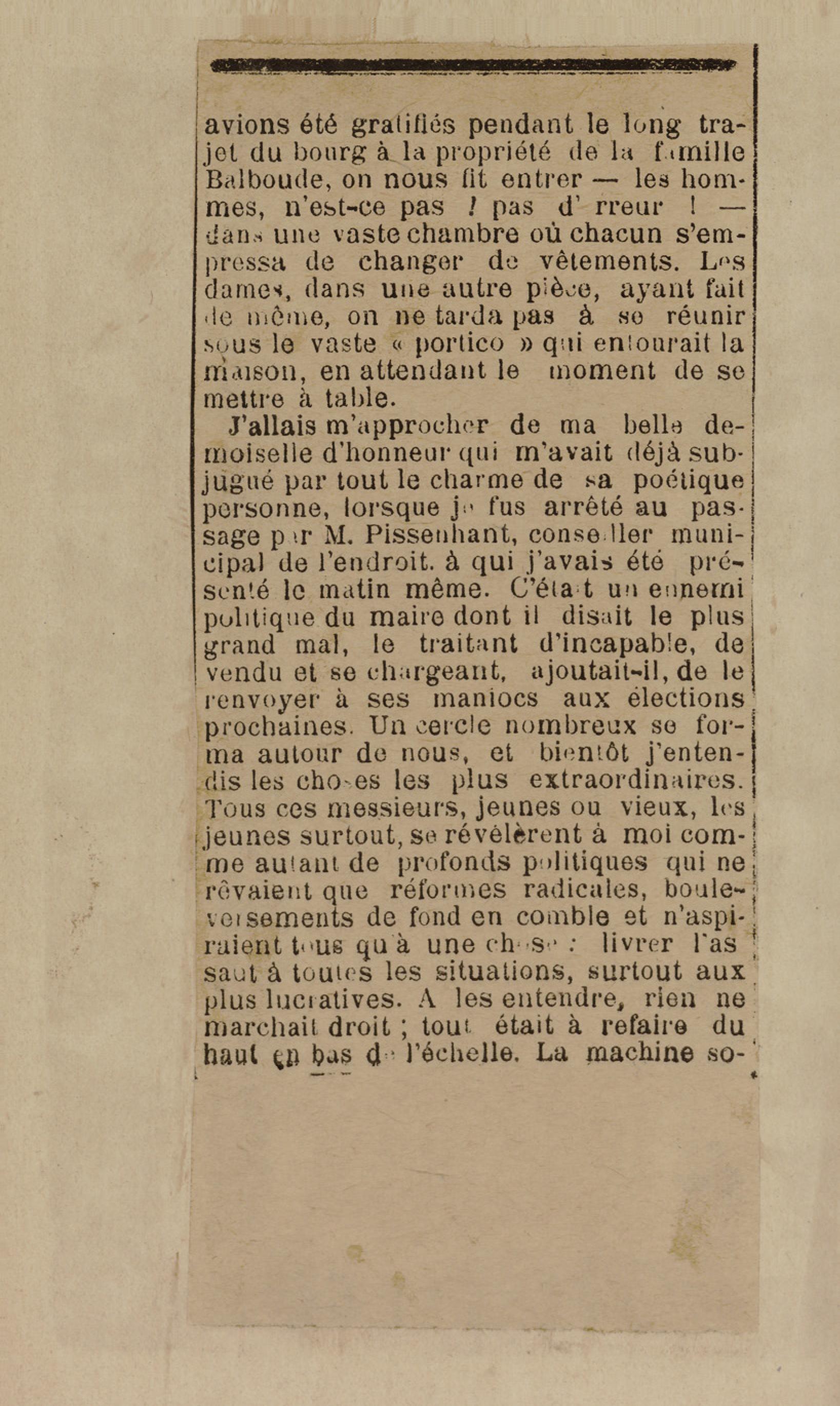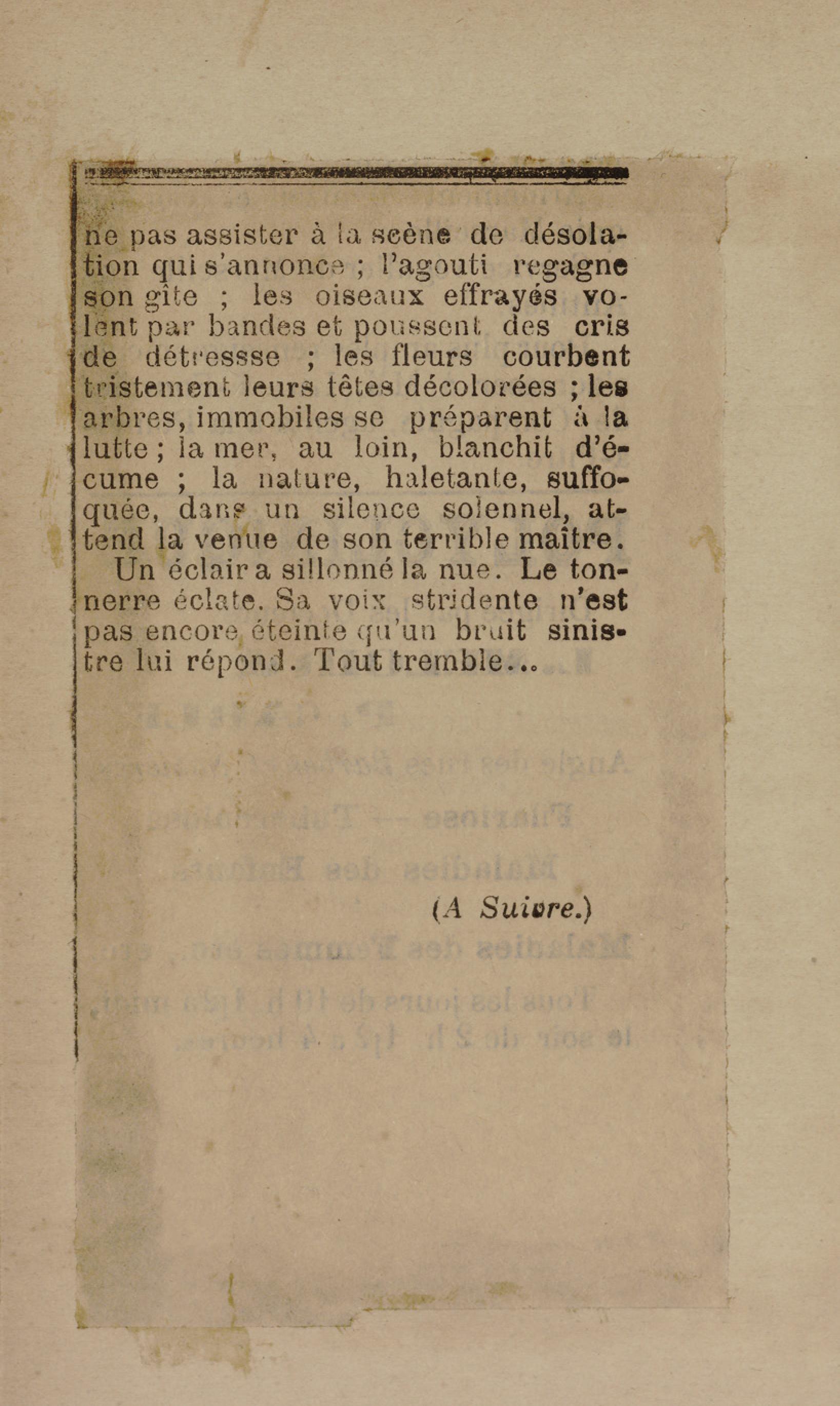 - Contient plusieurs nouvelles et romans-feuilletons publiés par épisodes dans la presse locale, notamment dans les journaux L'Avenir, Le Colonial et L'Union : Méloa. Histoire Caraïbe. Fleur de l’âme. Collation. A ma femme. Le calalou de monsieur le curé. Bonté d'enfant. Comment je me suis marié. Le mari de Latchimy. Le mariage de Jean-Paul Prineau. Nécessité n'a pas de loi. Les amours de voyage.