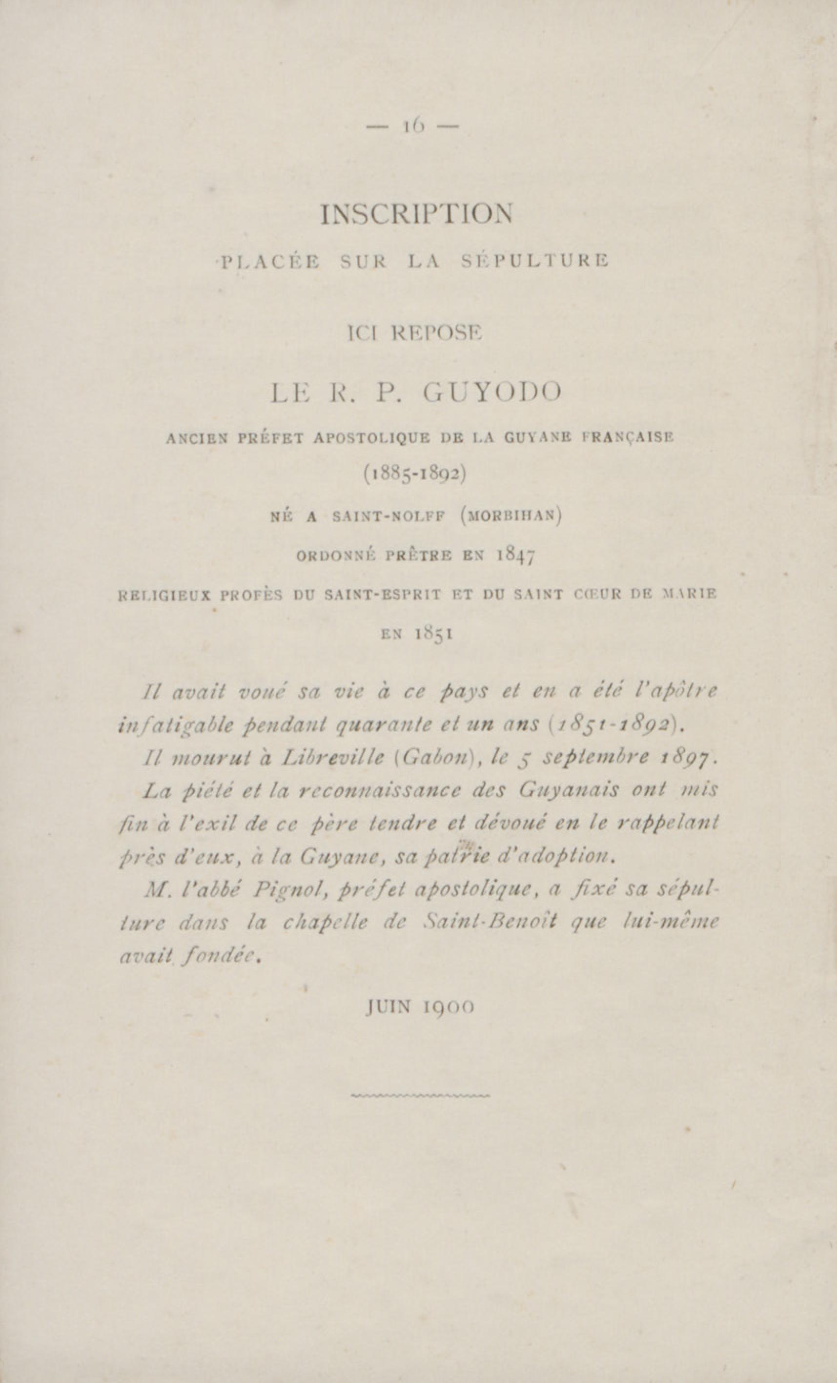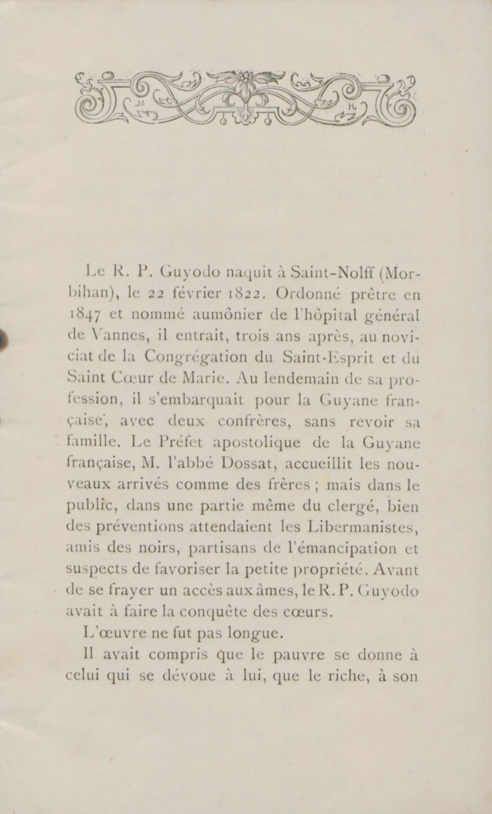 Contenus avec " Extrait de : R. P. Guyodo de la congrégation du Saint-Esprit et du Saint Coeur de Marie, ancien préfet apostolique de la Guyane française "