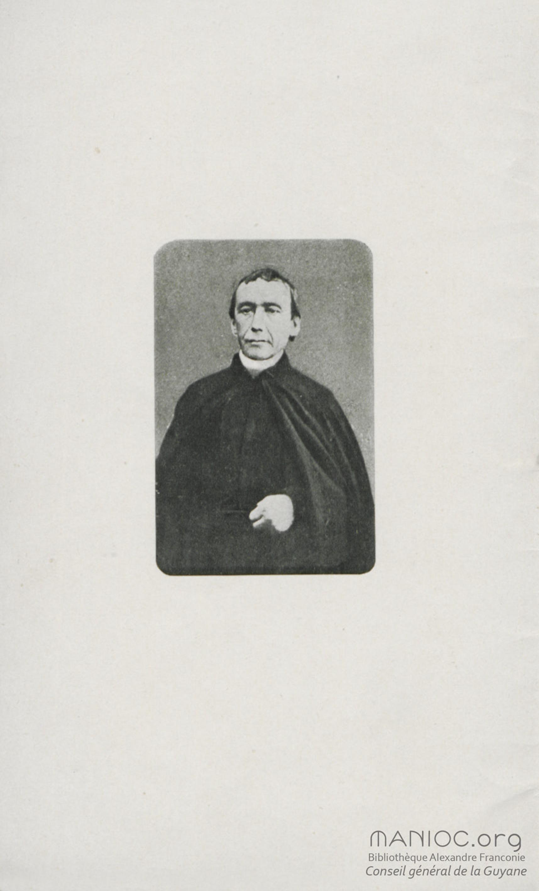 Portrait du Révérend Père Guyodo, ancien préfet apostolique de la Guyane où il passa 41 ans avant de partir au Gabon où il mourut en 1897. Son corps fut rapatrié en inhumé en Guyane en 1900.