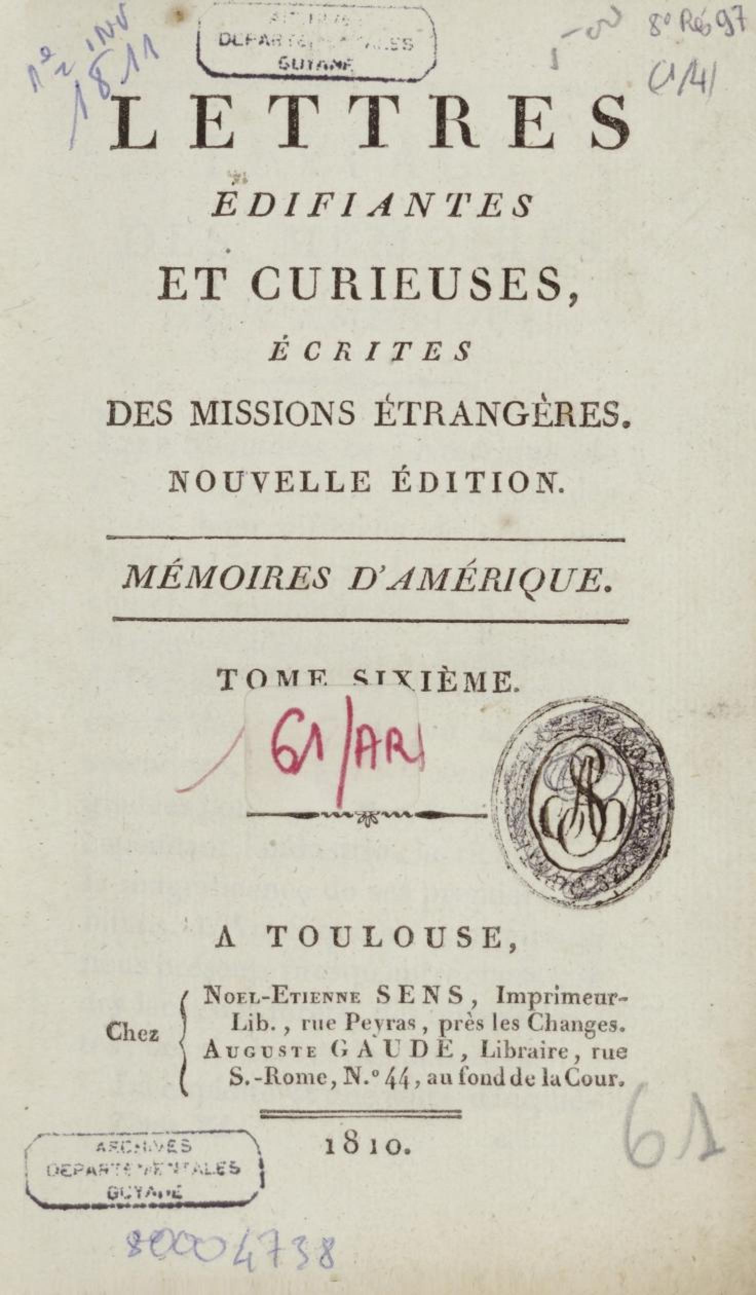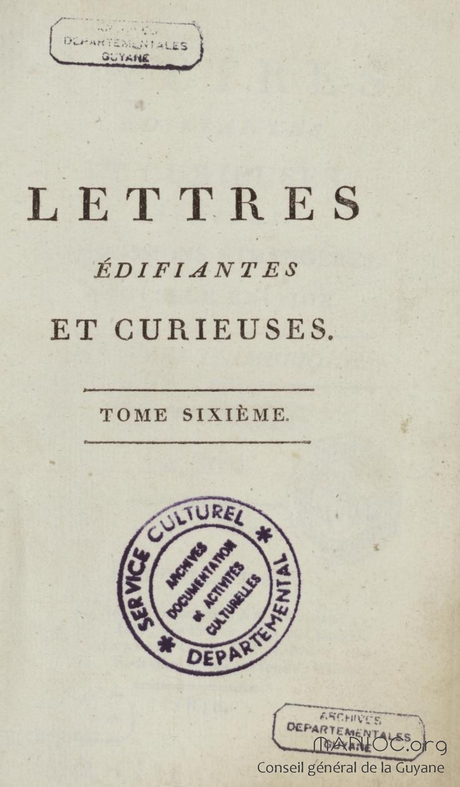 - Lettres édifiantes et curieuses écrites des missions étrangères. Tome sixième