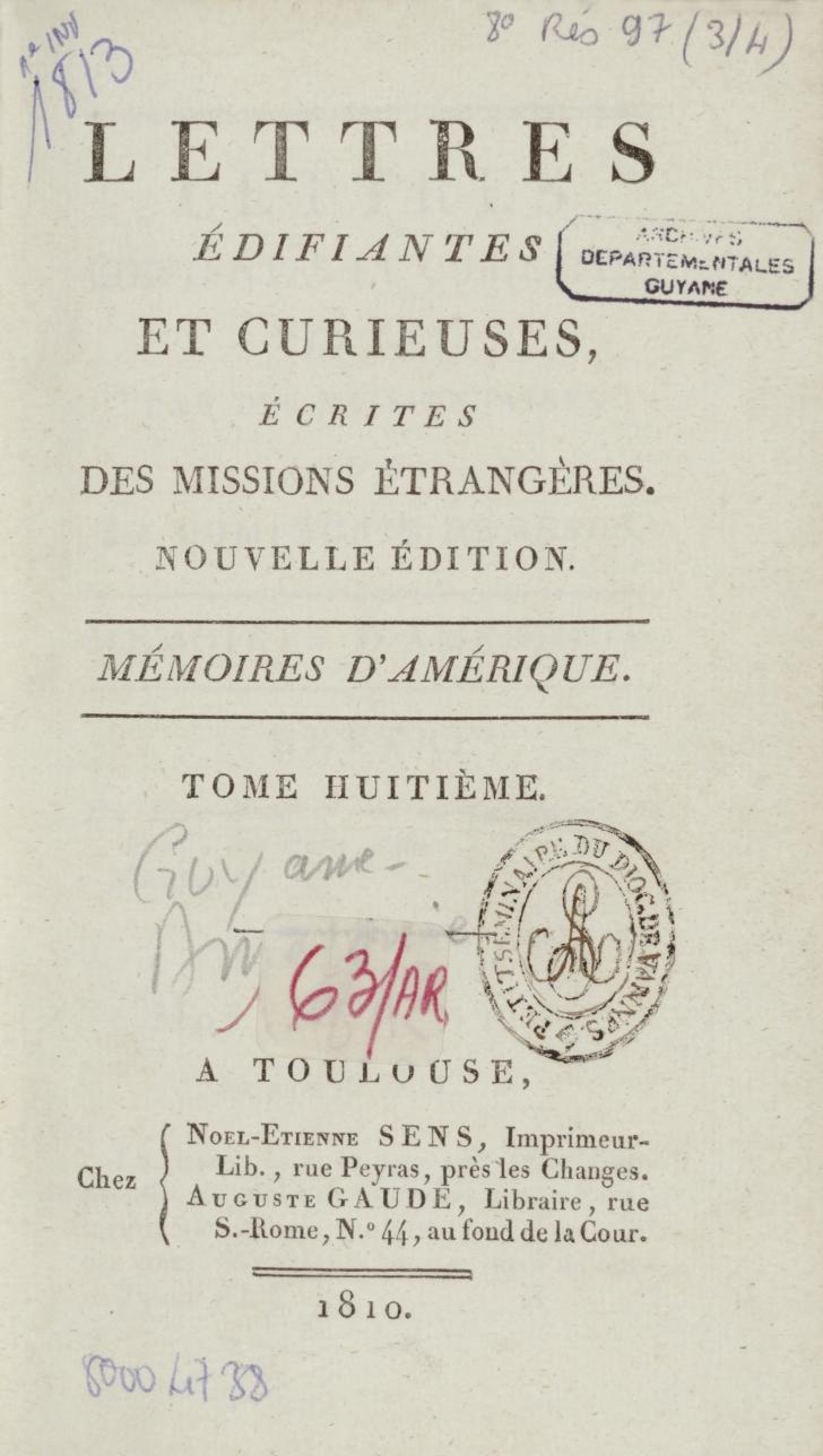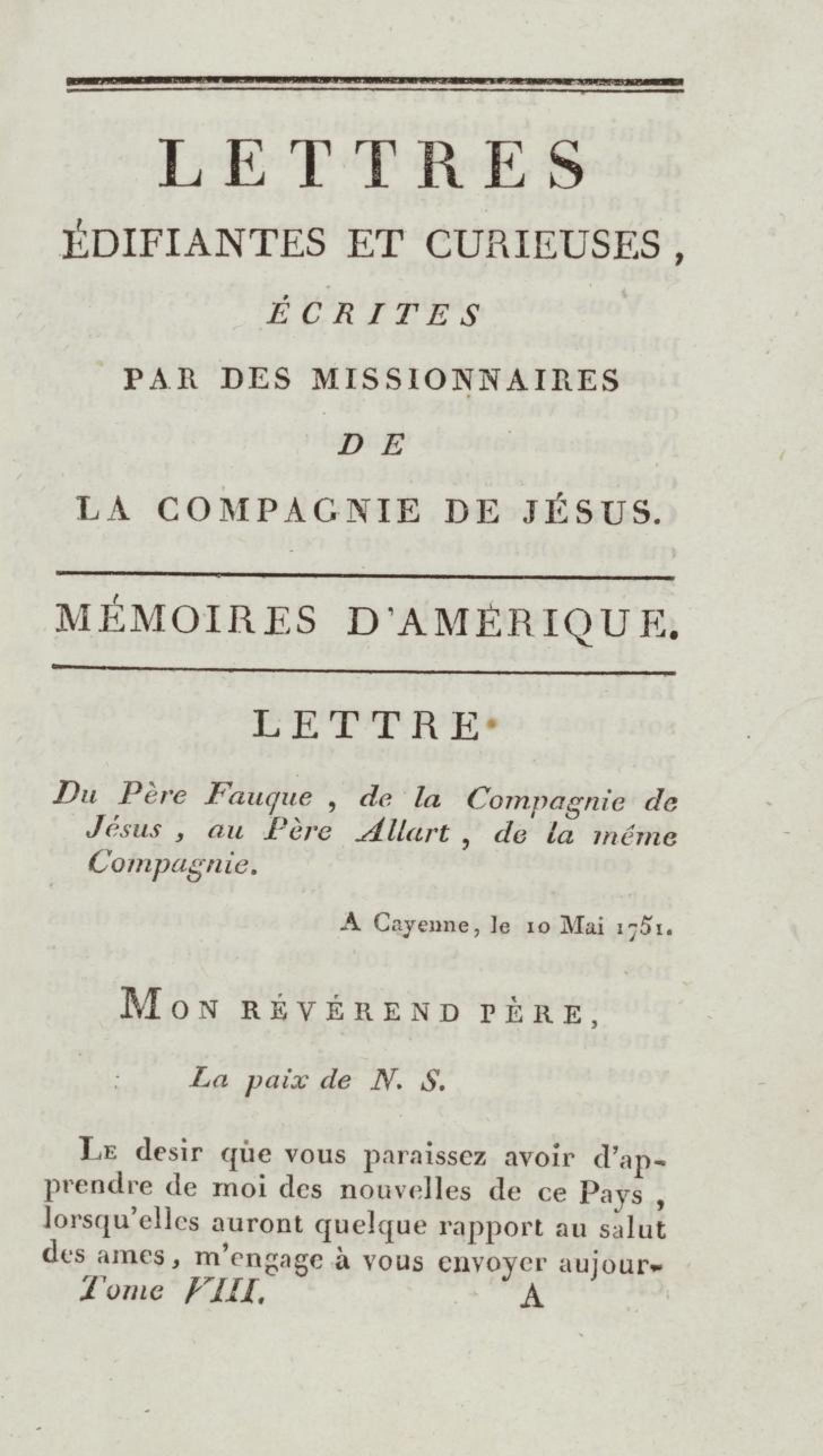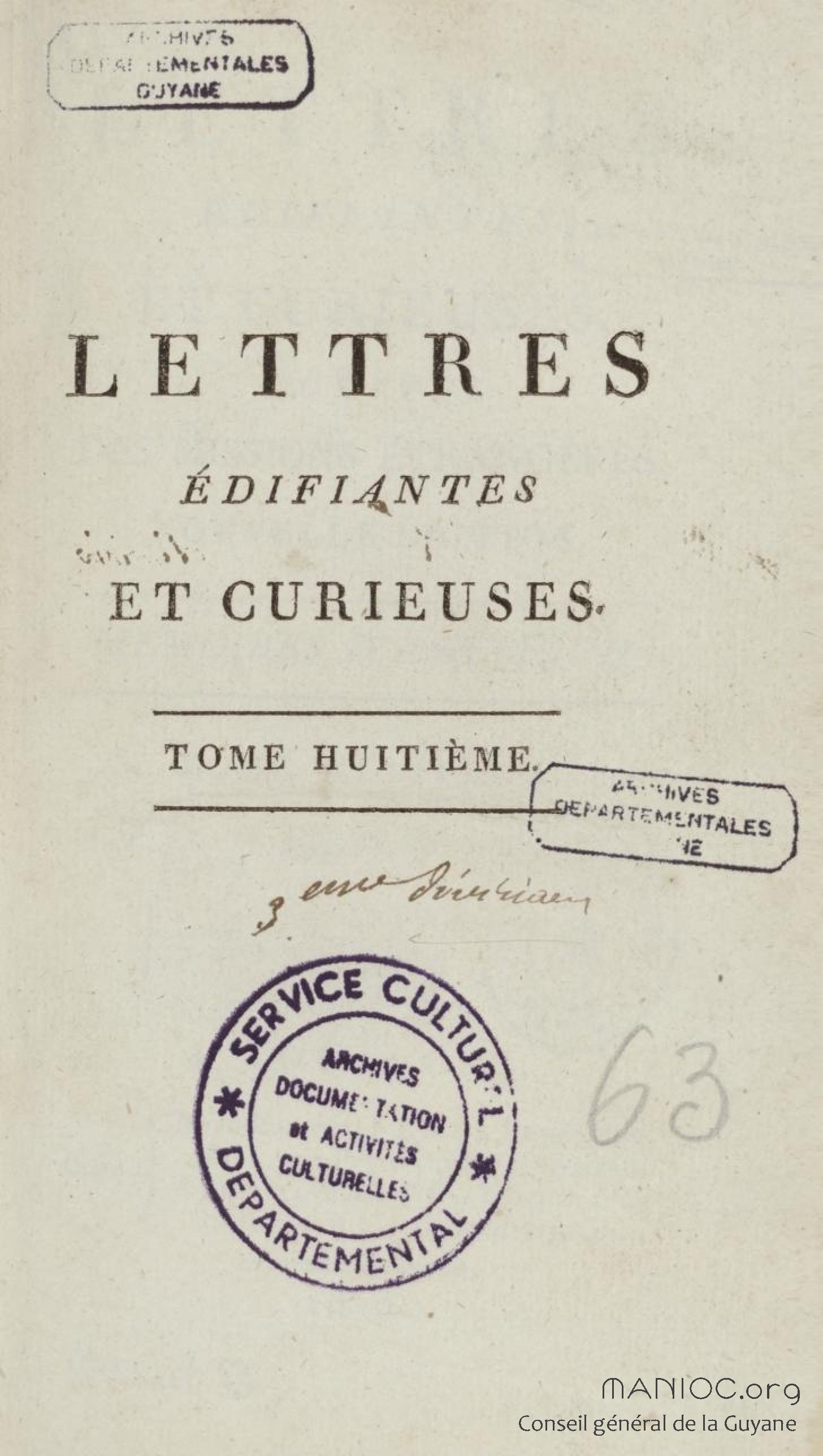 - Lettres édifiantes et curieuses, écrites des missions étrangères. Tome huitième