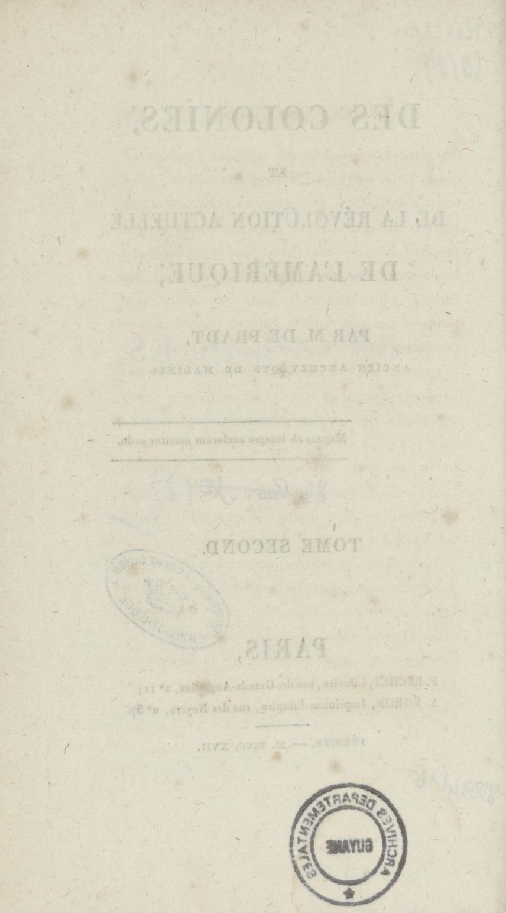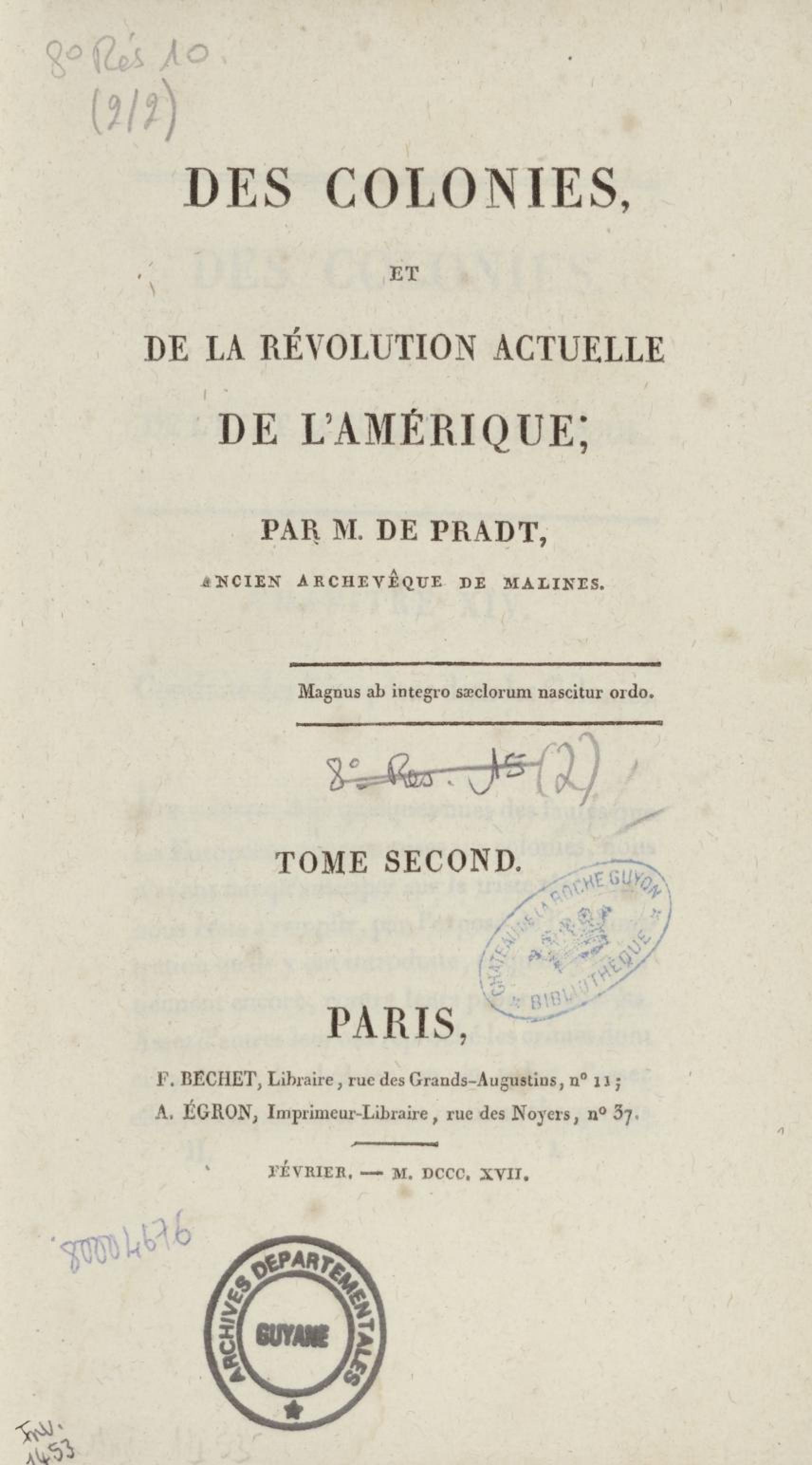 - Des colonies et de la révolution actuelle de l'Amérique. Tome Second