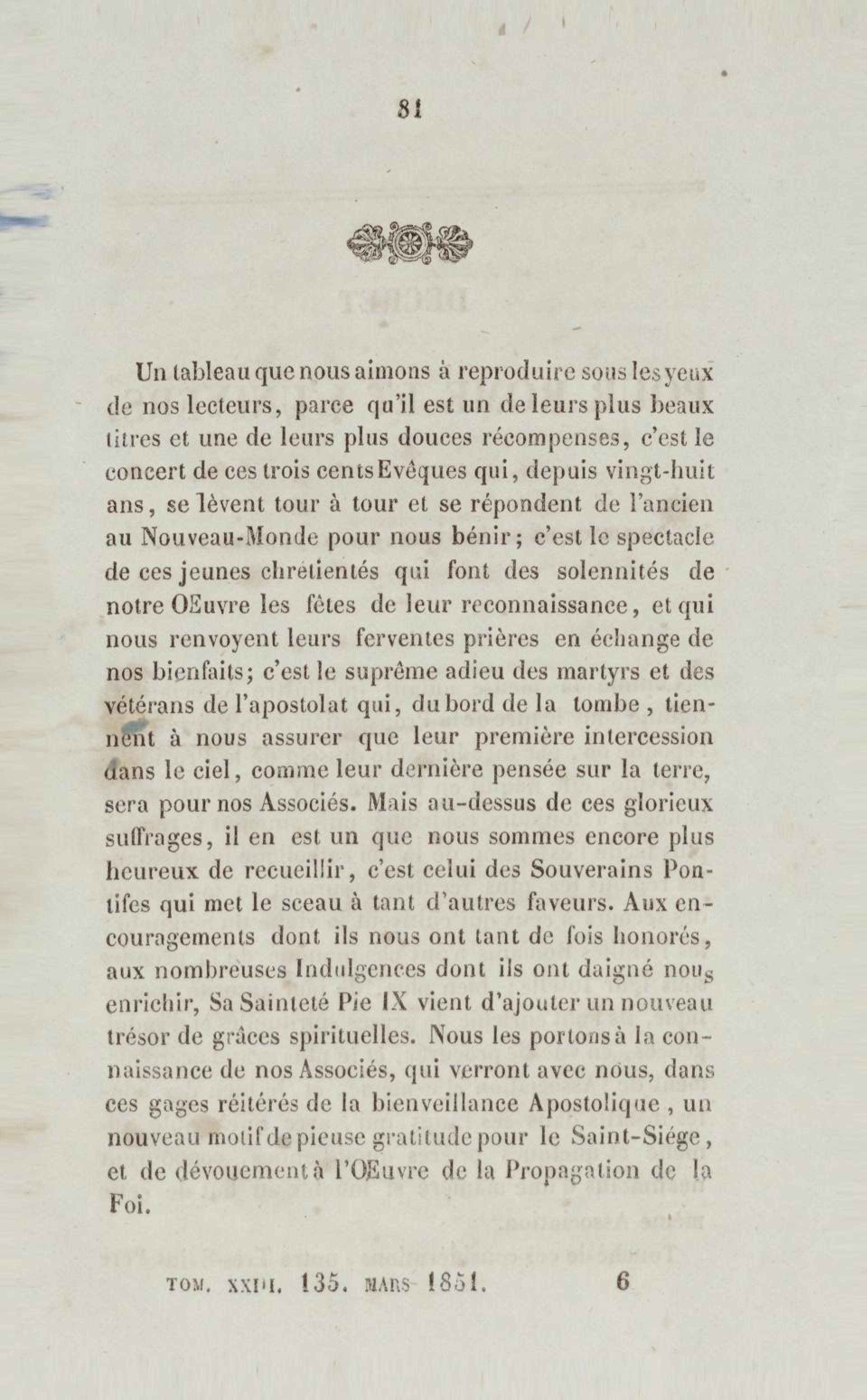 Annales de la propagation de la foi. recueil périodique. Des lettres des évêques et des missionnaires des missions des deux mondes, et de tous les documents relatifs aux missions et à l'œuvre de la propagation de la foi. Tome vingt-troisième