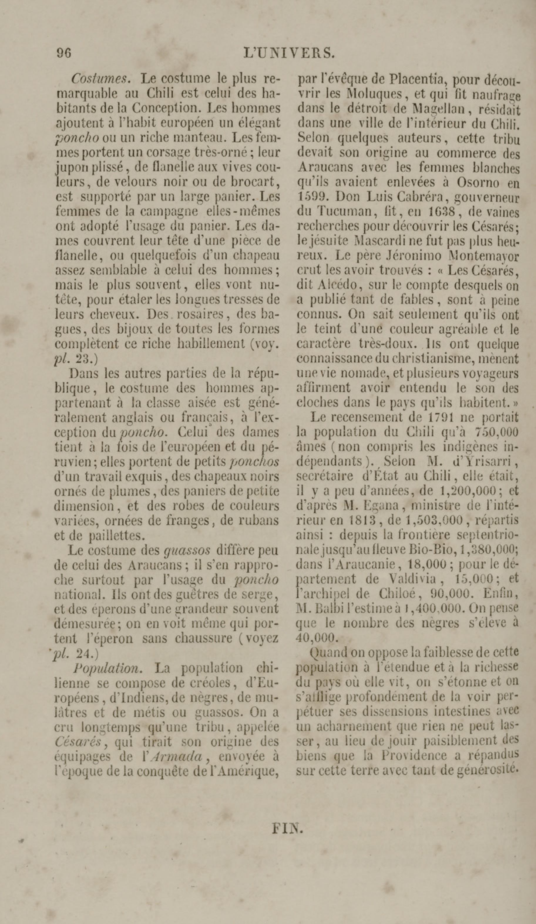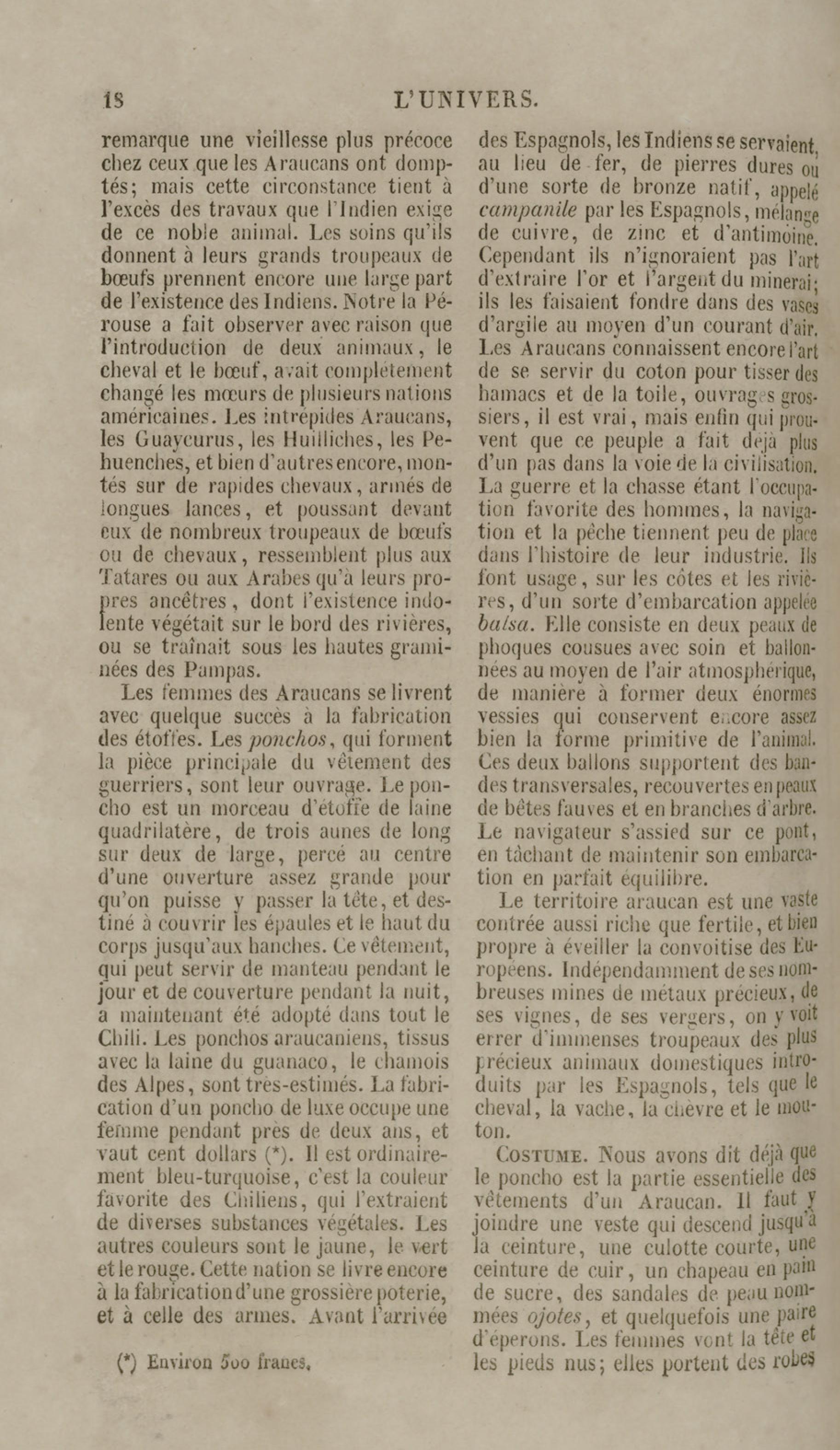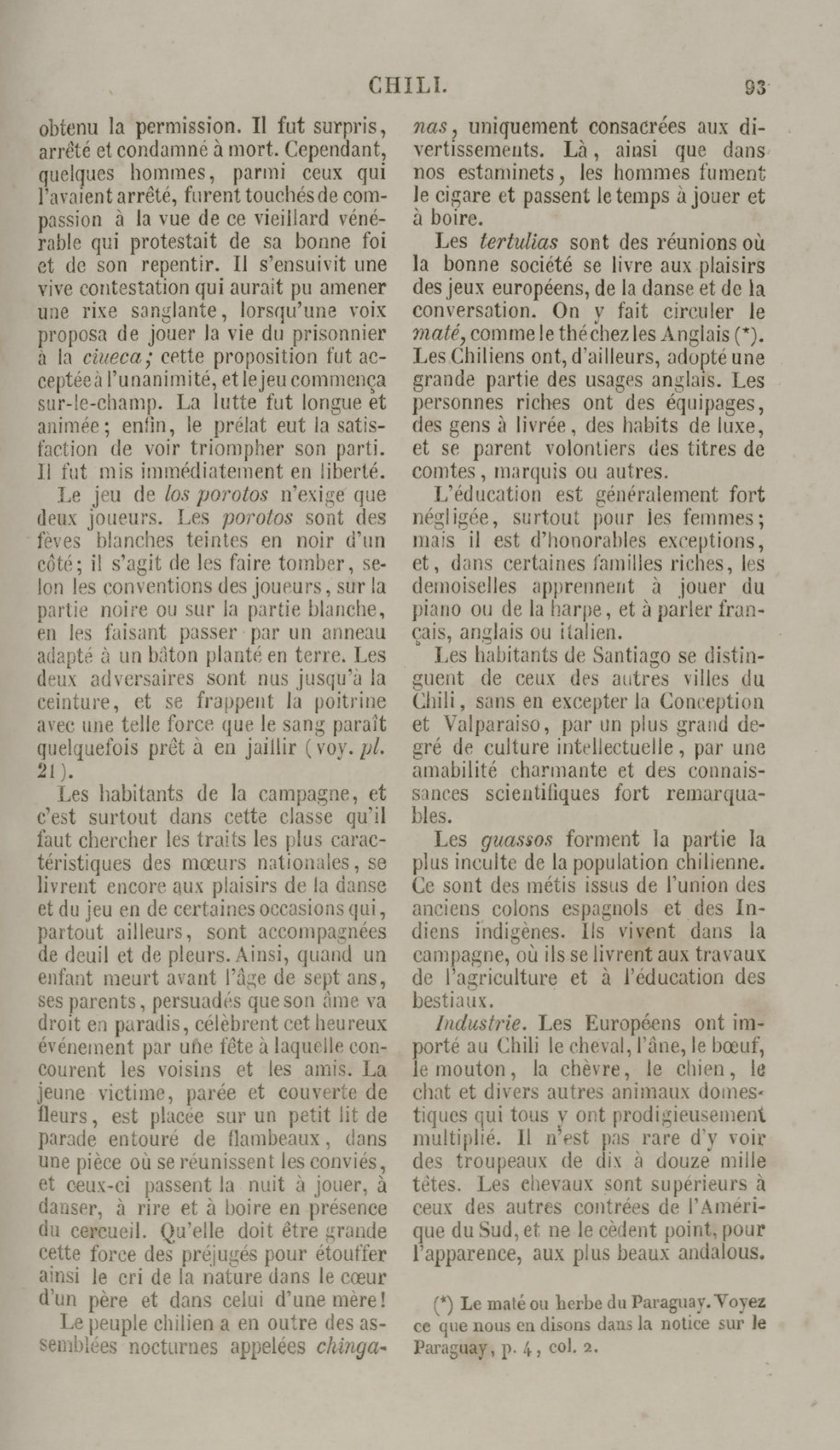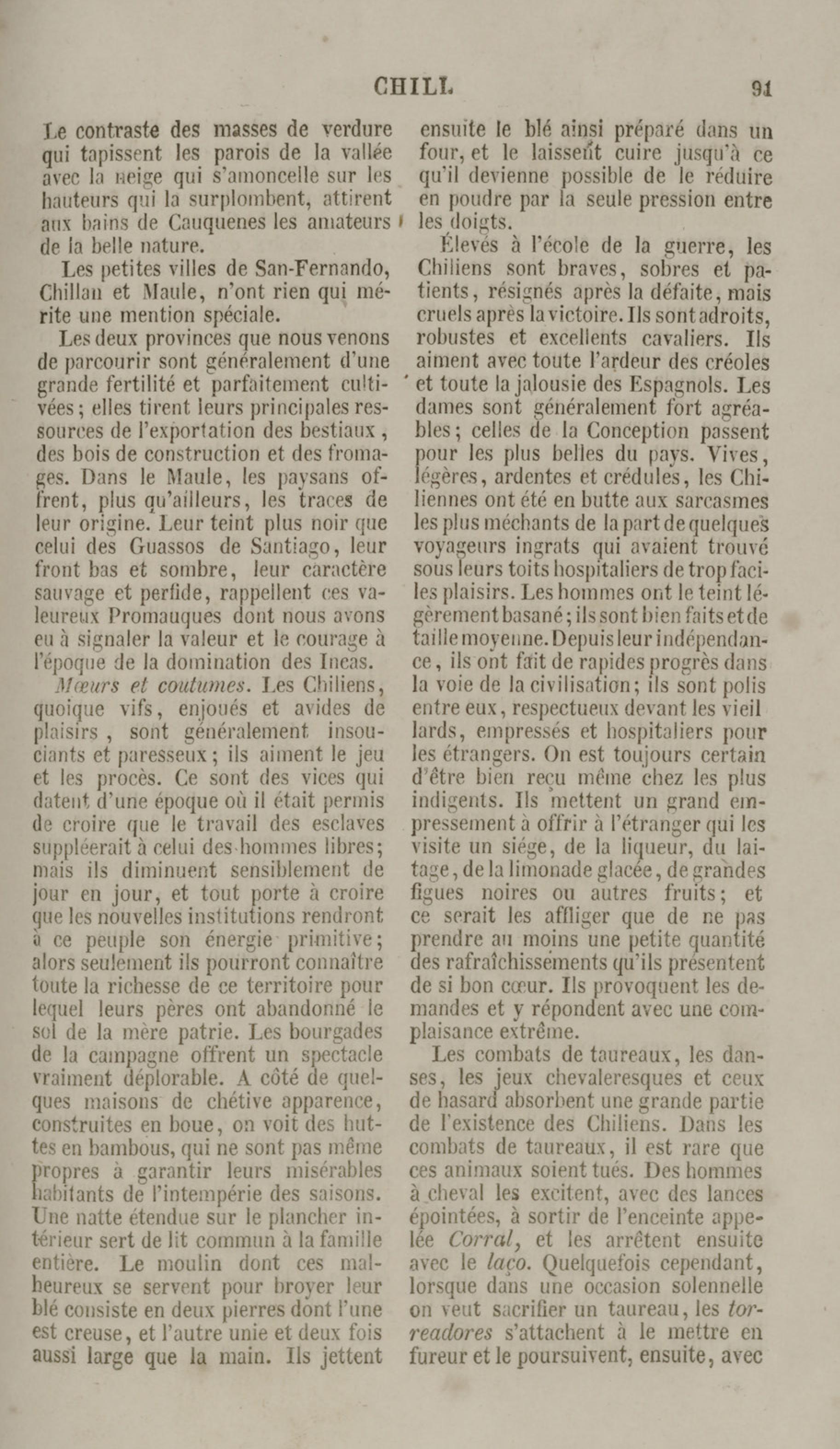 Costumes du peuple Chilien