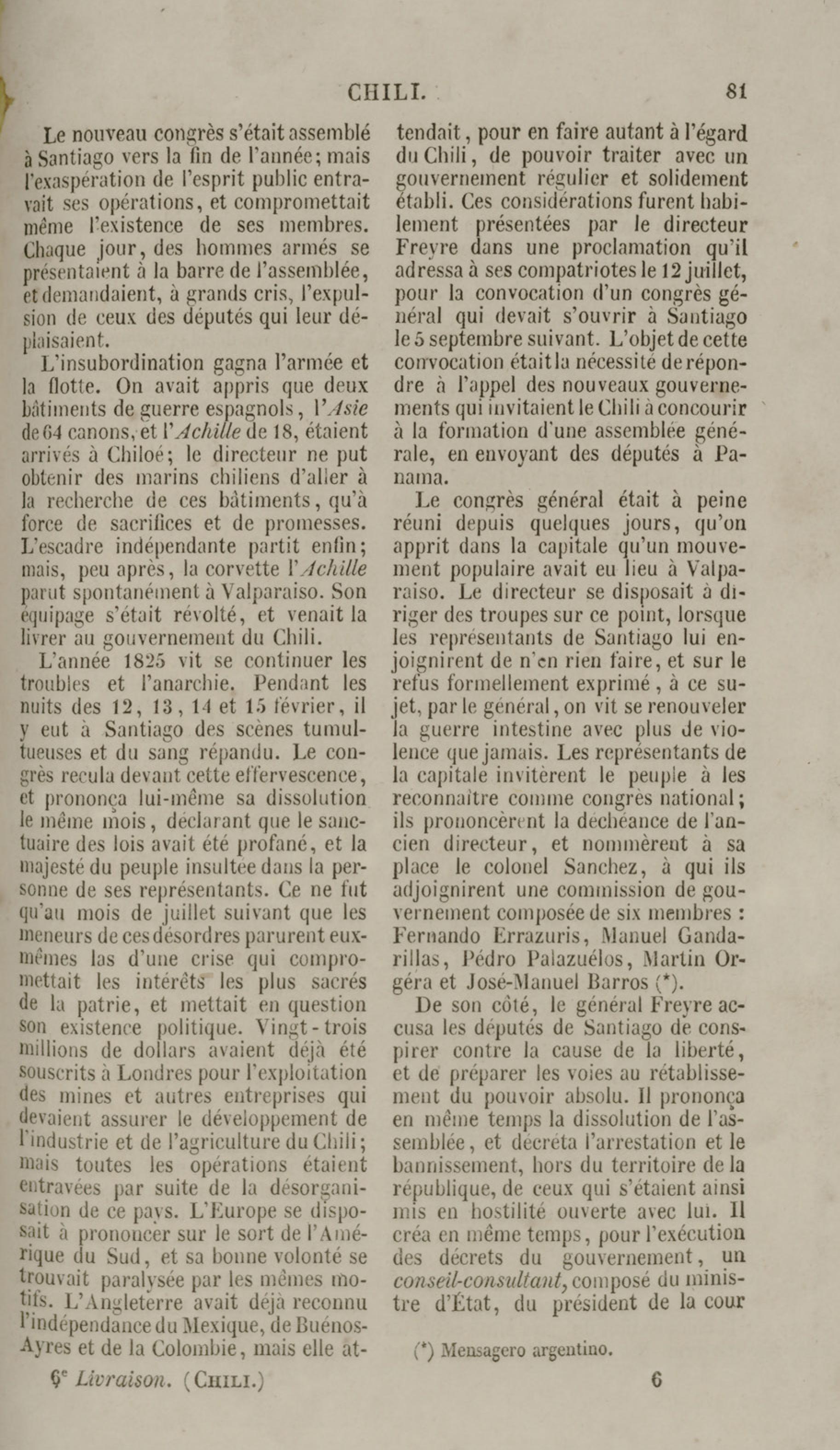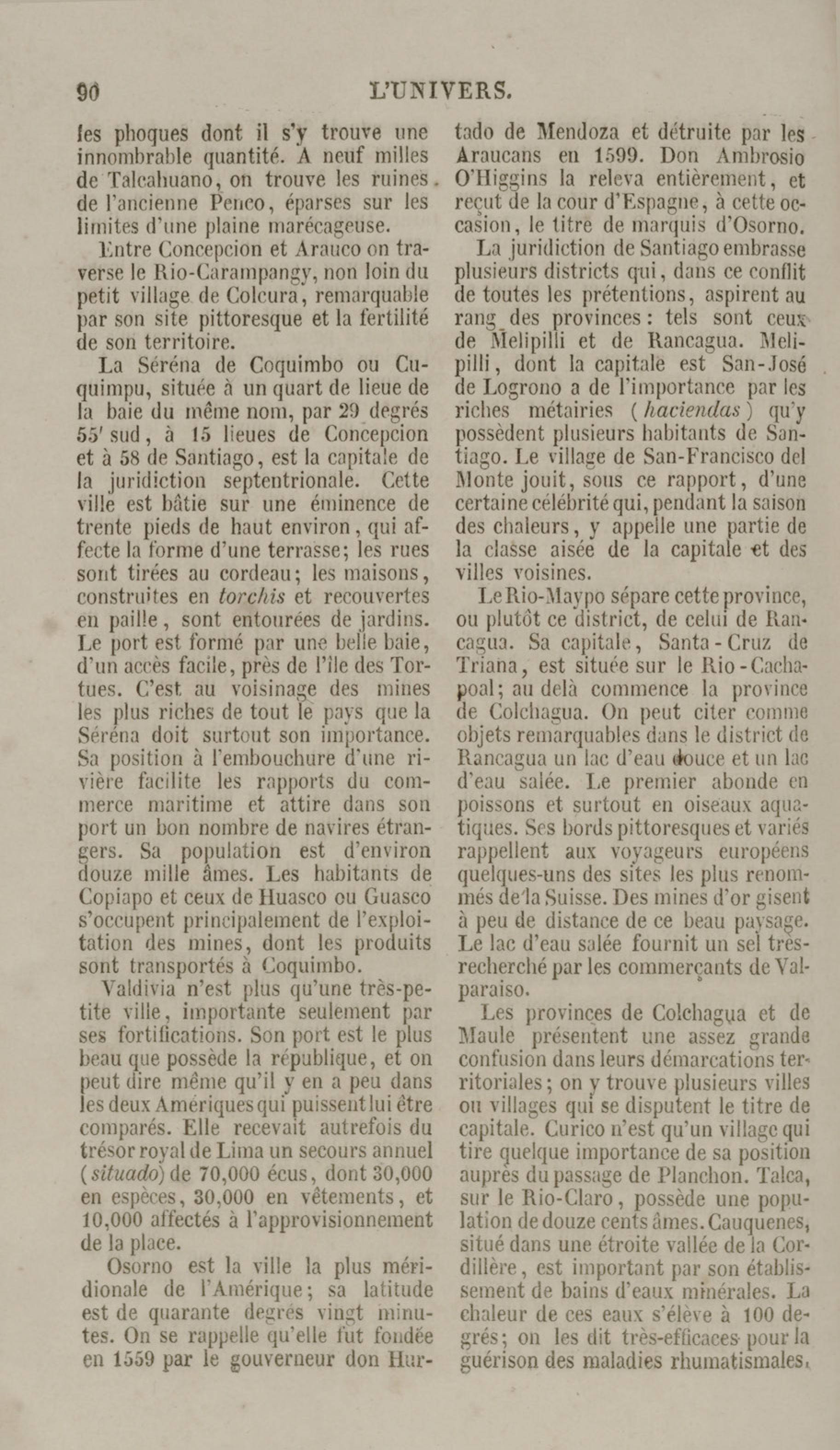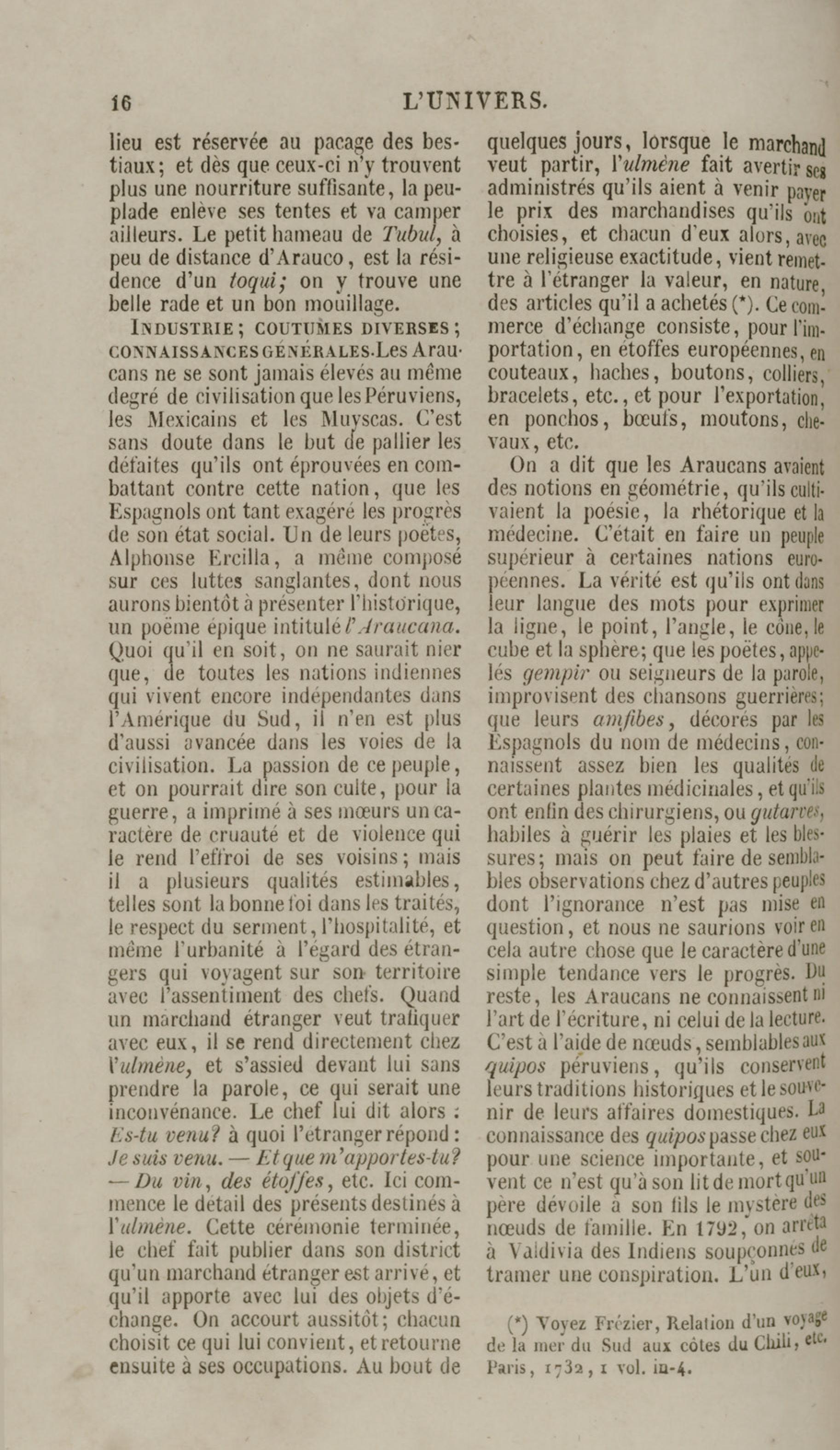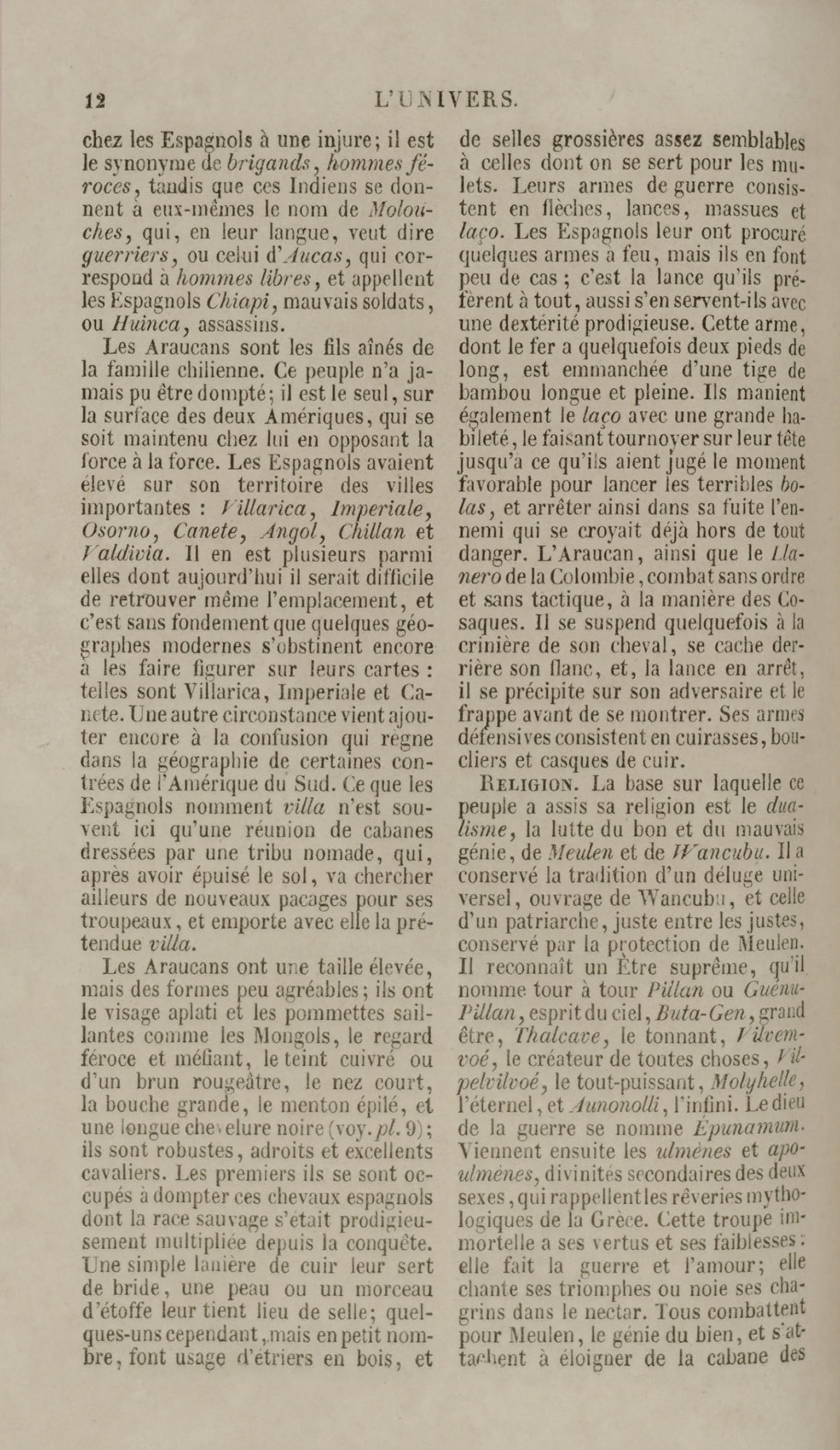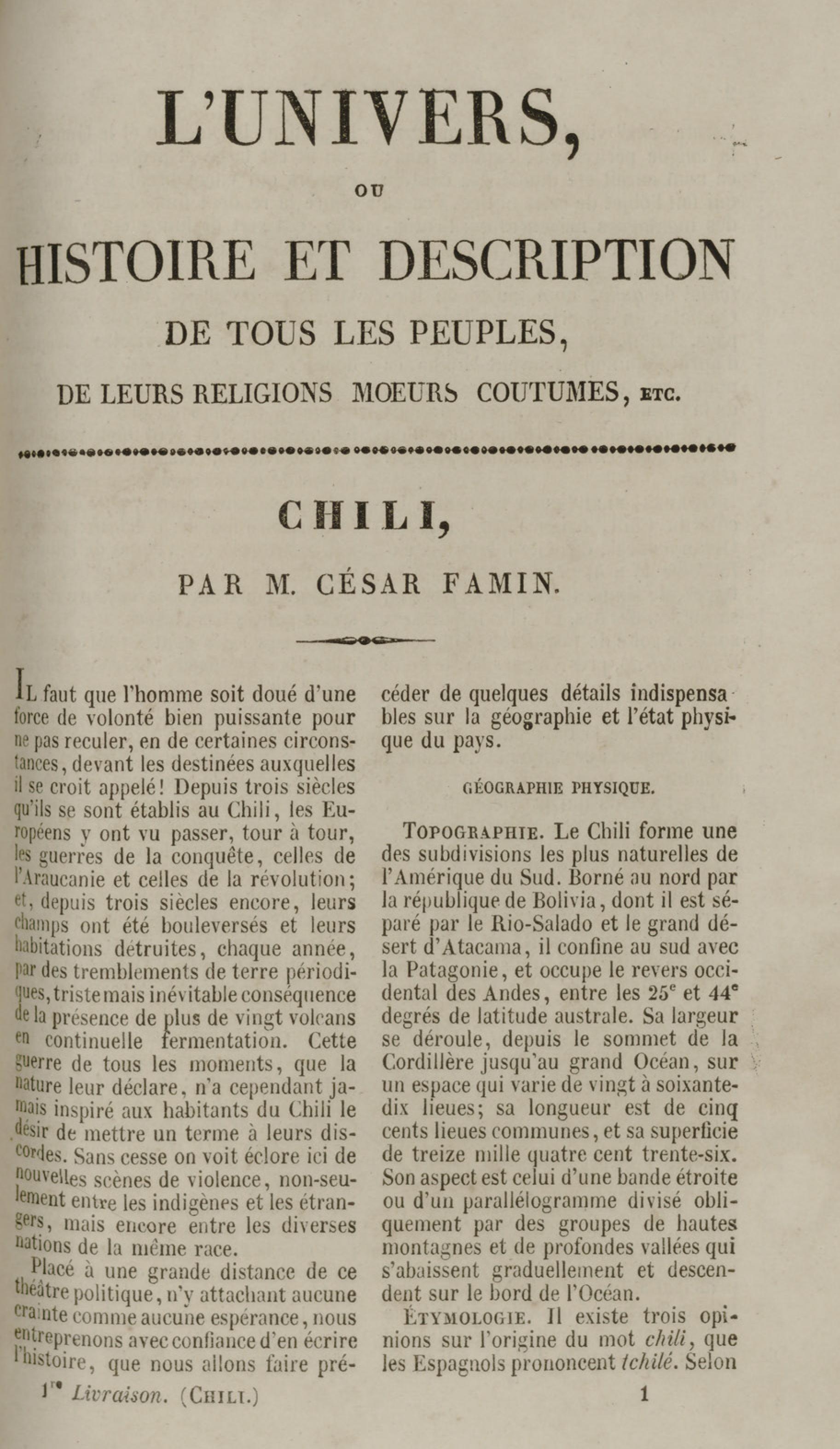 Costumes du peuple Chilien