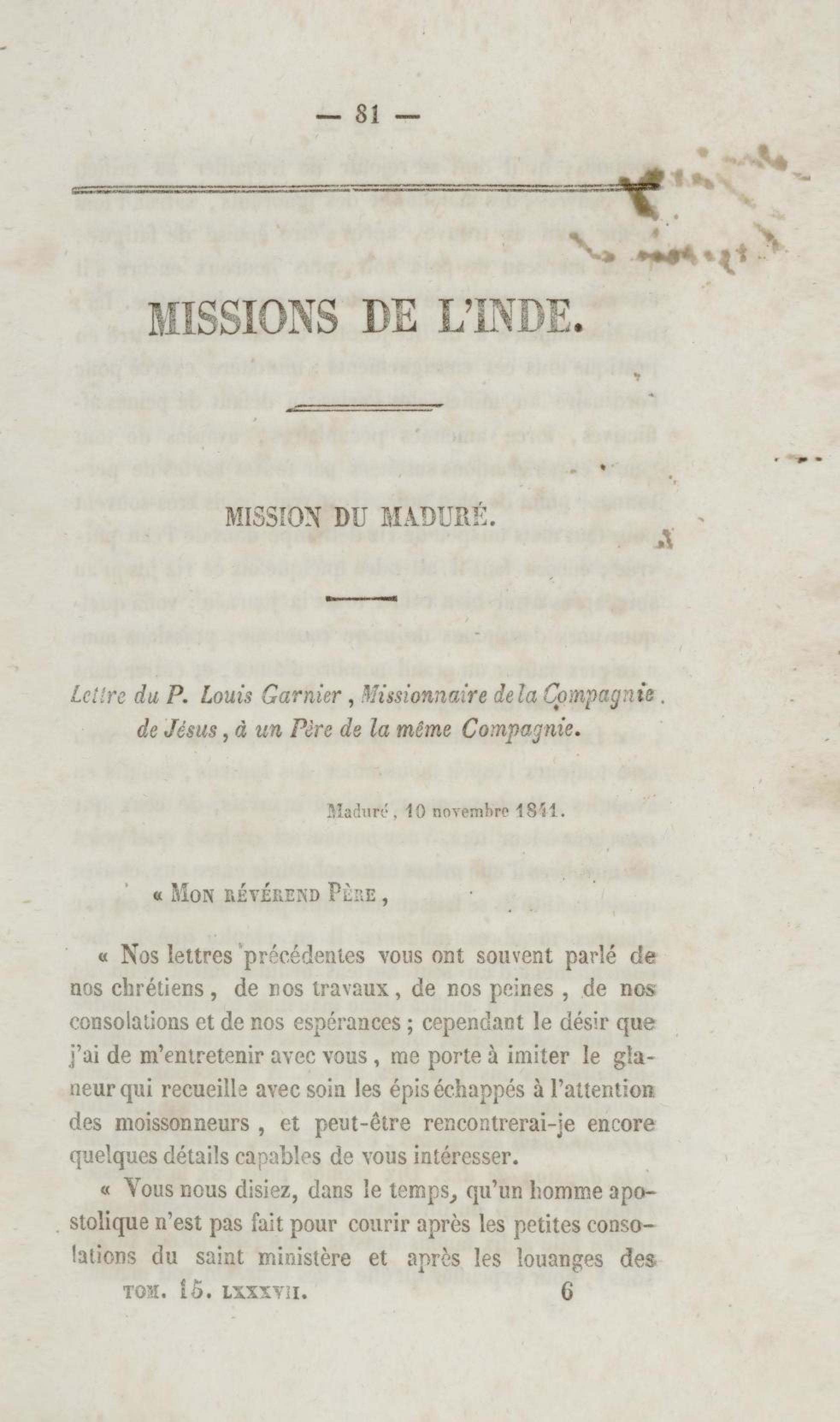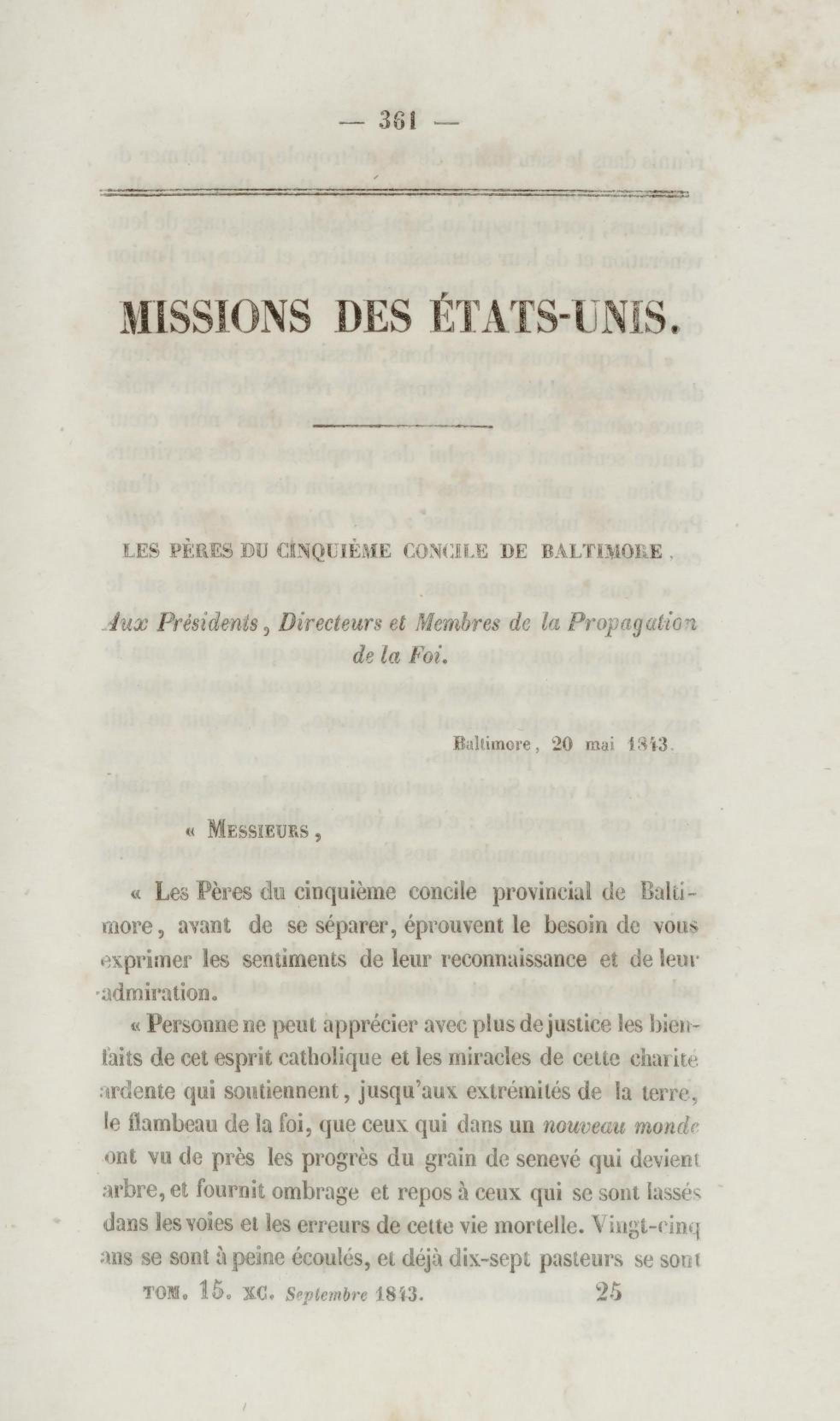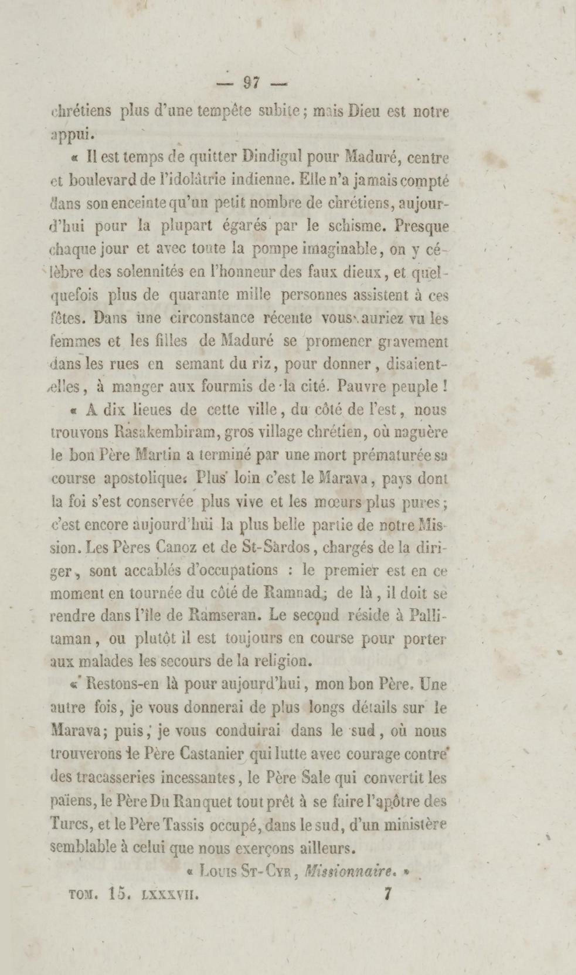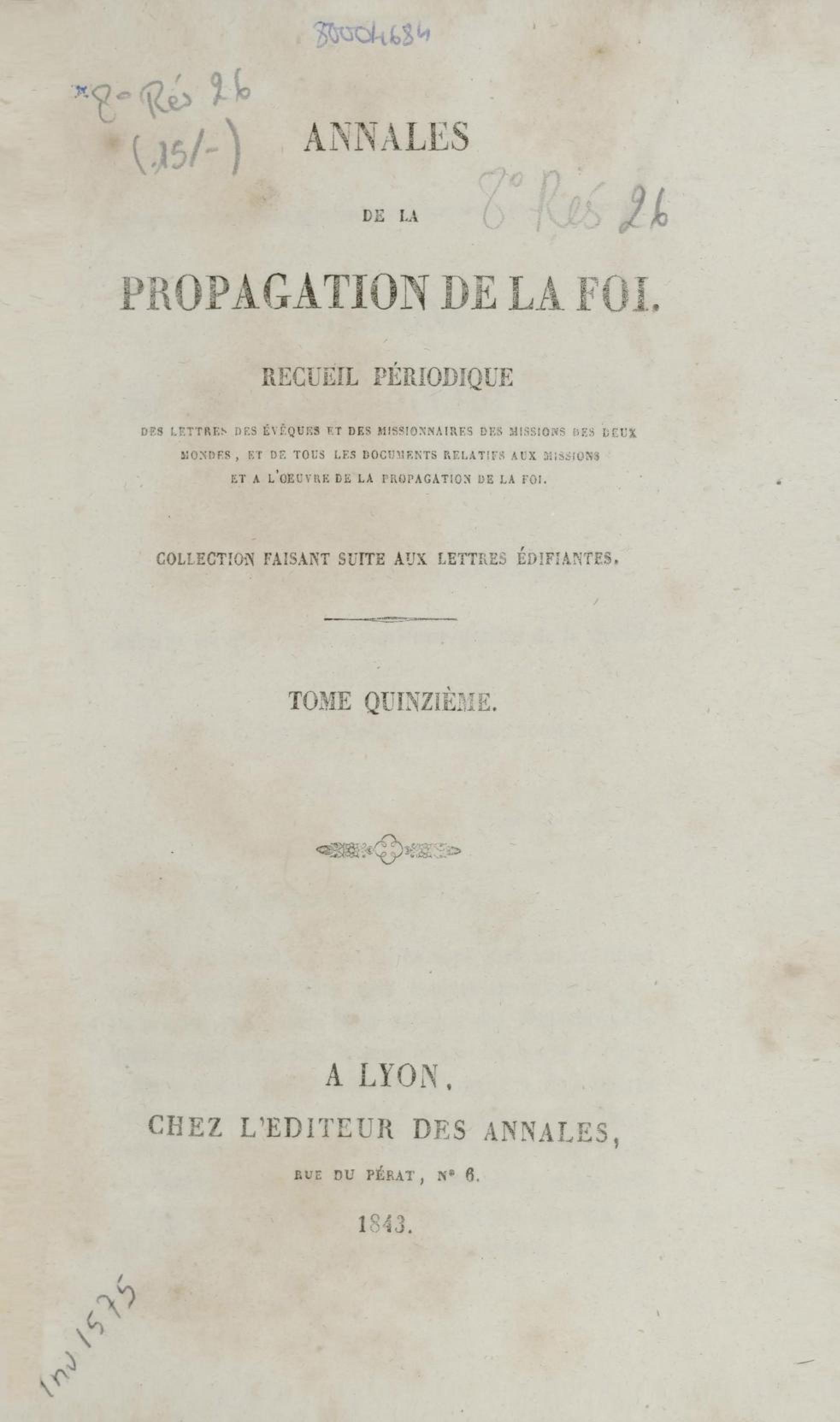 - Annales de la propagation de la foi. recueil périodique. Des lettres des évêques et des missionnaires des missions des deux mondes, et de tous les documents relatifs aux missions et à l'œuvre de la propagation de la foi. Tome quinzième