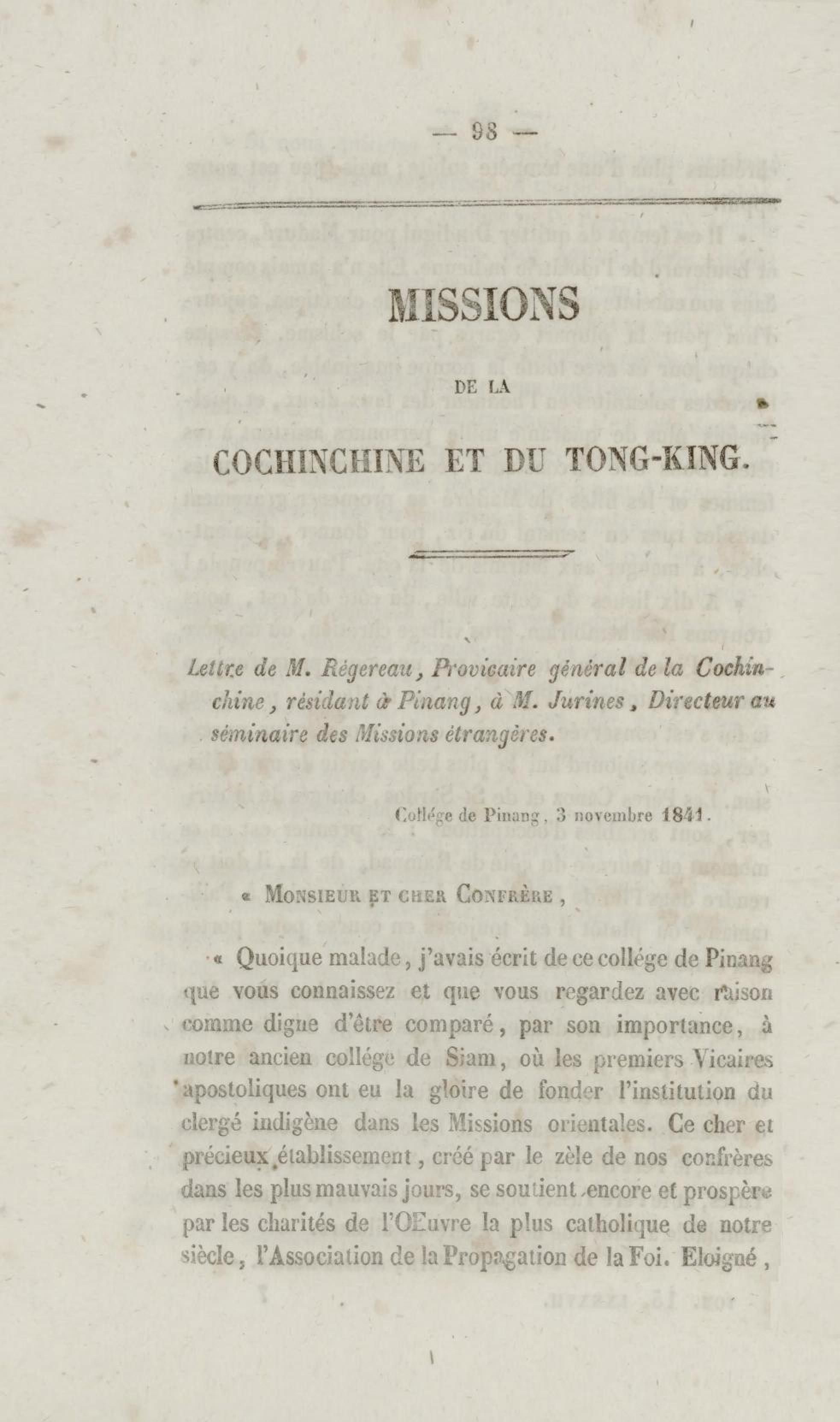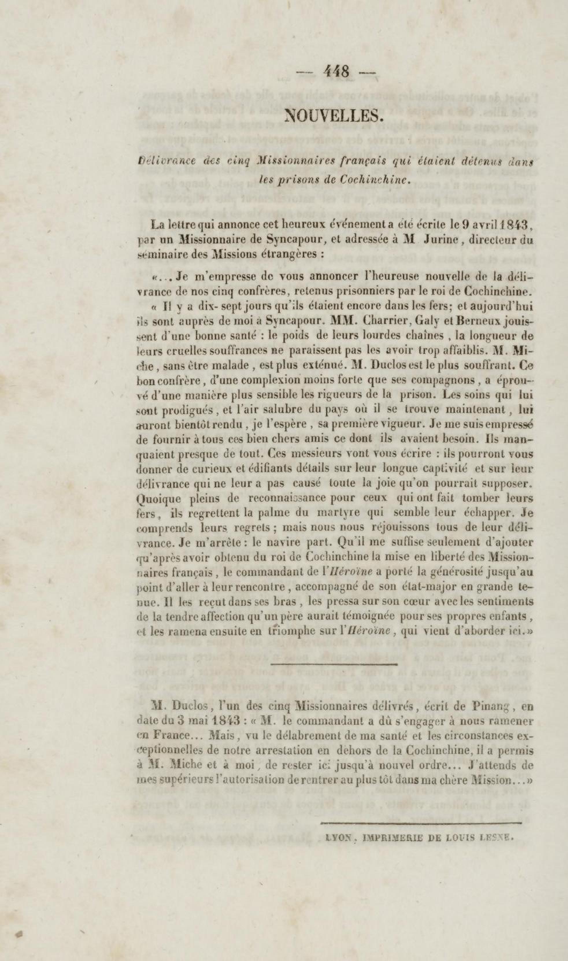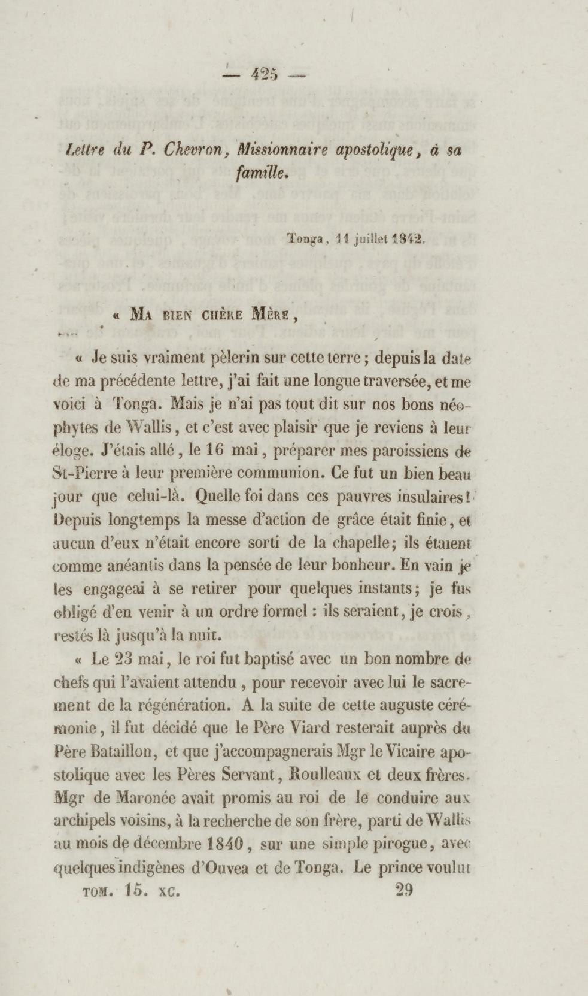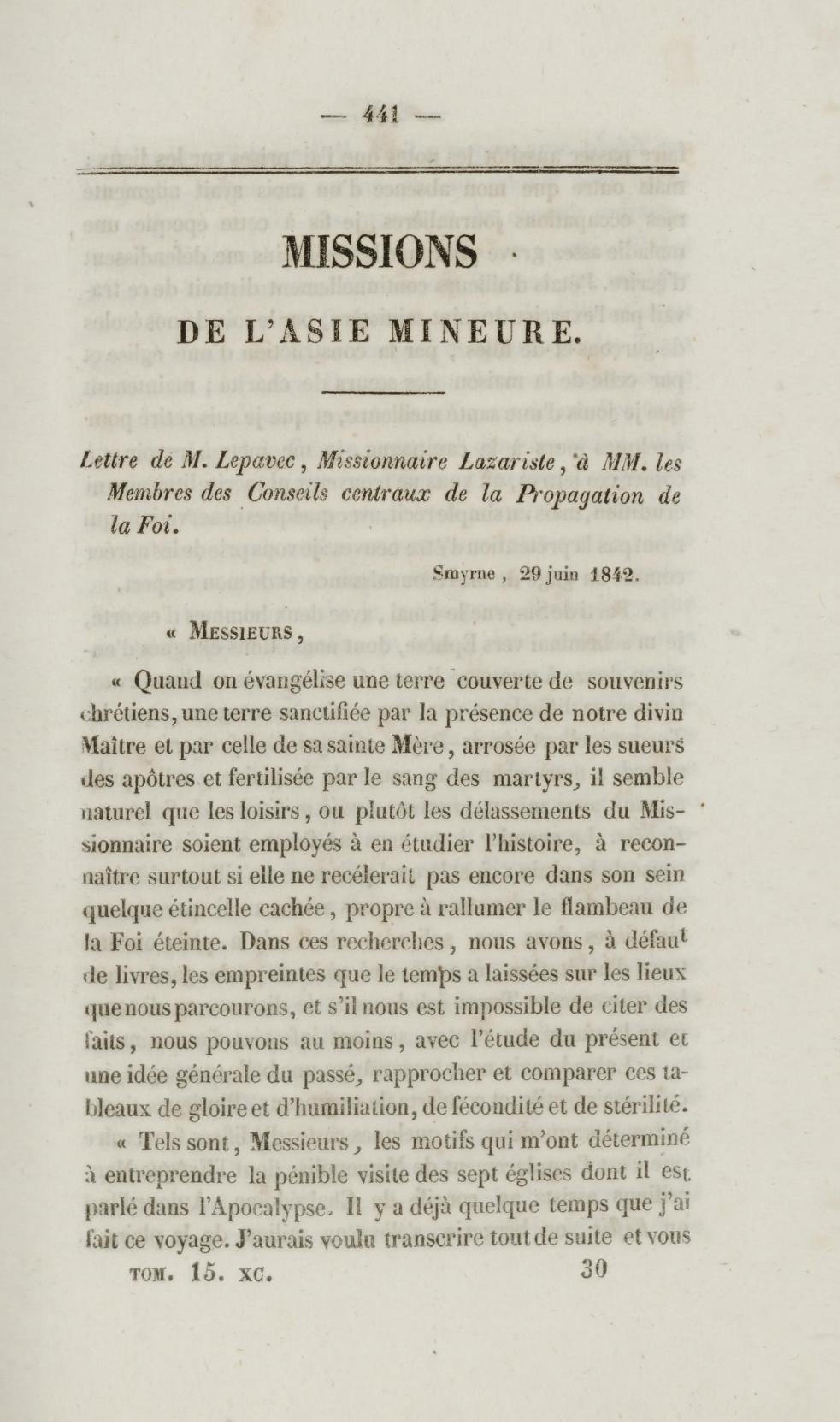 Annales de la propagation de la foi. recueil périodique. Des lettres des évêques et des missionnaires des missions des deux mondes, et de tous les documents relatifs aux missions et à l'œuvre de la propagation de la foi. Tome quinzième
