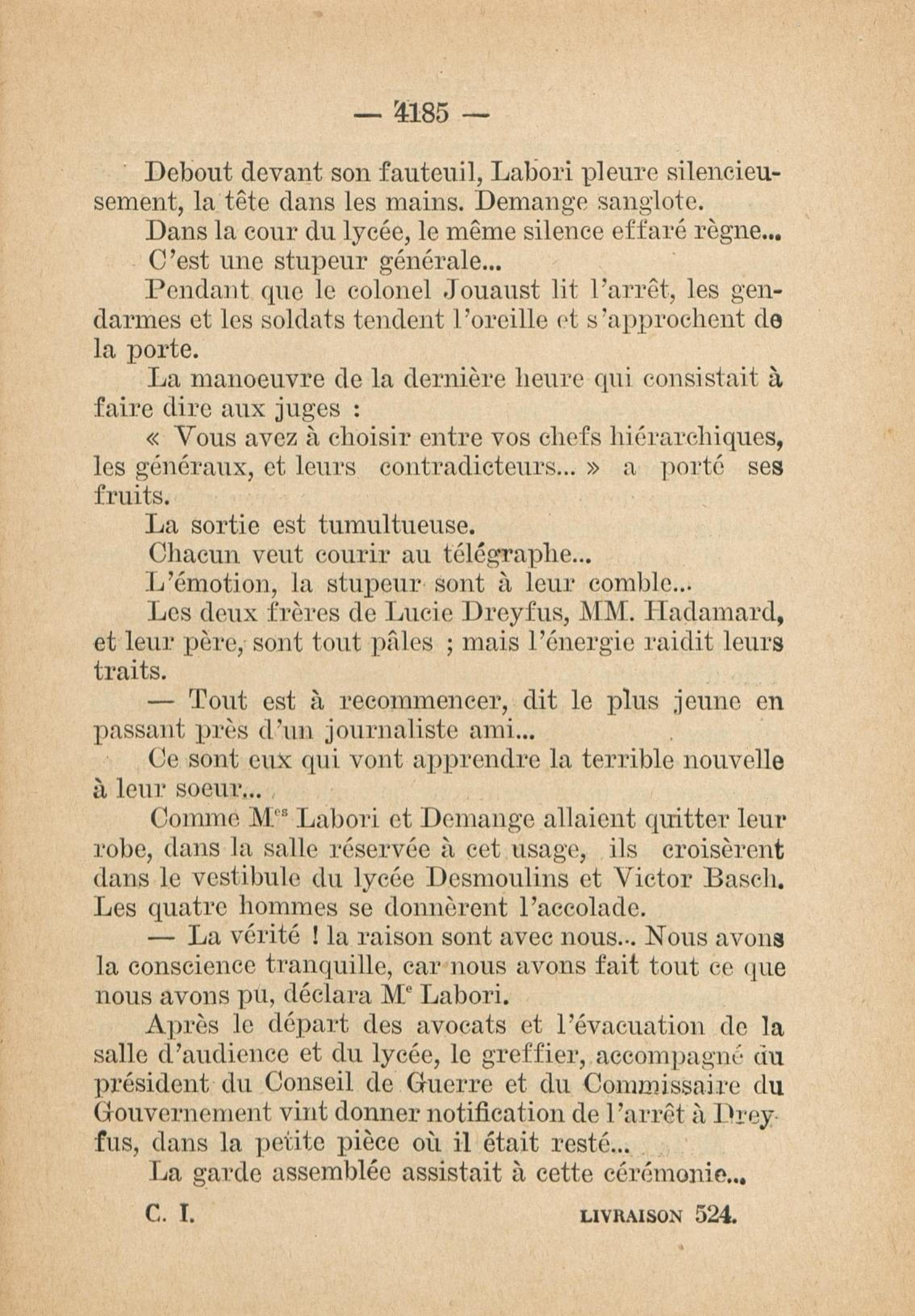 - Roman feuilleton relatant l'affaire Dreyfus, publié de 1931 à 1933, en fascicule hebdomaire (162 n° de 32 pages, soit 5184 pages)