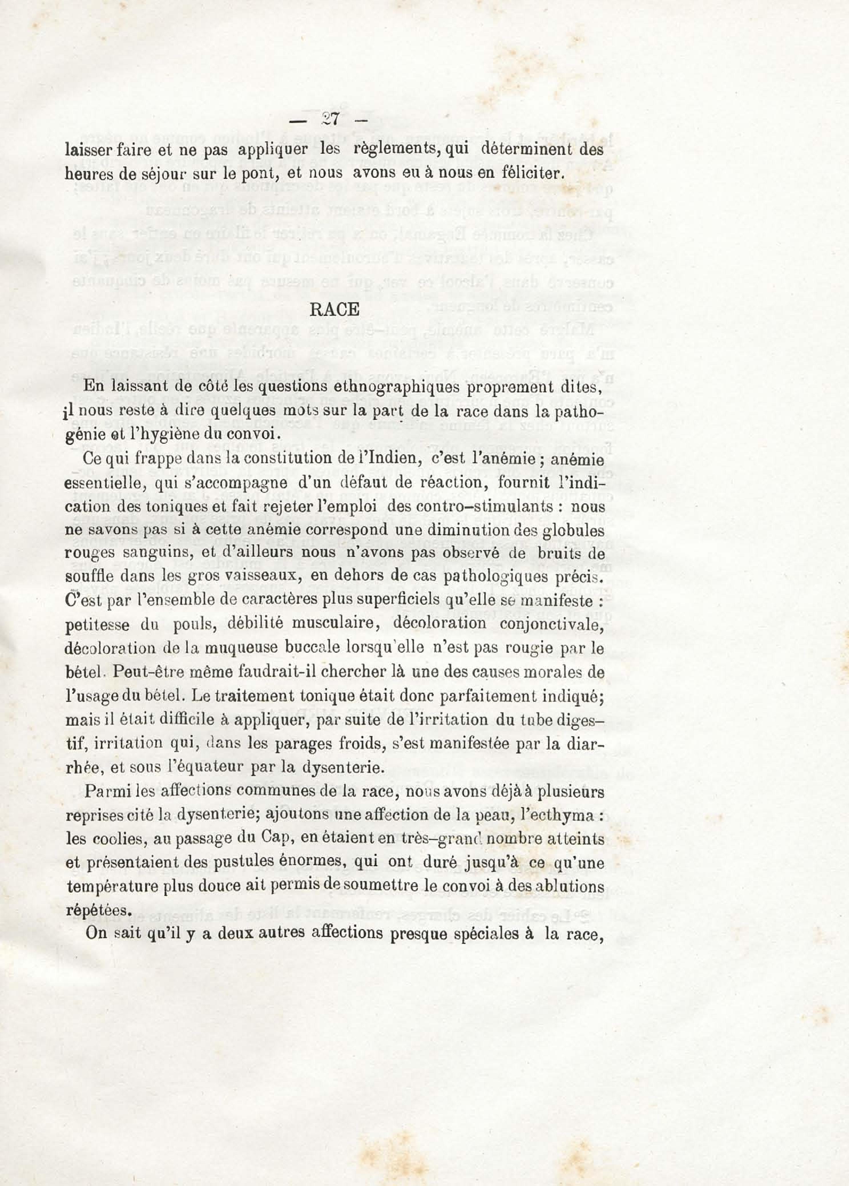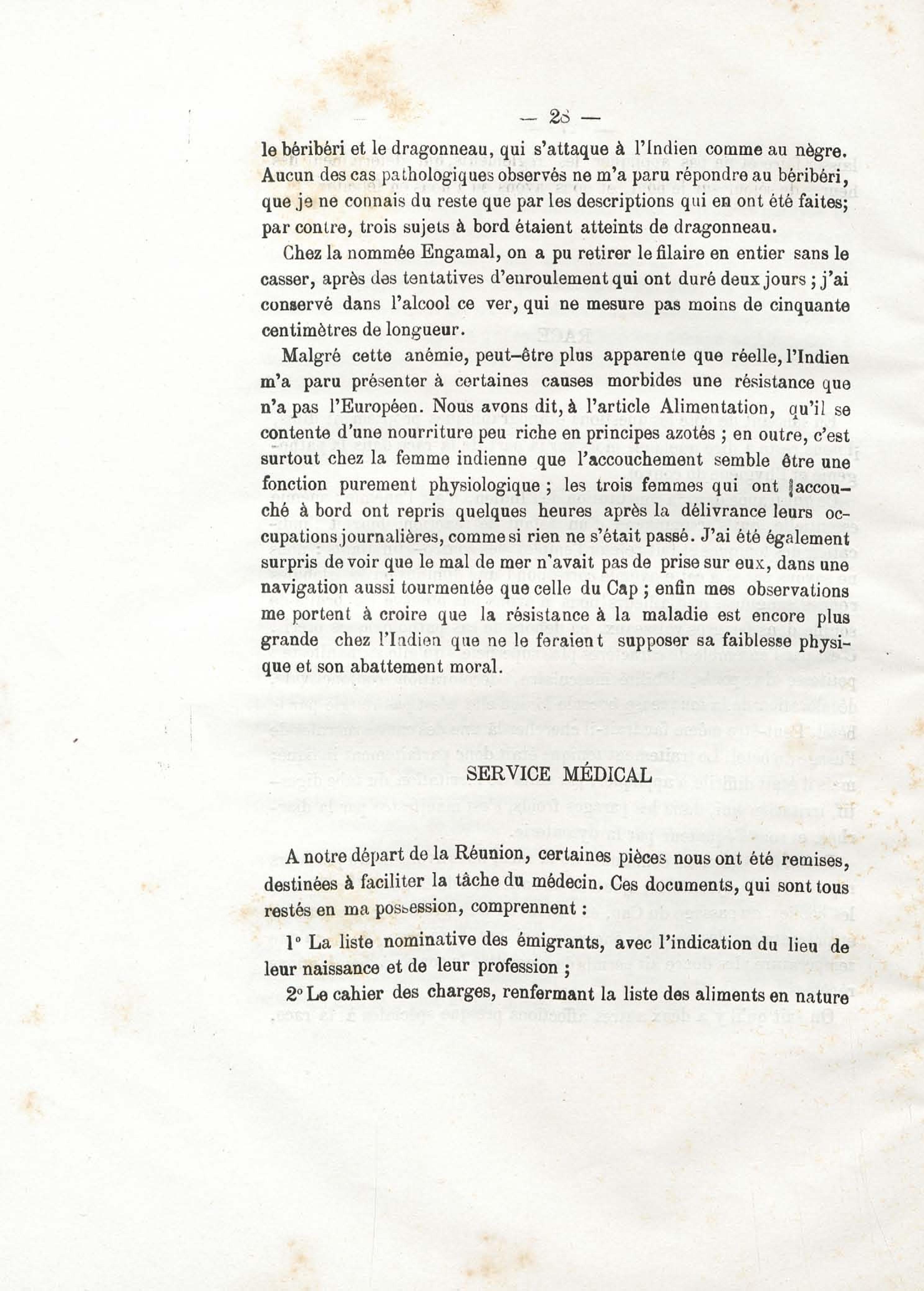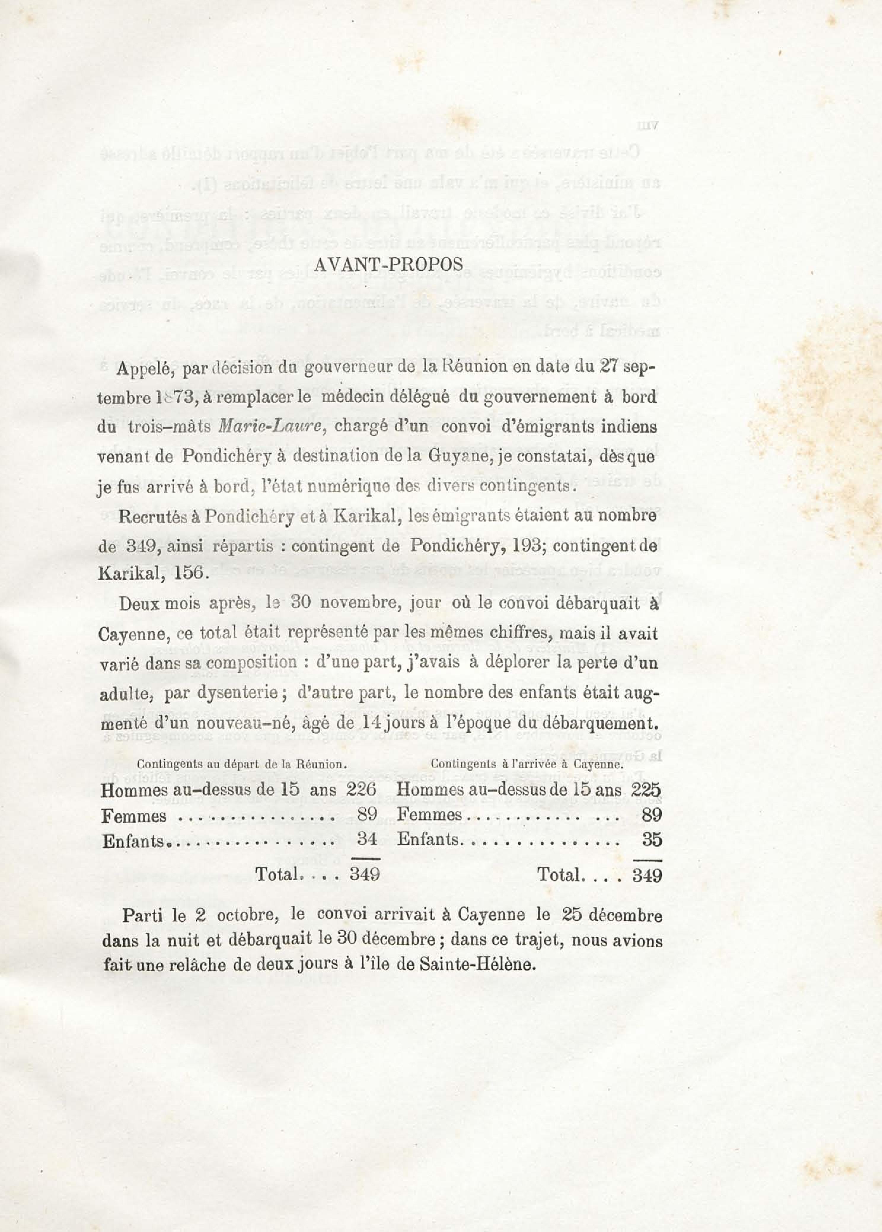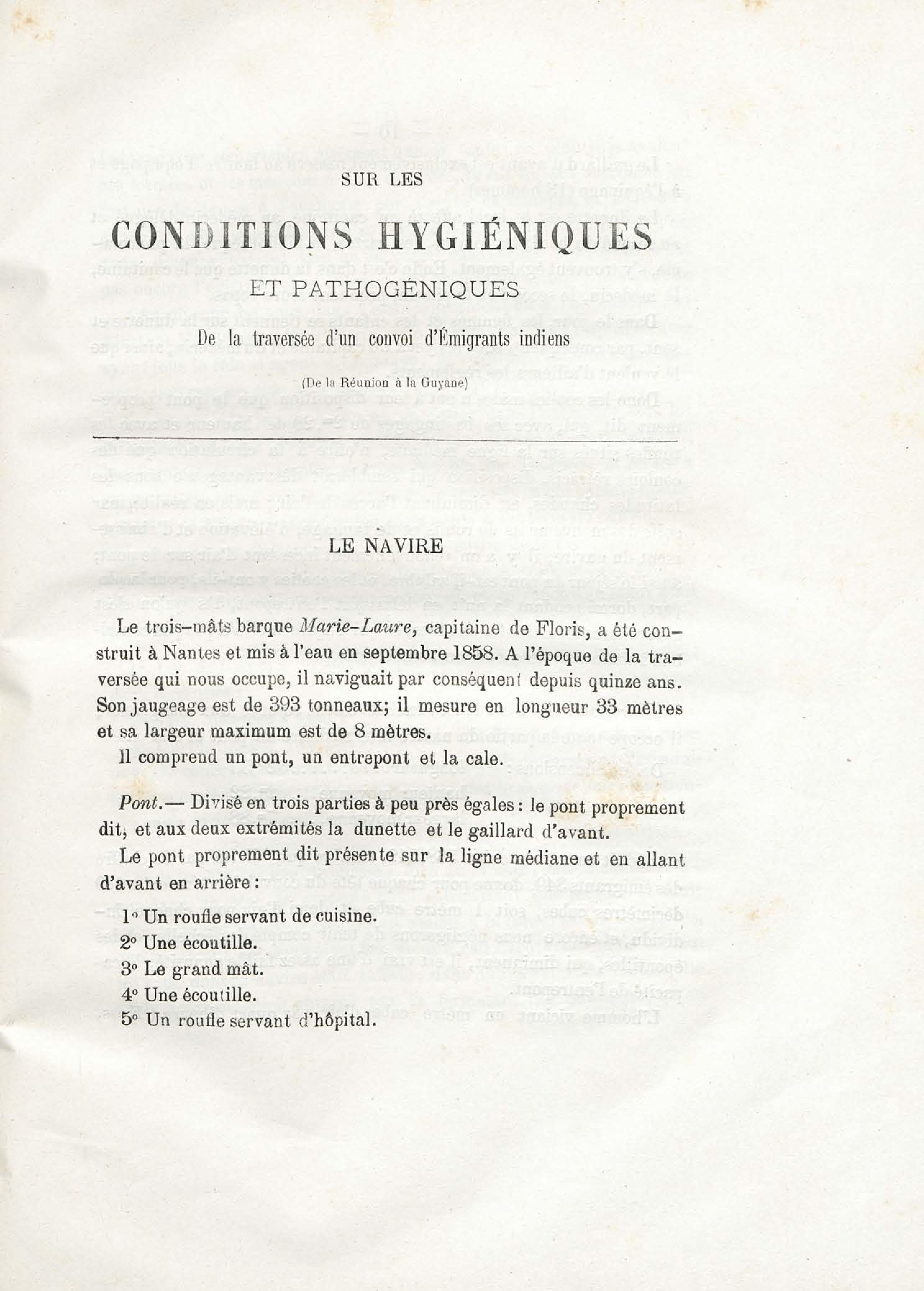 Sur les conditions hygiéniques et pathogéniques de la traversée d'un convoi d'émigrants Indiens (de la Réunion à la Guyane française)