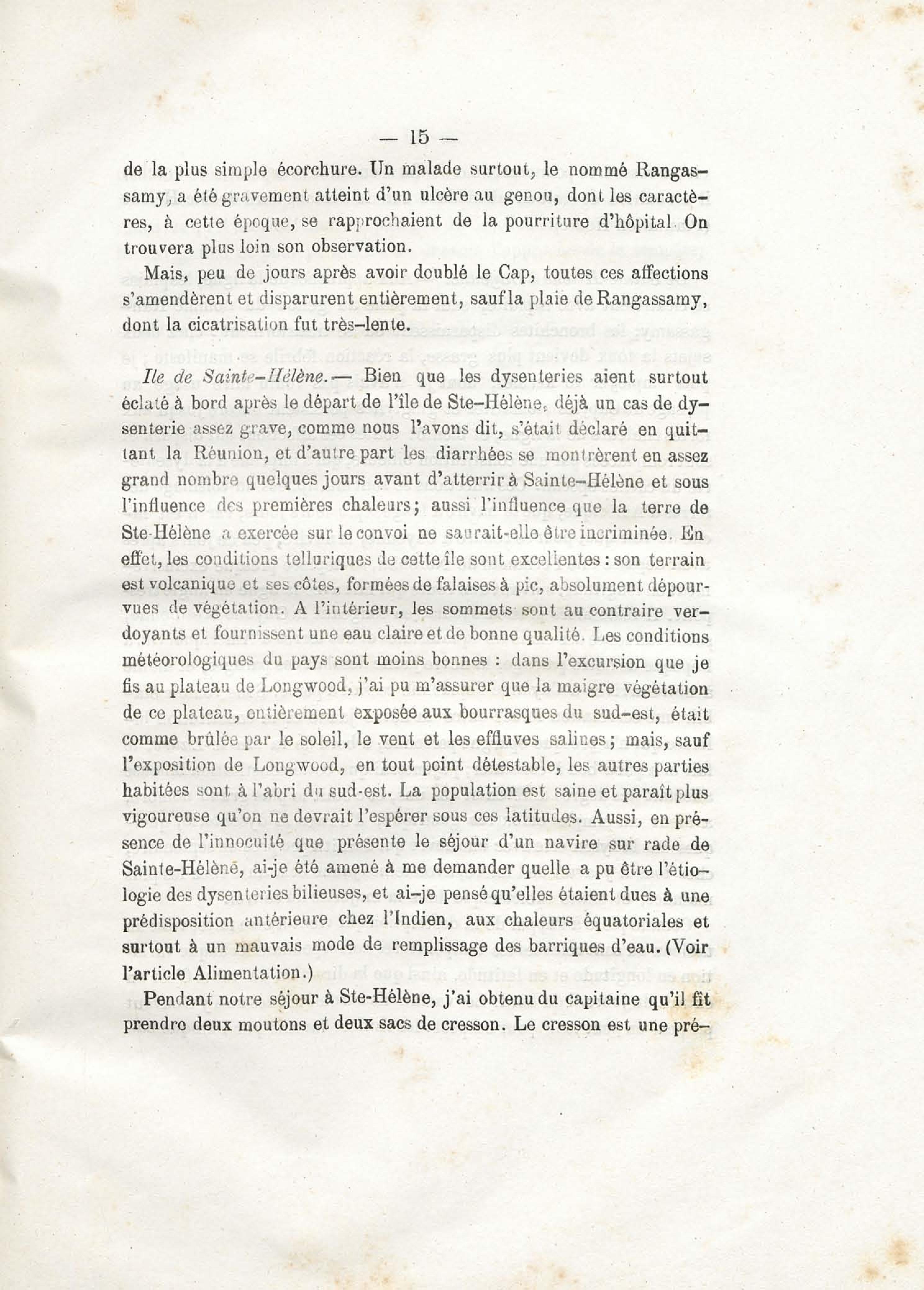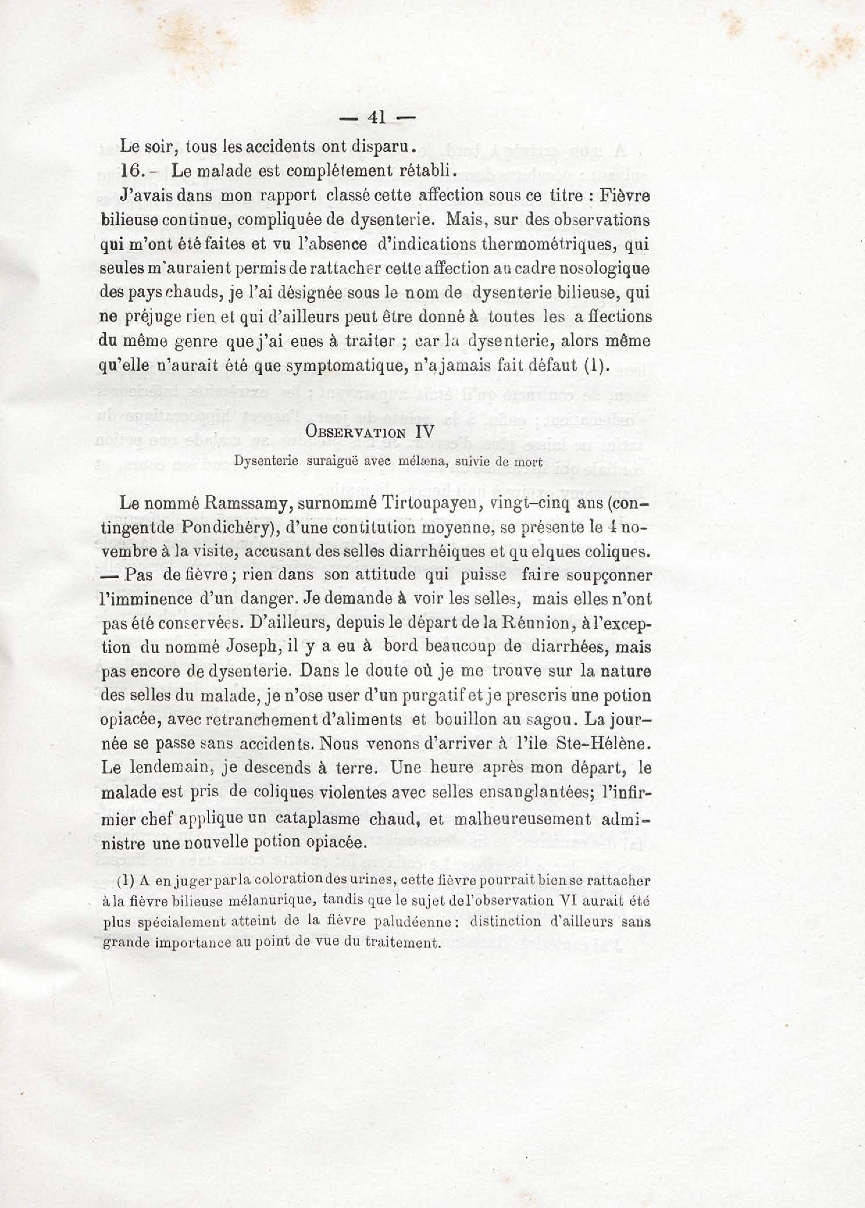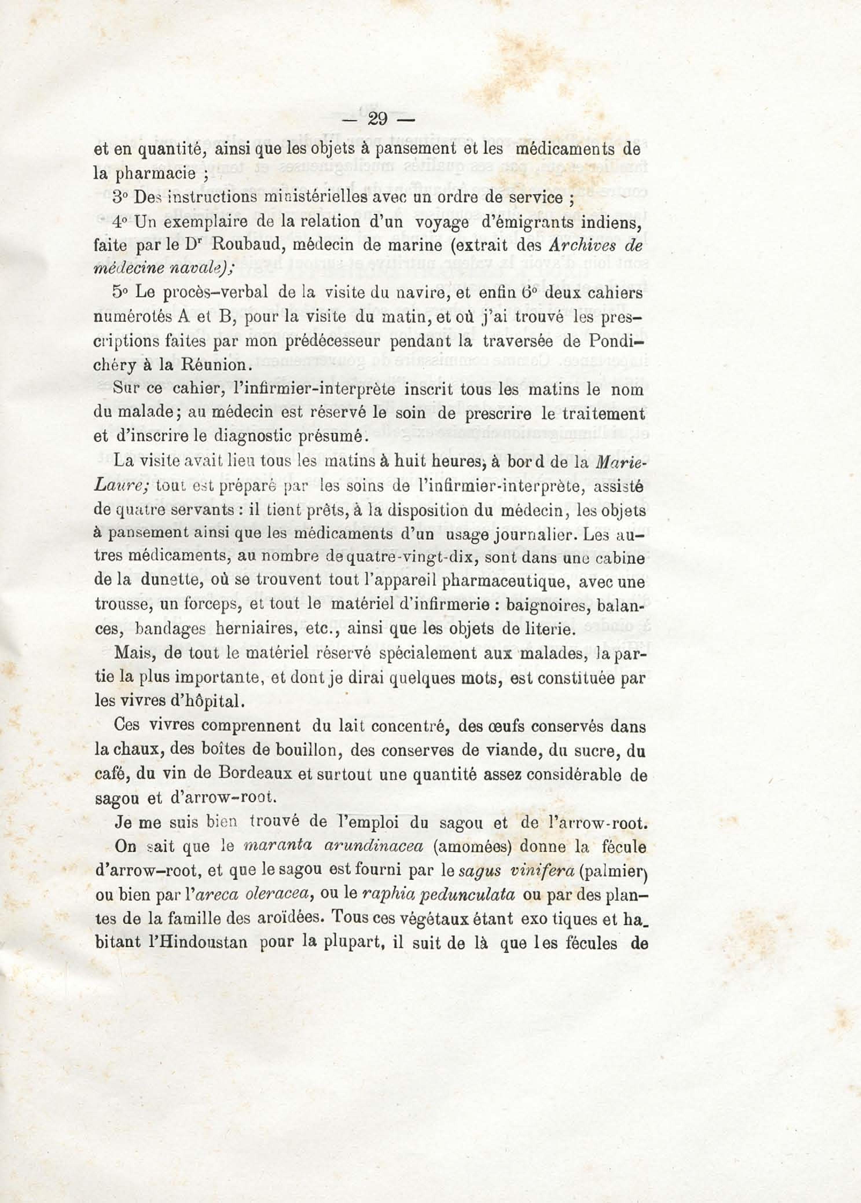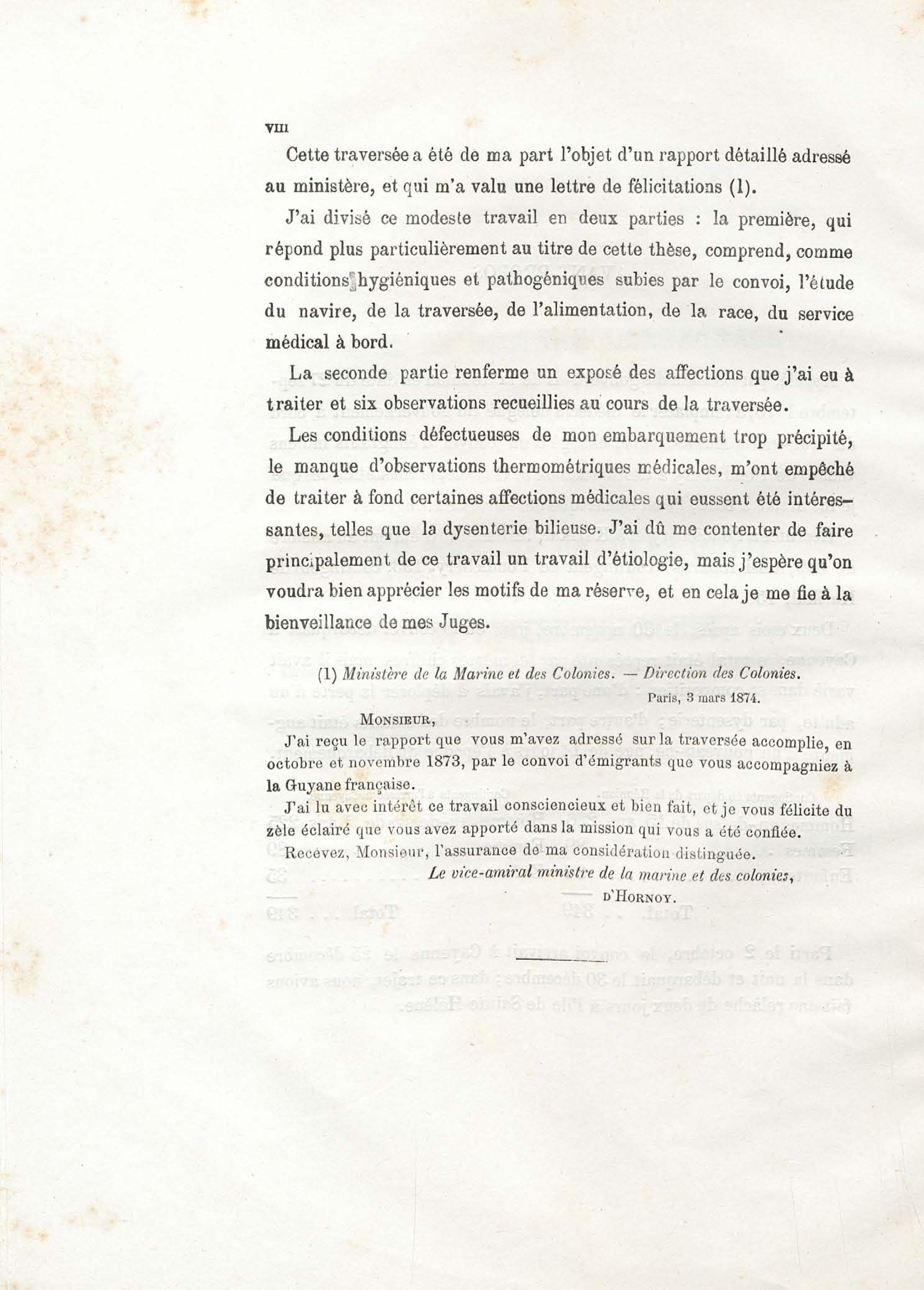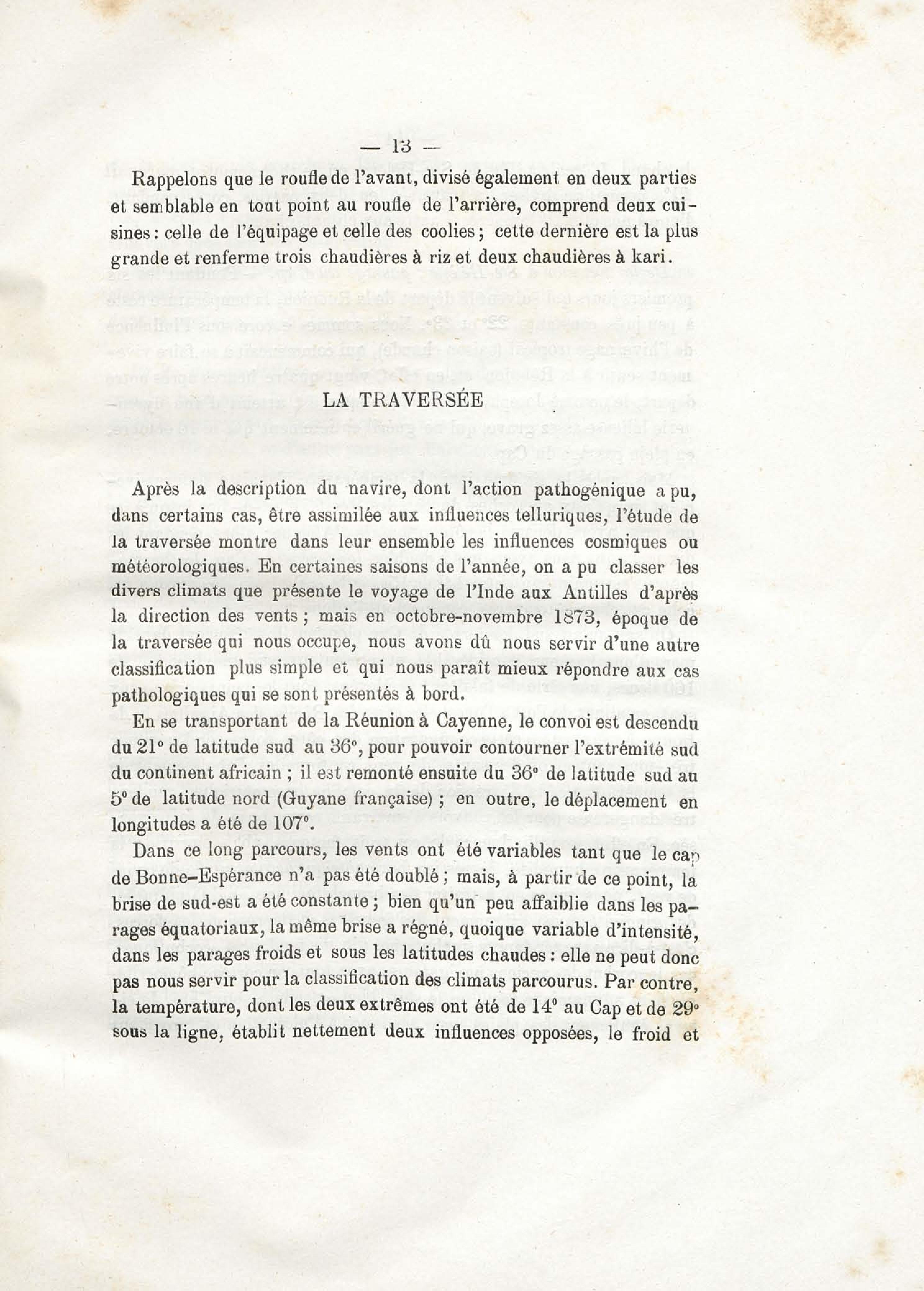 Sur les conditions hygiéniques et pathogéniques de la traversée d'un convoi d'émigrants Indiens (de la Réunion à la Guyane française)