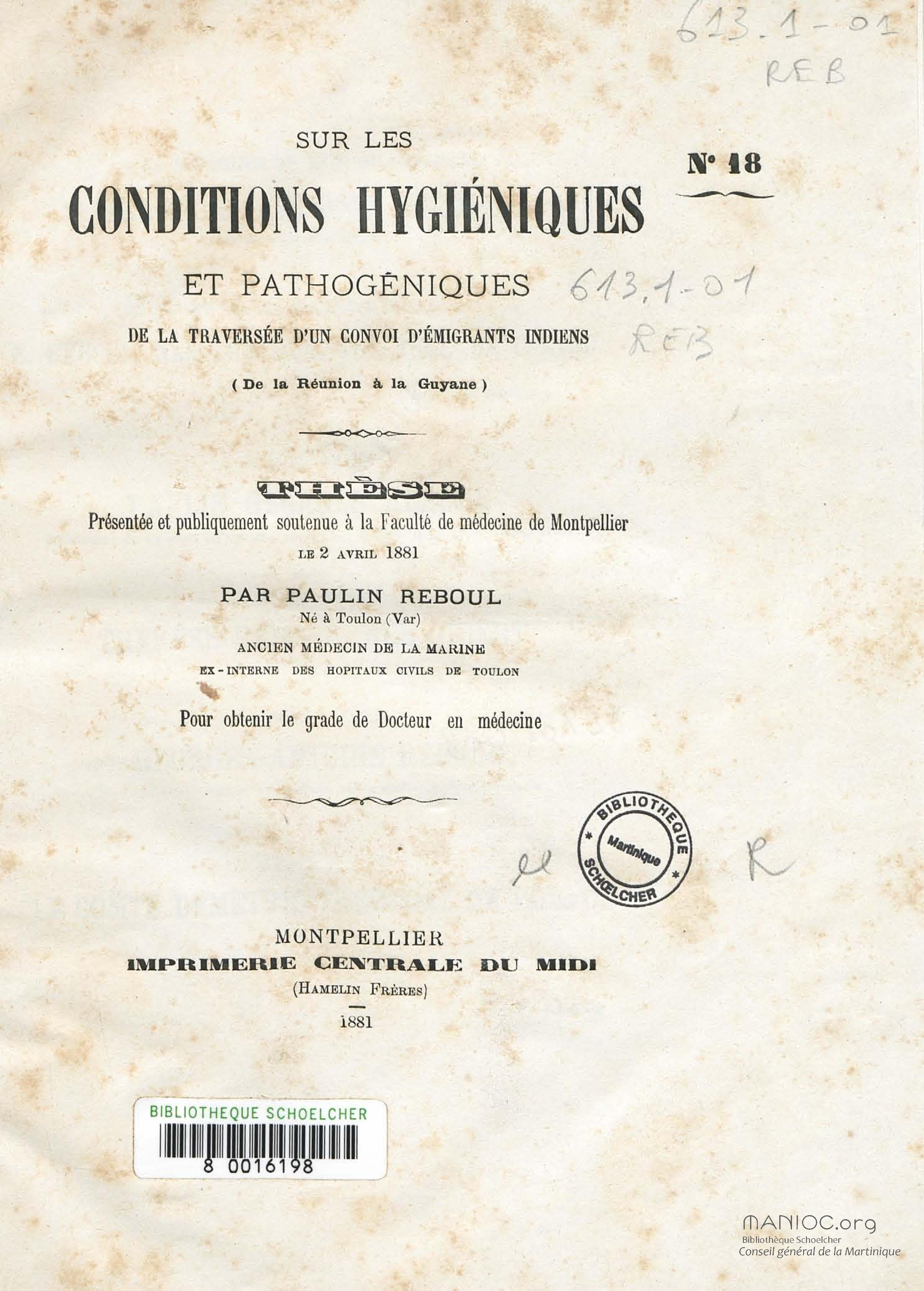 - Th. : Méd. : Montpellier : 1881