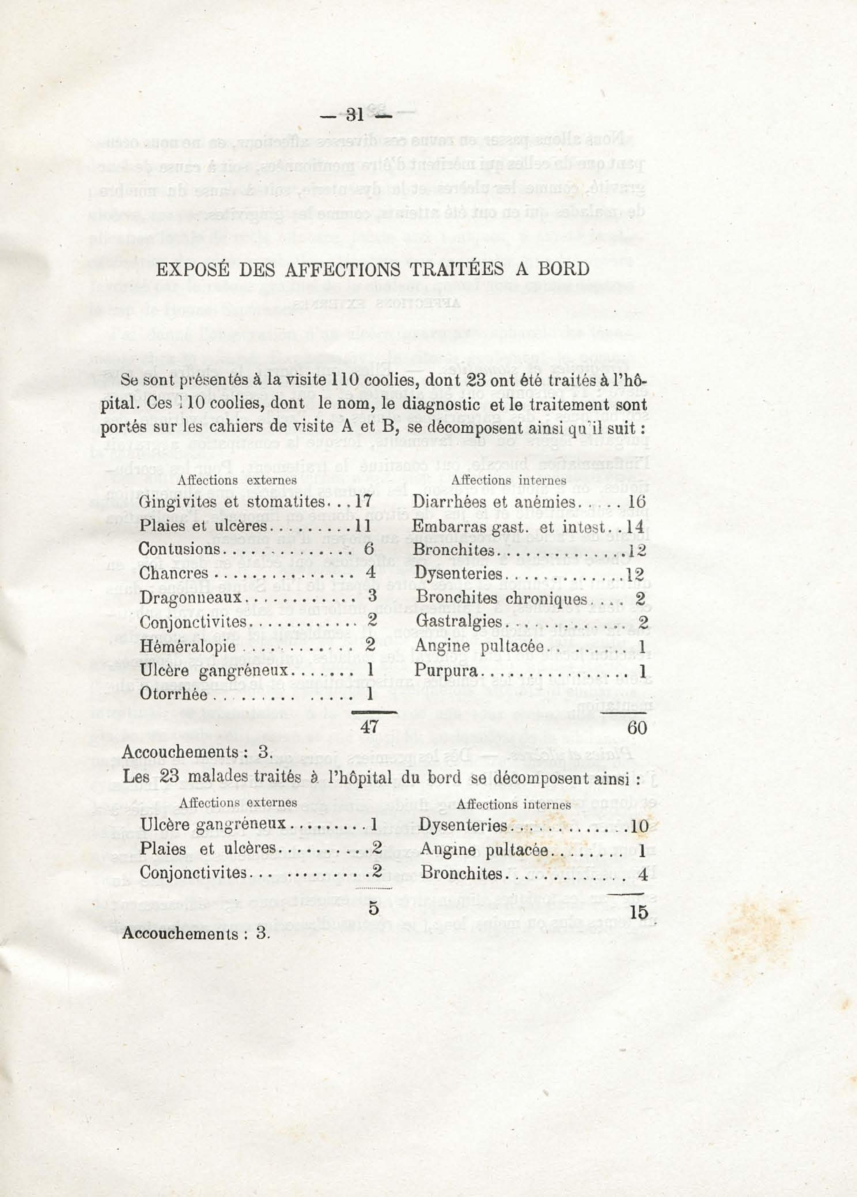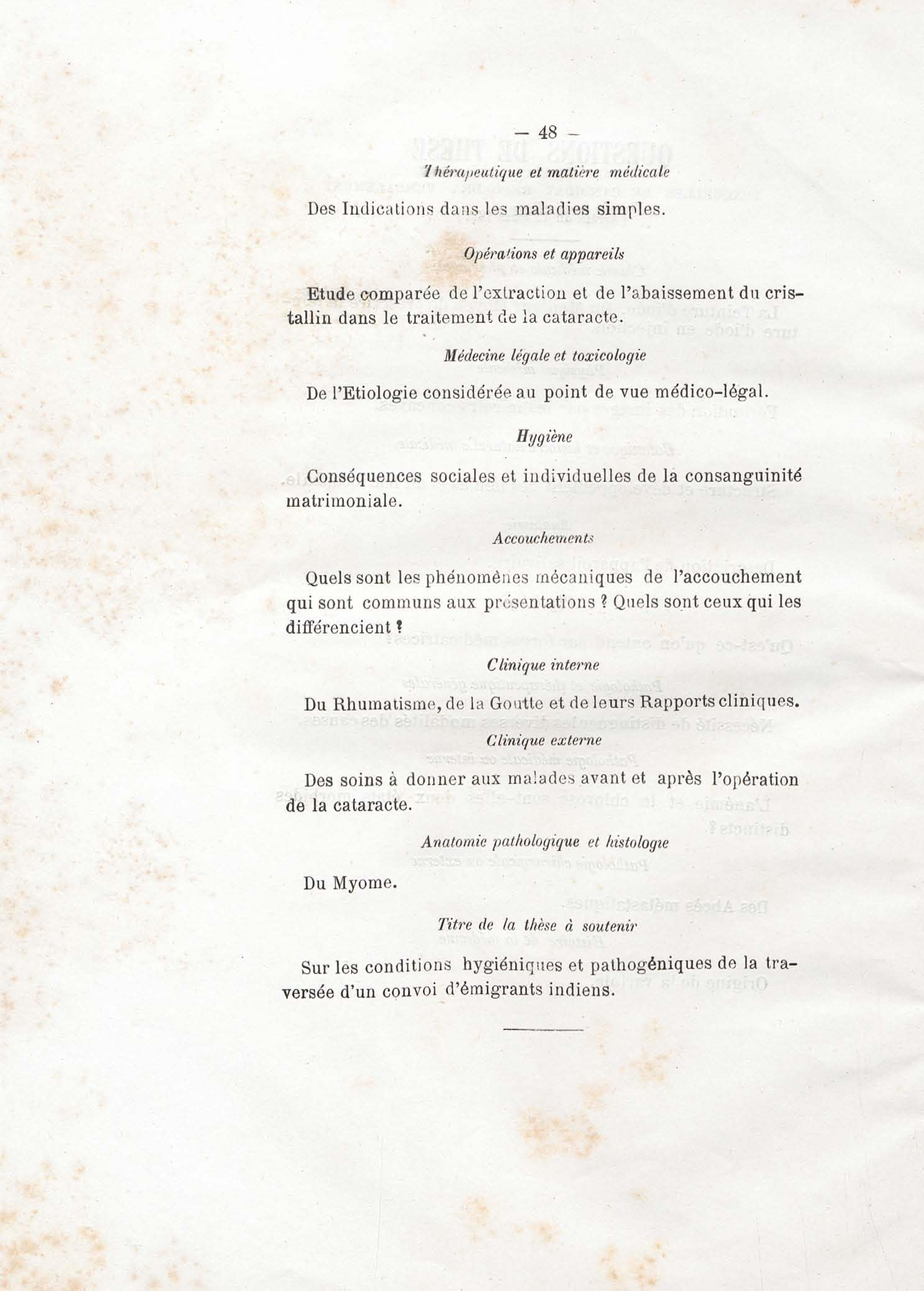 - Sur les conditions hygiéniques et pathogéniques de la traversée d'un convoi d'émigrants Indiens (de la Réunion à la Guyane française)