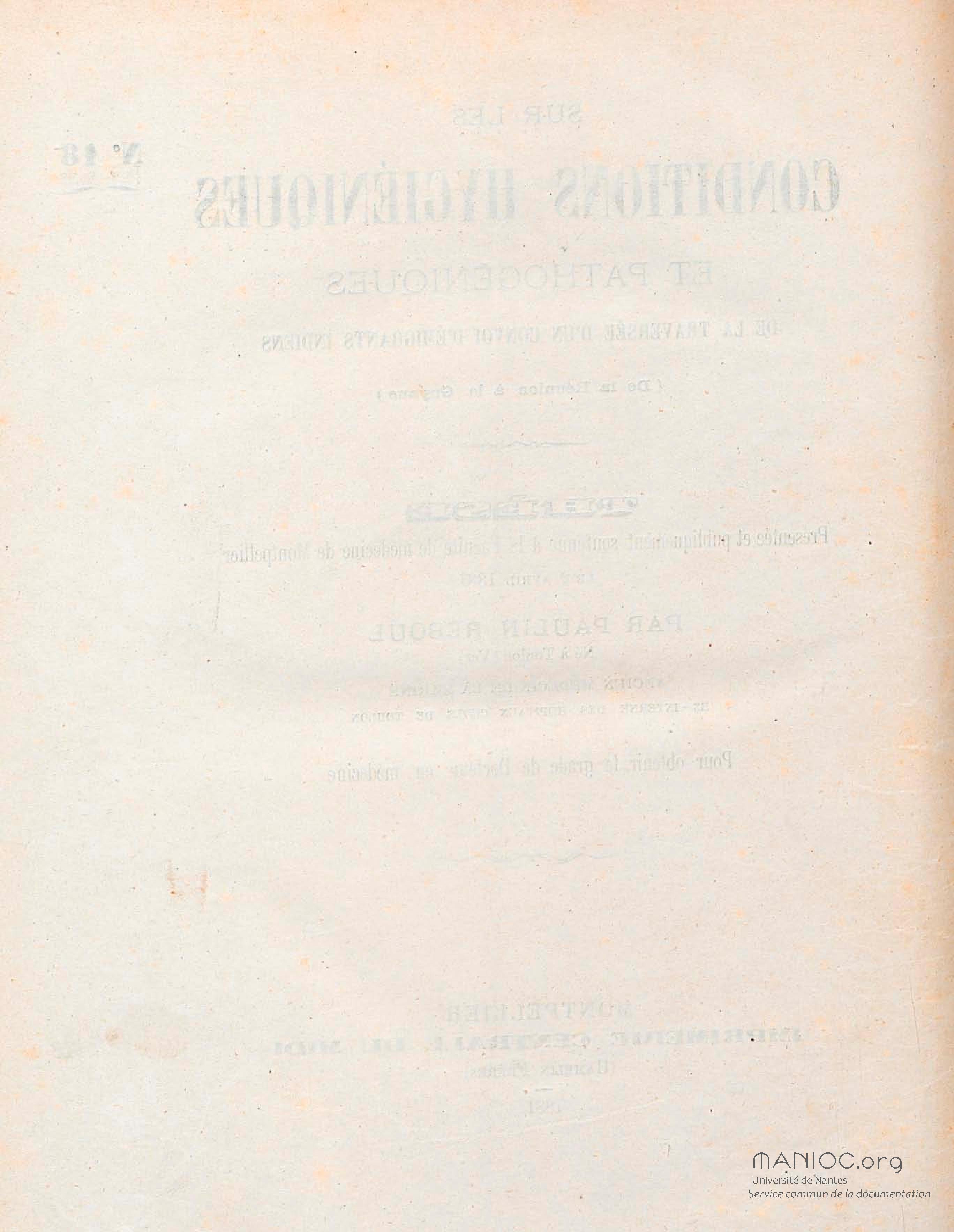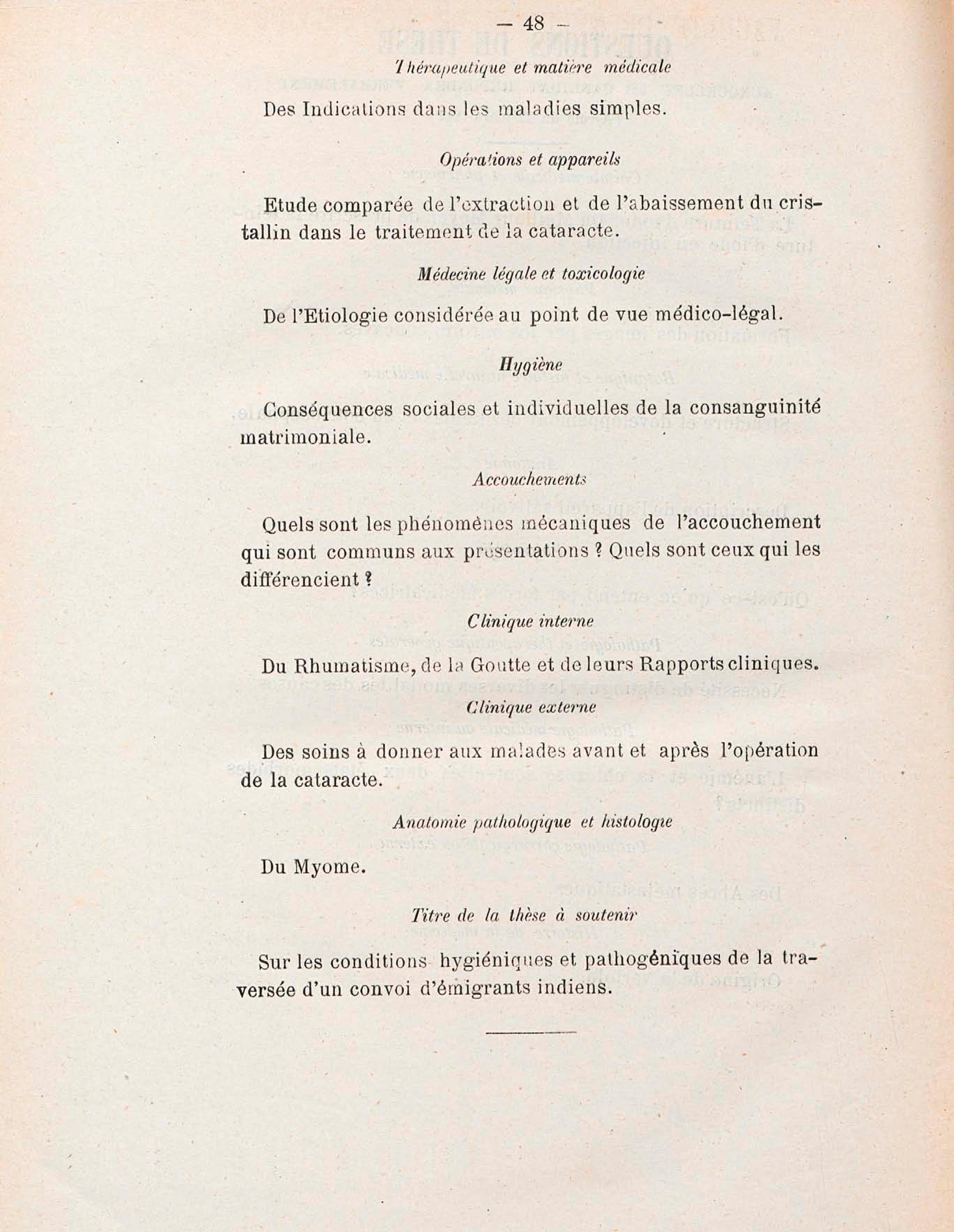 Contenus avec " Est auteur de : Sur les conditions hygiéniques et pathogéniques de la traversée d'un convoi d'émigrants indiens, de la Réunion à la Guyane : thèse présentée et publiquement soutenue à la Faculté de médecine de Montpellier le 2 avril 1881 "