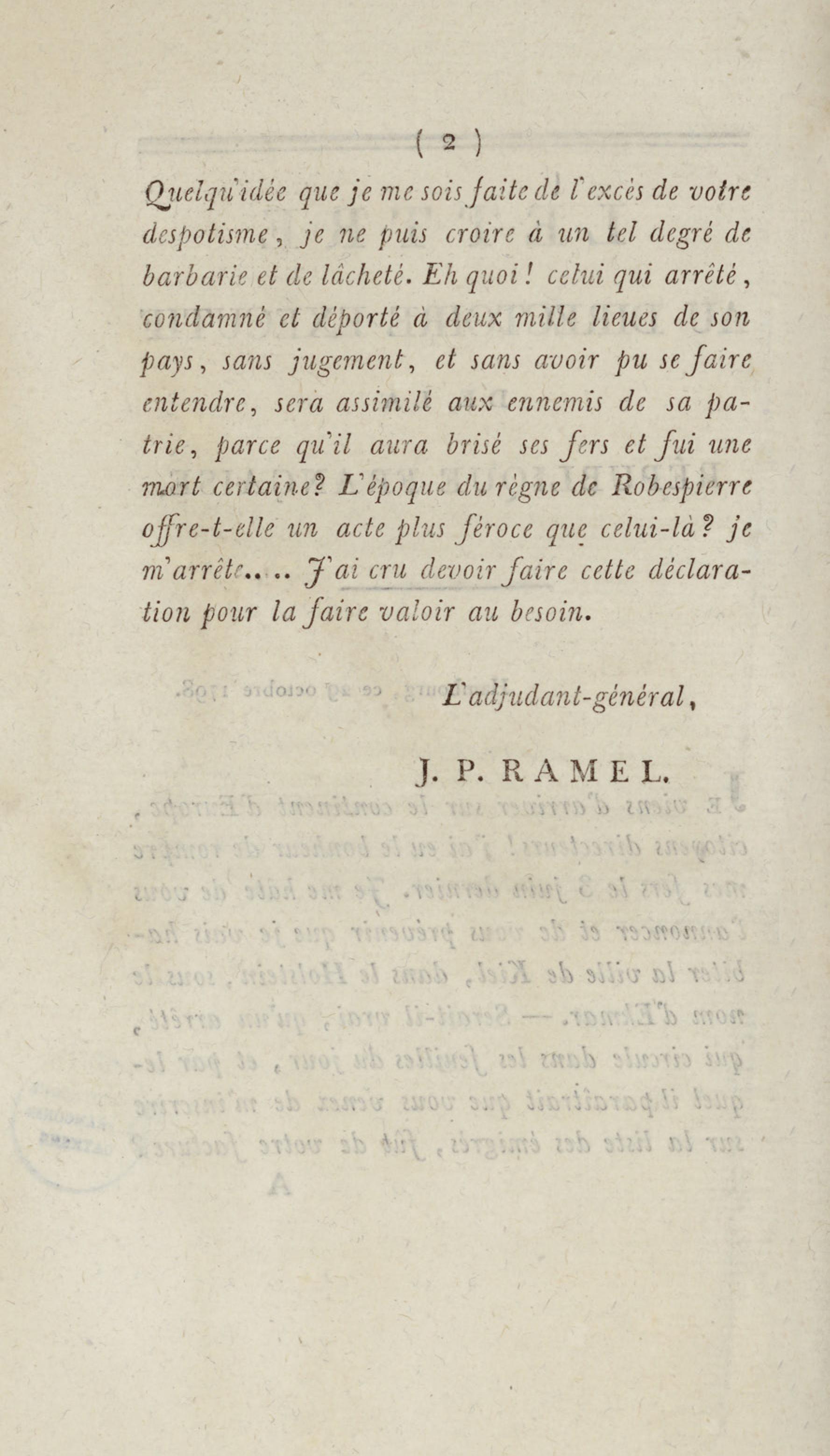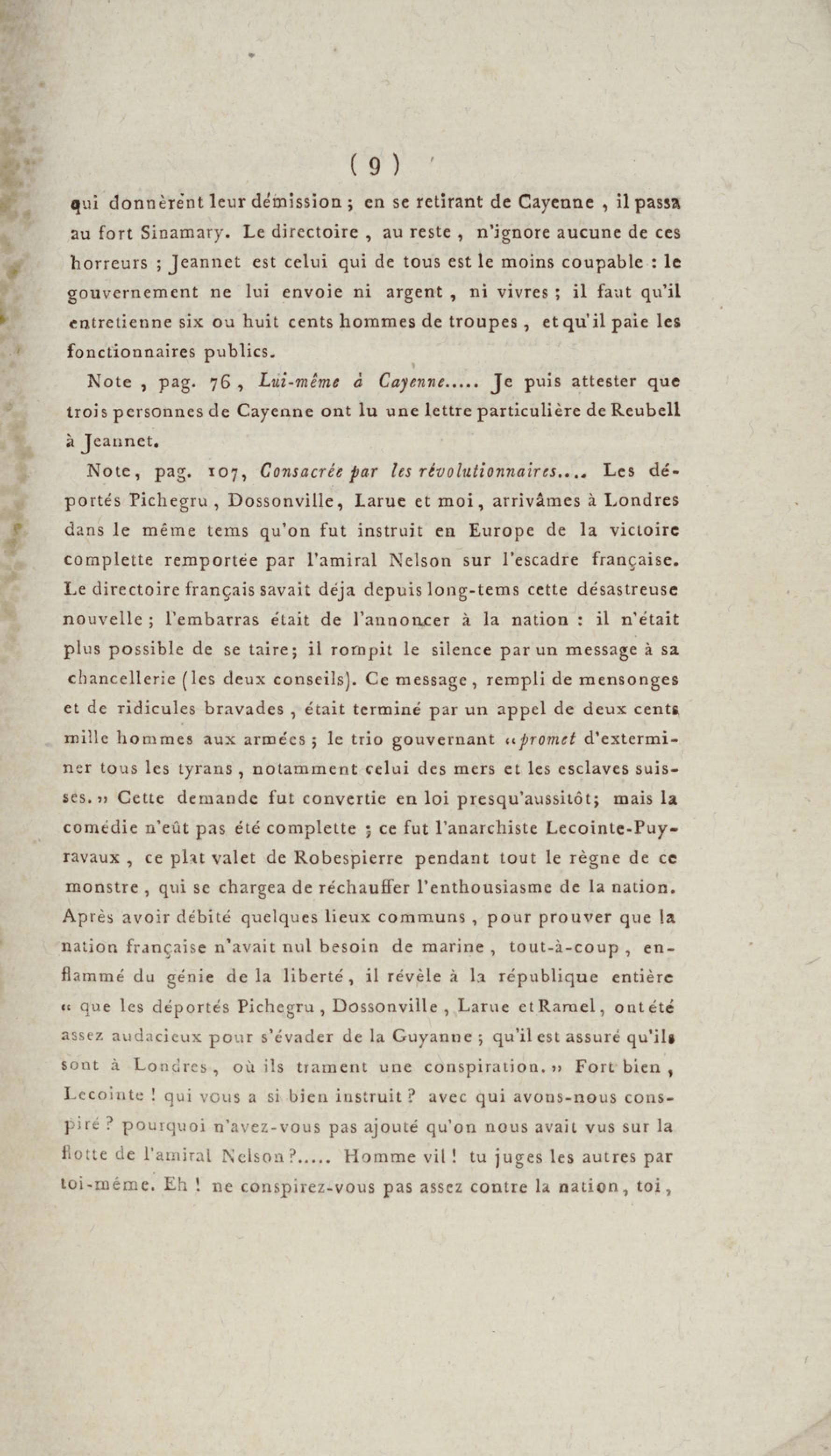 Journal de l'adjudant-général Ramel, commandant de la garde du corps législatif de la République française, l'un des déportés à la Guyane après le 18 fructidor : sur les faits relatifs à cette journée, sur le transport, le séjour et l'évasion de quelques uns des déportés : avec des détails circonstanciés de la fin terrible du général Murinais, de Tronçon-Ducoudray, Lafond-Ladebat, etc., etc.