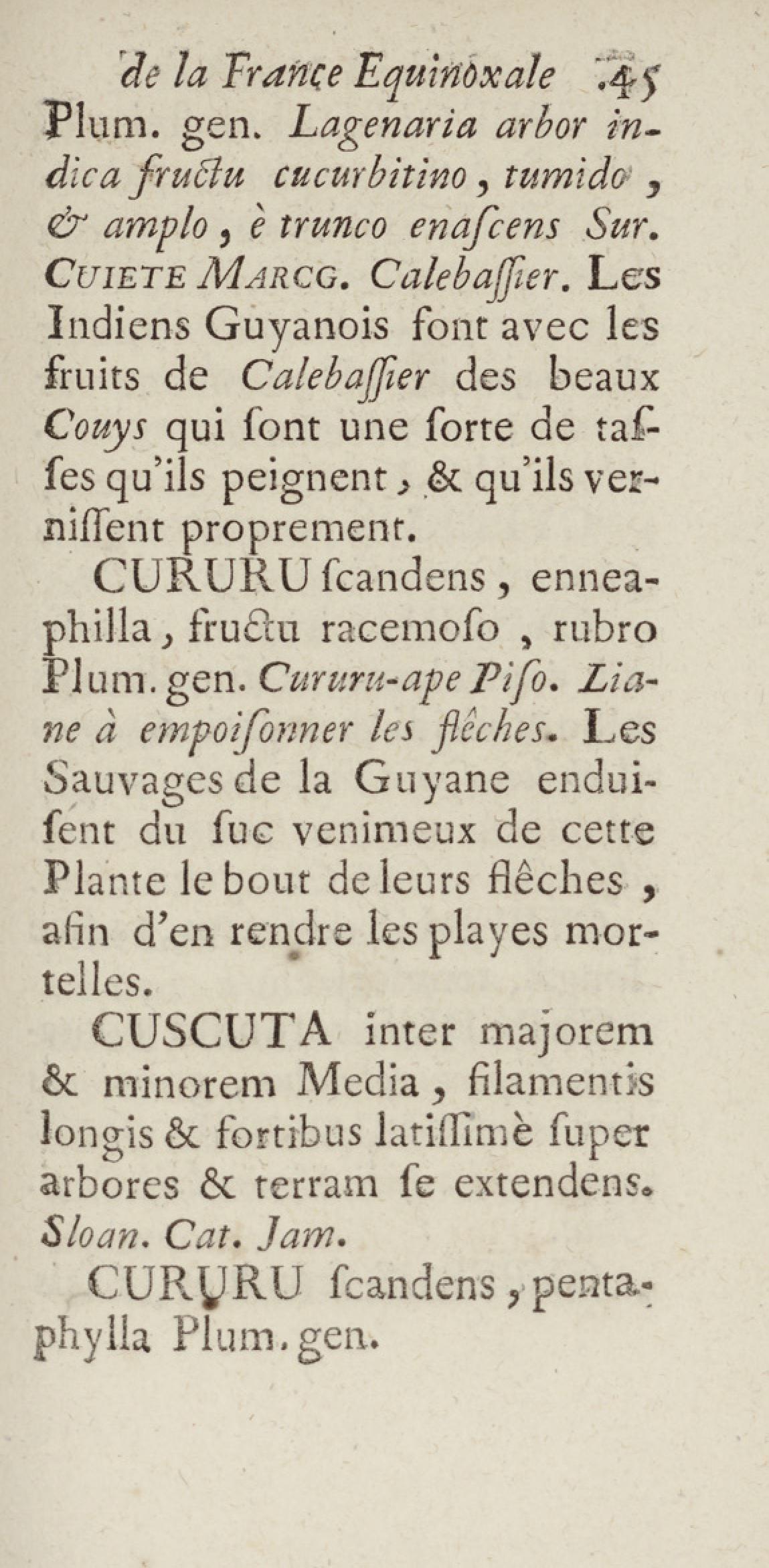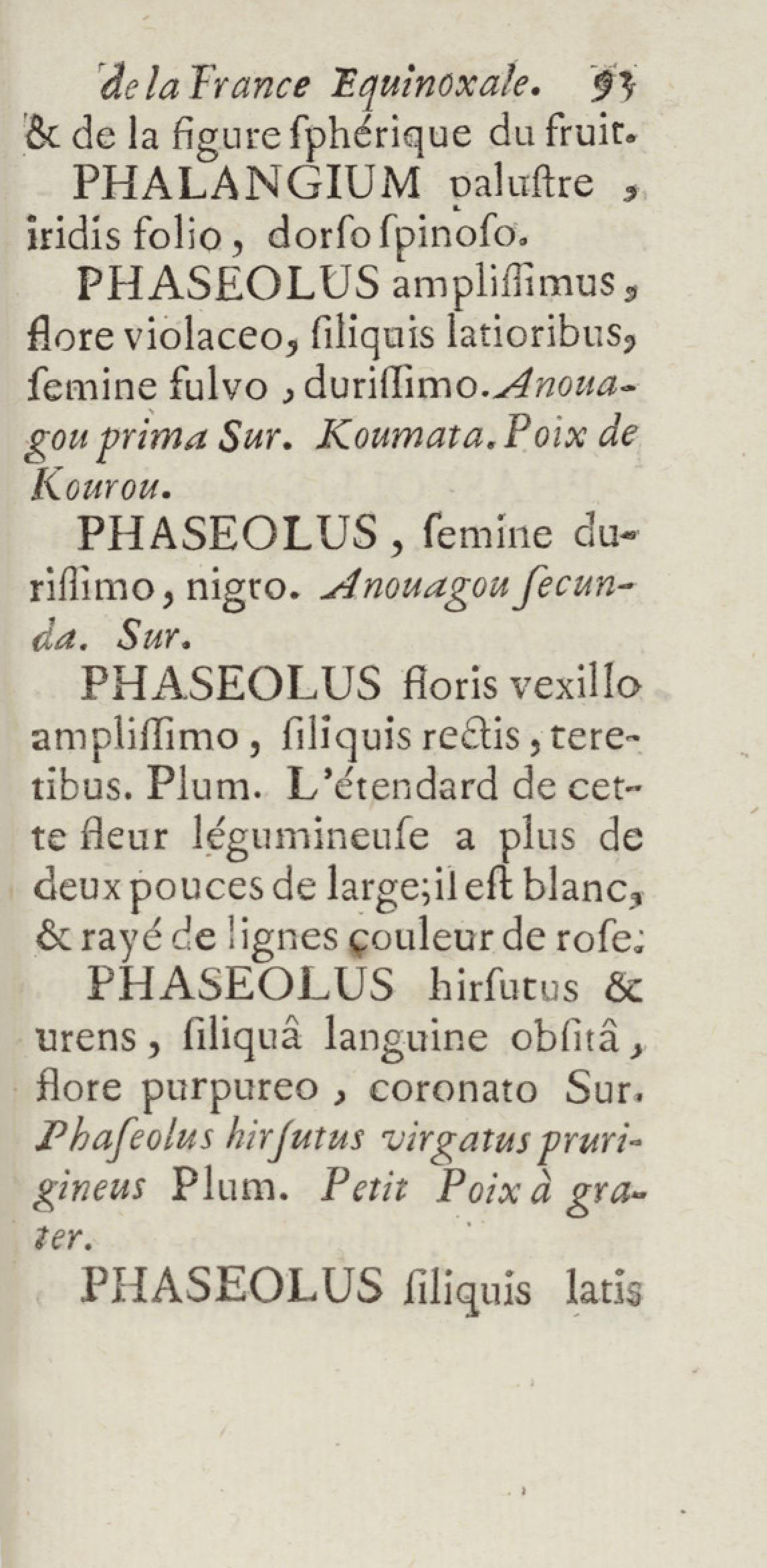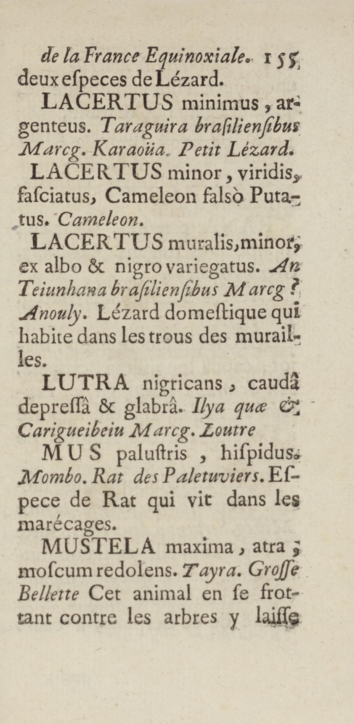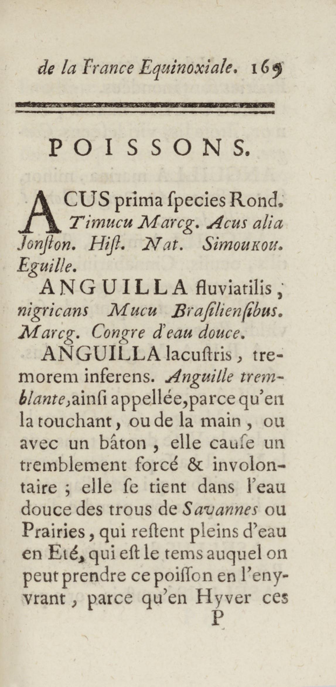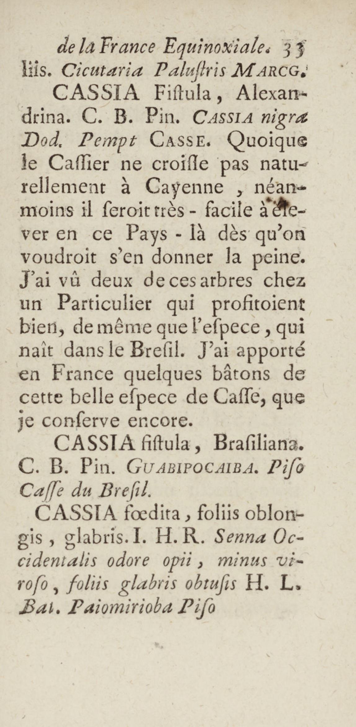 Essai sur l'histoire naturelle de la France équinoxiale, ou Dénombrement des plantes, des animaux, & des minéraux, qui se trouvent dans l'isle de Cayenne, les isles de Remire, sur les côtes de la mer, & dans le continent de la Guyane : avec leurs noms différens, latins, françois, et indiens, et quelques observations sur leur usage dans la médecine & dans les arts
