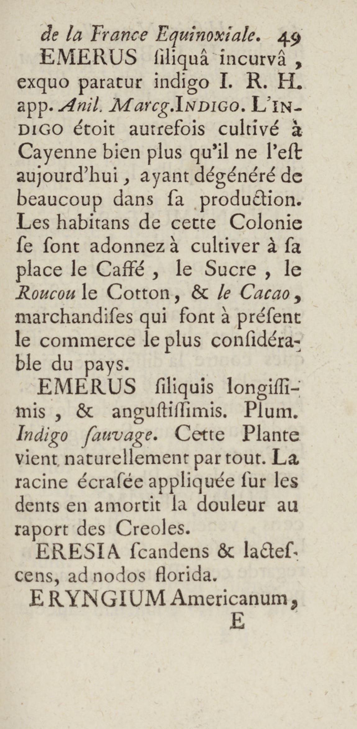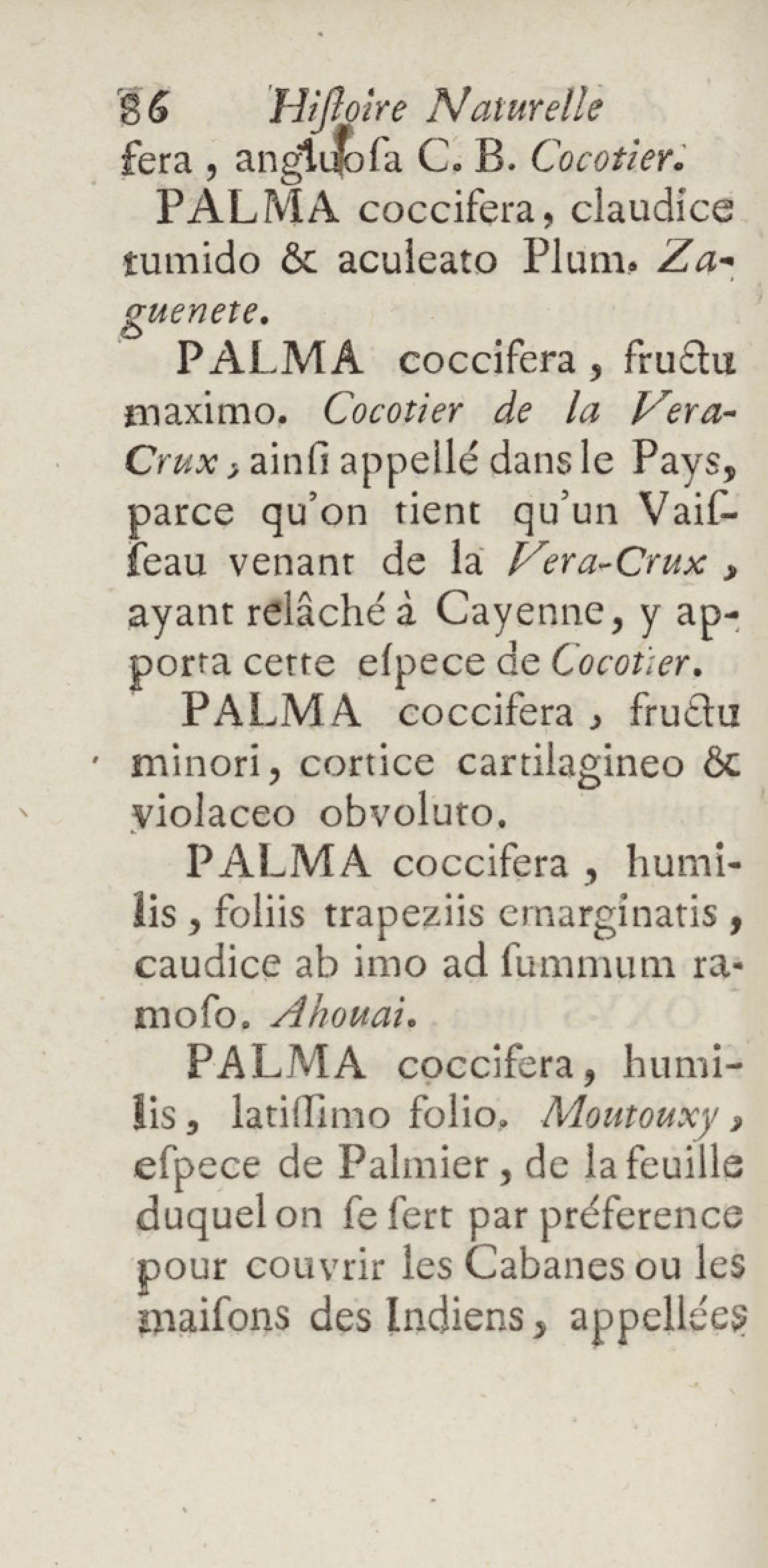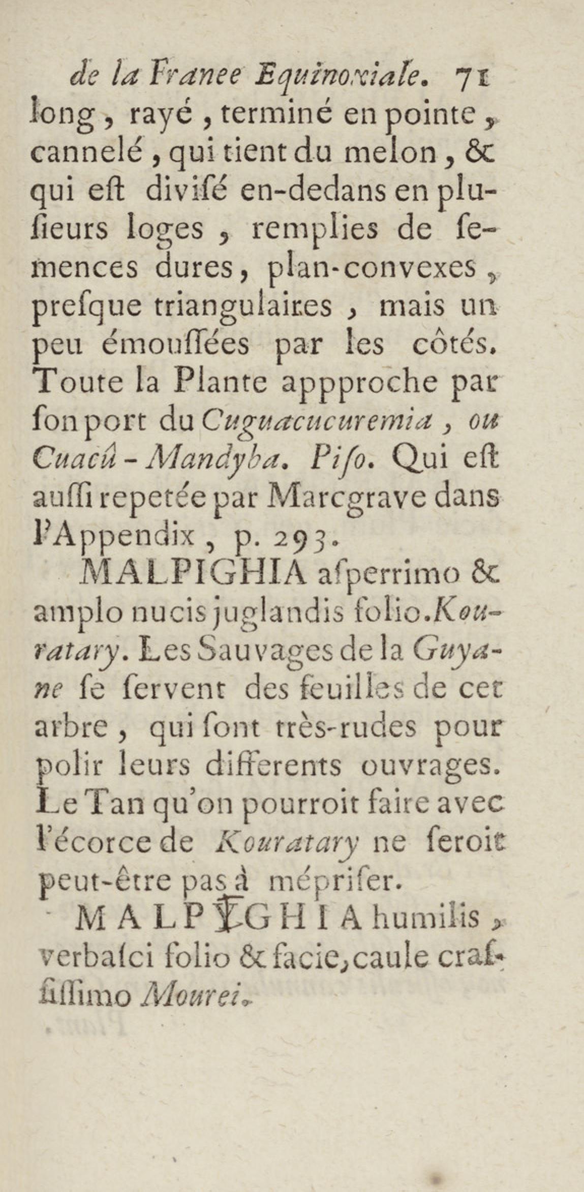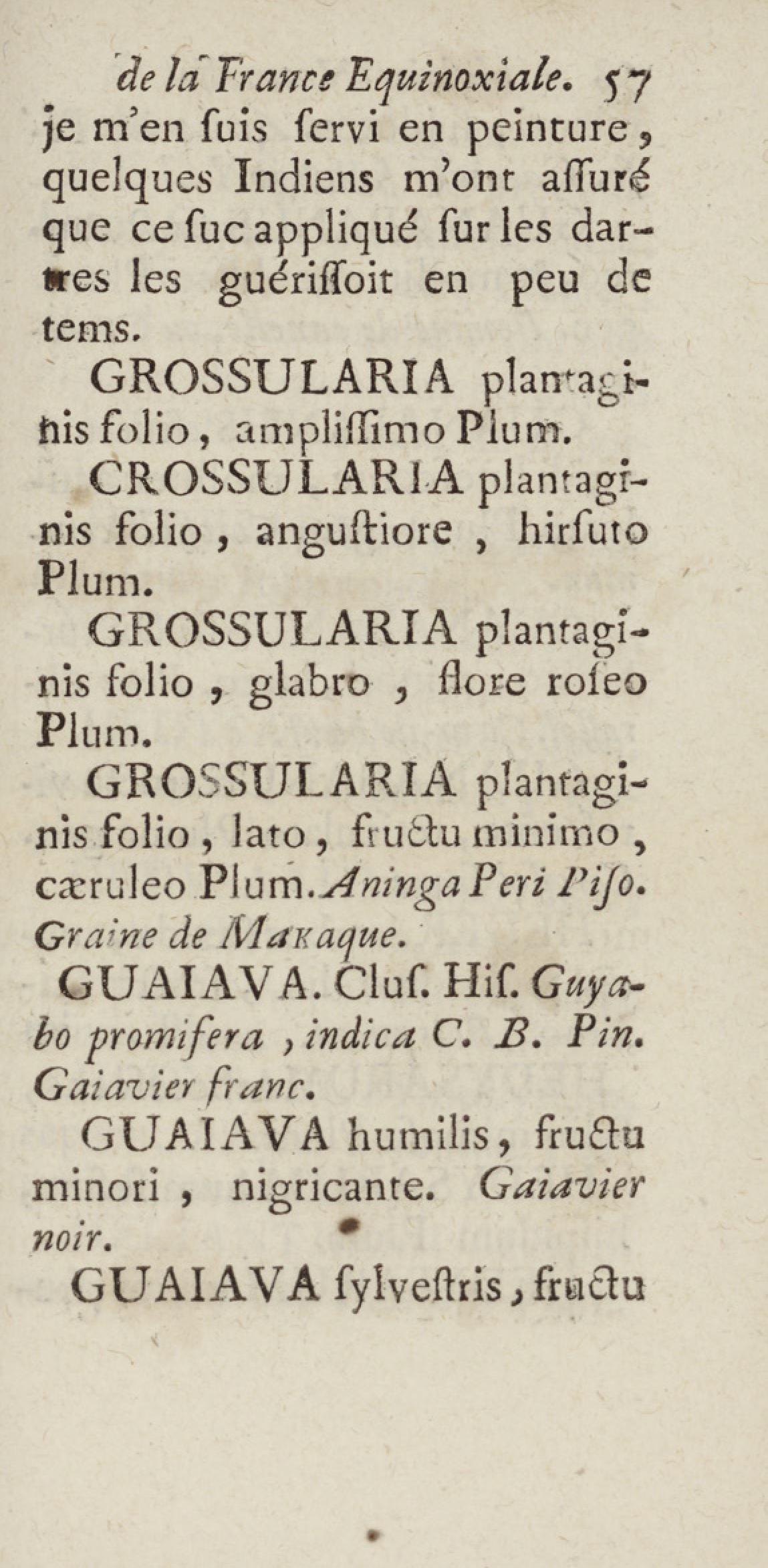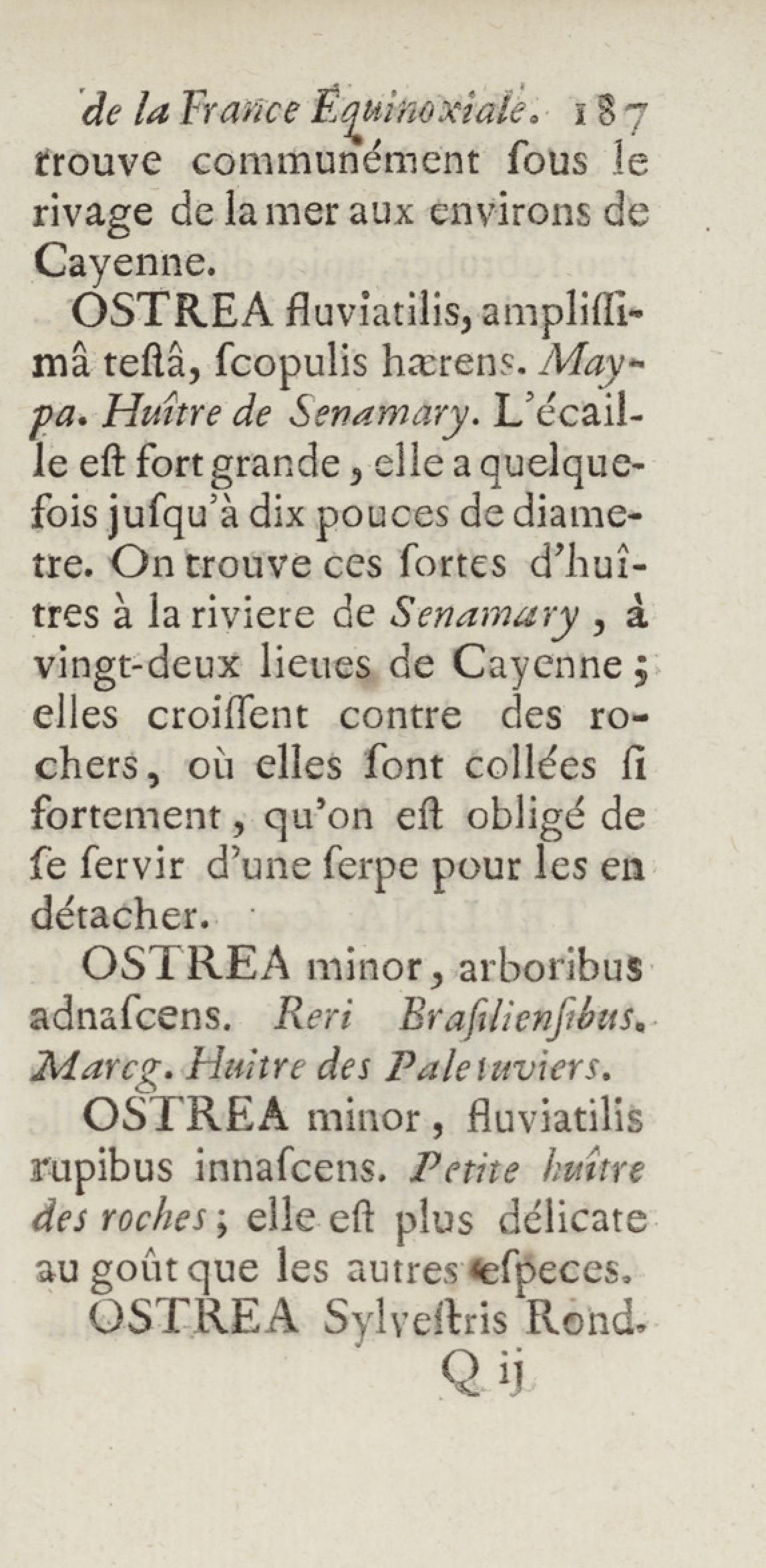 Essai sur l'histoire naturelle de la France équinoxiale, ou Dénombrement des plantes, des animaux, & des minéraux, qui se trouvent dans l'isle de Cayenne, les isles de Remire, sur les côtes de la mer, & dans le continent de la Guyane : avec leurs noms différens, latins, françois, et indiens, et quelques observations sur leur usage dans la médecine & dans les arts