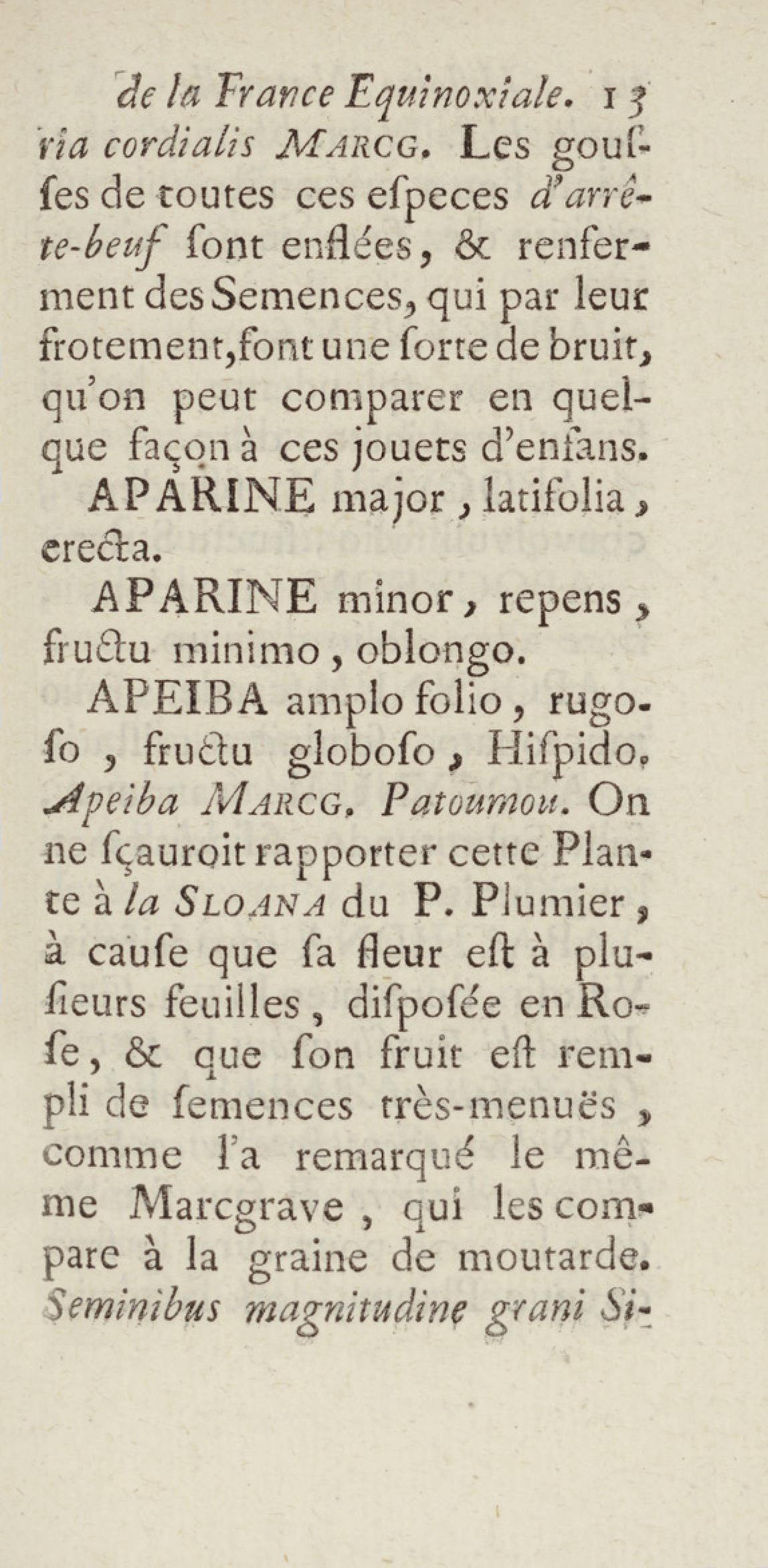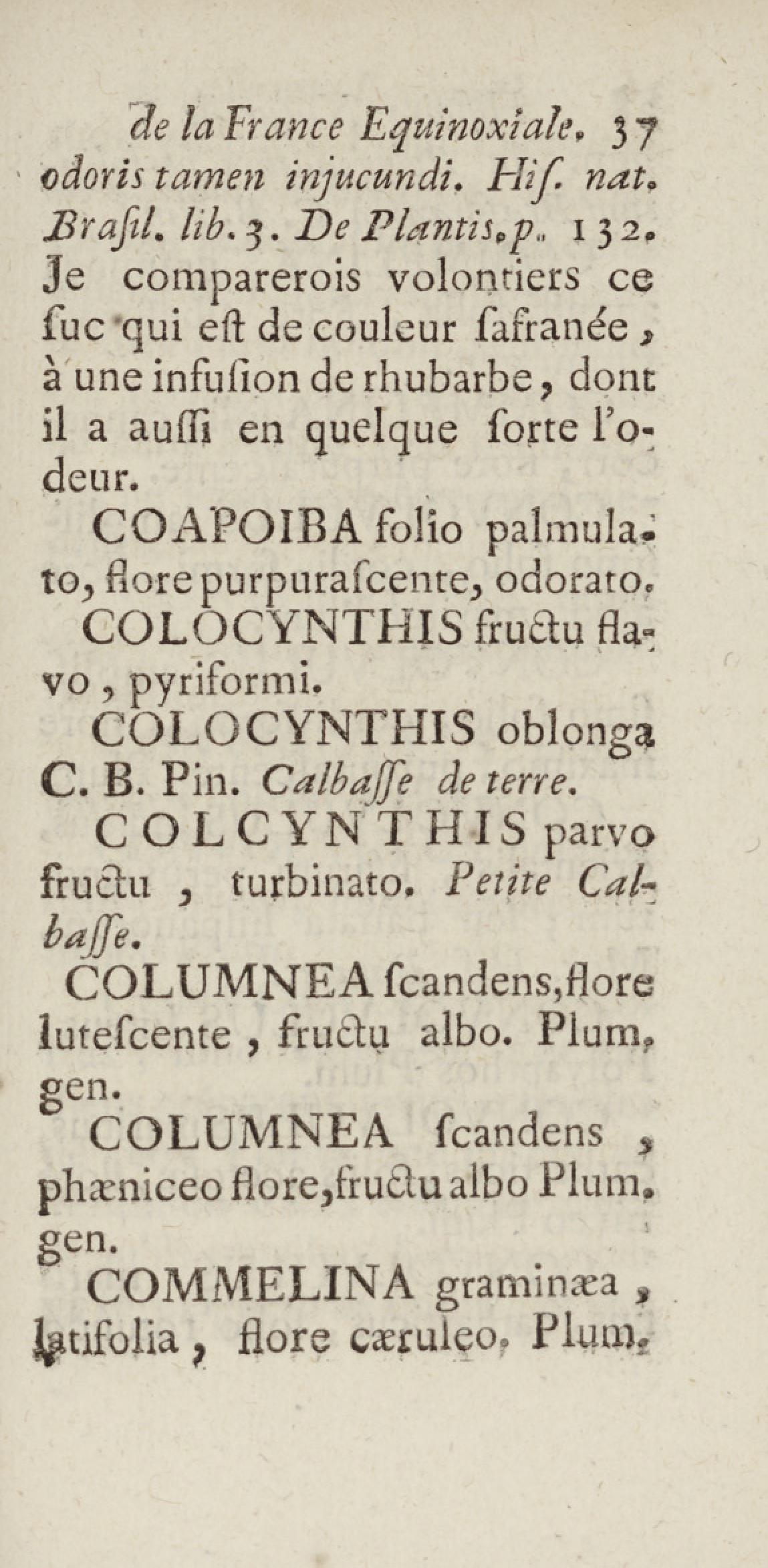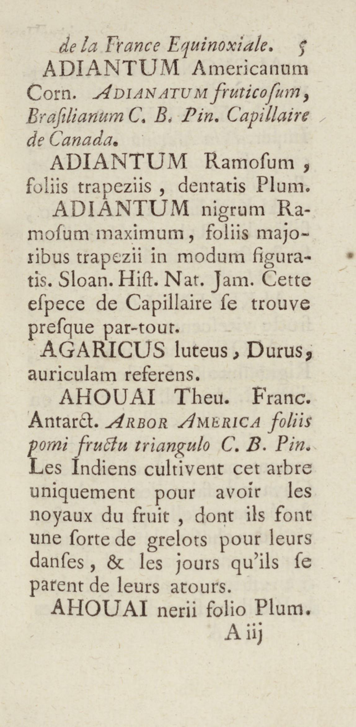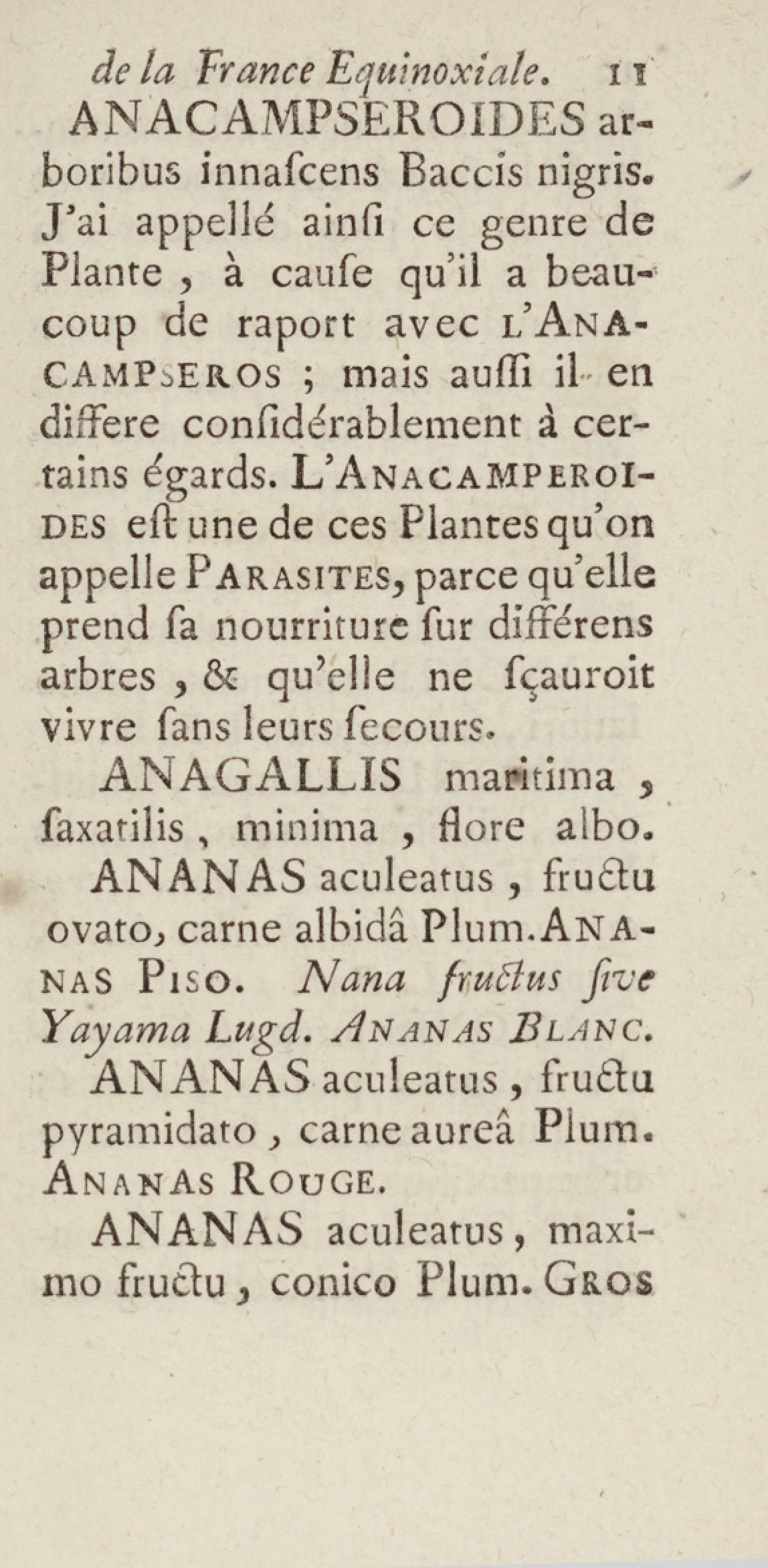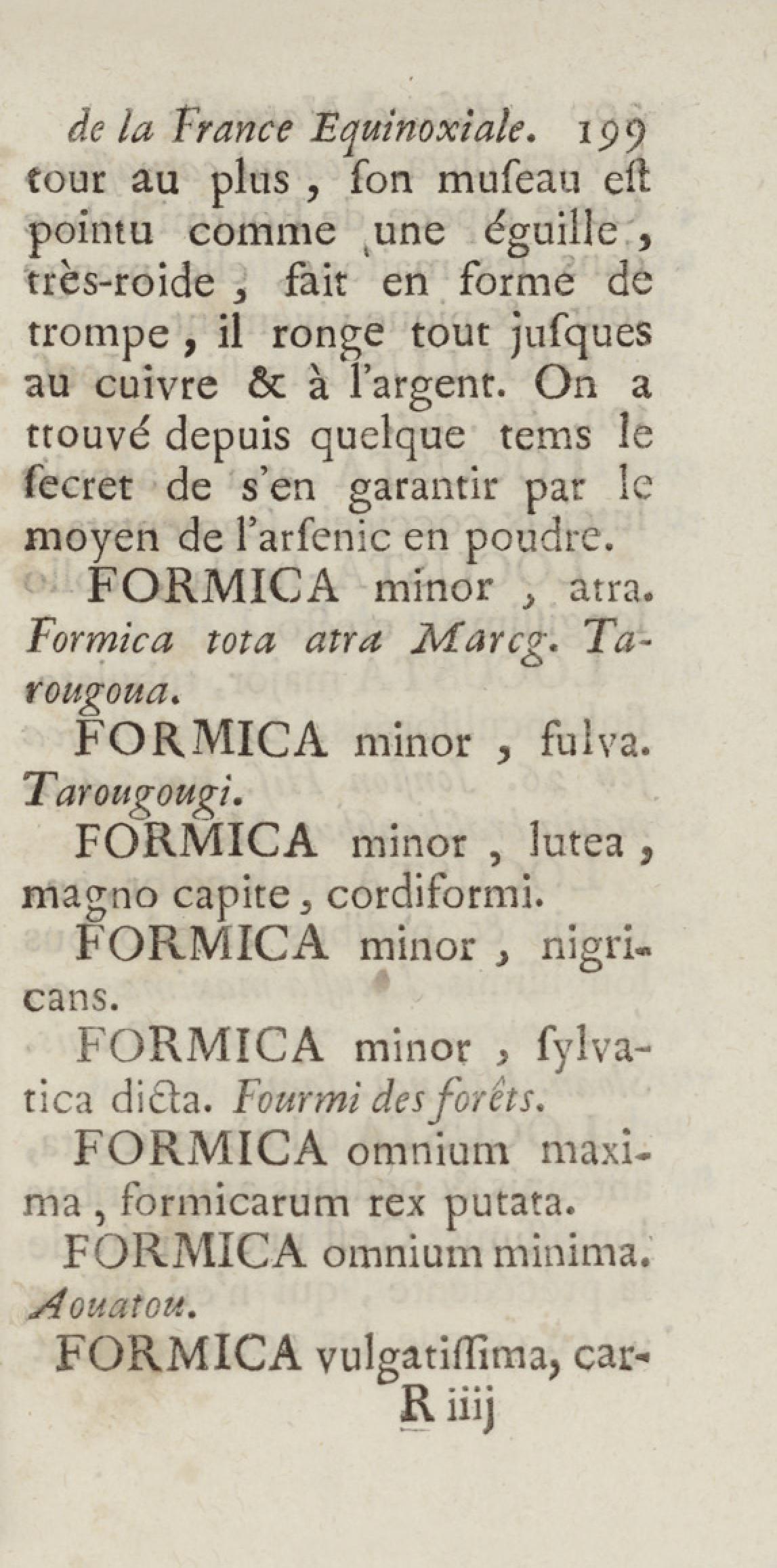 Essai sur l'histoire naturelle de la France équinoxiale, ou Dénombrement des plantes, des animaux, & des minéraux, qui se trouvent dans l'isle de Cayenne, les isles de Remire, sur les côtes de la mer, & dans le continent de la Guyane : avec leurs noms différens, latins, françois, et indiens, et quelques observations sur leur usage dans la médecine & dans les arts