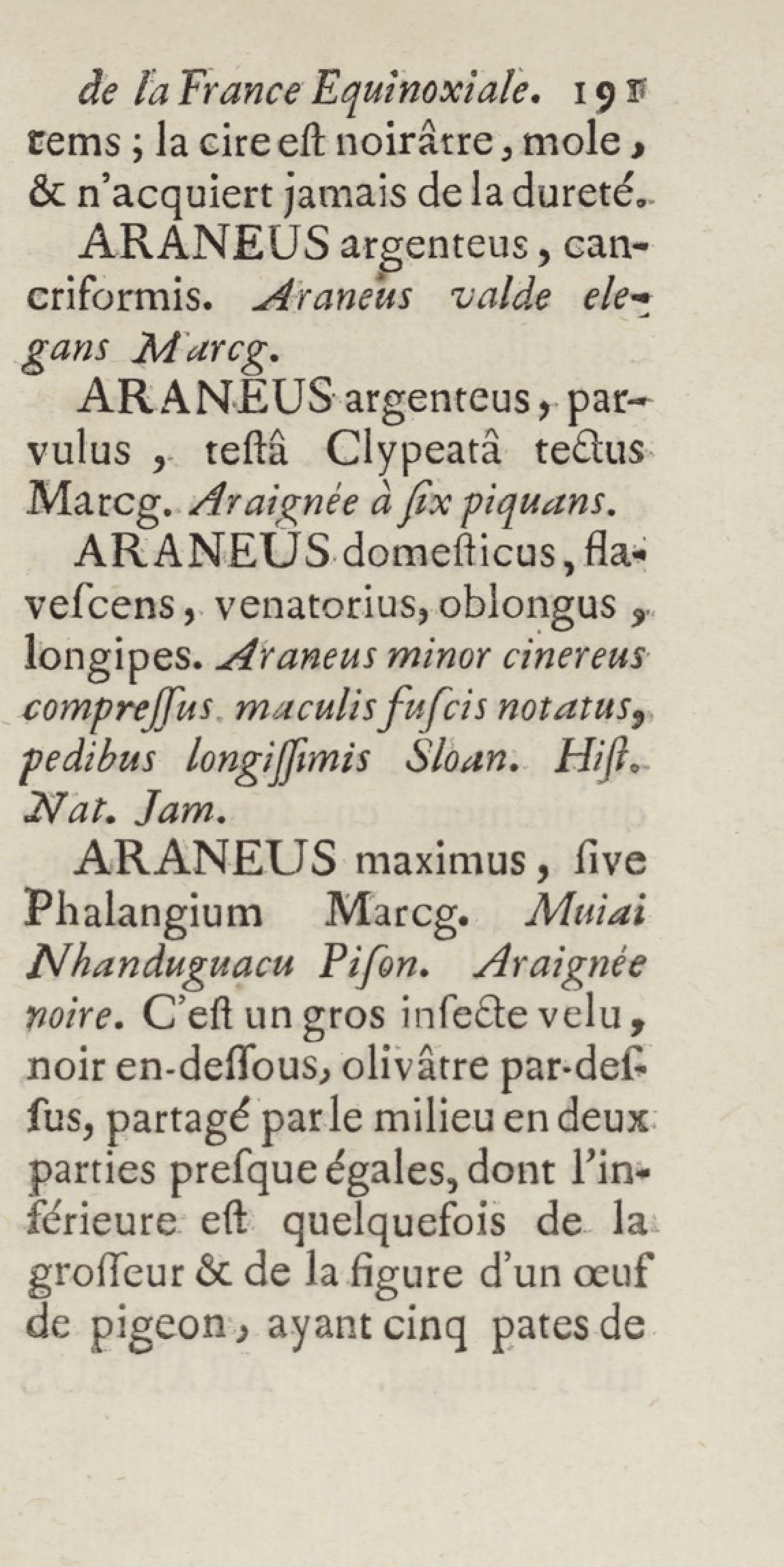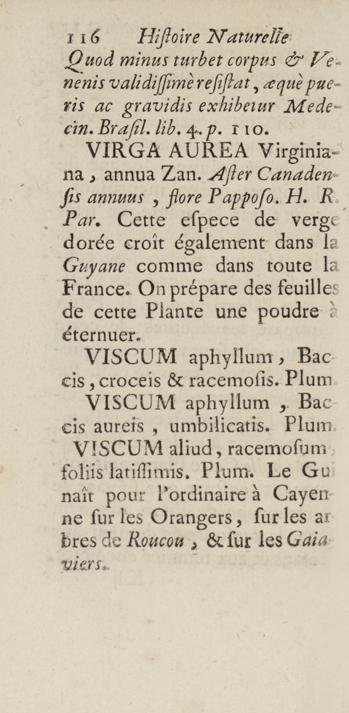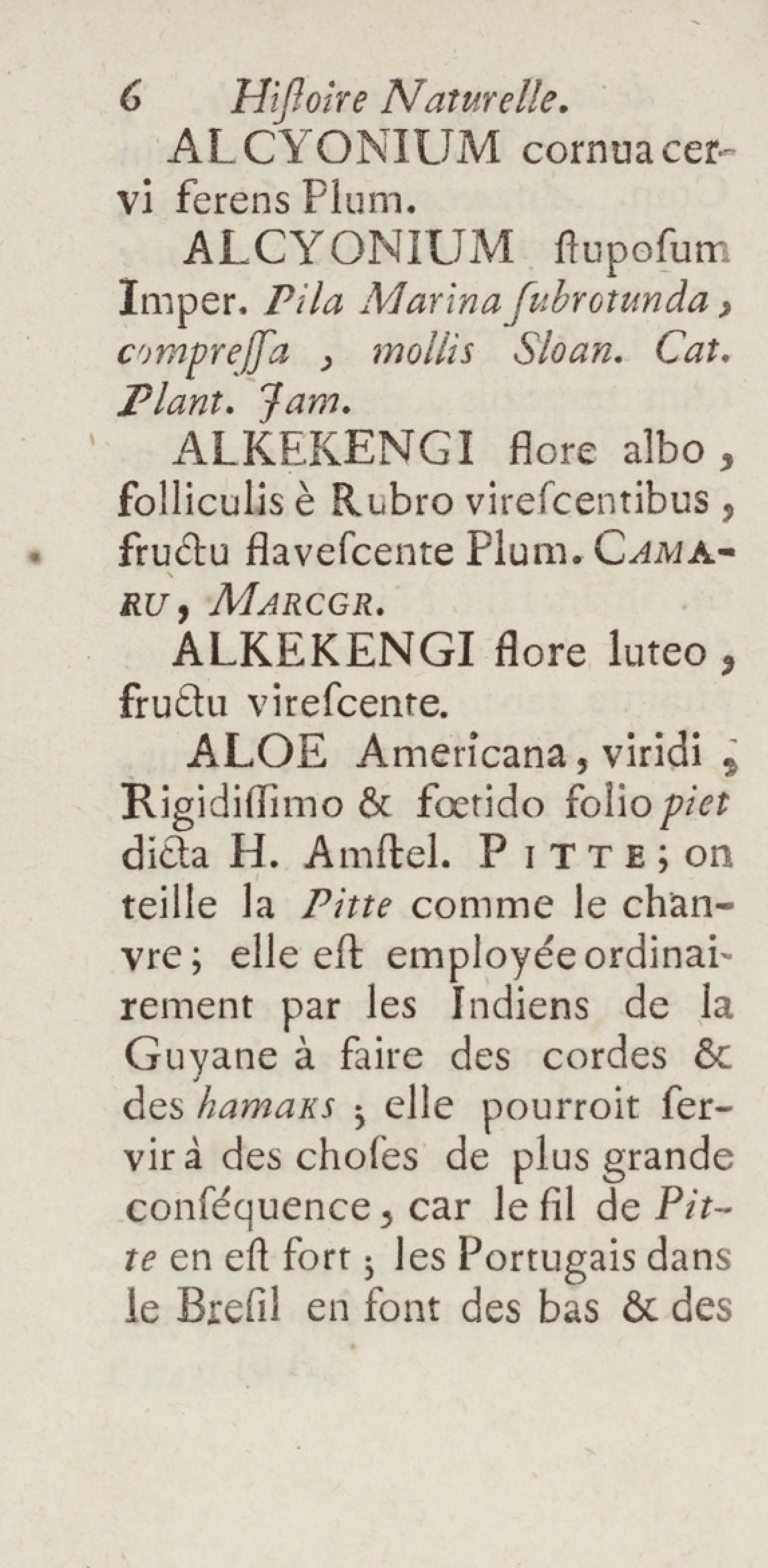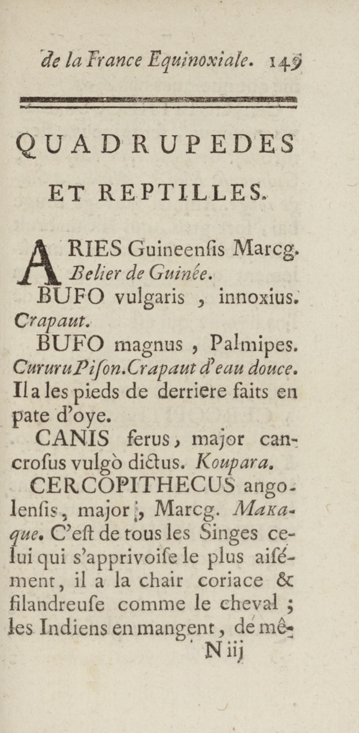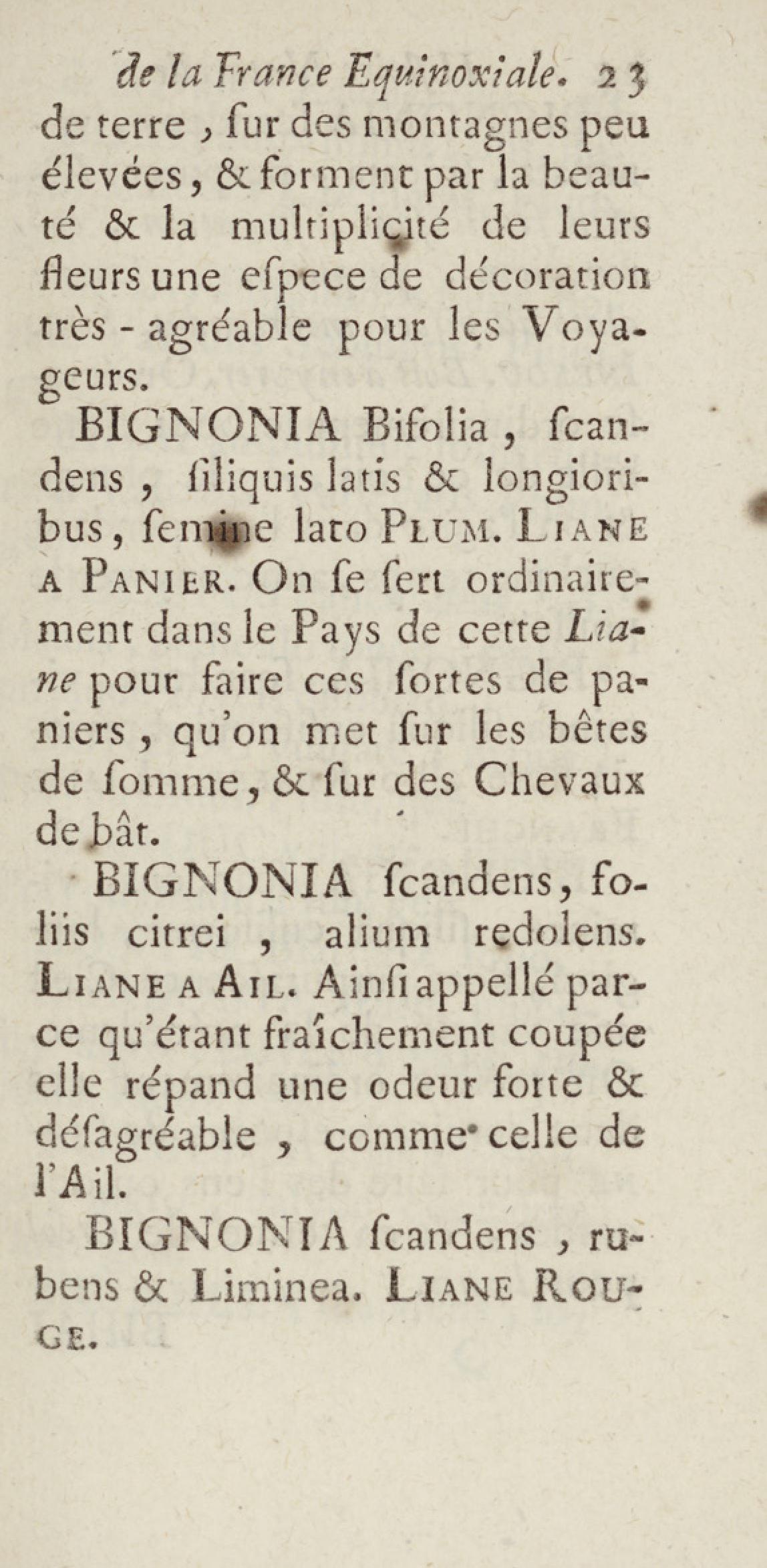 Essai sur l'histoire naturelle de la France équinoxiale, ou Dénombrement des plantes, des animaux, & des minéraux, qui se trouvent dans l'isle de Cayenne, les isles de Remire, sur les côtes de la mer, & dans le continent de la Guyane : avec leurs noms différens, latins, françois, et indiens, et quelques observations sur leur usage dans la médecine & dans les arts