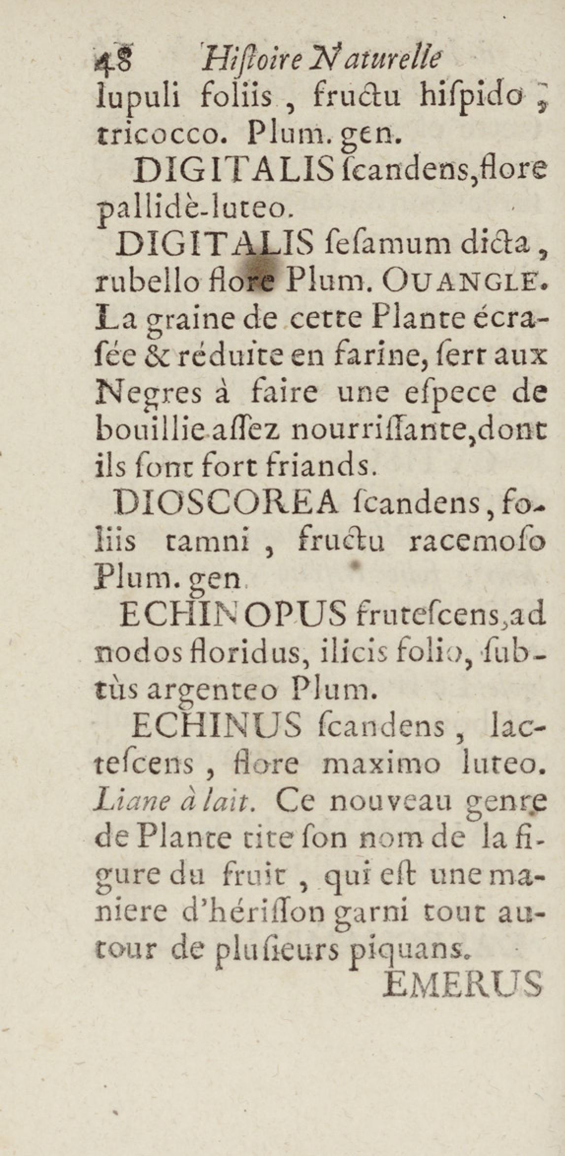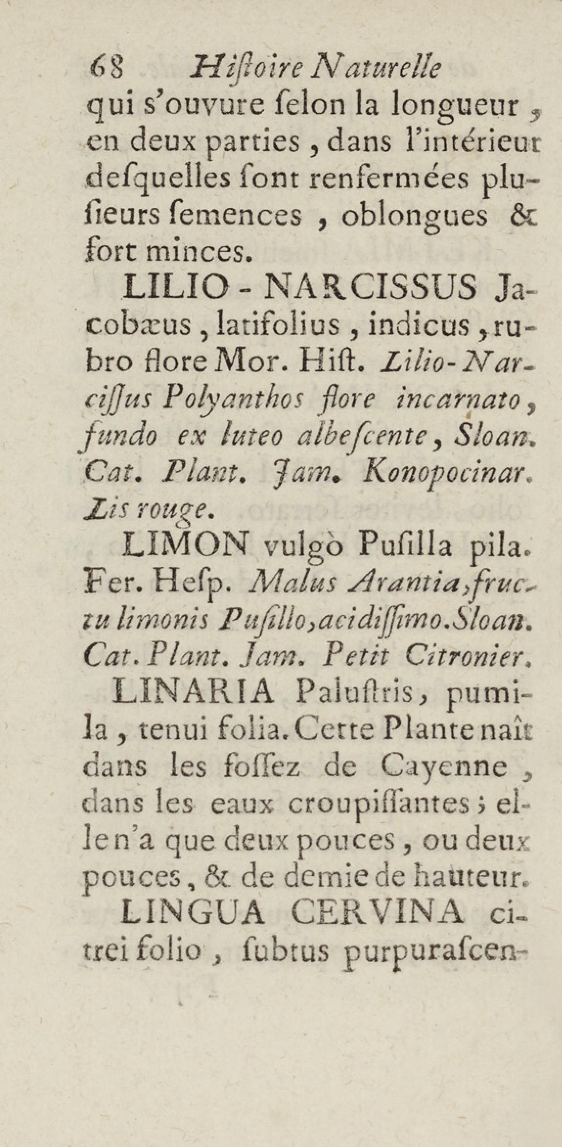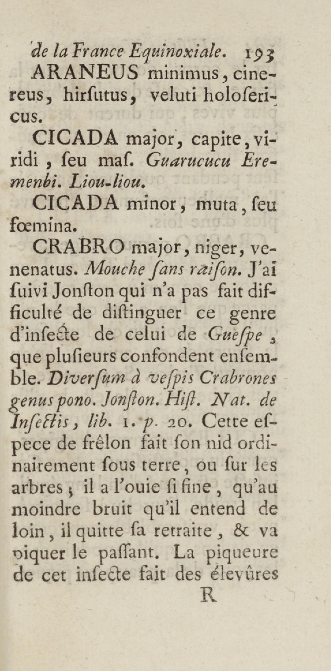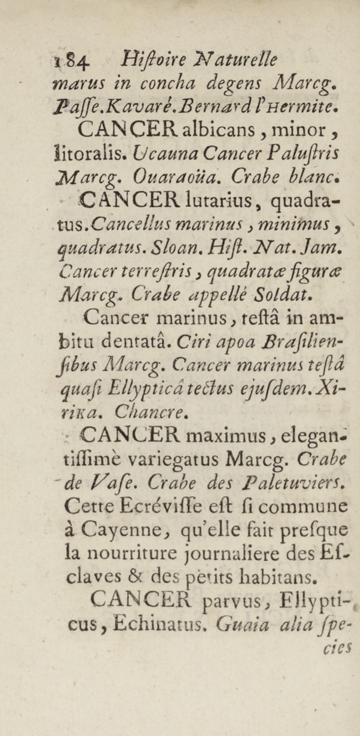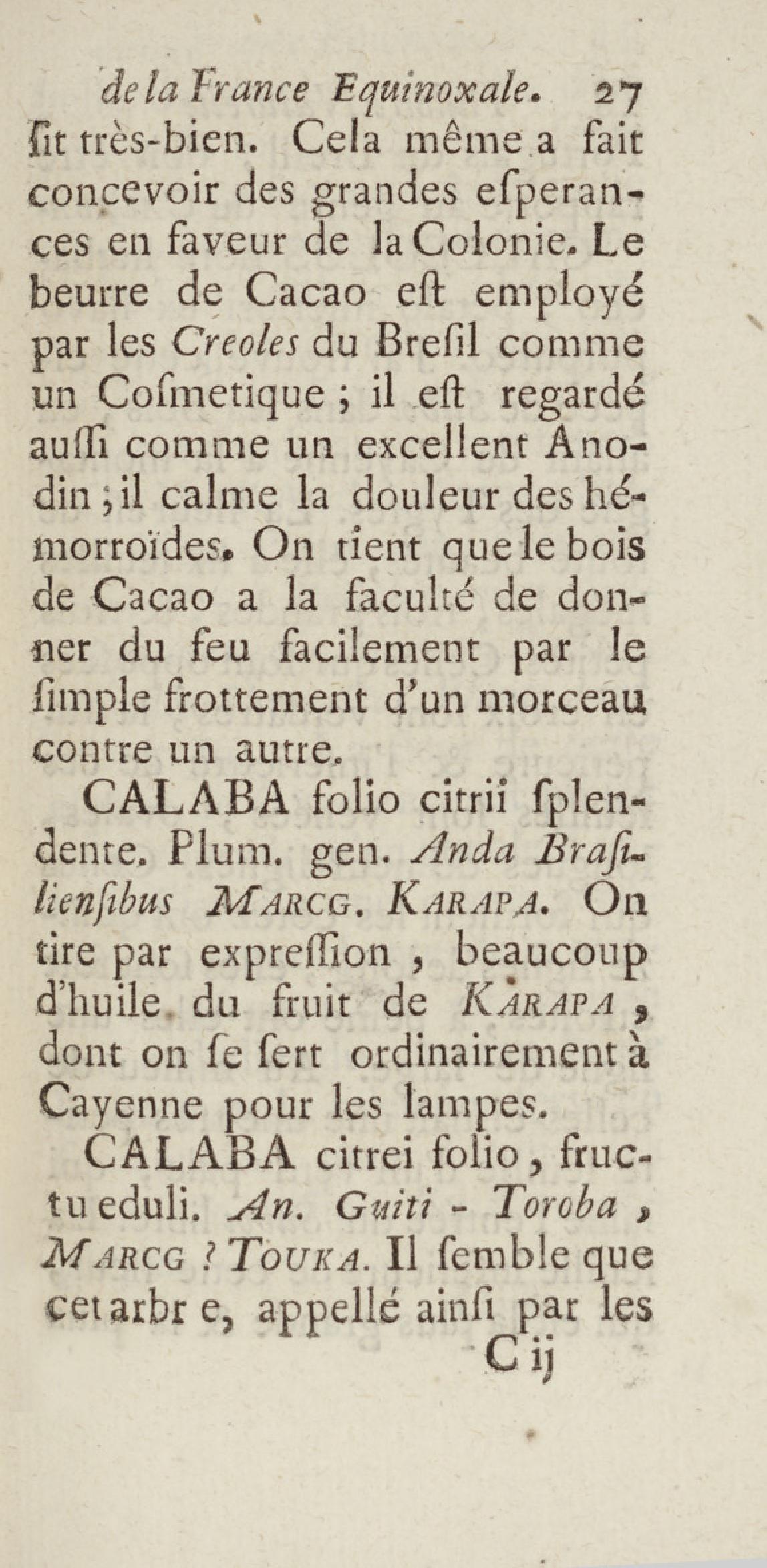 Essai sur l'histoire naturelle de la France équinoxiale, ou Dénombrement des plantes, des animaux, & des minéraux, qui se trouvent dans l'isle de Cayenne, les isles de Remire, sur les côtes de la mer, & dans le continent de la Guyane : avec leurs noms différens, latins, françois, et indiens, et quelques observations sur leur usage dans la médecine & dans les arts