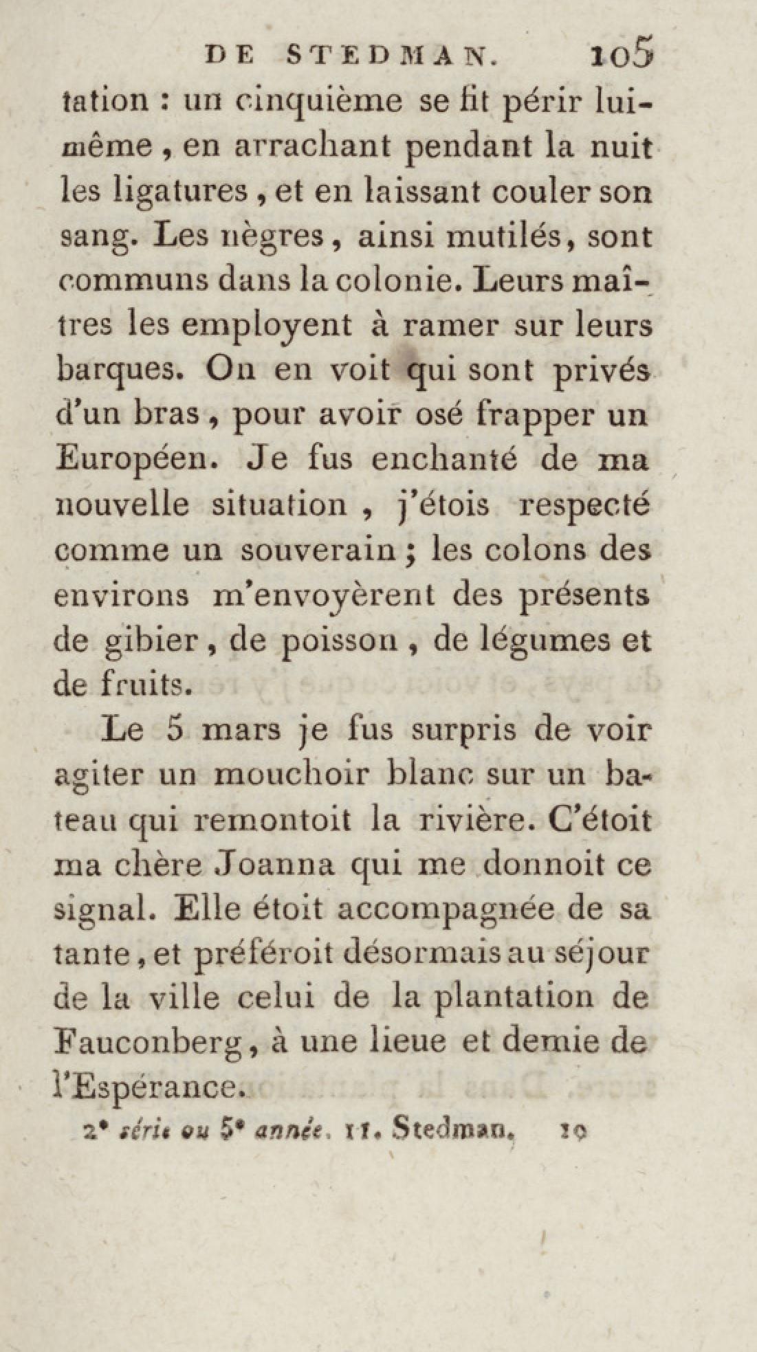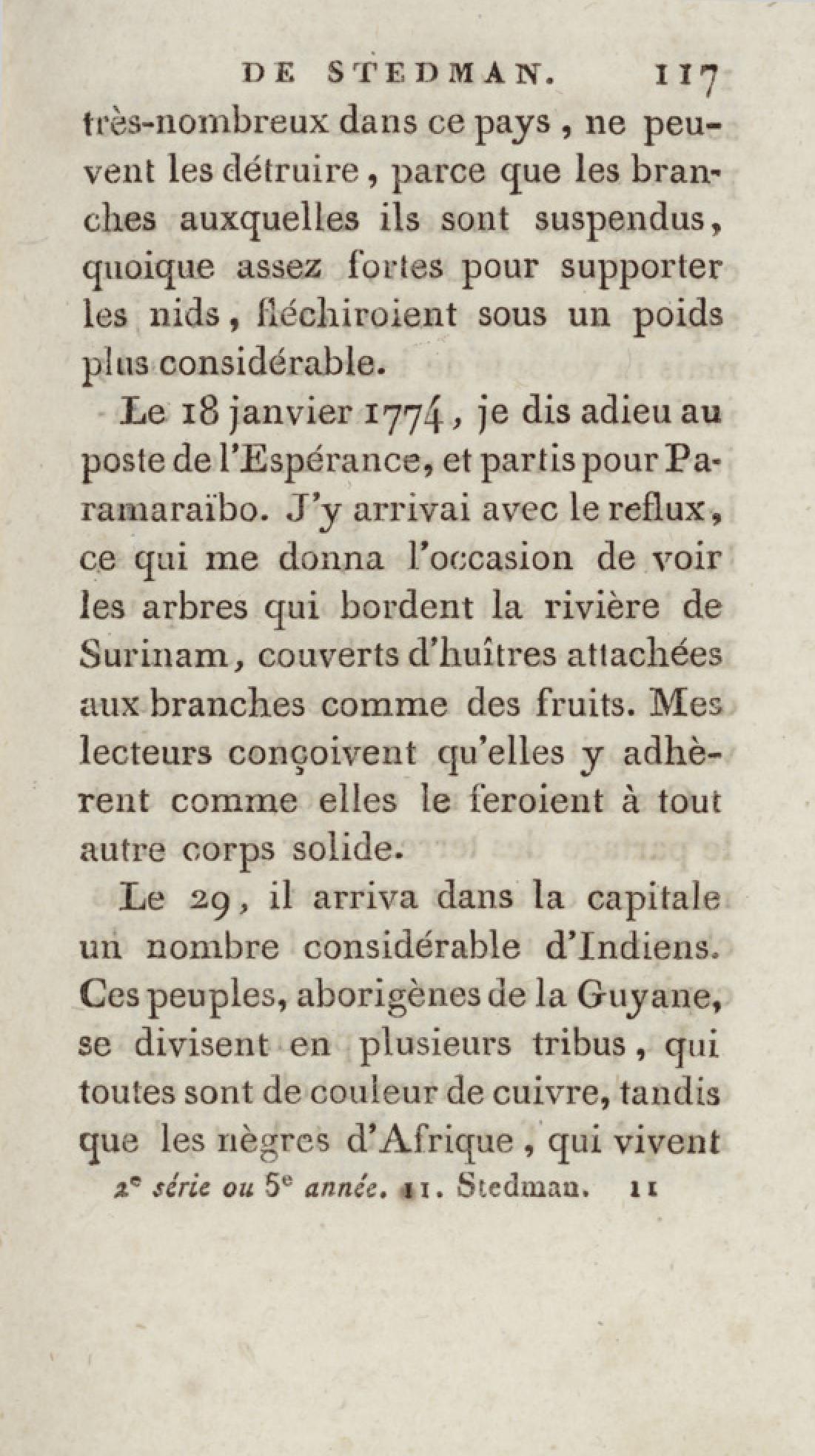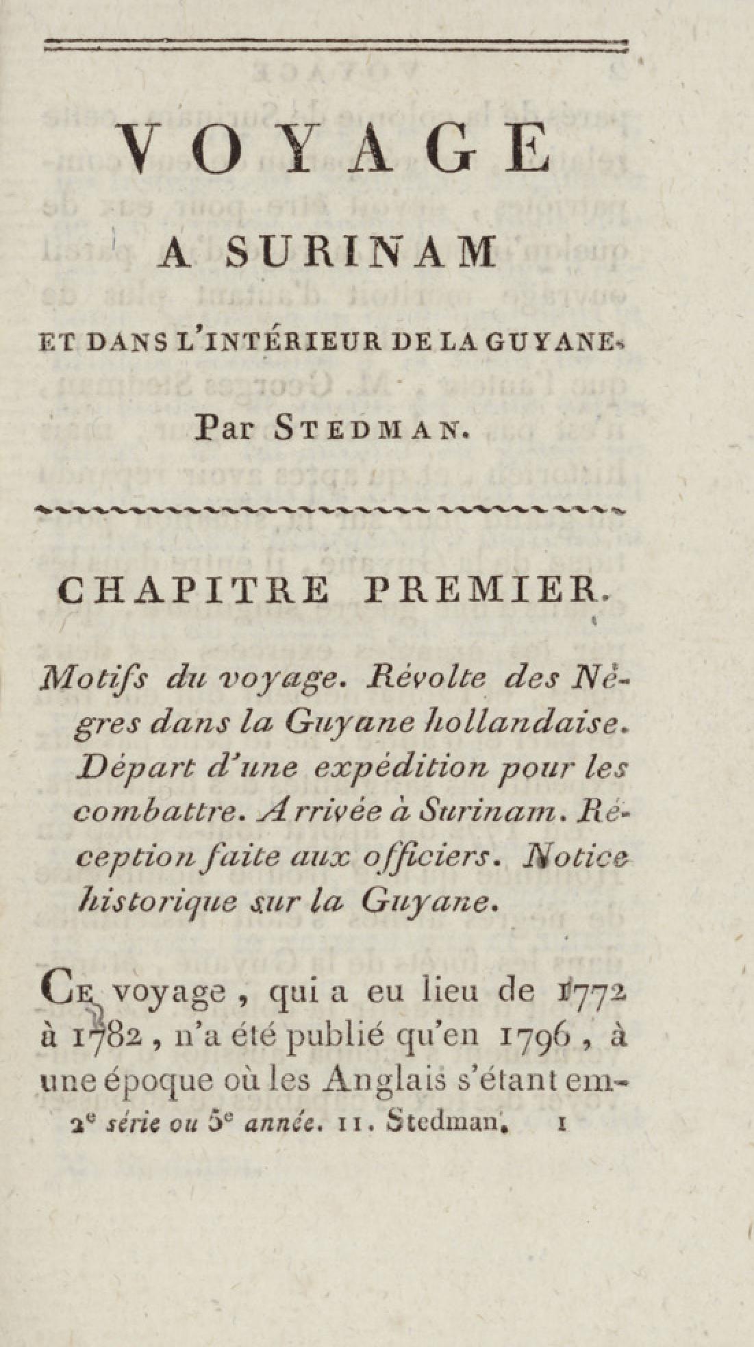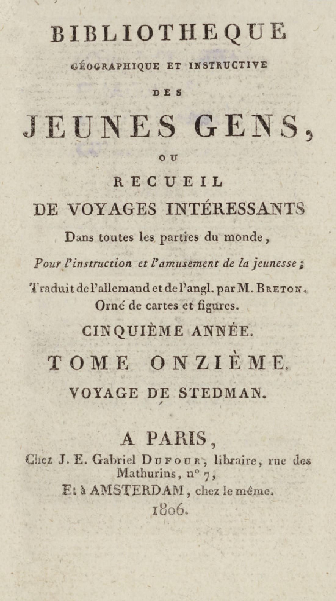 - Bibliothèque géographique et instructive des jeunes gens, ou Recueil de voyages intéressants dans toutes les parties du monde, pour l'instruction et l'amusement de la jeunesse. Cinquième année. Tome onzième, Voyage de Stedman