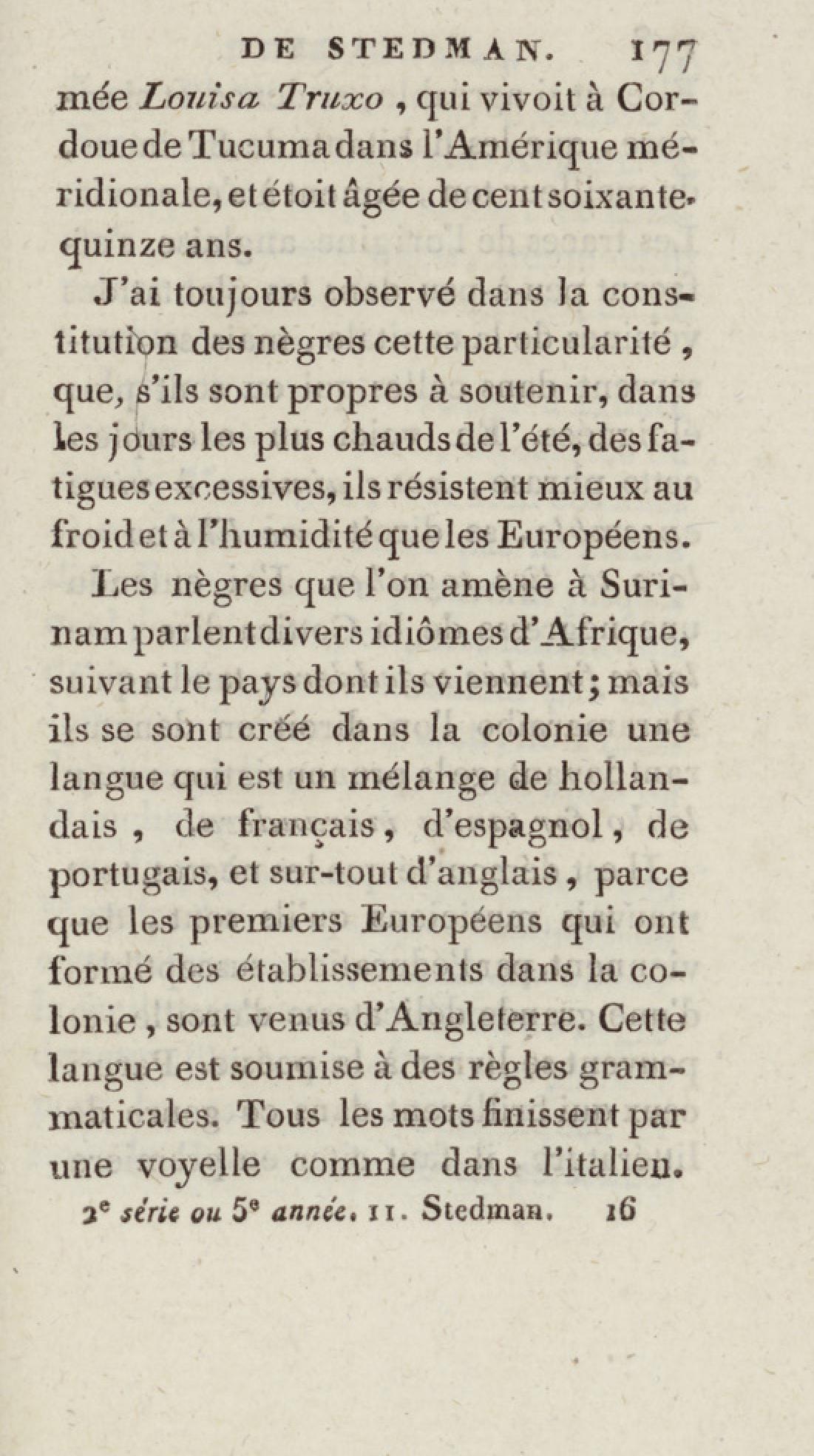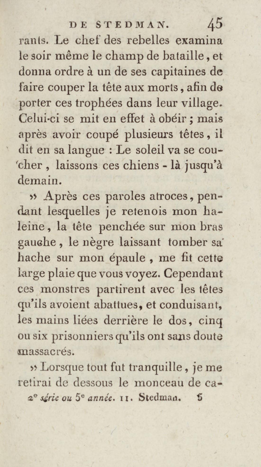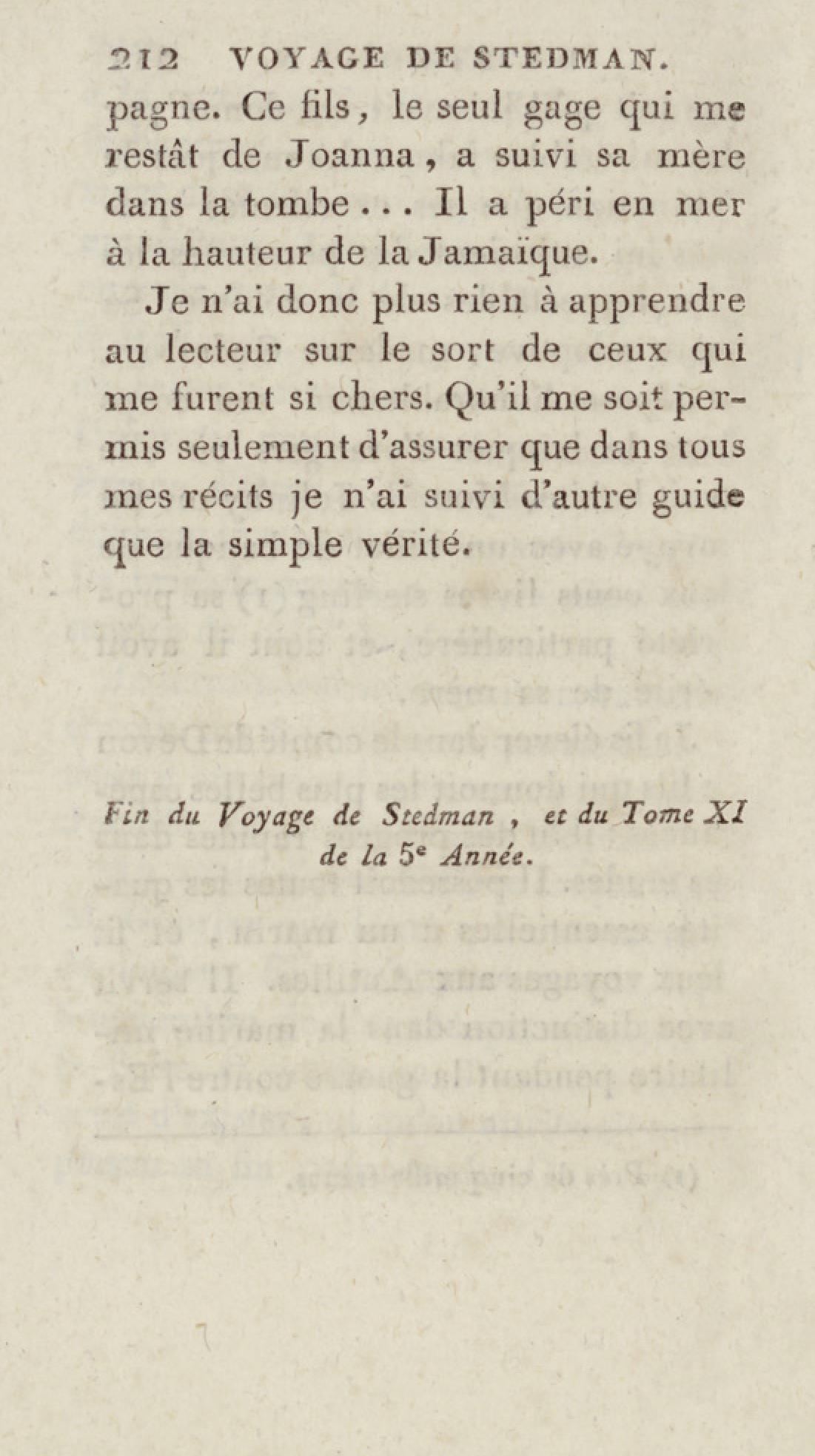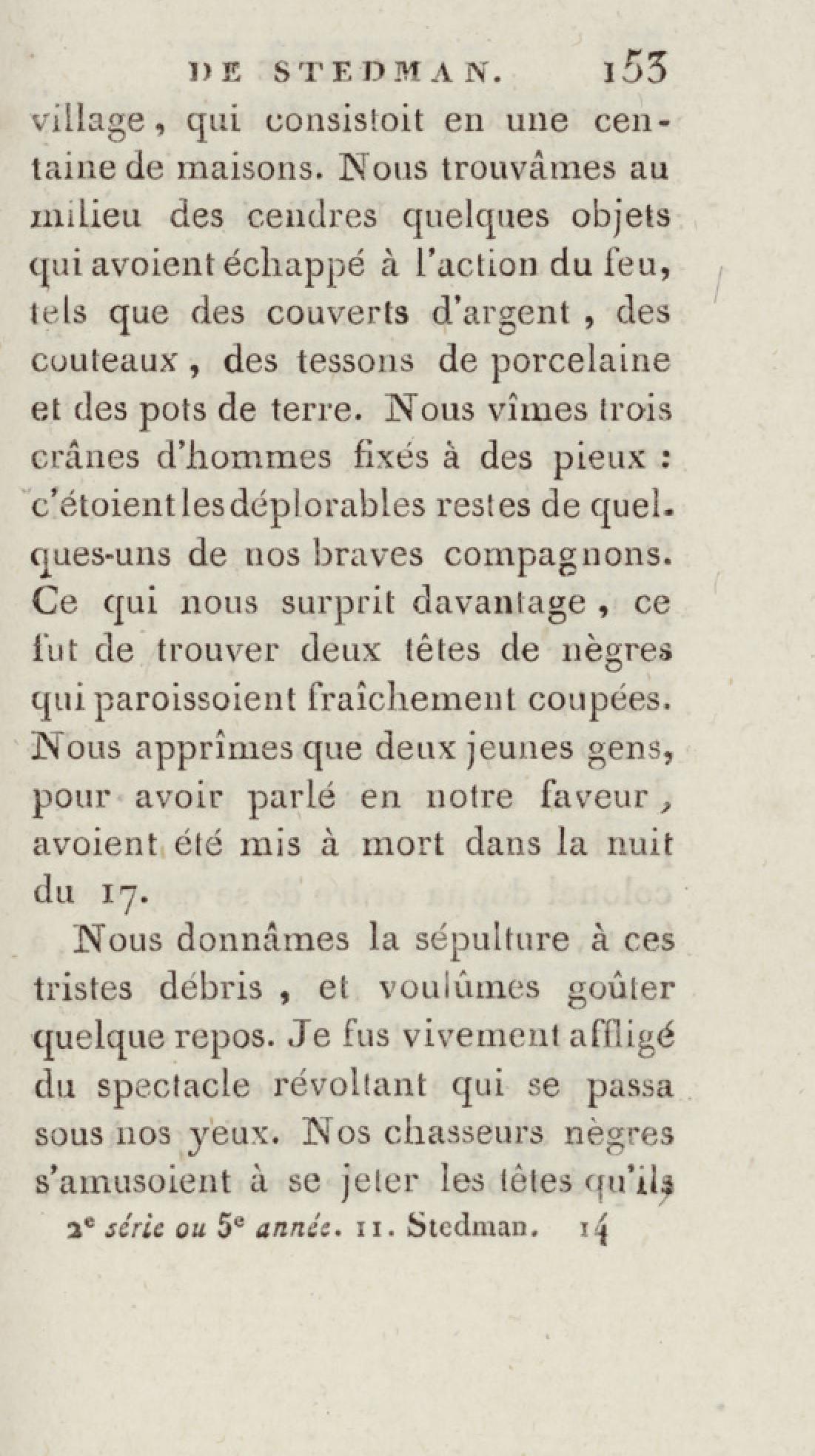 - Bibliothèque géographique et instructive des jeunes gens, ou Recueil de voyages intéressants dans toutes les parties du monde, pour l'instruction et l'amusement de la jeunesse. Cinquième année. Tome onzième, Voyage de Stedman