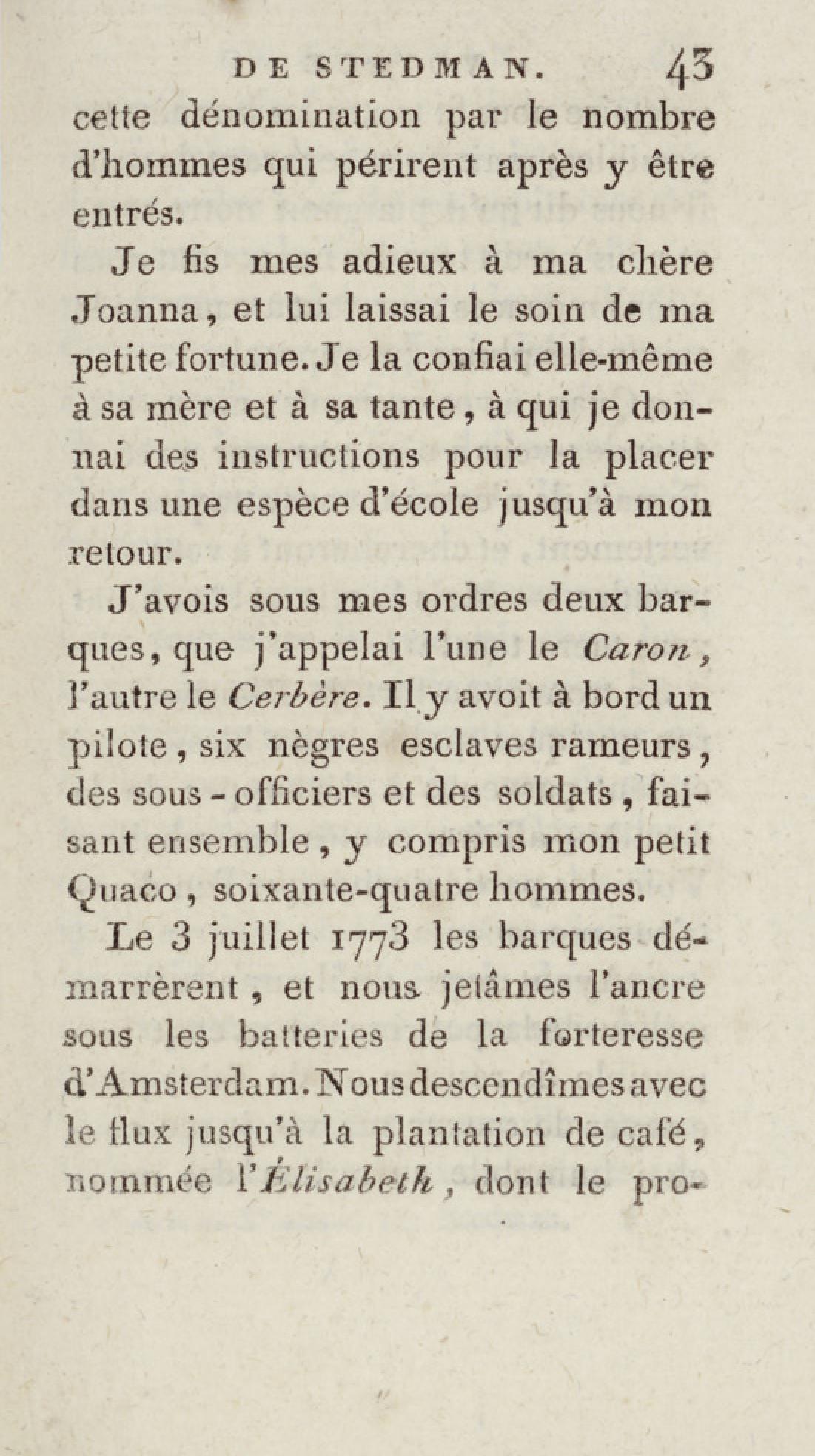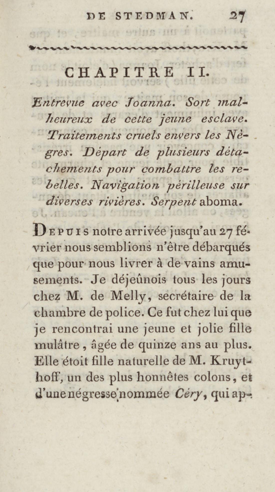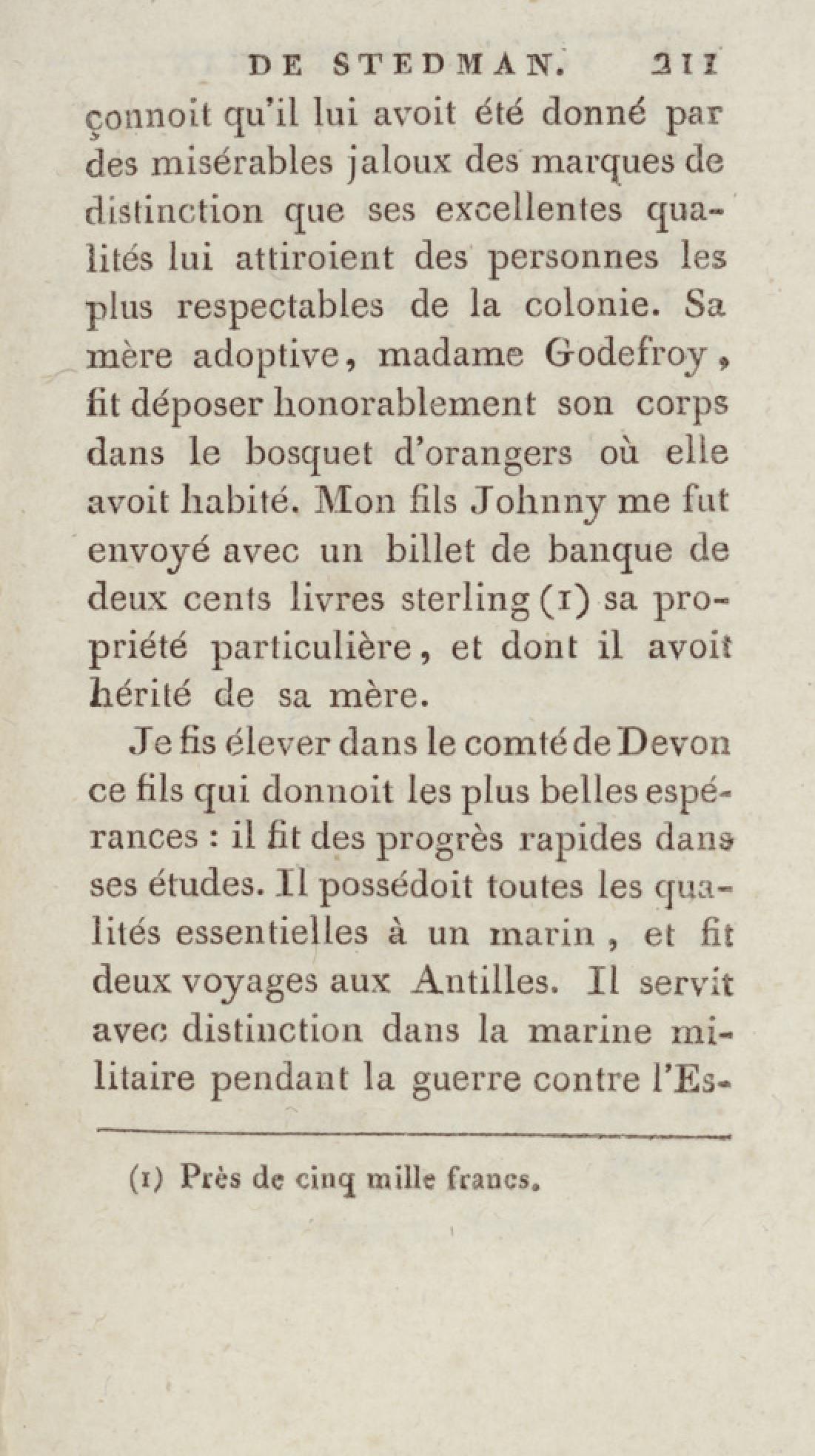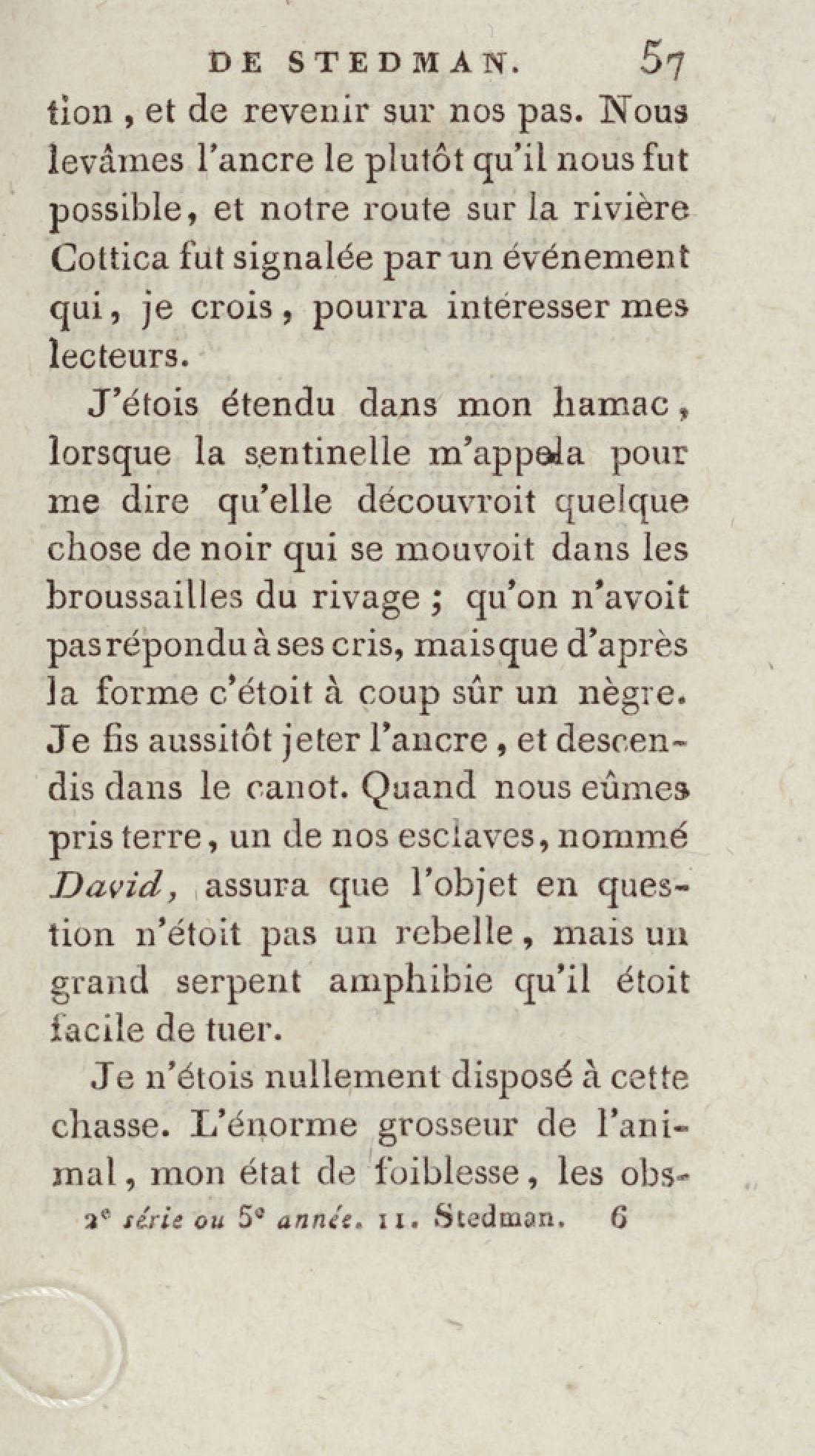 - Bibliothèque géographique et instructive des jeunes gens, ou Recueil de voyages intéressants dans toutes les parties du monde, pour l'instruction et l'amusement de la jeunesse. Cinquième année. Tome onzième, Voyage de Stedman