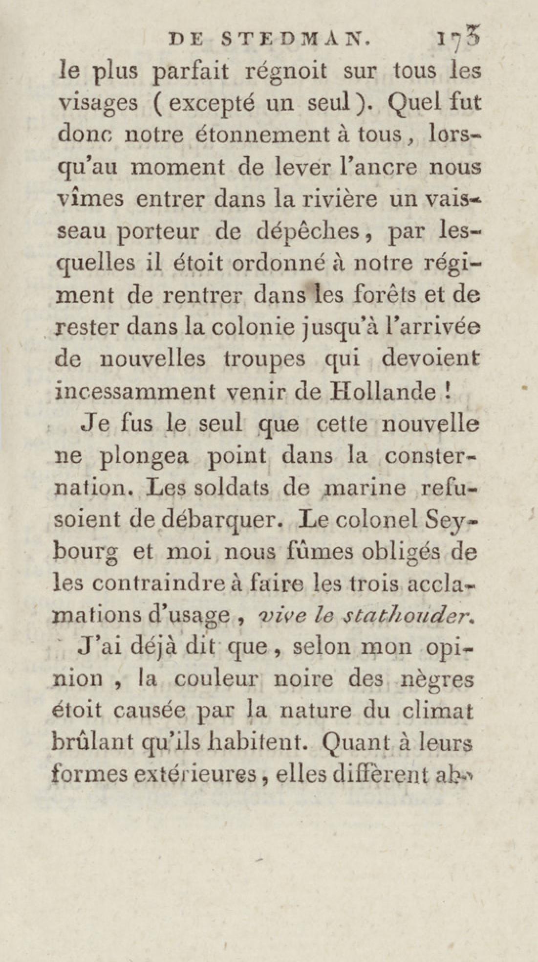 Bibliothèque géographique et instructive des jeunes gens, ou Recueil de voyages intéressants dans toutes les parties du monde, pour l'instruction et l'amusement de la jeunesse. Cinquième année. Tome onzième, Voyage de Stedman
