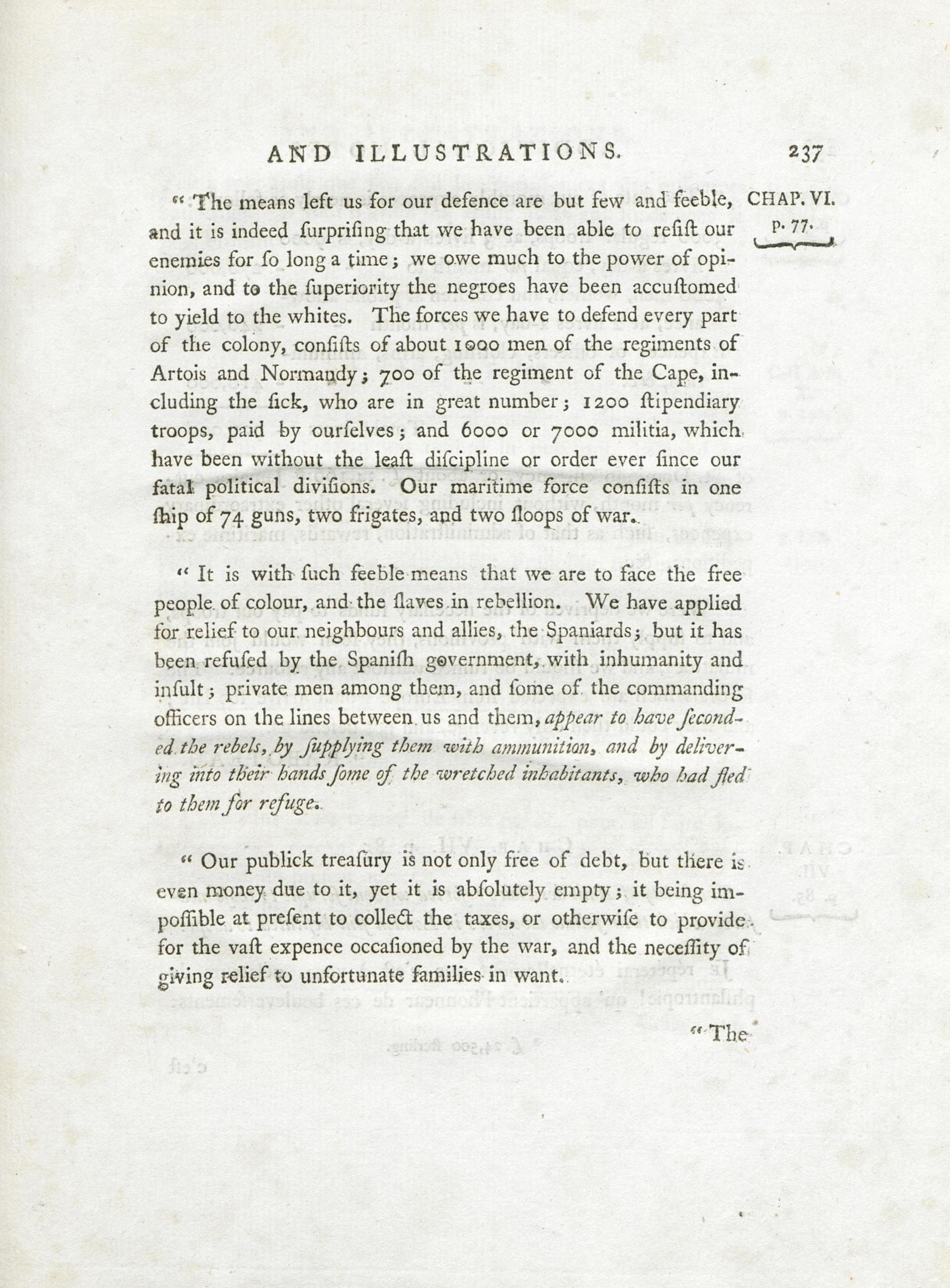 Fait partie de An historical survey of the French colony in the island of St. Domingo : comprehending a short account of its ancient government, political state, population, productions, and exports ; a narrative of the calamities which have desolated the country ever since the year 1789, with some reflections on their causes and probable consequences : and a detail of the military transactions of the British army in that island to the end of 1794